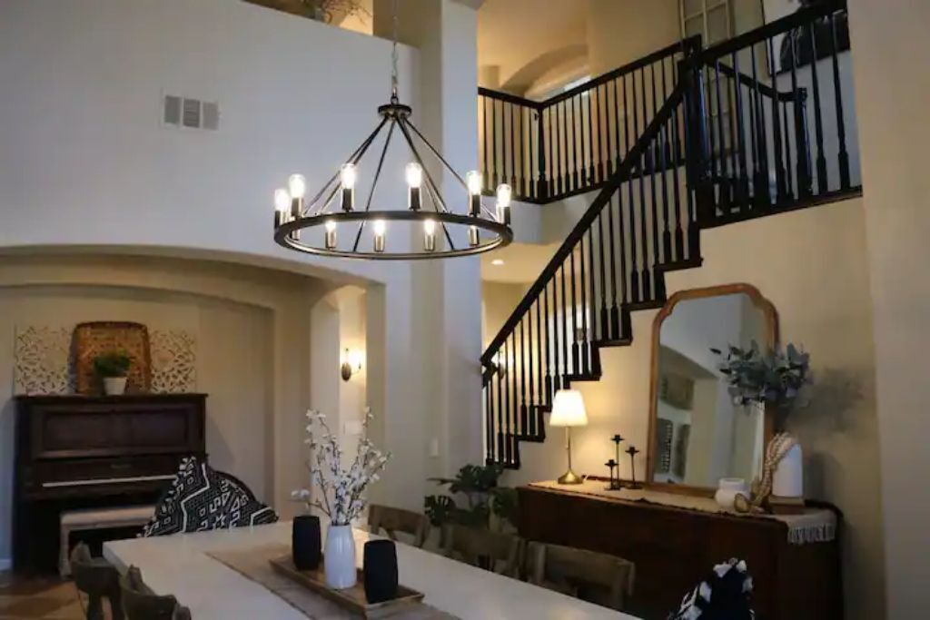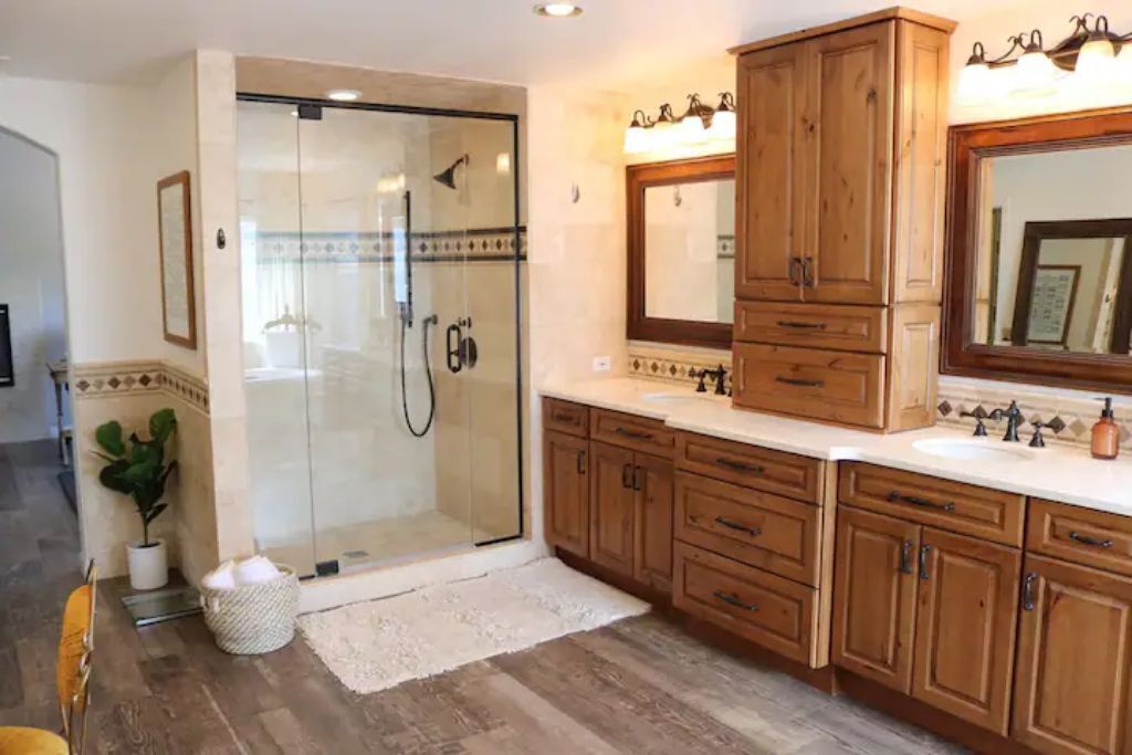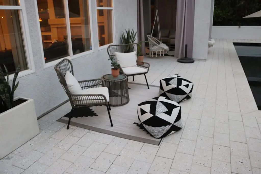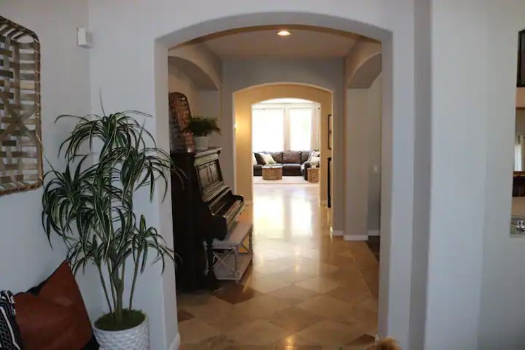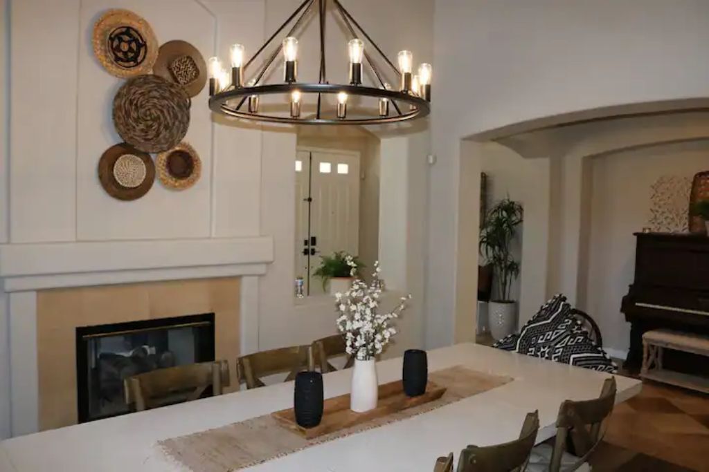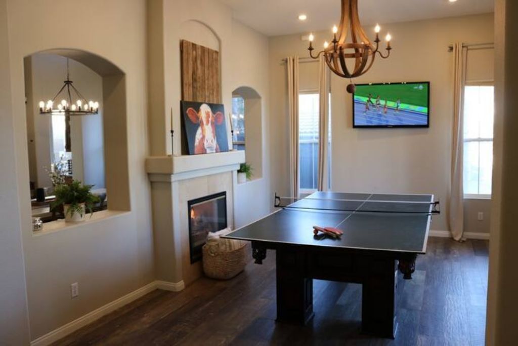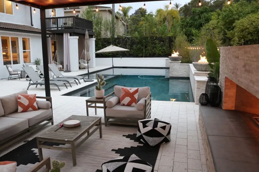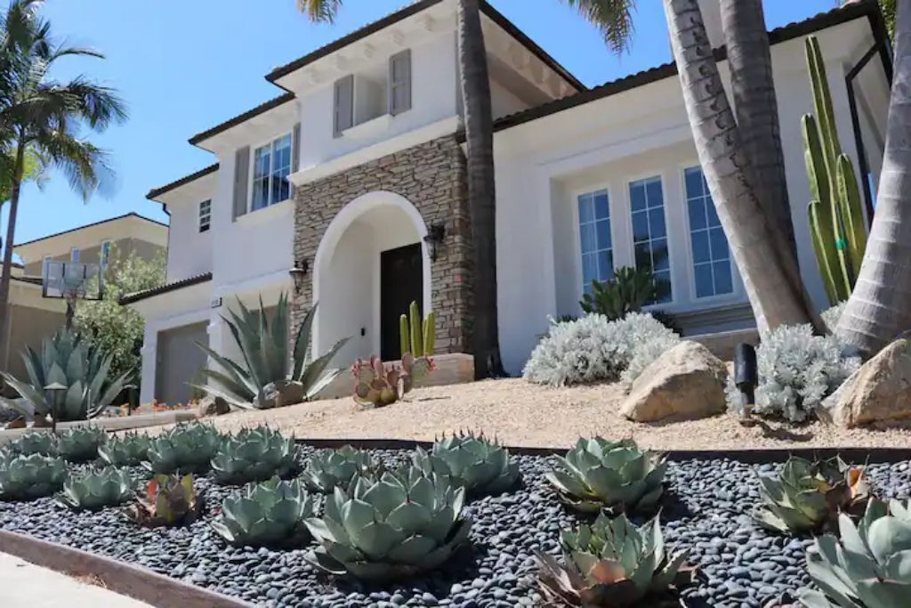Luxury Resort Pool Home Exquisite 4,100 sf Luxury home in North County San Diego with new chef’s dream kitchen with all Viking appliances. Modern backyard resort with incredible solar heated pool, hot tub, outdoor kitchen, covered lounge areas, and massive fireplace. 4 bed/4 bath, and 2 separate living rooms offer comfort and convenience. Pool table and ping pong room for your entertainment. 4 fireplaces and 5 large flat-screen TV’s. Dedicated office/work space. Workout area with free weights, bench, and equipment.The spaceBackyard offers an incredible resort experience. Large modern fireplace with an outdoor seating area covered with fine Ipe hardwood. The large modern pool is perfect for swimming laps or just cooling off. The pool is solar heated, and includes 3 waterfalls. The jacuzzi can be heated quickly with the push of a button. The outdoor kitchen includes a Delta Heat gas grill, 2 burners, sink, refrigerator, and a Big Green Egg for your grilling enthusiasts.Large dining room, pool table, and ping pong room. The master bath is a perfect place to relax. Draw a bath in the claw-foot tub, or take a long hot shower. Huge walk-in closets. There are 5 work stations/desks if you need to get some work done. Brand new washer and dryer in the laundry room. Fully equipped kitchen for all your cooking and entertaining needs.Sorry, no pets allowed. Owners are allergic.Guest accessThere is room for 2 cars in the driveway, and plenty of street parking available.Access to the front door is through a digital keypad, so there are no keys to worry about.Other things to noteOur home is located just minutes from Encinitas and Carlsbad beaches, Legoland, Lake San Marcos, Del Mar, and La Jolla. Enjoy the incredible parks, lakes, restaurants, and beaches, which are all very close.No access to garage - Owner's storage