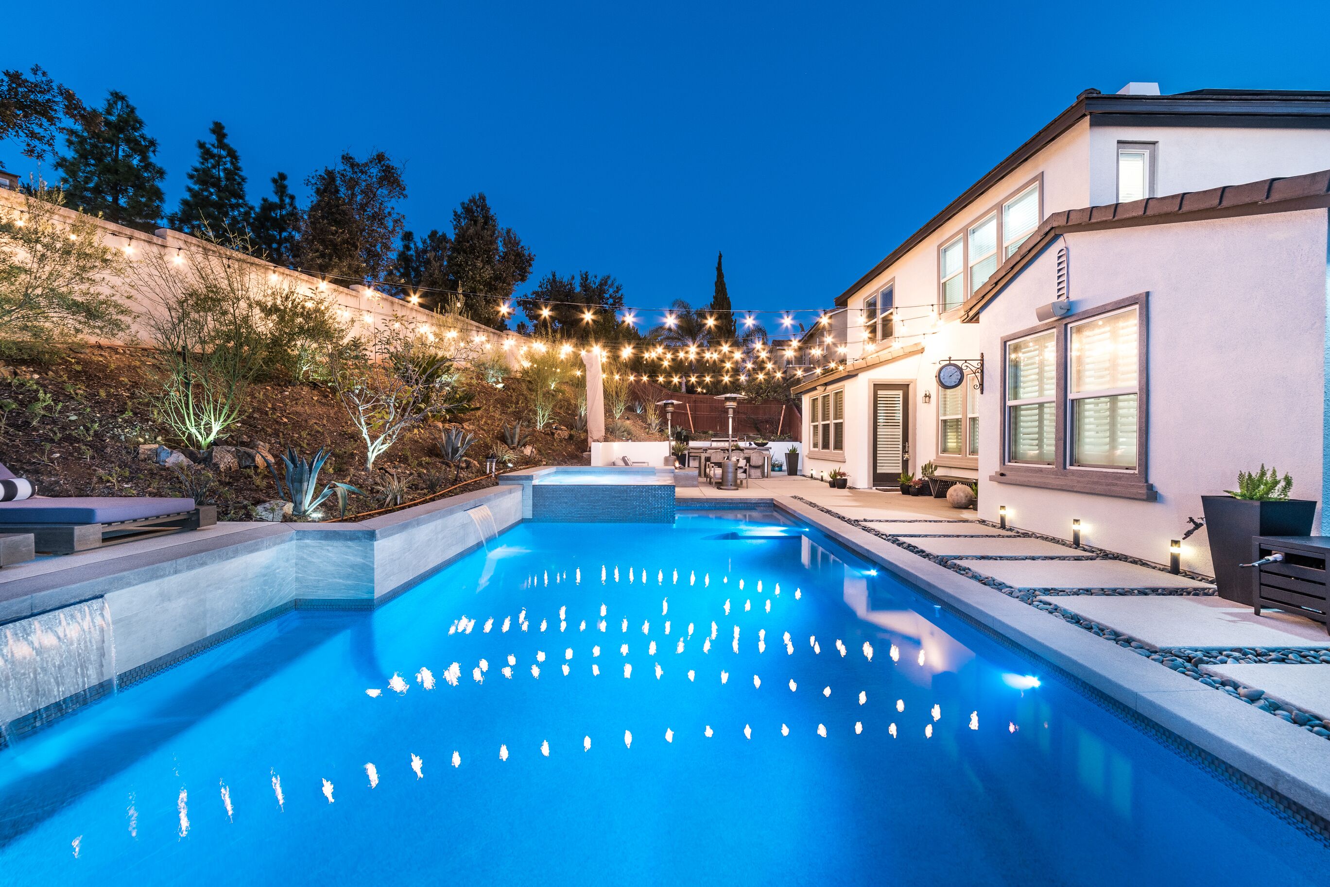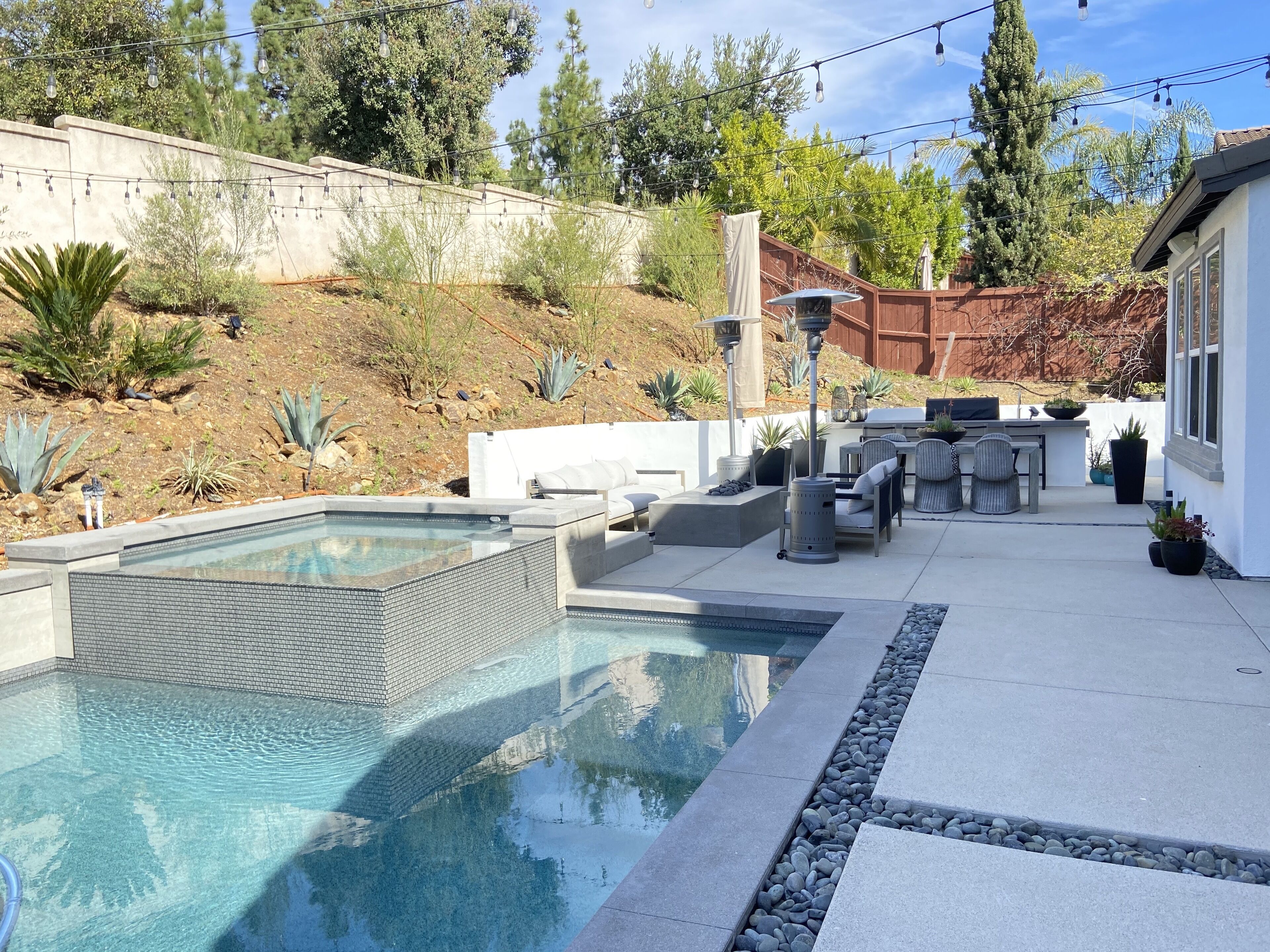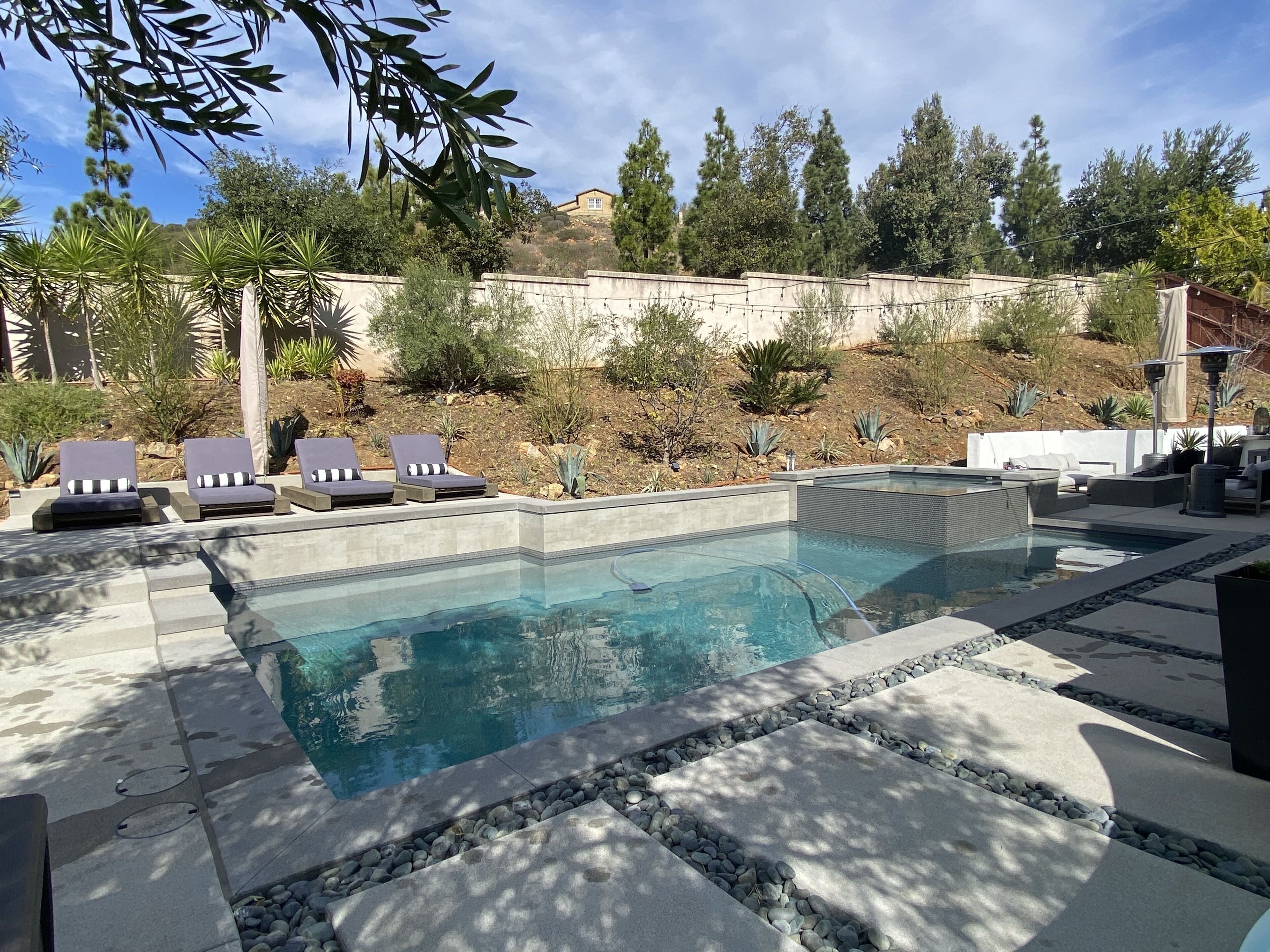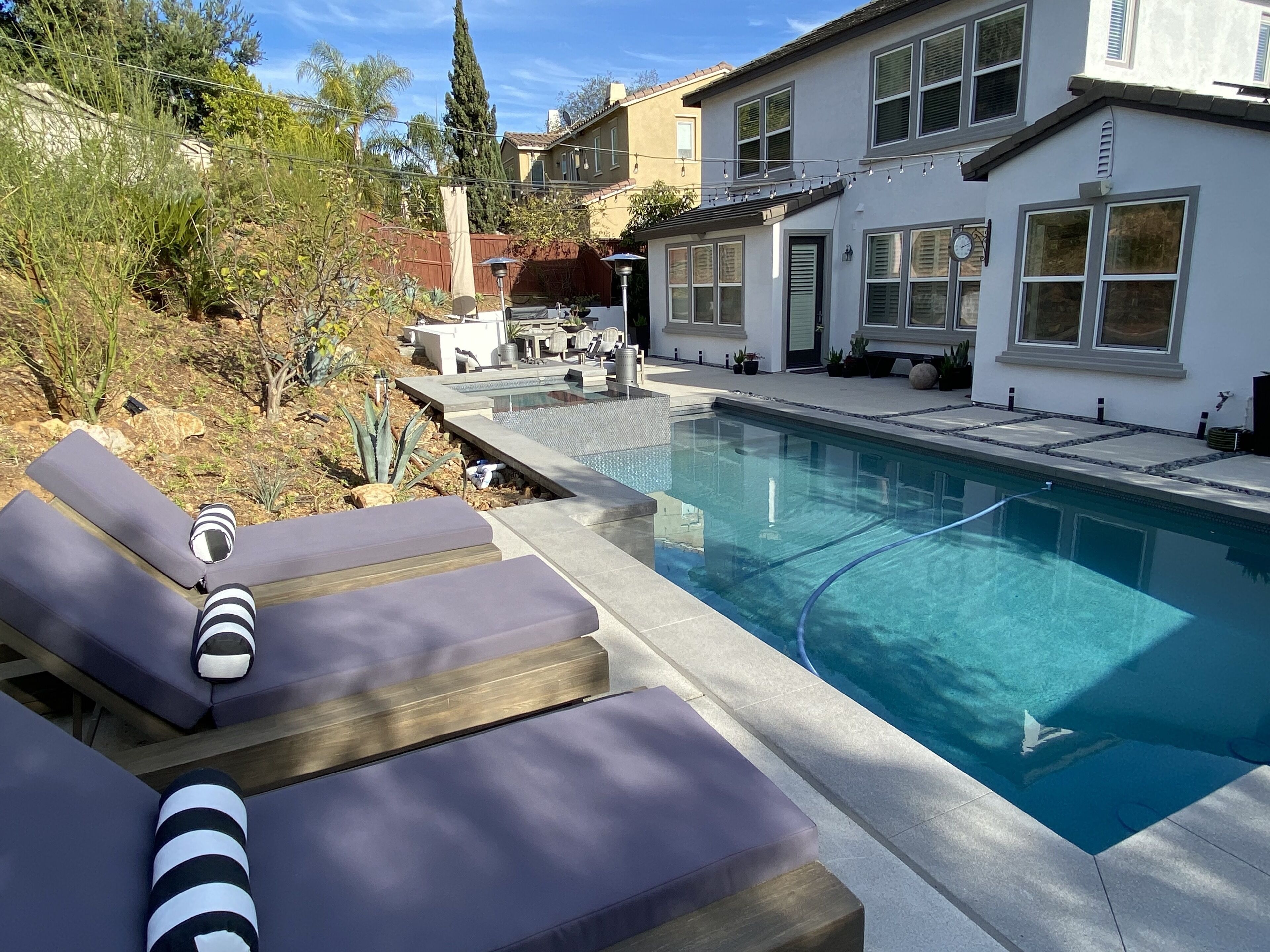 Designer Oasis Home with Pool & Spa - 5 Bedrooms Welcome to this Designer Southern California Indoor/Outdoor Home w\ Pool & Spa. This home is very private and has lovely upgrades and furnishings. Located next to a nature preserve in a peaceful community, there's extensive trails for mountain biking and hiking just steps from the front door.The spaceA 5 bedroom, 5 bath tasteful and classic style home designed for the best of California indoor/outdoor living, it has a private guest suite and a home office and sleeps up to 9 people.Have fun with the whole family at this stylish place and enjoy the gorgeous backyard with its own private pool, spa, market lights, and fire pit.Master (downstairs): King bedGuest Suite Downstairs: King BedKids Room: Twin bedGuest Room: Queen bedGuest Room: Queen bedPlease note, the house rules are NO smoking and No parties.No petsGuest accessThe only non-accessible space in the house is the Master Closet.