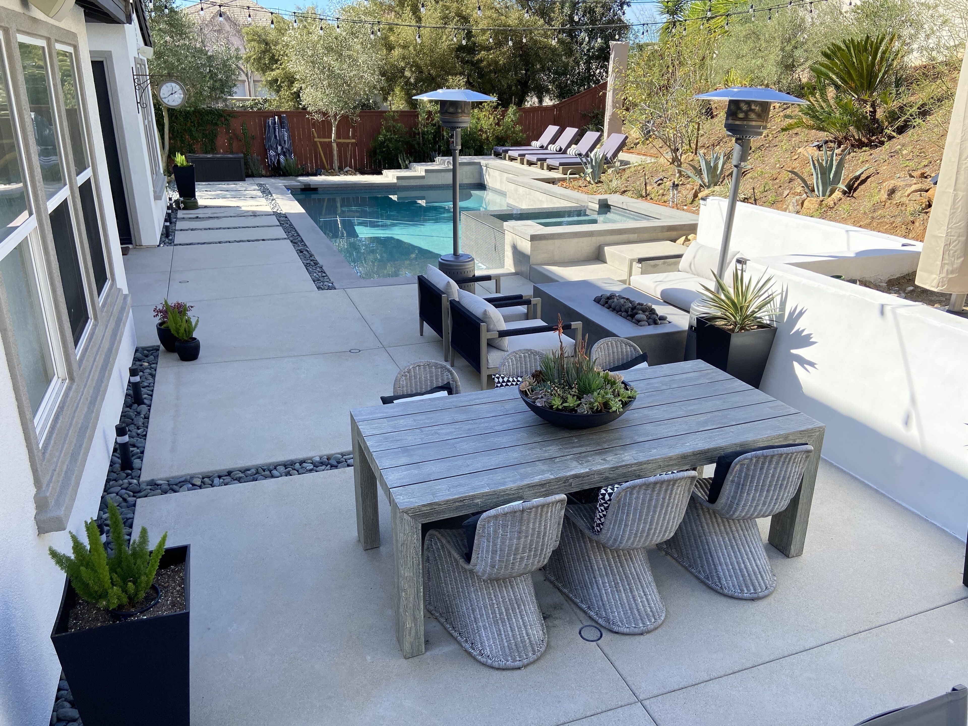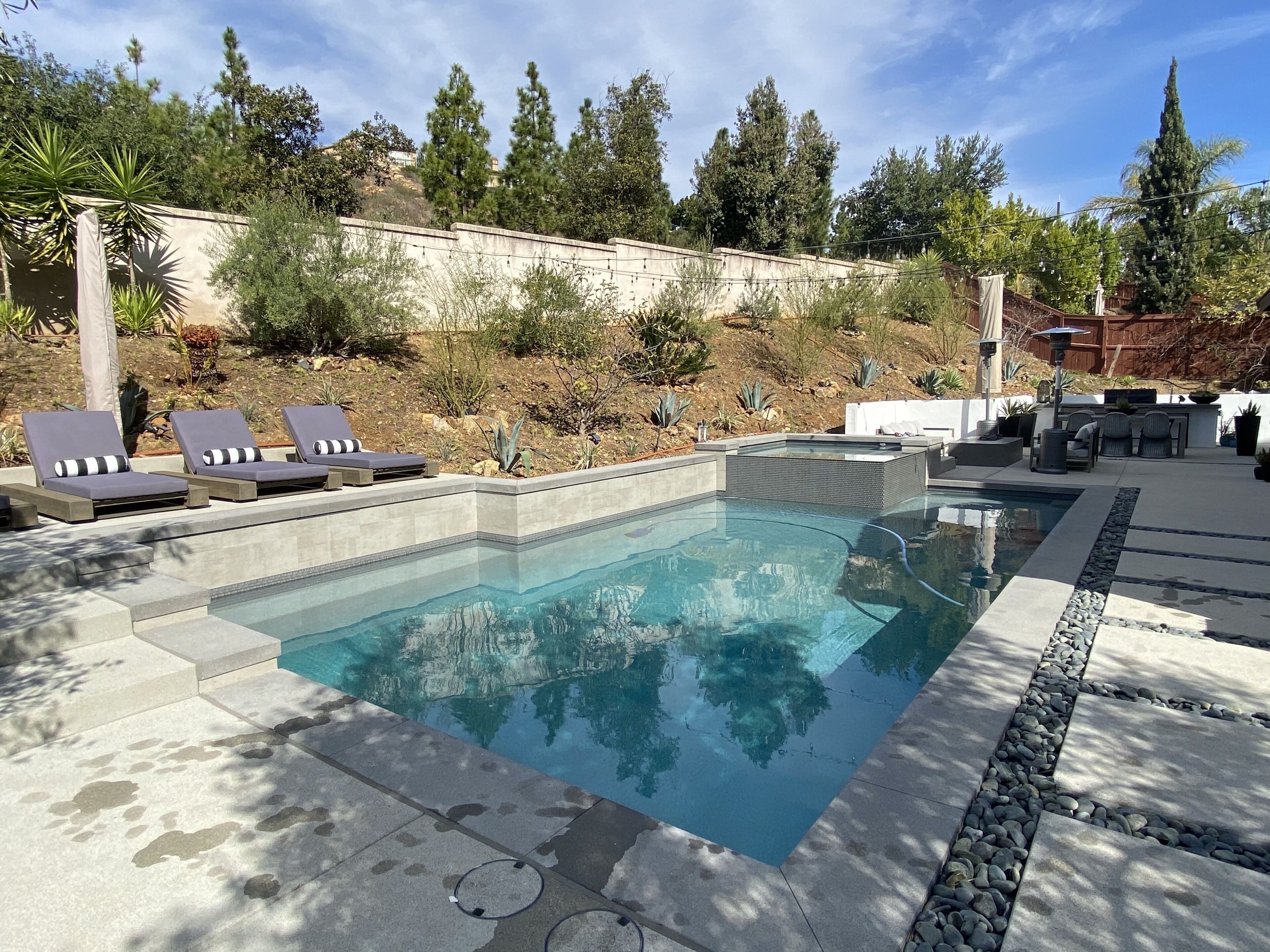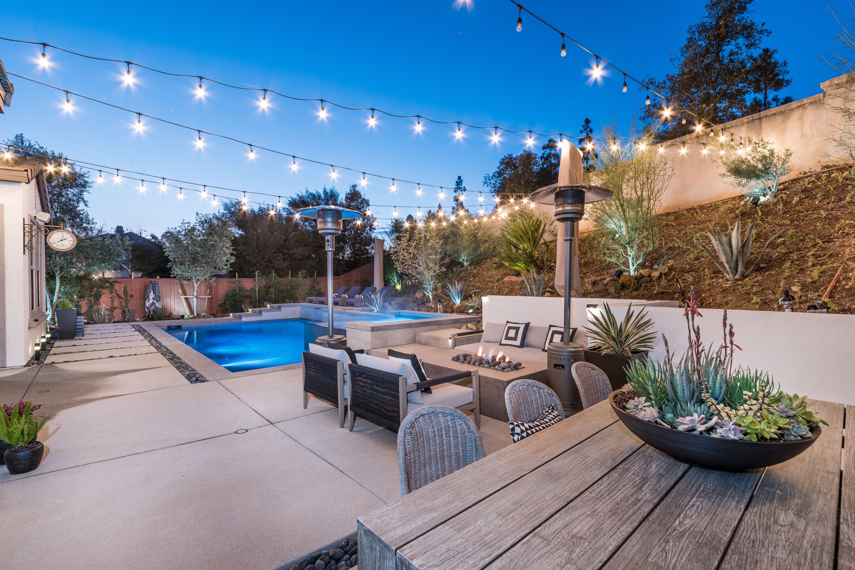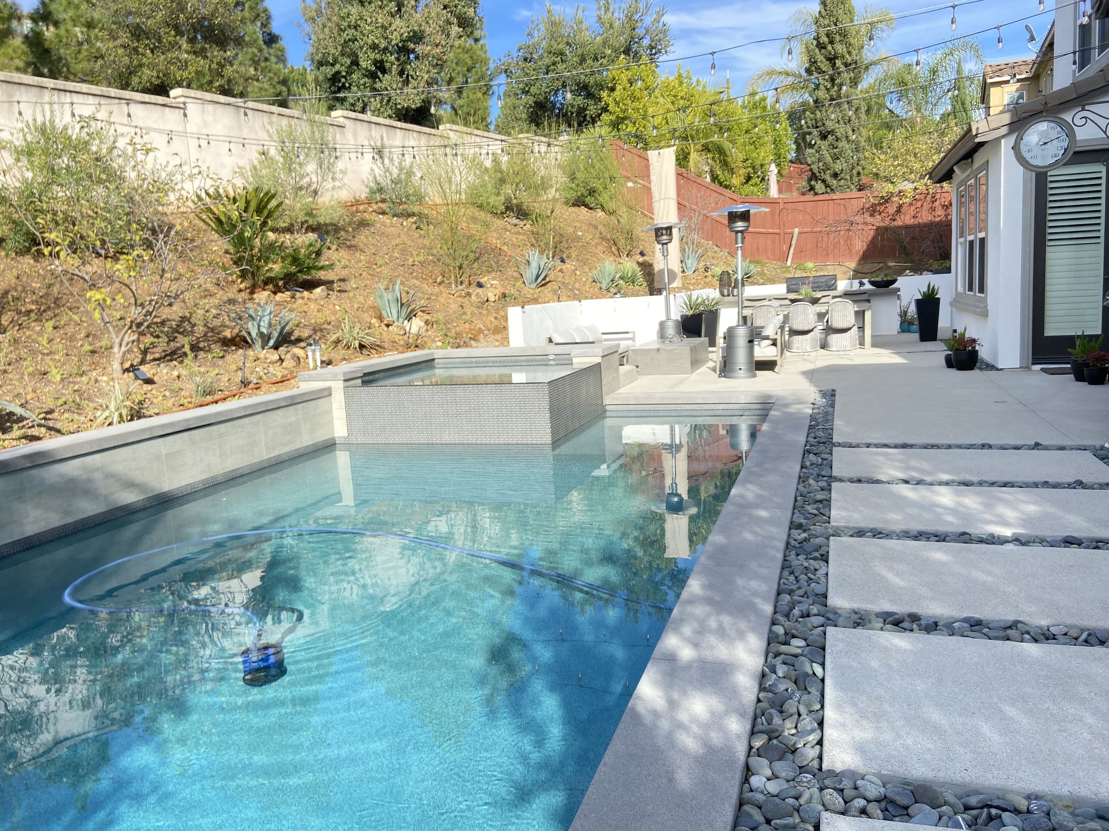 Designer Oasis Home with Pool & Spa - 5 Bedrooms Welcome to this Designer Southern California Indoor/Outdoor Home w\ Pool & Spa. This home is very private and has lovely upgrades and furnishings. Located next to a nature preserve in a peaceful community, there's extensive trails for mountain biking and hiking just steps from the front door.The spaceA 5 bedroom, 5 bath tasteful and classic style home designed for the best of California indoor/outdoor living, it has a private guest suite and a home office and sleeps up to 9 people.Have fun with the whole family at this stylish place and enjoy the gorgeous backyard with its own private pool, spa, market lights, and fire pit.Master (downstairs): King bedGuest Suite Downstairs: King BedKids Room: Twin bedGuest Room: Queen bedGuest Room: Queen bedPlease note, the house rules are NO smoking and No parties.No petsGuest accessThe only non-accessible space in the house is the Master Closet.