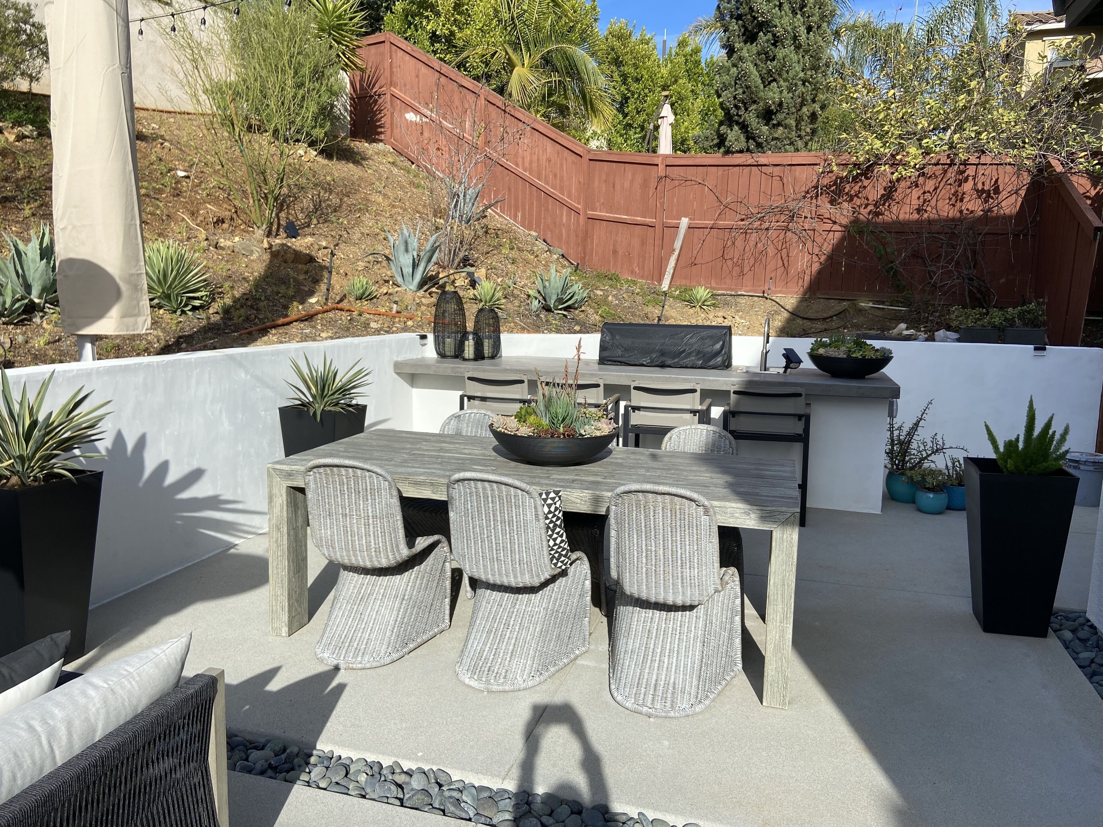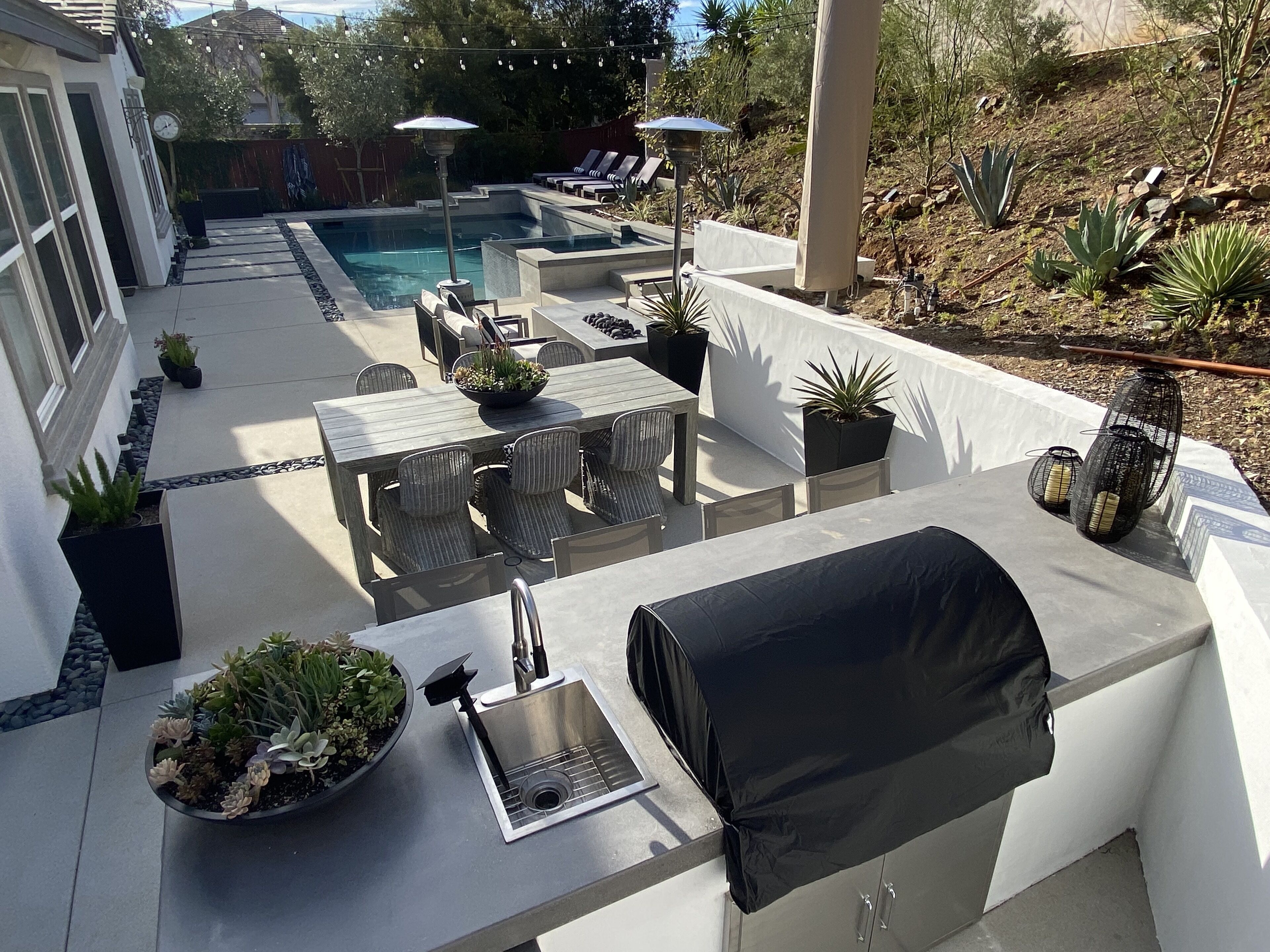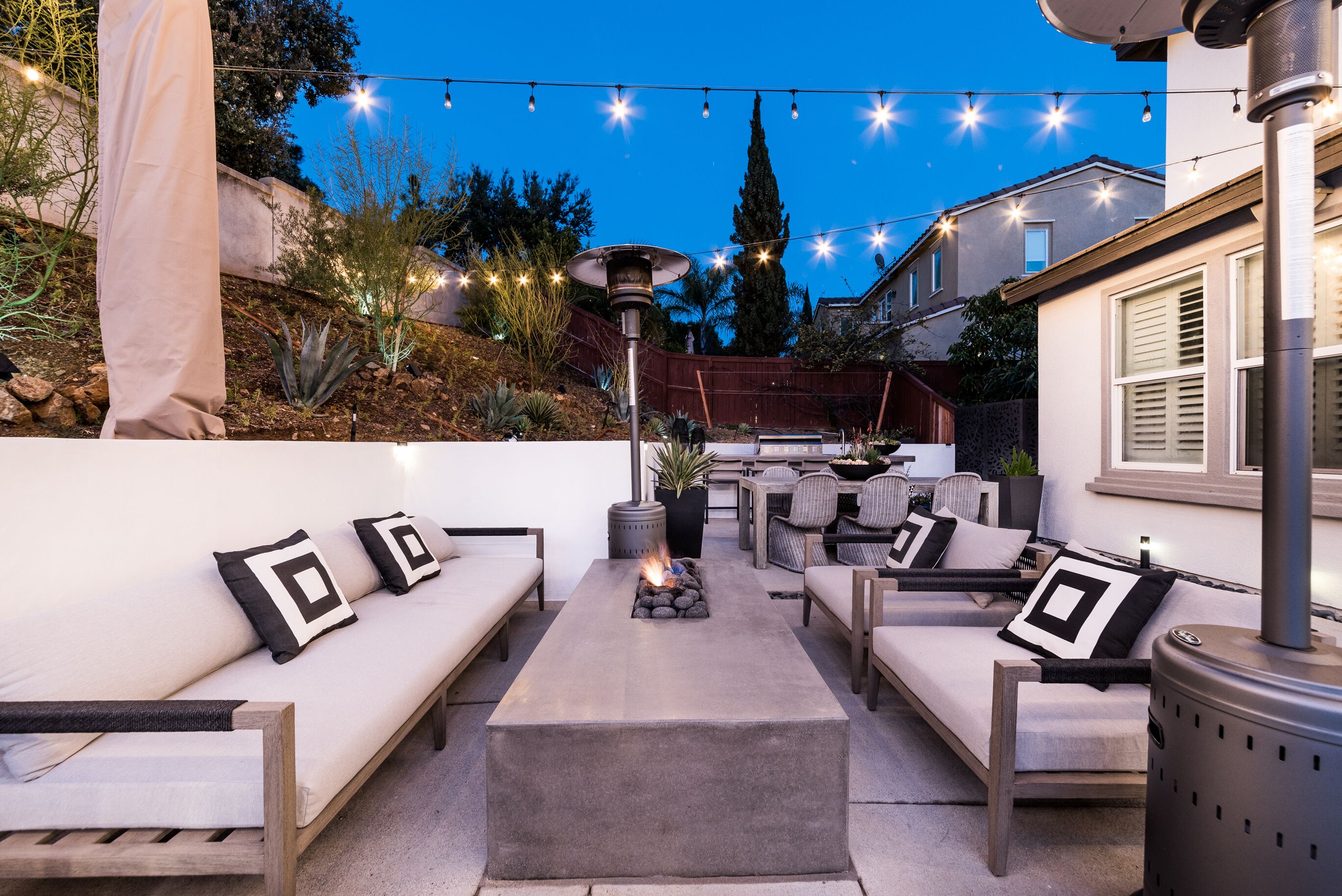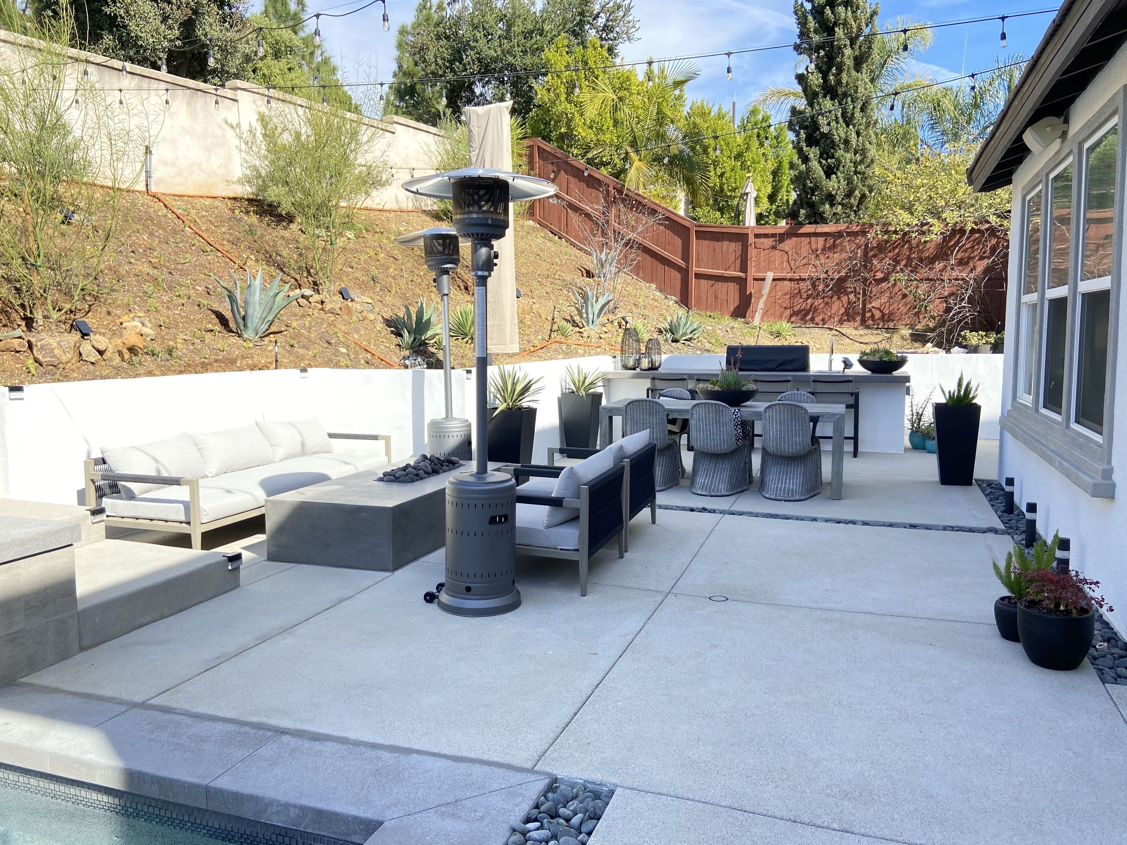 Designer Oasis Home with Pool & Spa - 5 Bedrooms Welcome to this Designer Southern California Indoor/Outdoor Home w\ Pool & Spa. This home is very private and has lovely upgrades and furnishings. Located next to a nature preserve in a peaceful community, there's extensive trails for mountain biking and hiking just steps from the front door.The spaceA 5 bedroom, 5 bath tasteful and classic style home designed for the best of California indoor/outdoor living, it has a private guest suite and a home office and sleeps up to 9 people.Have fun with the whole family at this stylish place and enjoy the gorgeous backyard with its own private pool, spa, market lights, and fire pit.Master (downstairs): King bedGuest Suite Downstairs: King BedKids Room: Twin bedGuest Room: Queen bedGuest Room: Queen bedPlease note, the house rules are NO smoking and No parties.No petsGuest accessThe only non-accessible space in the house is the Master Closet.