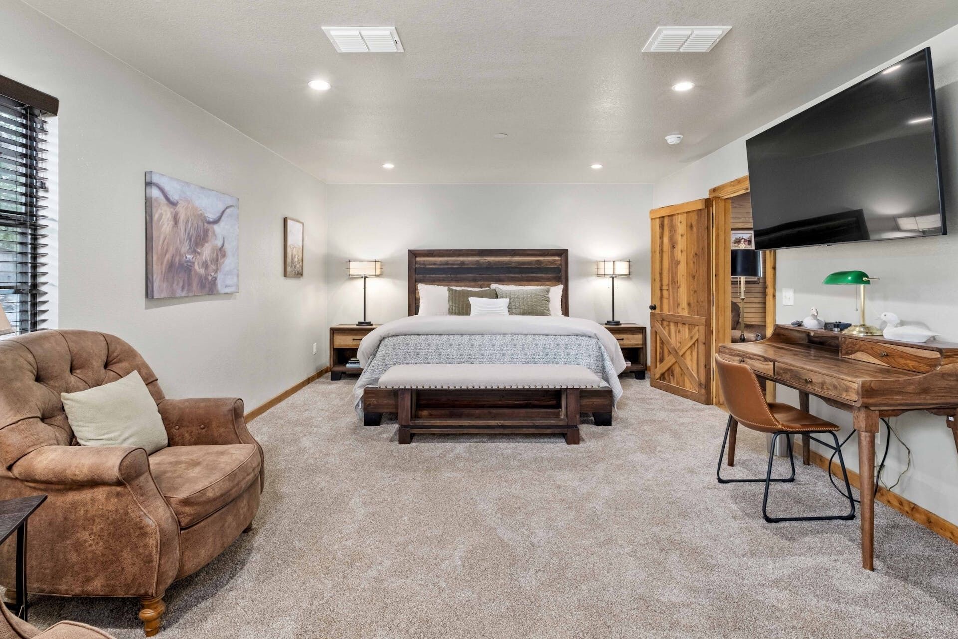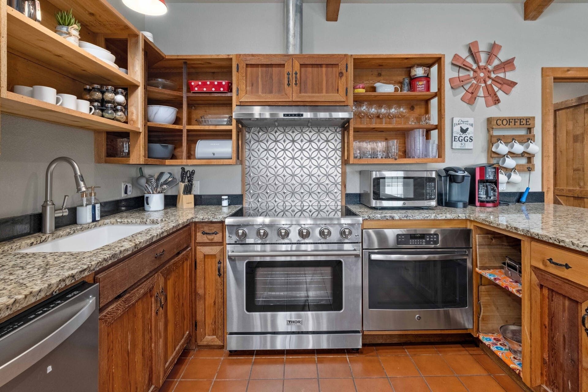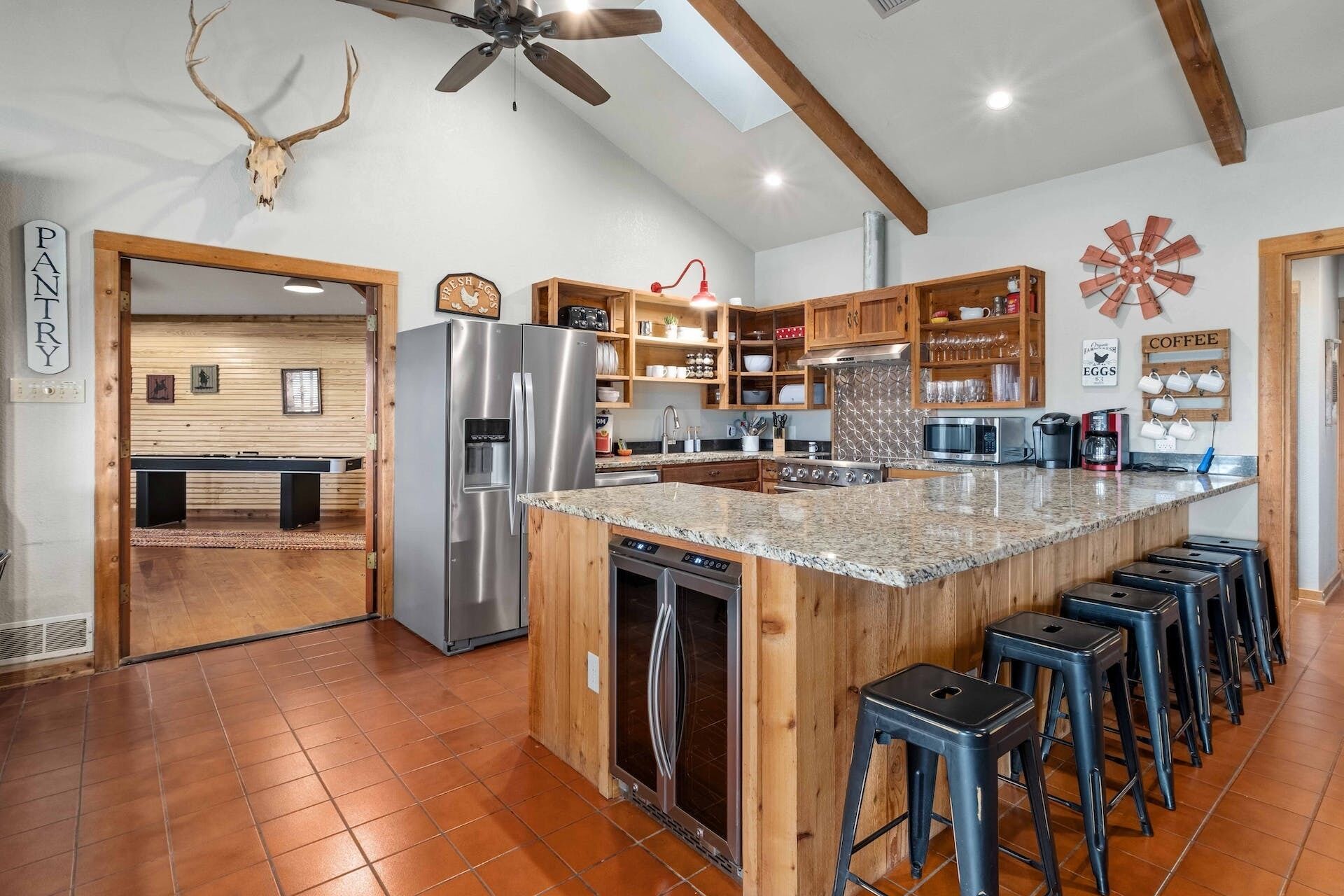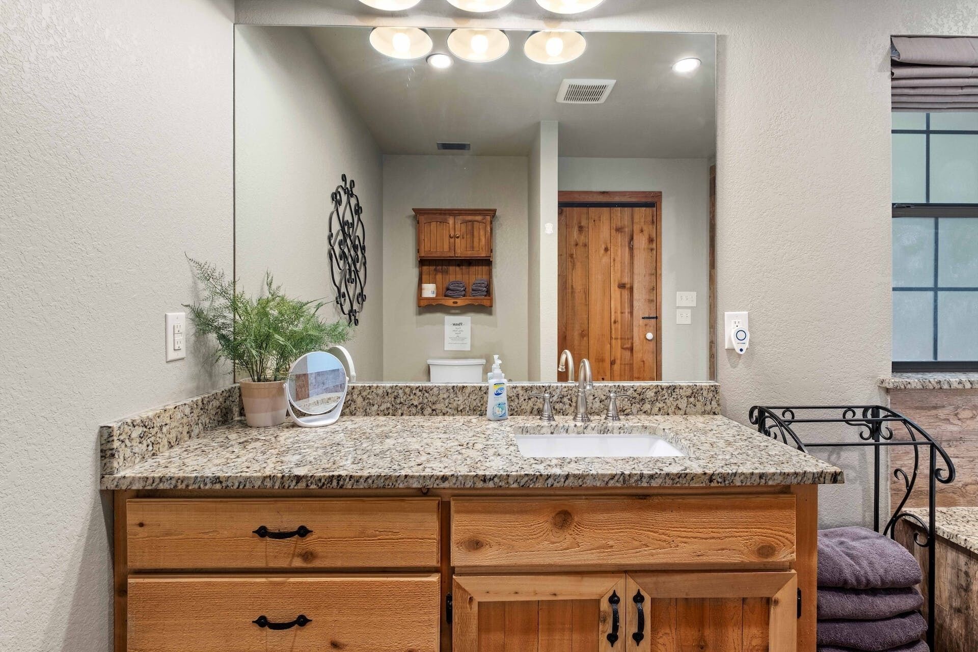 Charming Farmhouse on 34 Private Acres w/Heated Pool *The pool can be heated from October - March. Three days advance notice (prior to your arrival) is required if you would like to heat the pool. There is an additional charge of $150 per day to cover the propane usage/cost it incurs. The pool must be heated for the entirety of the reservation.An exquisite, handcrafted home, blending contemporary with warm rustic elegance, in a Hill Country setting on 34 private acres. Relax on the porch in a rocking chair, enjoy snuggling up by the the indoor fireplace, read a book while soaking in the hot tub, or just do nothing at all - this is relaxation at its best!The open living, kitchen, and dining areas make it convenient for your family and friends to enjoy quality time no matter where they prefer to hang out. The game room was designed with both kids and adults in mind. Enjoy a night of poker around the game table, a competitive game of shuffleboard, or bust one of the good old fashioned family board games. Although the home only has 4 bedrooms, the owners very thoughtfully and strategically created a way for groups as large as 13 guests to enjoy the space together comfortably. The outdoor amenities do not disappoint offering a grill area, outdoor fire pit, a brand new swimming pool!Bedroom/Bed Configuration: Master Bedroom – 1 King bedBedroom 2 – 1 King bed, 1 Twin bedBedroom 3 – 1 Queen bedBedroom 4 – 2 Queen beds, 1 Twin bedBonus Room – 1 Twin bedPET POLICY: Pets are only allowed if they have been registered prior to your arrival. A maximum of 2 dogs are allowed and a pet fee of $25.00 per pet, per night will be added once your pets are approved.SELF CHECK-IN REQUIREMENTS: All reservations will be required to sign a rental agreement and provide Hills of Texas Lodging with a valid credit card to be placed on file for their stay. In lieu of charging a damage deposit or non-refundable damage waiver, a temporary hold will be placed on a credit card upon arrival for incidentals (just like they do at hotels). We are basically just verifying with your financial institution that sufficient funds are available in the event they were needed to cover property damage(s). If there are no property damages, the card will not be charged.