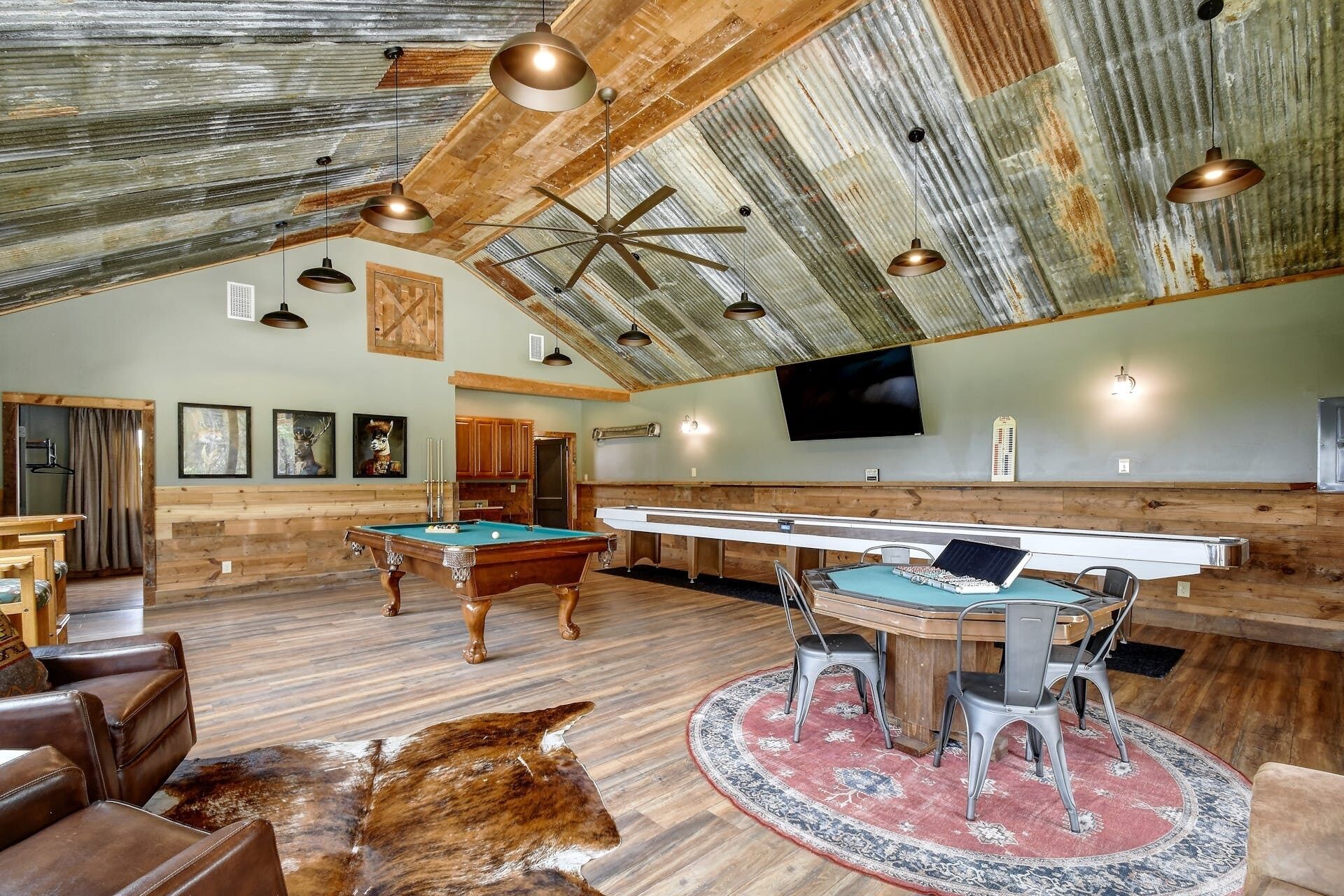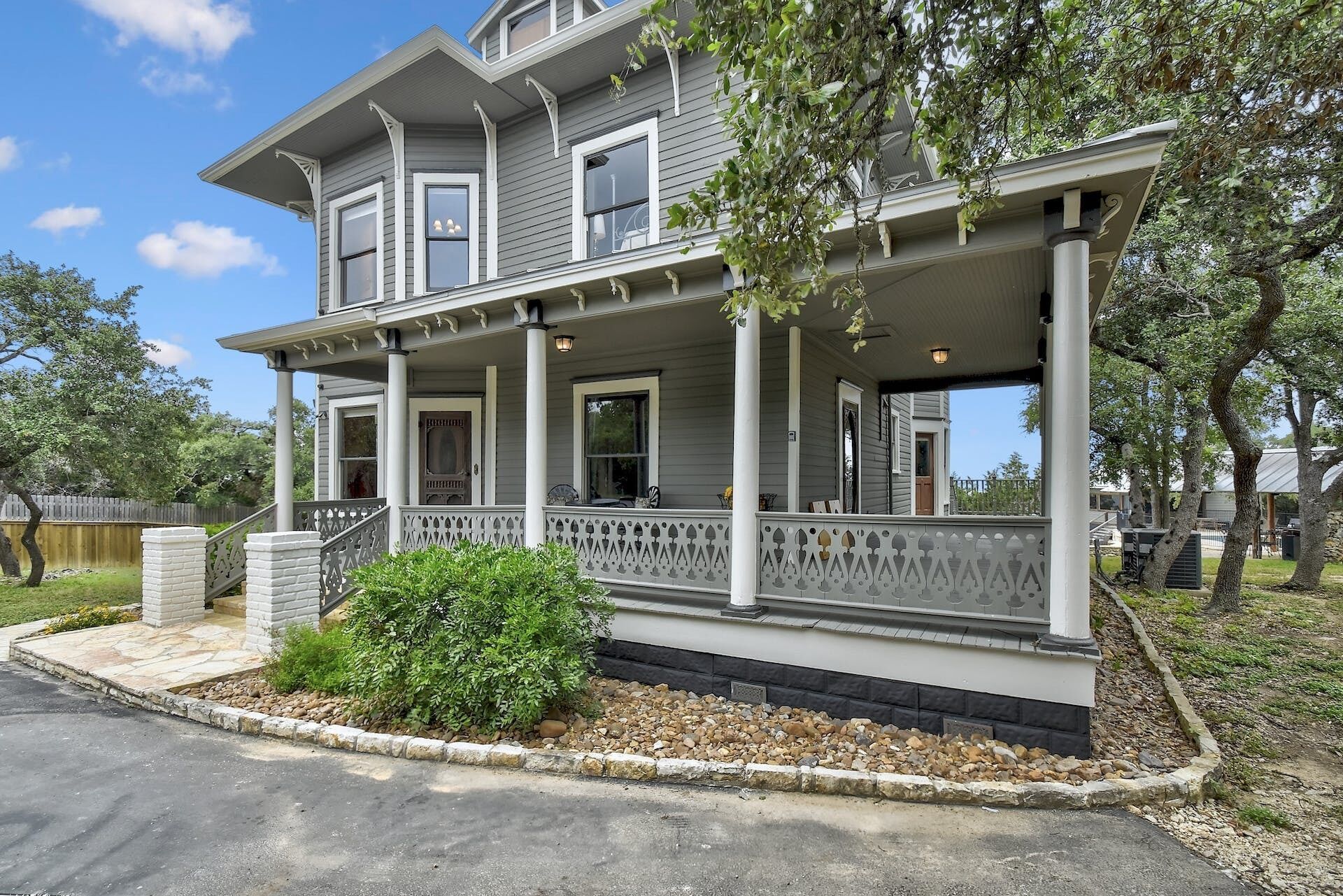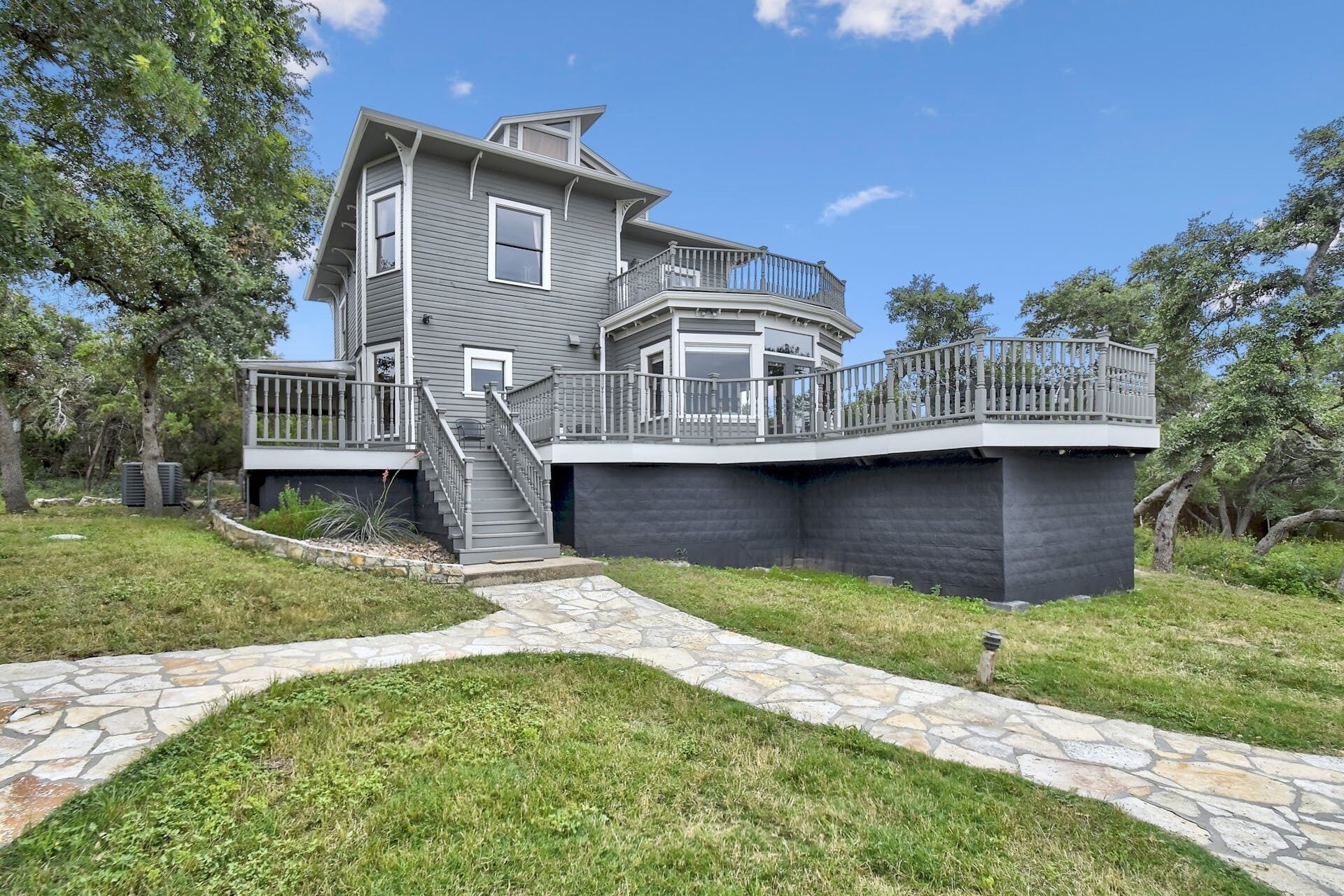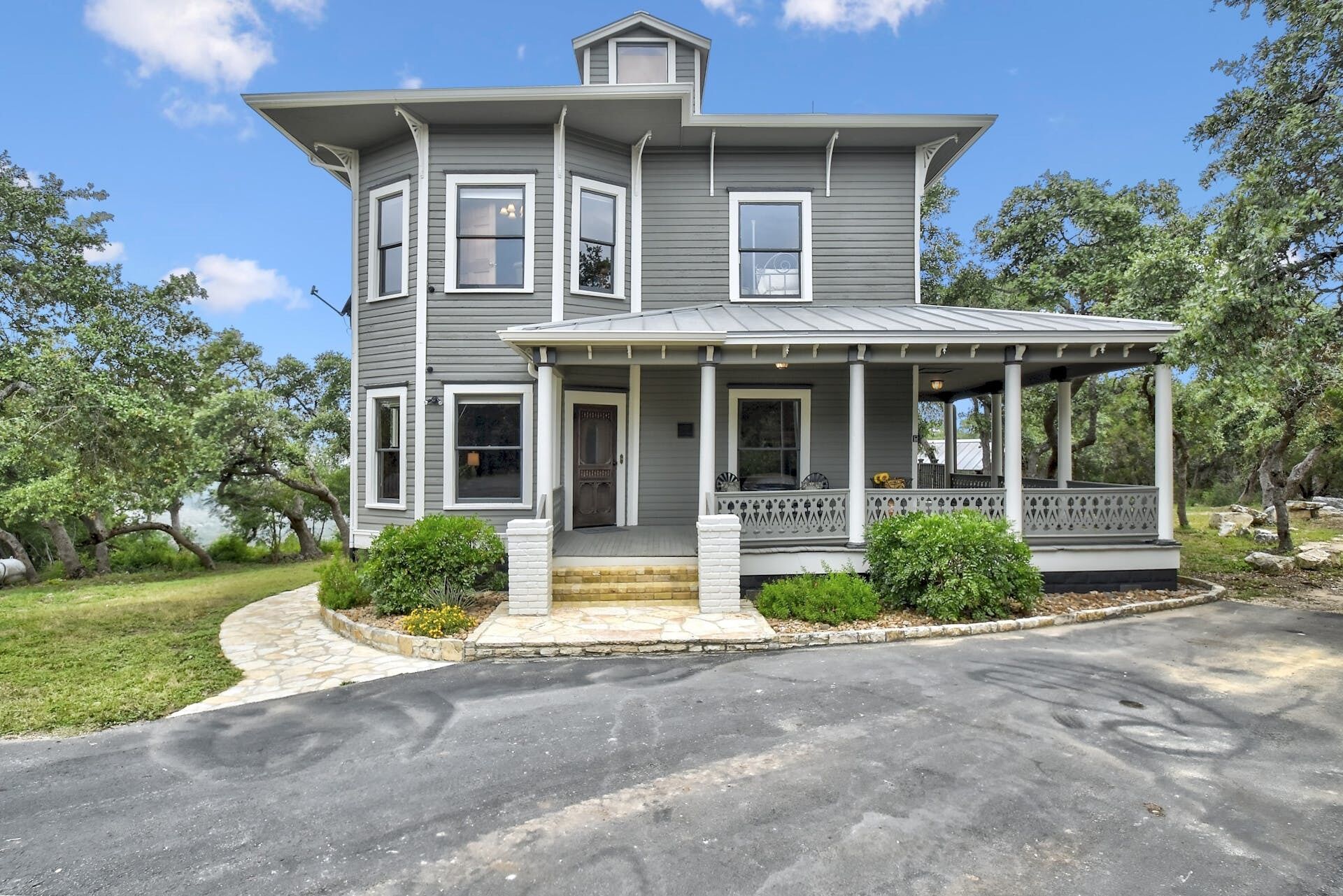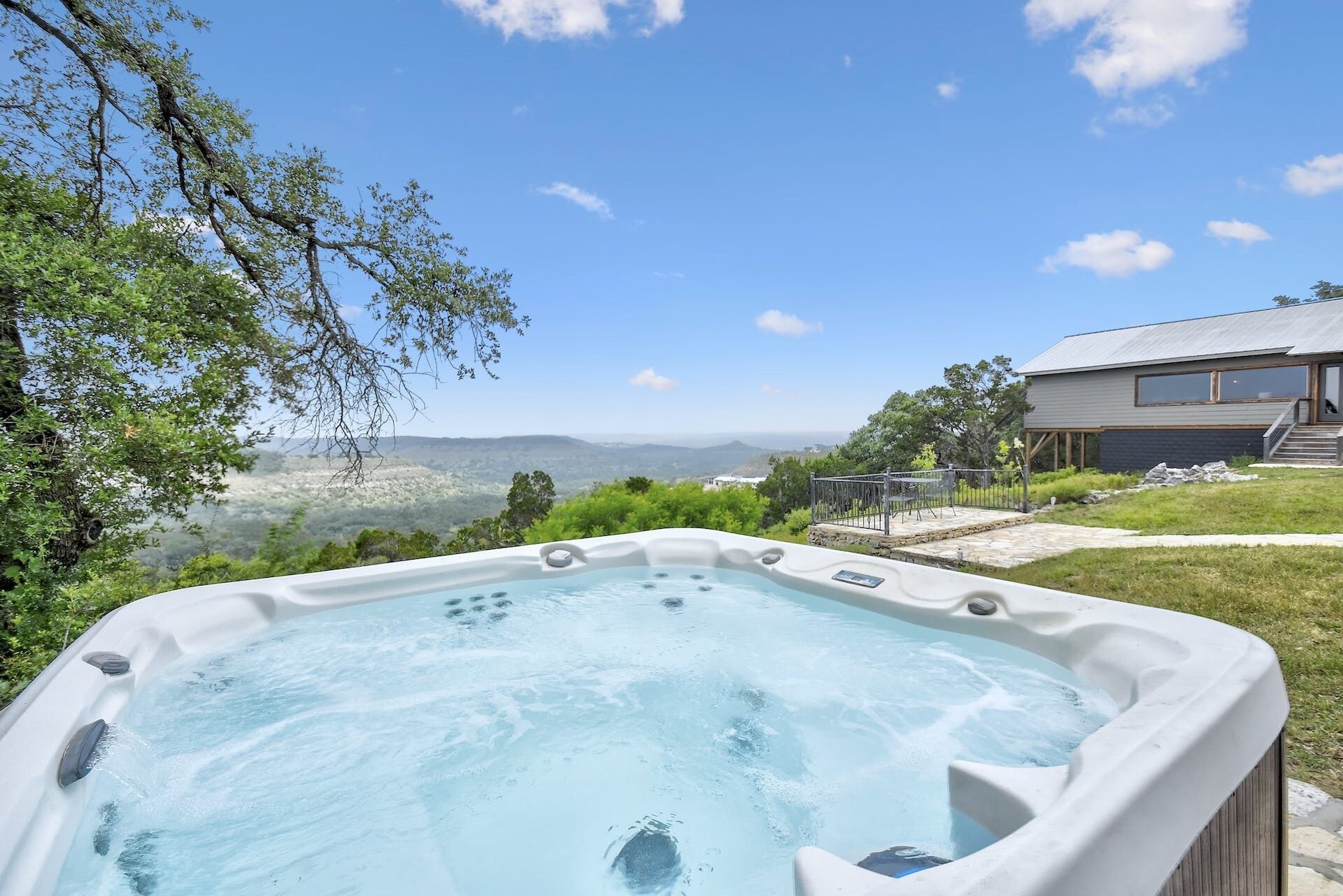 Ridge View Charming Victorian Home w/ AMAZING VIEW, Pool, Hot Tub, Game Room **HUGE GAME ROOM** Game Room - 22 ft Shuffleboard table, Pool Table, Game Table, 1 private king bedroom with full detached bathroom.Ridge View Escape is the perfect get away from it all. Located on Devil's Backbone, just 6 miles from Downtown Wimberley, Ridge View Escape has an amazing 40 mile view that overlooks the Wimberley Valley!First FloorBedroom 1 with king bed and attached full bathroom.second floorBedroom 2- 1 King bed and private bathBedroom 3- Queen Bed Uses detached full bathroom with bedroom 4Bedroom 4- 1 Queen and 1 twin bed with trundle bed uses detached full bathroom with bedroom 33rd floorBedroom 5 1 King bed with private full bath with shower and claw foot bathtubMain House- 5 bedrooms and 4 bathrooms Game room- 1 private king bedroom with full detached bathroomAmenities:PoolHot Tub50" 4K TV in living room with 200+ channels (some premium channels) and DVD playerFirst floor bedroom and game room bedroom do not have a tvLarge tv in Game roomNewly renovated kitchen with high-end stainless steel appliances .Covered Pavilion with gas grill and Smoker.Outdoor Fire PitAmazing 40 mile view!*Please note that this 39 acre estate is shared with our Voca House . Both properties are very private and each have there own pools and hot tubs, and has a tall privacy fence inbetween.