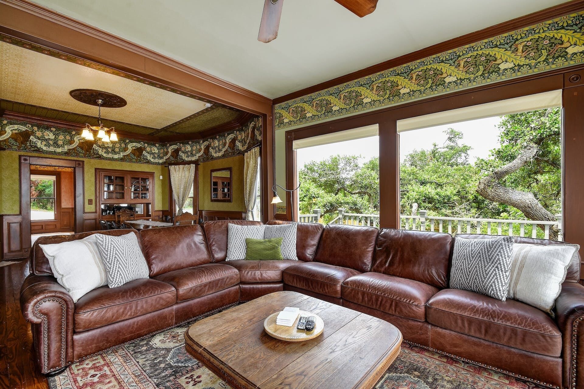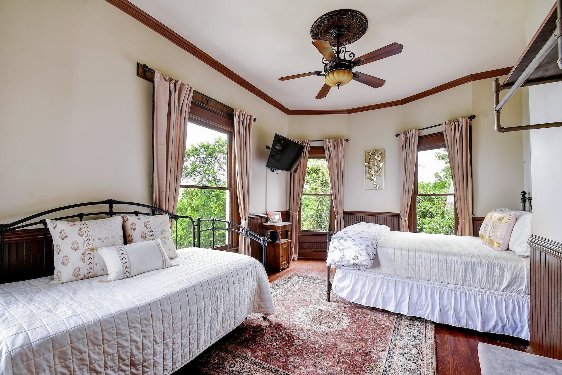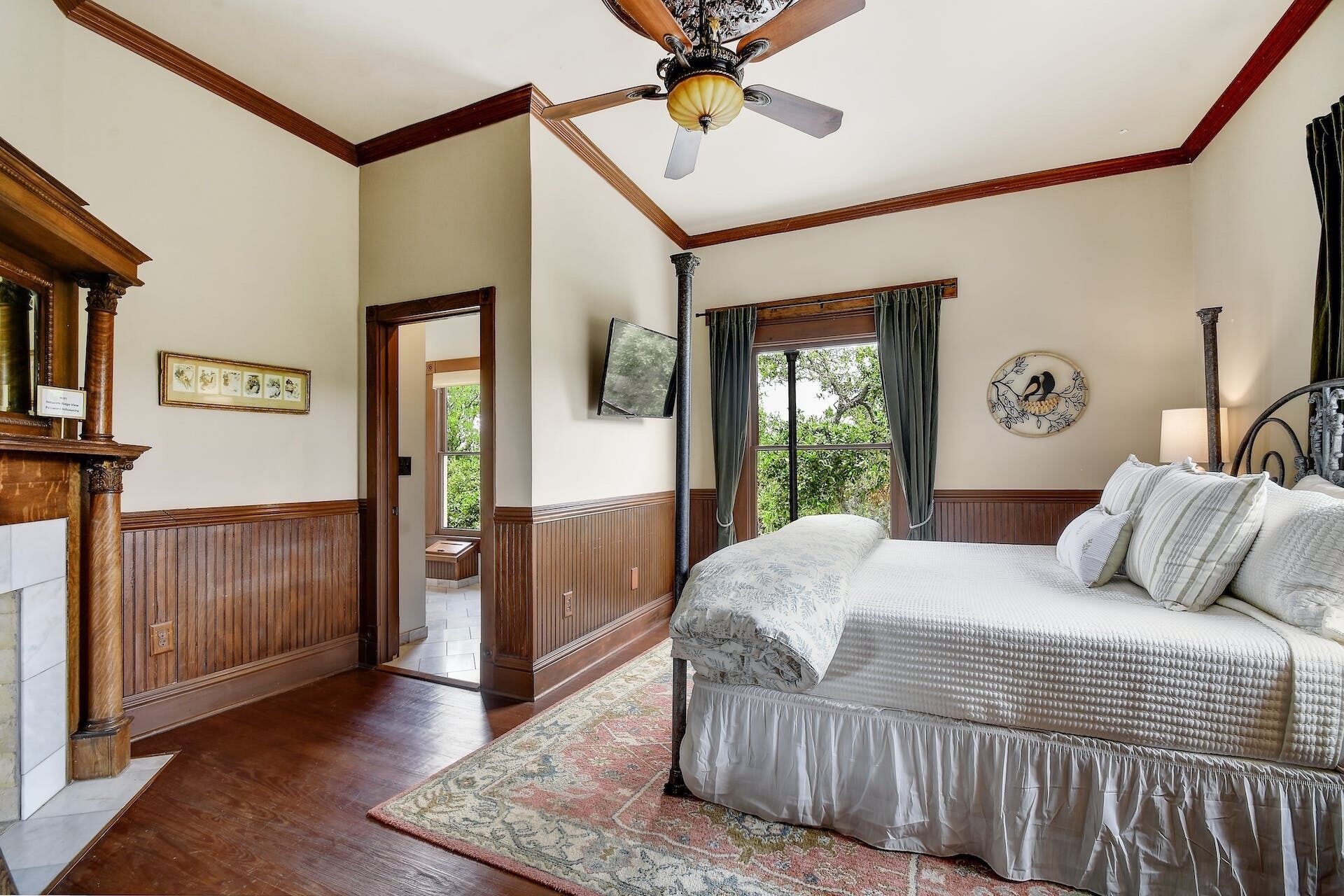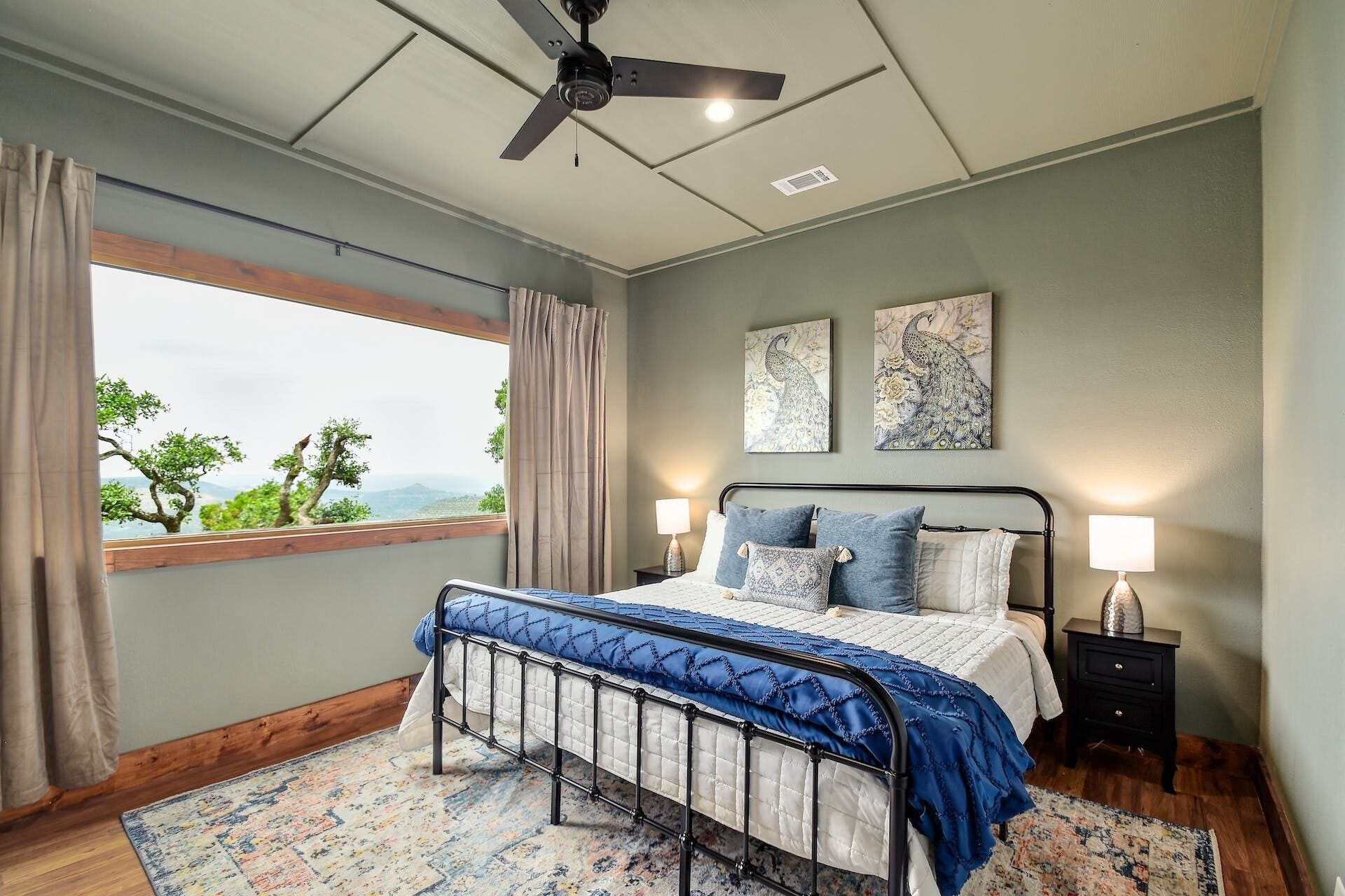 Ridge View Charming Victorian Home w/ AMAZING VIEW, Pool, Hot Tub, Game Room **HUGE GAME ROOM** Game Room - 22 ft Shuffleboard table, Pool Table, Game Table, 1 private king bedroom with full detached bathroom.Ridge View Escape is the perfect get away from it all. Located on Devil's Backbone, just 6 miles from Downtown Wimberley, Ridge View Escape has an amazing 40 mile view that overlooks the Wimberley Valley!First FloorBedroom 1 with king bed and attached full bathroom.second floorBedroom 2- 1 King bed and private bathBedroom 3- Queen Bed Uses detached full bathroom with bedroom 4Bedroom 4- 1 Queen and 1 twin bed with trundle bed uses detached full bathroom with bedroom 33rd floorBedroom 5 1 King bed with private full bath with shower and claw foot bathtubMain House- 5 bedrooms and 4 bathrooms Game room- 1 private king bedroom with full detached bathroomAmenities:PoolHot Tub50" 4K TV in living room with 200+ channels (some premium channels) and DVD playerFirst floor bedroom and game room bedroom do not have a tvLarge tv in Game roomNewly renovated kitchen with high-end stainless steel appliances .Covered Pavilion with gas grill and Smoker.Outdoor Fire PitAmazing 40 mile view!*Please note that this 39 acre estate is shared with our Voca House . Both properties are very private and each have there own pools and hot tubs, and has a tall privacy fence inbetween.