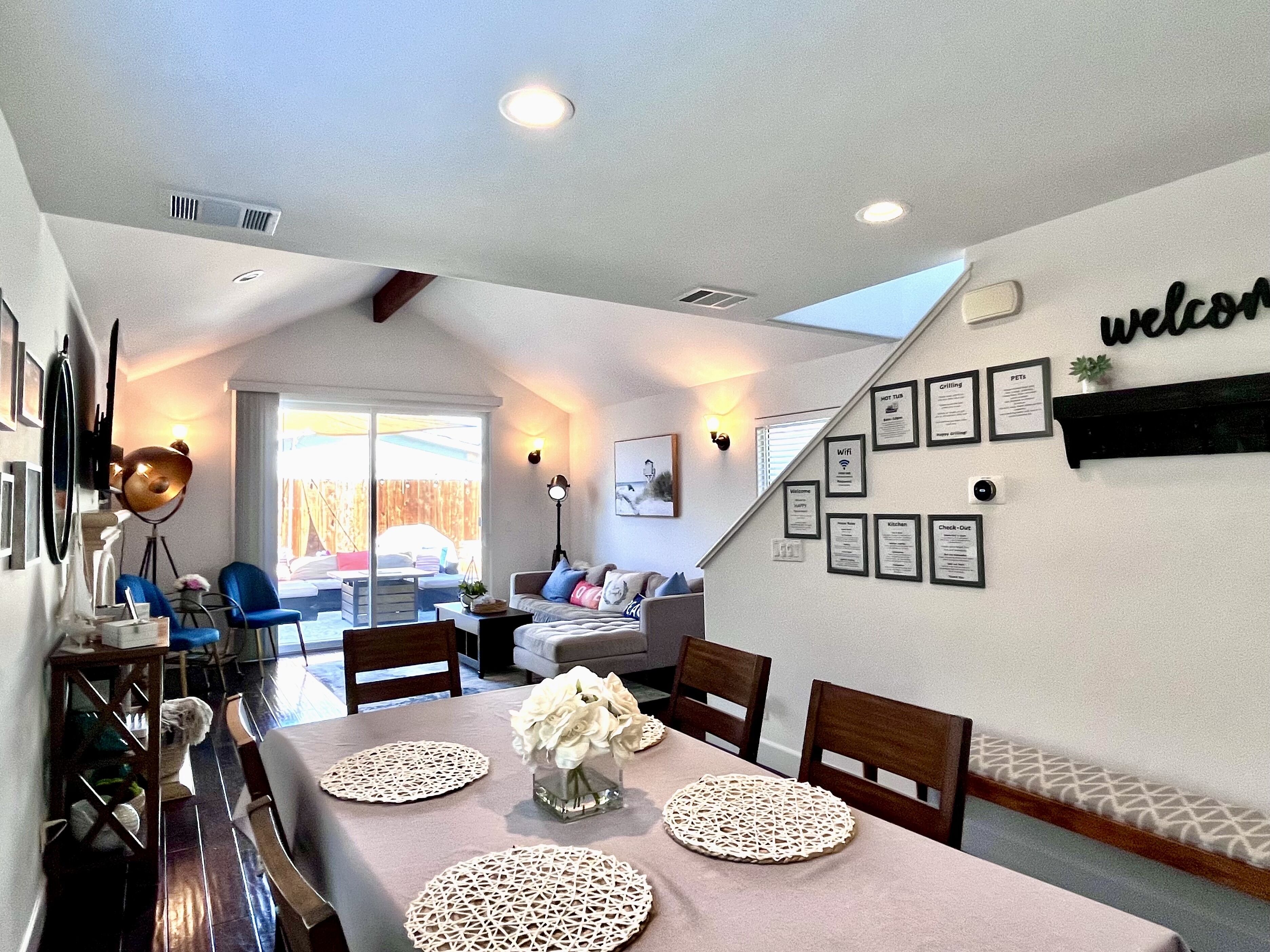 Elegant BEACH RETREAT ❤️minutes to PISMO & AG village FREE EV charge available! Enjoy a stylish experience at this centrally-located place. Just few minutes drive to Pismo beach/ pier & wineries, 10 min walk to the charming village of Arroyo Grande with restaurants, bars and shops. Home sleeps 8 comfortably with luxury beddings. Fully stocked kitchen incl. air fryer & IP. We provide 55’’-65’’ TVs in every room with Netflix, Hulu & Disney Plus. BONUS Game room w/ TV, bar seating, shuffle board, Foosball & board games. Large entertainment backyard area with gas BBQ grill.Our place is walking distance to the charming village of Arroyo Grande, as well as few minutes drive to Pismo pier, Pismo downtown, Golf course, sand dunes, local wineries and hiking trails. The 2 stories home features with elegant Mid-century modern decoration theme, gas fireplace indoor and out door. The house included water softener and instant hot water. Top level has a master suite w/ 1 King bed, working desk, and Jack & Jill bathroom; 2nd room has 1 Queen bed. Ground level has 2 bunkbeds (Twin over Twin & Full over Full) and 1 full bathroom.Fully stocked kitchen with gas BBQ grill to cook a hearty meal for your friends and family.To top it off, the Game room with a brand new Shuffle board, Foosball table, bar table and board games are awaited for entertainment. We hope many memories and laughter are created here.Looking forward to host you and your friends & family.Keypad entry with secured passcode being changed after each reservationWe’re SHOES free home. Please leave your shoes at the entrance.