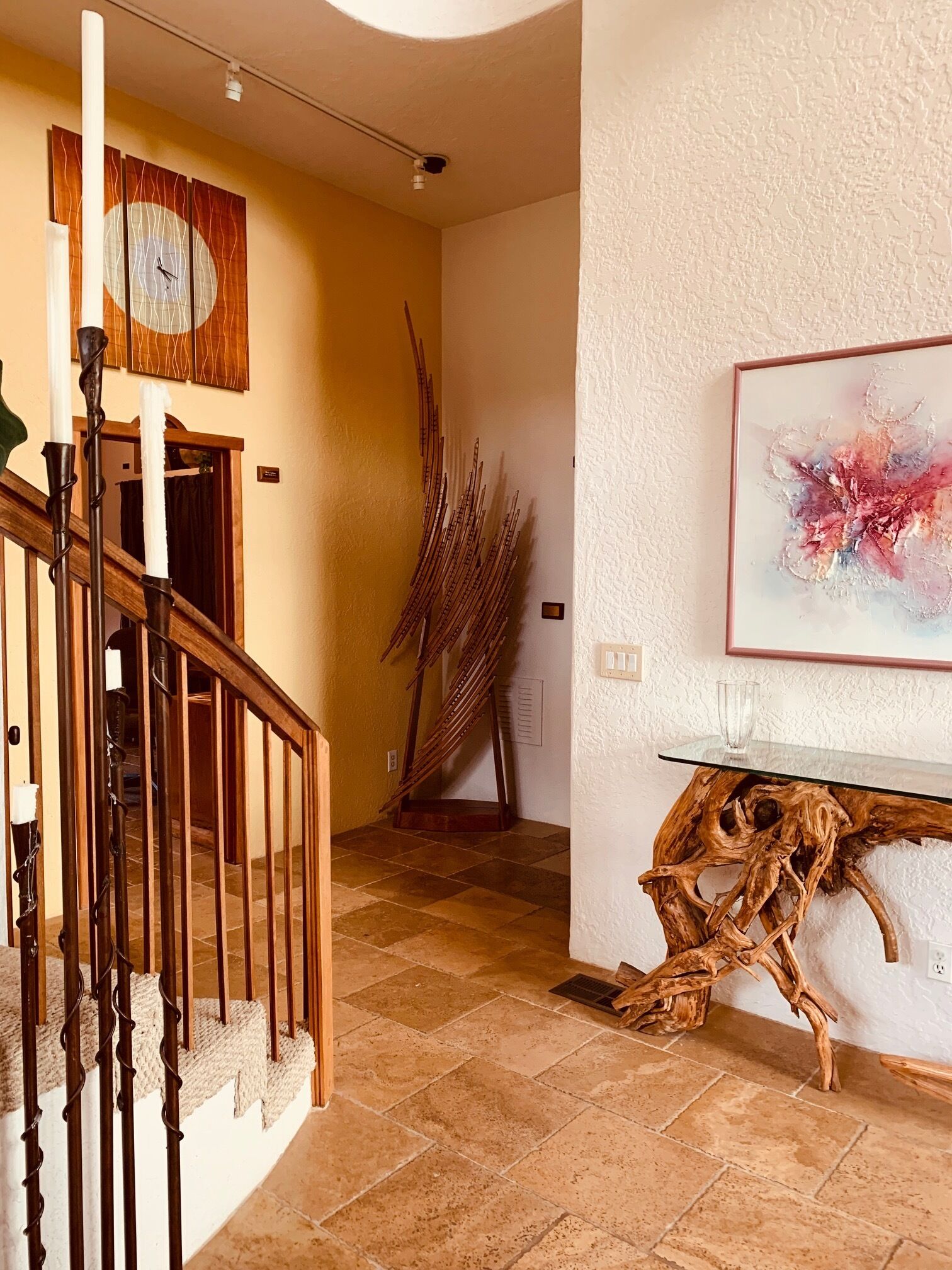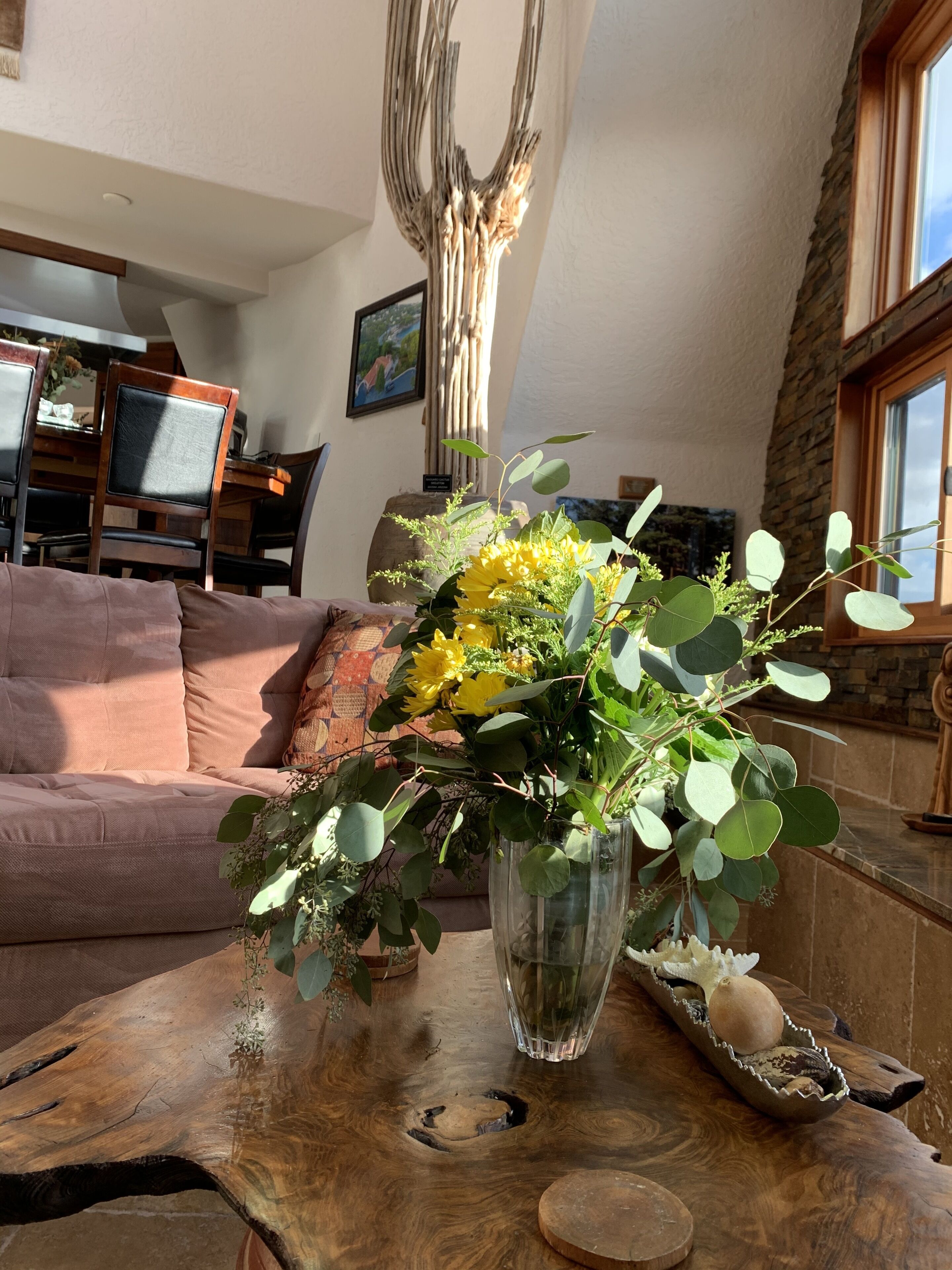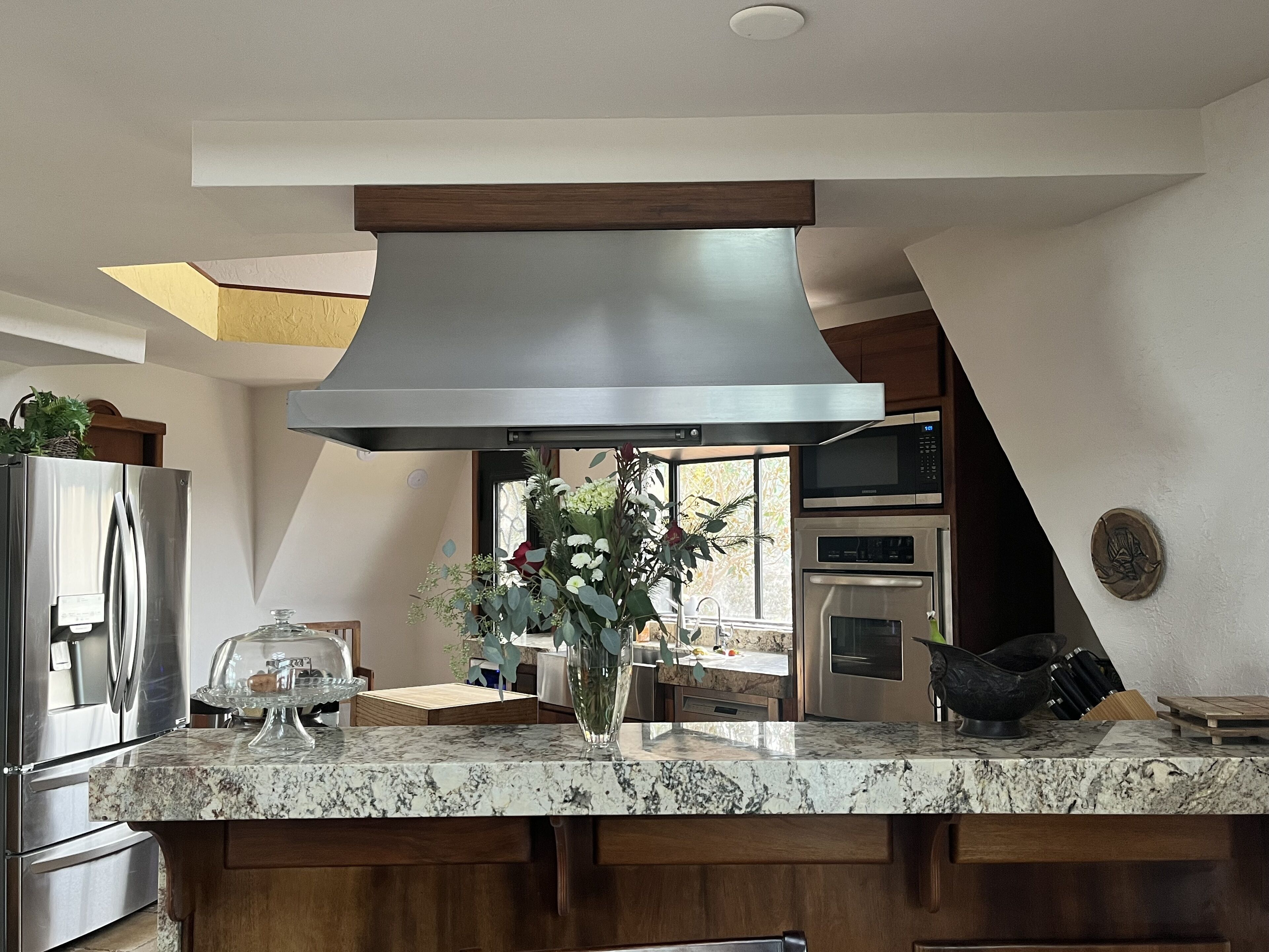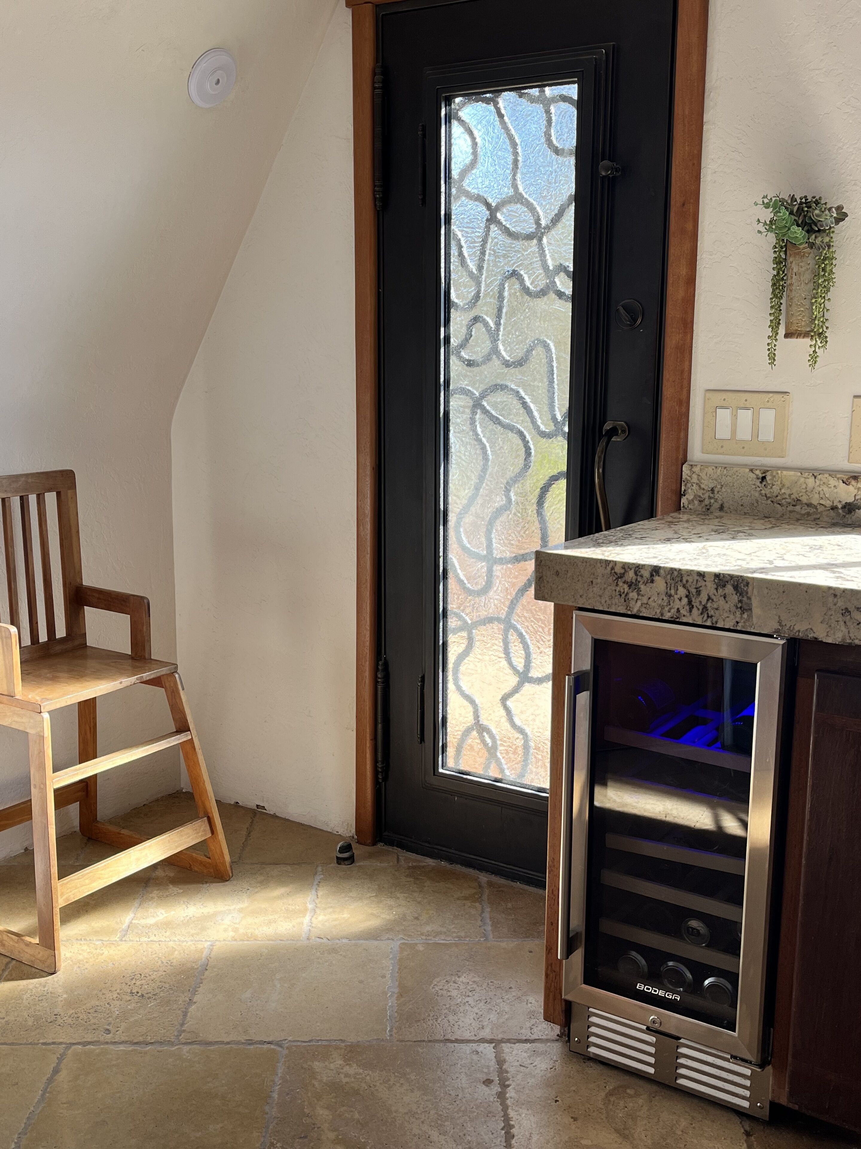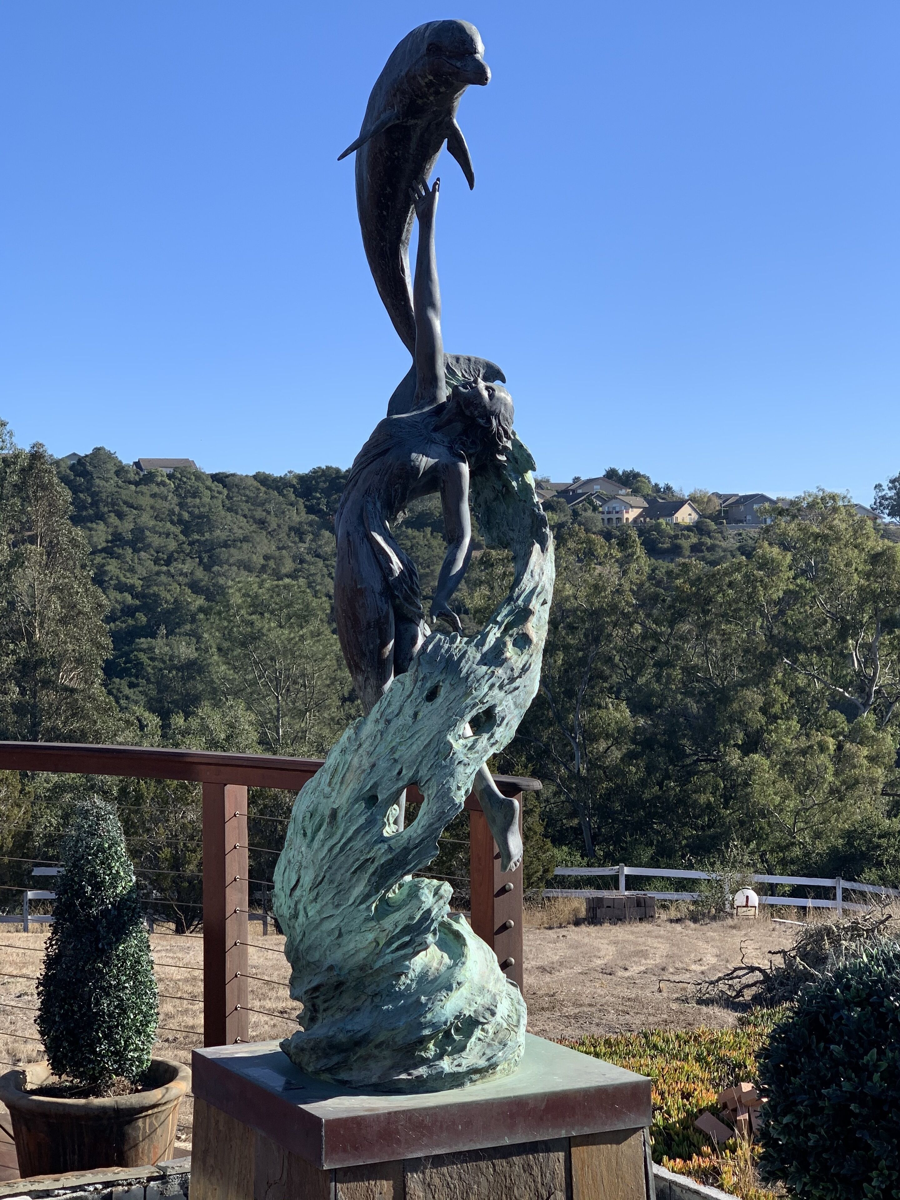 California Dreamin' Upscale Architectural marvel / Horizon ocean view on 3 acres Vista Seas is a custom geodesic dome located on a 3 acre hilltop, with a horizon ocean view of the sea, 5 min. from both Pismo or Grover Beach, 15 minutes from the airport, San Luis Obispoos many downtown cafes, breweries, boutiques and wineries galore.We are 1 minute from the 101 freeway and 5 minutes from anywhere in the 5 cities. A favorite just a 5 minute drive is the Old Town of Arroyo Grande with it's Saturday morning Farmer's market and a multitude of bistros, restaurants and boutiques. Another 5 min. drive takes you to Pismo Beach and it's new boardwalk and pier or try the 'drive on' sand dunes of Grover Beach. Another favorite beach to enjoy with it's many shops and bistros is Avila, a 15 min. drive. The upscale college town of San Luis Obispo is just a 15 min away and more to explore there. It's famous "Thursday night market" where downtown streets are closed off for outdoor vendors and restauants open to the street, it is a crowd pleaser for adults and kids. To keep you busy besides the beaches...did we mention we are centered in the very heart of California's Central Coast WIneries? Too many to mention and all start no more than 10 minutes away.Enjoy the quiet and views of oaks, pines and palms gazing down to the rim of the sea from the Tiger wood decking warmed by the interior/exterior fireplace. Enjoy the Japanese soaking cedar tub. Then take the curved stairs down to the lower stained cement patio and sit around the massive custom Chicago brick firepit with a curved stacked stone wall framing the upper deck. Ample arm chairs and couch with table to sit and enjoy the views with our art in place in the form of massive custom pots and their silk plants to soften the hillside views. Peace and solitude after your busy day.Walking through the custom steel and glass double entry doors you will find the space, light and tranquility that makes the interior of this custom home so unique. 33 foot (11M) high ceilings in the living area, hand troweled plaster walls and a stacked stone wall surrounding the gas interior/exterior fireplace with light from the 20 foot (7M) high custom framed windows that pours into the sunken living area creates an ambiance that is exceptional. The sunken living room fireplace opens out onto the circular Tigerwood deck, complete with seating, table and our unique bronze art piece, "Inspiration" from a L.A. sculptor.The living room with it's high ceiling is exceptional in open plan living with unique art throughout. All lower level floors are Travertine, the counters in the kitchen are Typhoon Bordeaux. In the open plan kitchen is a gas range and an oven with both convection or standard heat choices, all stainless appliances, ultra quiet Bosch dishwasher. Store your wines in the wine frig next to the sink! In the deep sunken living room is the hearth of Rain Forest marble and a massive stacked stone wall with custom 'picture framed' windows facing oaks and palms beyond our deck, is a unique Rainforest marble, as are the counters in the master bath. This theme of nature, stone, rock, and marble runs throughout the home, both in flooring and counters as well as the unique live edge wood furnishings. With such massive ceiling heights, it is the light, the light that makes this home feel as if you are living within nature inside and out. Theatre spot lights brighten up the art and walls in the evenings.Our eclectic art is often the most remarked comments by our guests. From an Egyptian tomb wall replica to an accent up light inside the bones of a Sedona Saguara Cactus set in an Indian Urhli ceremonial bowl keeps ouyr guests on the look out for what else is there? This all adds to the richness that our guests enjoy and helps create an atmosphere that this is not "just a rental" but a home of unique quality and comfort.The master bedroom is on the ground floor and has a California King mattress and en suite bathroom . The art continues with a massive Triptych photo of Bryce Canyon after a snow storm on the wall, as well as an antique Japanese wedding Kimono on another. Sit down at the foot of the bed on a Blue Pine live edge seat to change shoes for beach going flip flops.Before heading up the curved stairs, the office contains a live edged desk, sofa and cushion below the coffee table to play board games oin that are stored in the bookcase, also filled with books. This room features owner's passion for all things magic and has news articles, memorabelia galore to check out while hooking up your lap top.The two bedrooms upstairs have a queen bed in one and two extra- long singles in the third bedroom, with a Travertine tiled tub/shower bathroom in between. The mezzanine landing has a custom live edge "river" desk with ocean views, as well as a child's desk, with coloring books and crayons, kids books available as well. Teak furnishings allow for adults to set down a glass of wine on the Navajo drum, bought in Arizona on a reservation there. The horizon sea views from here are perfect for sunset watching or throughout the day.