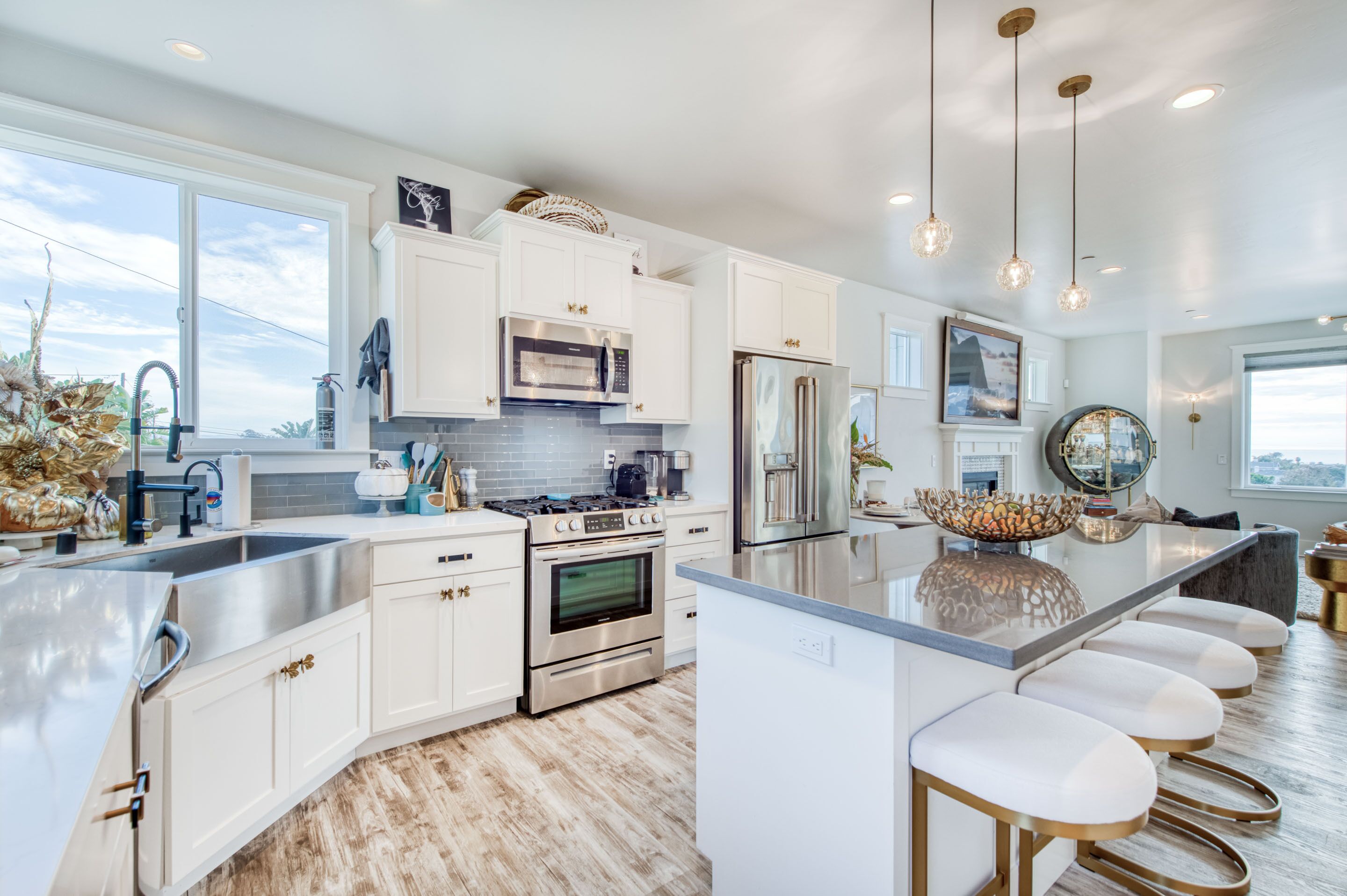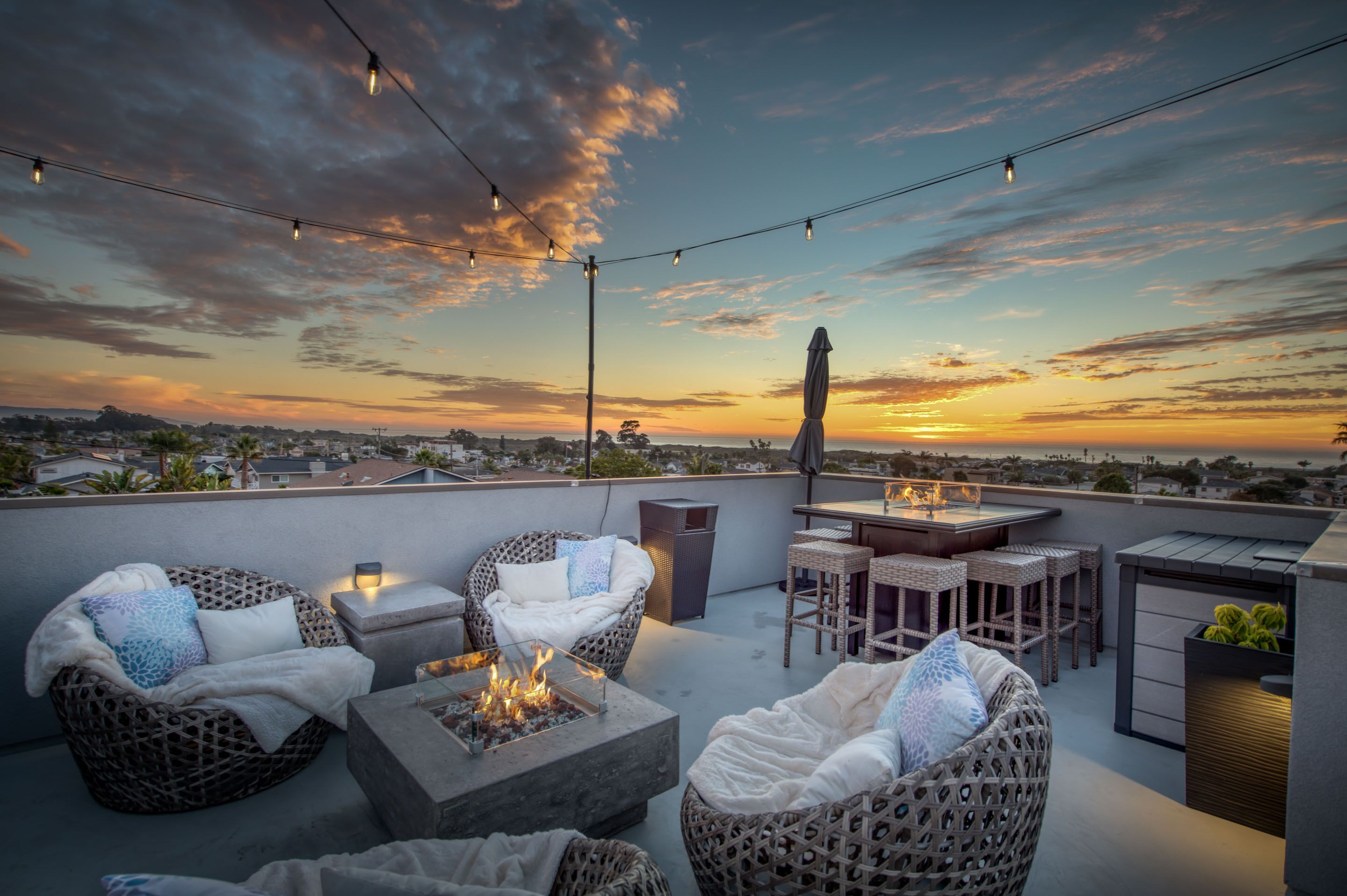 Papillon House a luxury escape with sunset ocean-view rooftop deck The best of coastal living awaits at this luxurious 4BR/3.5BA Papillon House, situated within walking distance to dining and the beach. Interior perks include designer furnishings and high-end finishes throughout, a stunning kitchen, and two suites. Enjoy daily sunset views over the ocean from the amazing rooftop deck, outfitted with lounge areas, fire pits, a gas grill, and alfresco dining.The Papillon House is a 4 minute walk to explore eateries, cafes, and shops along West Grand Avenue. Stroll 15 minutes to the beach at Ocean Dunes Nature Preserve. You're also just a short bike ride to downtown Pismo, Shell Beach, and Arroyo Grande. Venture out to tour a host of wineries in Edna Valley, and north to Paso Robles -- your adventure awaits you!LIVING AREAUnwind into vacation mode on the sectional and armchairs in the living room. After sunset, light the gas fireplace, kick back, and settle in to stream favorite shows on the smart TV.Curl up with a good book in the sunlit foyer, which features a plush sofa chair and smart TV.KITCHEN & DININGLet your culinary skills shine in the pristine kitchen, equipped with sleek stone countertops and stainless steel appliances. Gather for breakfast at the island bar with seating for four on the breakfast table for two.BED & BATHThis vacation rental accommodates eight guests in four bedrooms - each equipped with a smart TV.Comfort awaits in the primary suite, complete with a king bed and an en-suite bathroom with a double vanity, jetted soaking tub, and a walk-in shower.Sleep soundly in the second suite, featuring a queen bed, smart TV, direct patio access, and an en-suite bathroom with a walk-in shower.One guest bedroom features a queen bed, while the other is outfitted with a full-size daybed and a desk. The guest bathroom comes with a tub/shower combination, while a half bath provides an added convenience.OUTDOOR AREA & AMENITIESDelight in daily sunset views over the ocean from the rooftop deck, boasting two lounge areas with fire pits, a gas grill, bistro tables, and alfresco dining.Sip morning coffee on the balcony, featuring bar seating for three, two armchairs, and a gas fire pit. Or practice your short game on the private putting green in the backyard.EXTRA PERKS & MORE DETAILSGuest amenities include complimentary Wi-Fi and a washer/dryer. This property is not well suited for children under the age of 18 due to unsafe furniture and the patios. This home is not equipped with air-conditioning.LOCATIONWalk 4 minutes to restaurants, cafes, and shops along West Grand Avenue. Stroll 15 minutes to the beach for sun-kissed days along the sand and surf.Discover antique and specialty shops, historic buildings, fine dining, and true Americana culture in the Historic Village of Arroyo Grande. Explore the wineries just north in Edna Valley and Paso Robles.No pets are allowed at this vacation rental.Parking notes: Designated parking is available for 1 car in the driveway. There is no garage parking. There is plenty of FREE neighborhood street parking. You must be 25 years or older to rent this propertyProperty is a licensed vacation rental with City of Grover Beach - STR-0152