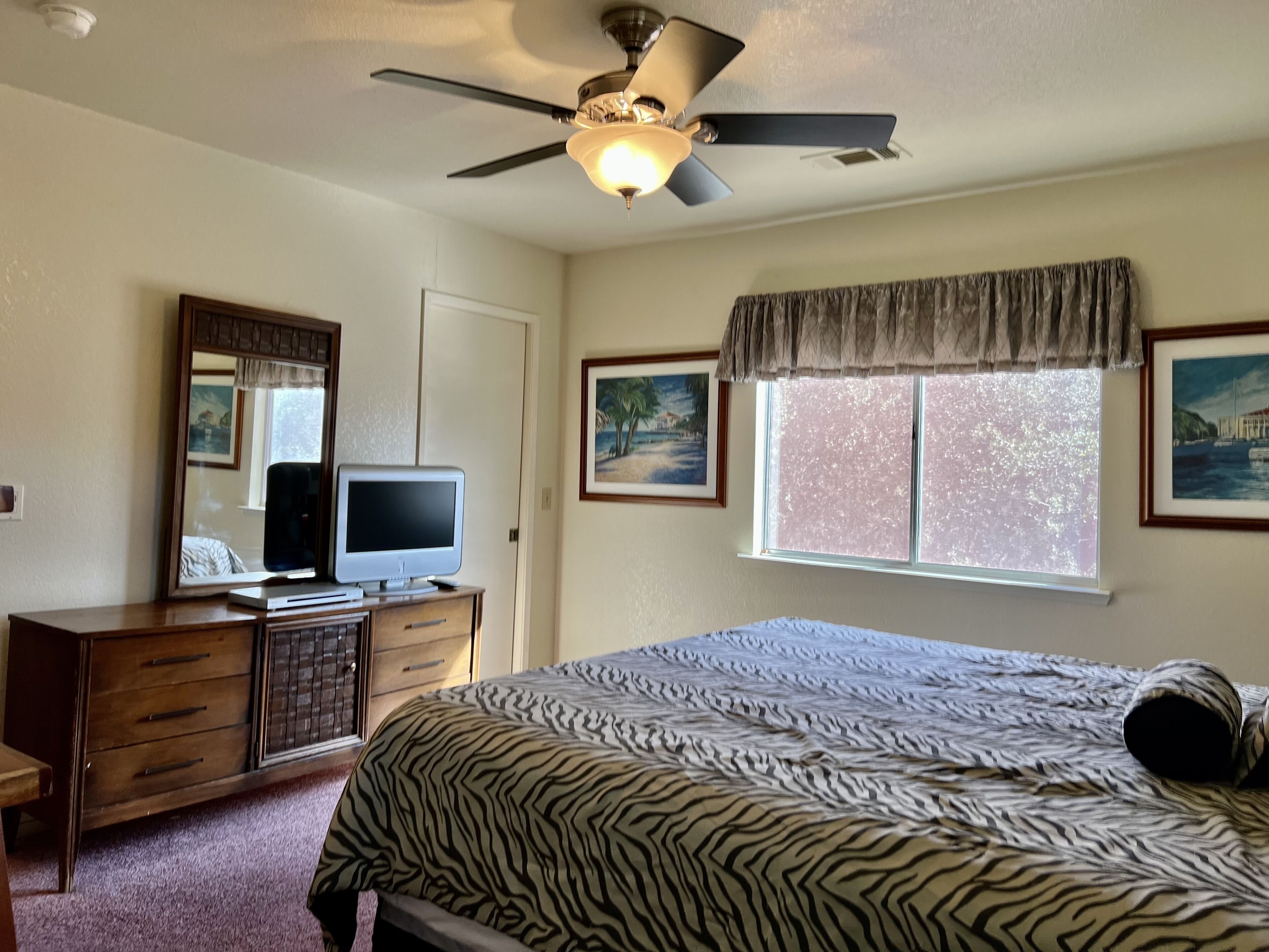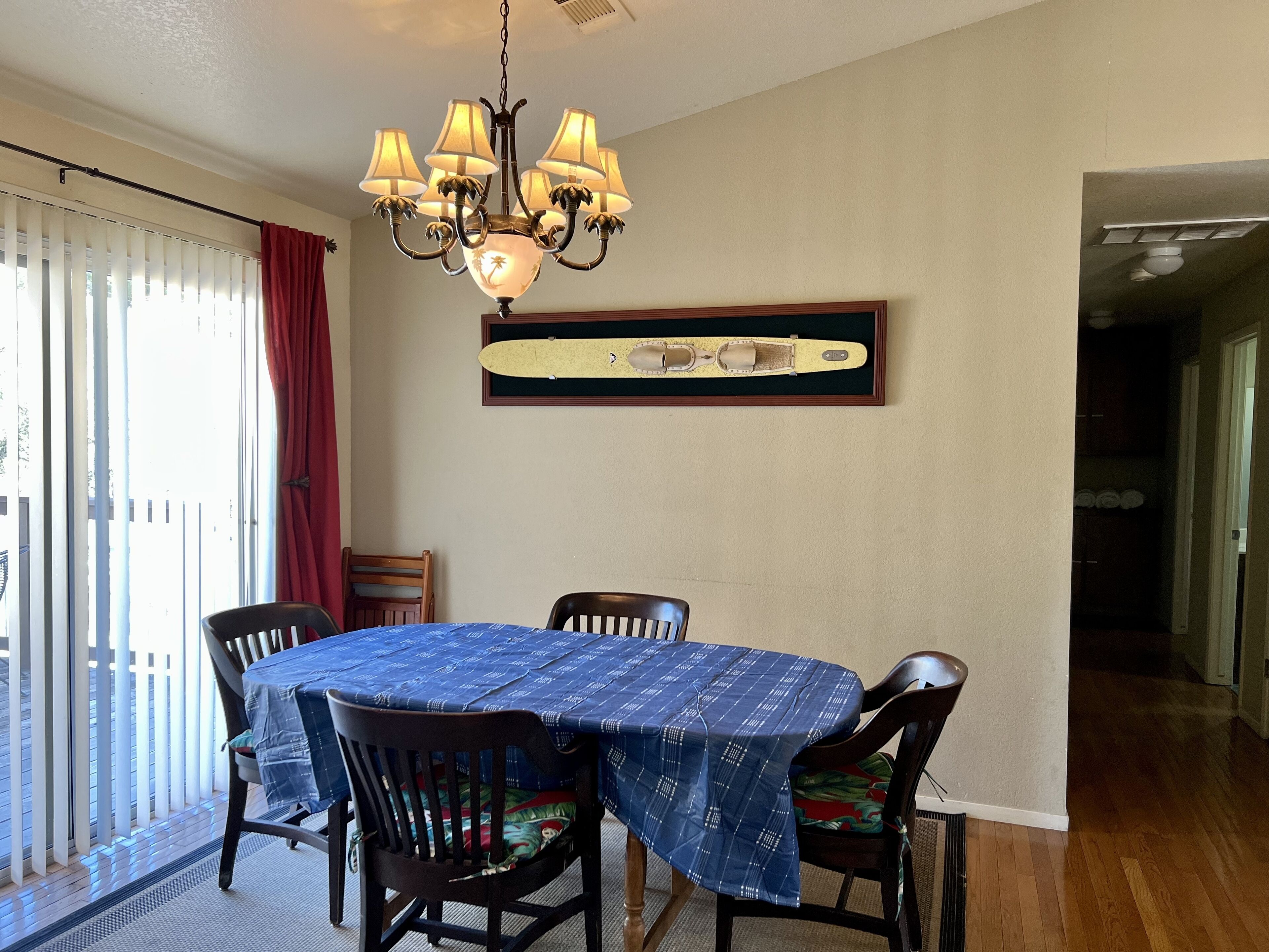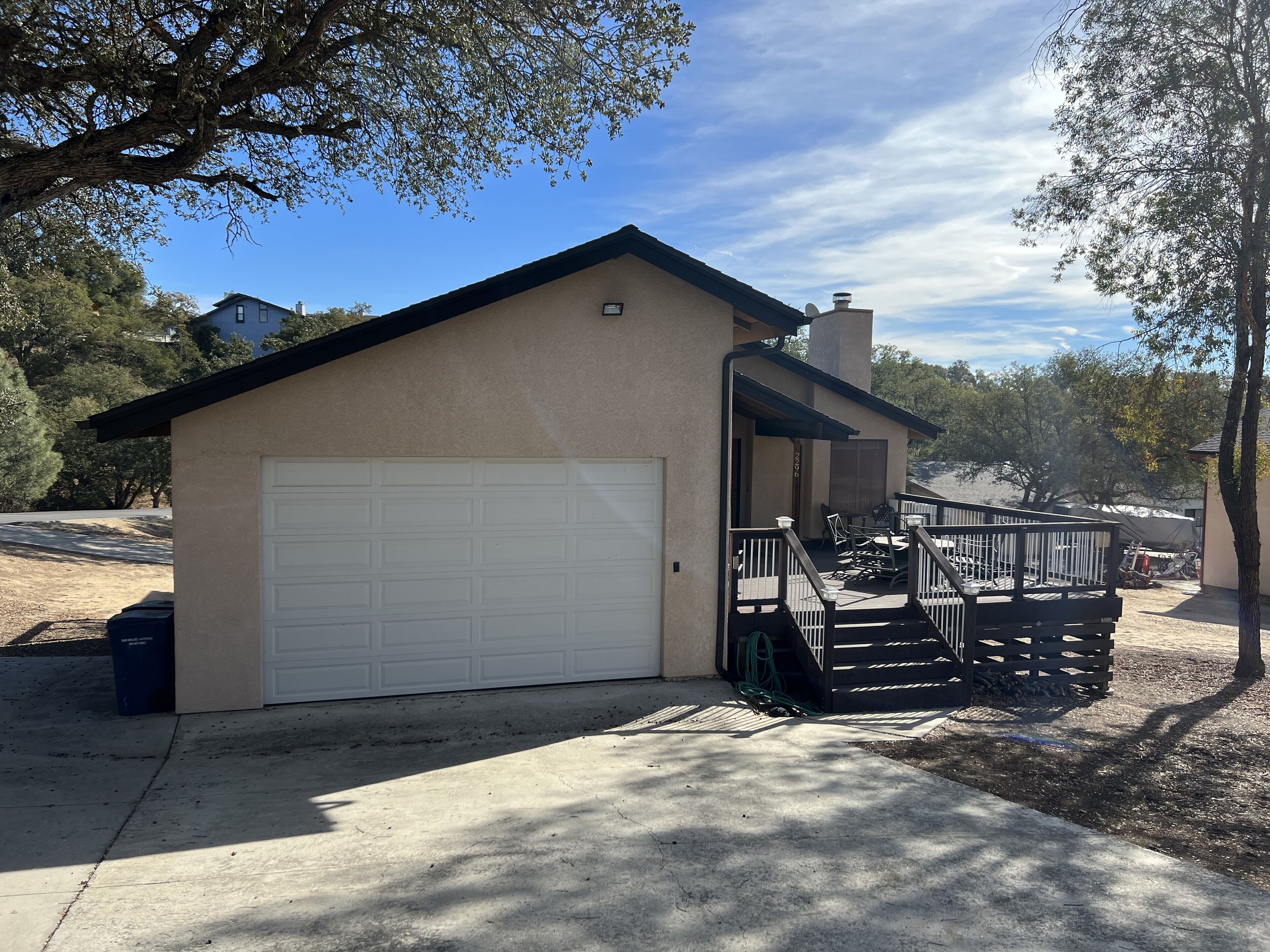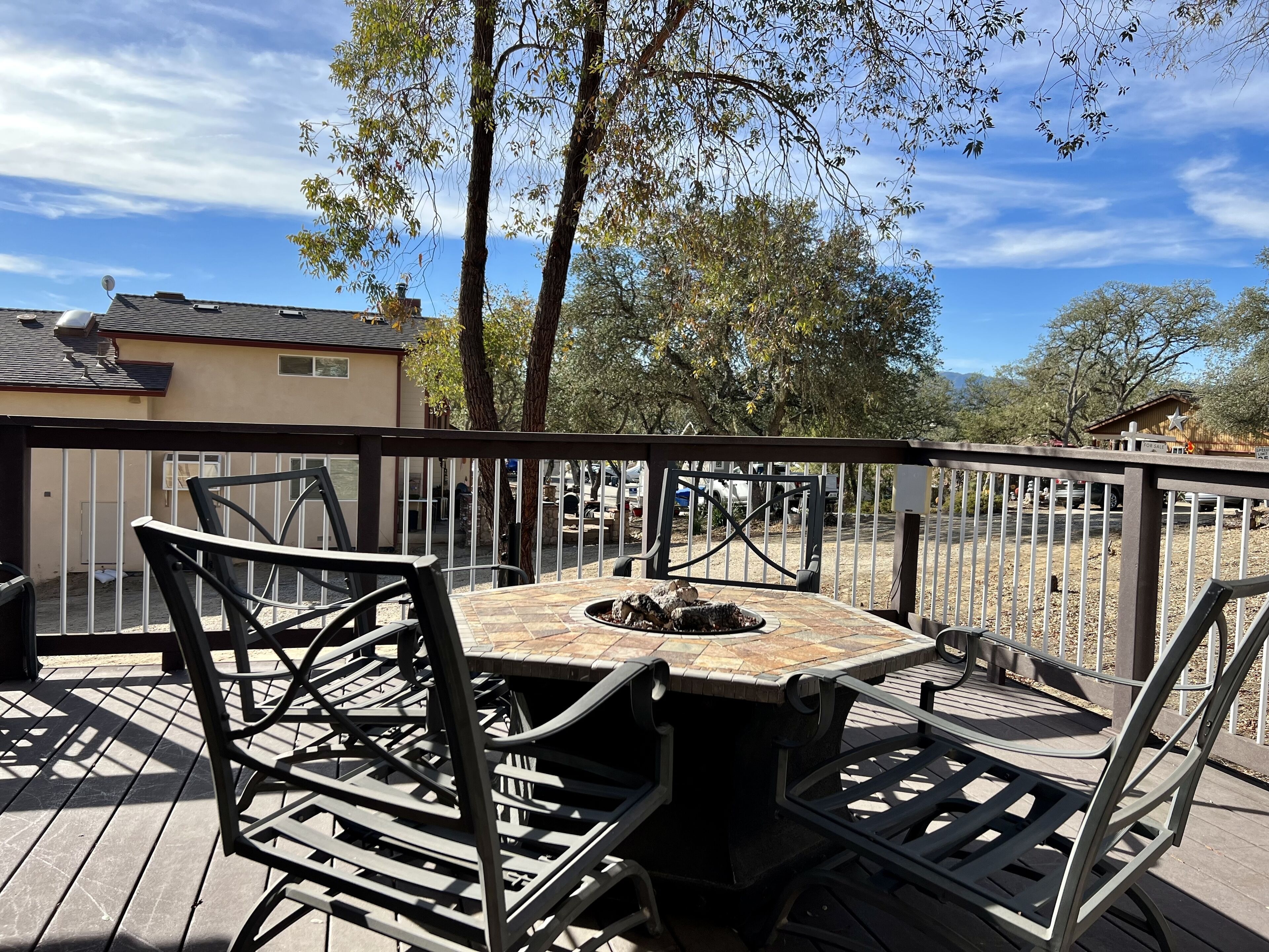 Enjoy the outdoors with home so close to the miniature golf course in Oak Shores We have 24/7 Onsite Management to make sure you have the best experience. 8 adults 16 and older maximum. $25 per day watercraft fee to bring in the community, first 2 cars are free, $15/night for additional vehicles. ***IF YOU ARE BRINGING A WATERCRAFT IT MUST BE CLEAN, DRAINED AND DRY AND NOT HAVE HAVE BEEN IN A MUSSEL INFECTED BODY OF WATER 30 DAYS PRIOR TO ARRIVAL***There are upgrade options too! -Add a boat -Add a Driver or Limo for Wine Tasting -Let us set up other area activities such as Horse Back Riding or Zip Lining Home is located in Oak Shores at Lake Nacimiento with Linen, Bath Towels and Sundries included. Communities amenities include: Private Marina 18 hole miniature golf course Outdoor Basketball Play Ground Swimming Pool (not heated in the winter)This three bedroom two bath 1200 square foot home is truly a Lake Safari cabin. The home has easy boat parking as the lot is relatively flat. Also, this home considers pets. From the driveway you walk up the steps to a large deck with a beautiful fire pit. You enter the home into the living room area with a TV with Satellite and stereo system that you can hook your IPod into as there are speakers on the outside deck. Off the living room is a dining area that has a door that open onto the side deck with the propane BBQ. The kitchen is off the dining area. The kitchen has a propane range, microwave, dishwasher, and refrigerator. The kitchen is equipped with dishware, glassware, utensil, and pots and pans for ten. On the other side of the dining room is a hallway that leads to the two guest bedrooms with queen beds and full bath. Further down the hall is the Master bedroom with its en suite bathroom. The home has air conditioning and heating for your comfort. Back by the kitchen is a doorway that leads down to where the washer and dryer are housed. Now the surprise! If you walk down the outside front deck to the side of the home, there is a door. Opening that door takes you to the Lake Safari game room that has two sets of bunk beds, seating area with TV, bar, Foosball and Pool Table. On the other end of the game room is a sliding glass door if you want to exit on the other side of the house. The game room has tile floors which keeps this room cool year round.
