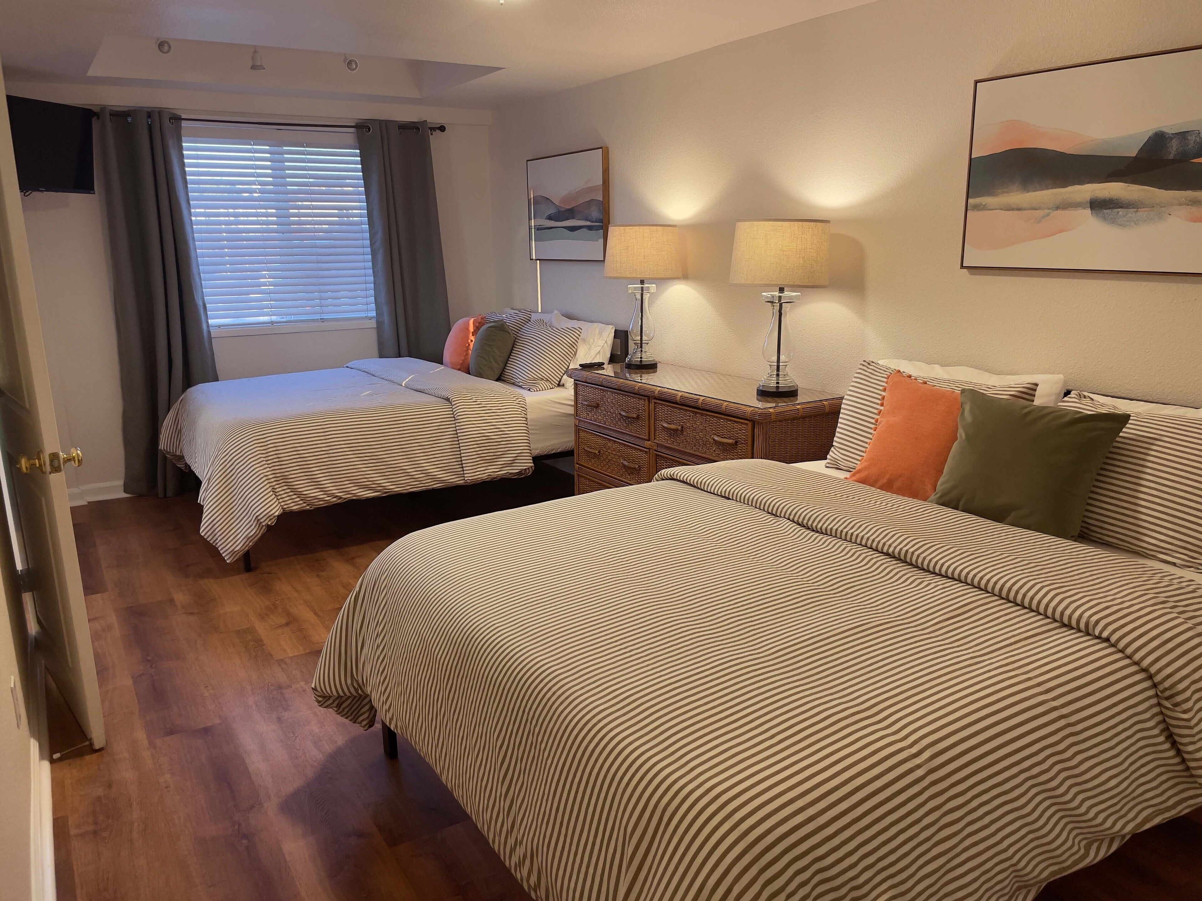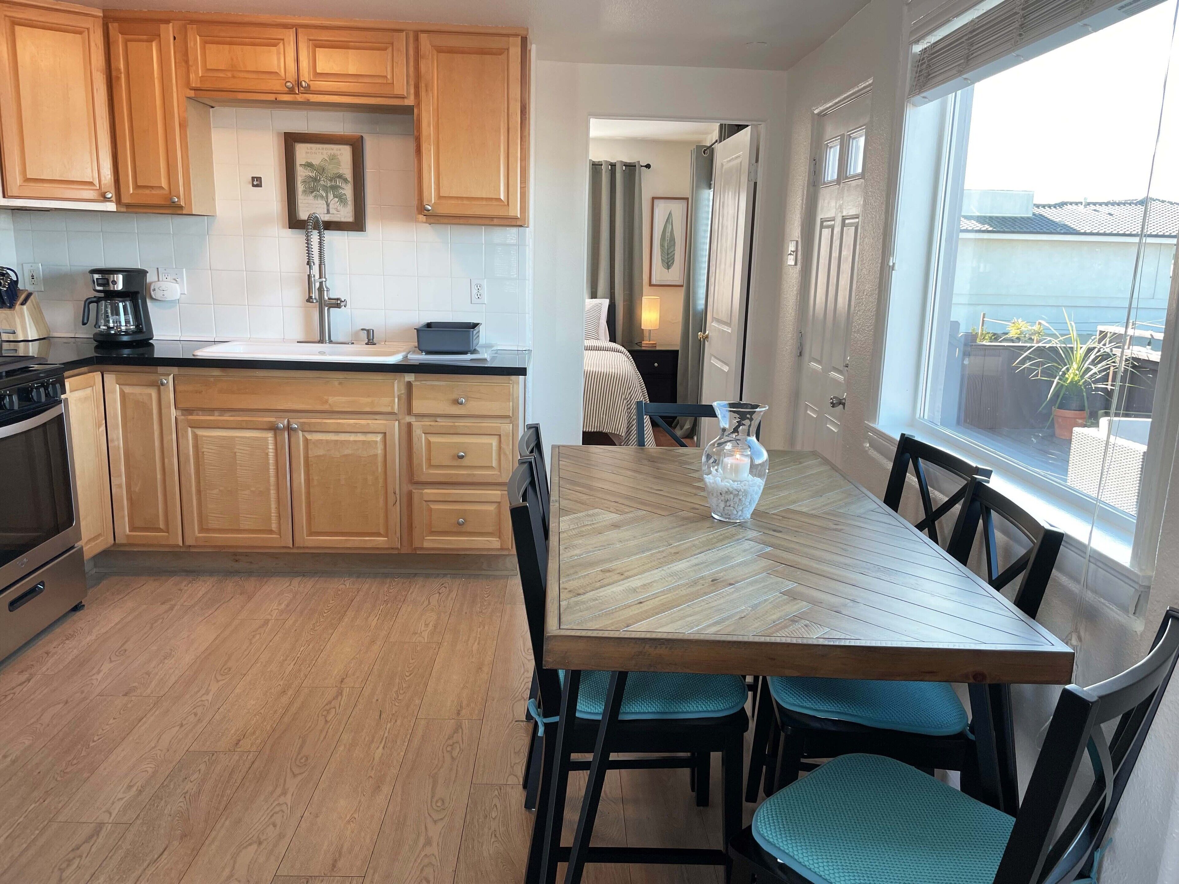 Fog & Stars Cottage - Just steps to Embarcadero, water & downtown! Welcome to the charming seaside town of Morro Bay! Fog & Stars cottage is a triplex located in the heart of Morro Bay and boasts an incredible view of the sunset, ocean, and the famous Morro Rock. As a guest of Fog & Stars unit 218, you’re just a two-minute stroll from the many colorful and fun establishments along Embarcadero Street and a five-minute drive to the beach. With your close proximity to both water and nearby woodlands, there’s no shortage of things to do. Activities include hiking on more than a dozen scenic trails, biking, kayaking, surfing, fishing, paddle boarding, bird watching, whale watching and of course, cooing at the adorable sea otters and chunky sea lions. After burning all those calories, you probably will be feeling quite famished. Don't worry! An array of fantastic restaurants are within walking distance of Fog & Stars cottage. Whether it be fresh seafood on Embarcadero street or spicy Thai food downtown, you will never run out of choices. Speaking of downtown, you can stop by the historic Bay Theater for the latest movie, then do some shopping at the quirky vintage shops the area is known for. Feel like putting on your favorite sweats and staying in for the day? Well, the gel foam memory mattresses in Fog & Stars are perfect for you to luxuriate on and watch your favorite show or movie. There's a TV in every room so no need to fight over the remote. We also offer a variety of games and books both kids and adults can enjoy. If the day is too pretty to stay indoors, step outside onto the spacious, private deck and while you're out there, why not fire up the bbq for the family or enjoy cocktails among friends. If romance is what you're after, go ahead and snuggle up with your partner while taking in the spectacular sunset. This truly is the perfect place for a family adventure, a friend-cation or a romantic getaway.