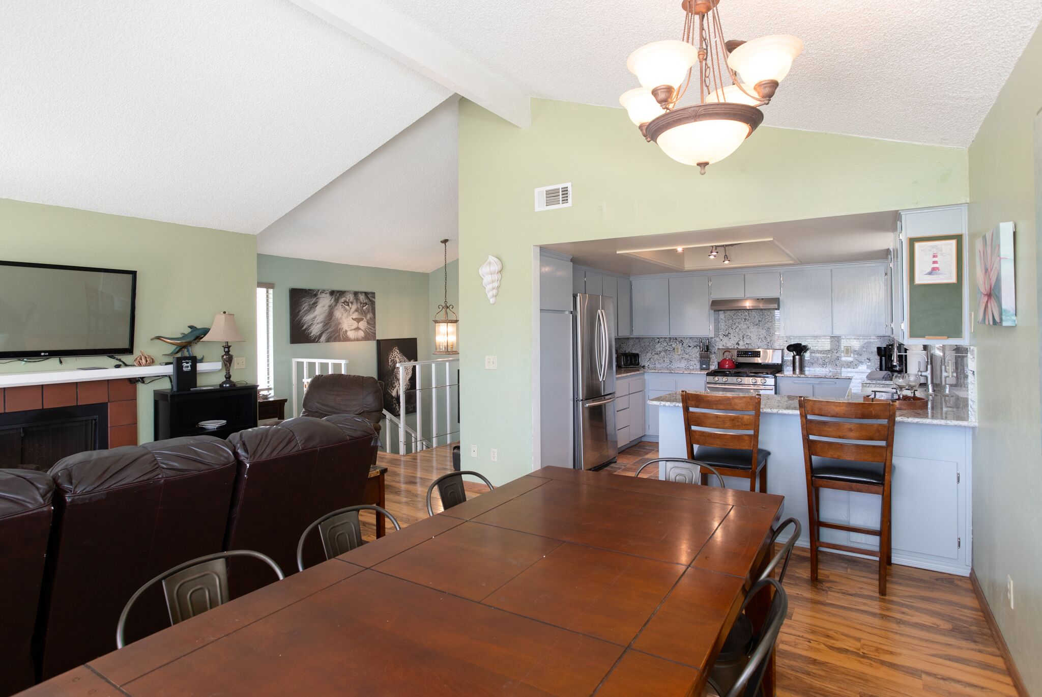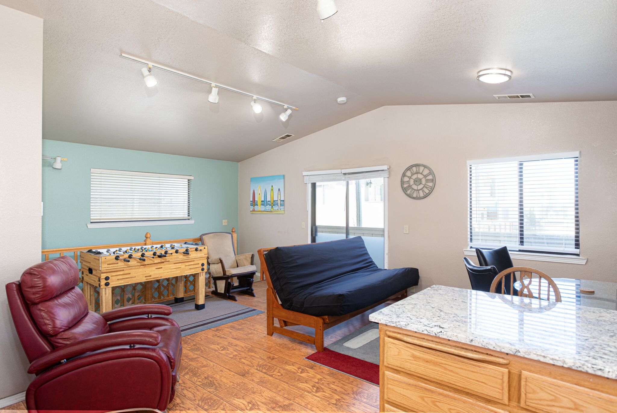 Beautiful Large Beach House with Lagoon Views! Spacious beach house only a block from the beach! Perfect for large family gatherings, retreats, sports teams or other gatherings. This house can accommodate up to 14 people comfortably with 5 bedrooms, 4 bathrooms, a full kitchen, a family room, kitchenette, and plenty of parking. Enjoy a quiet evening next to the fire place or BBQ a meal for the whole group on the deck. Hours of entertainment can be had with a foosball table, TV's in every room and the nearby dunes. All the comforts of home are provided with a fully stocked kitchen, washer/dryer, and wifi. Make your vacation unforgettable in this beautiful beach house with lagoon views.THIS IS A DRIVING BEACH! More info in the link below.https://californiathroughmylens.com/driving-on-sand-pismo-beach/This area is among the most popular and unique of California State Parks. The 5 1/2 miles of beach open for vehicle use and the sand dunes available for off highway motor vehicle recreation are attractions for visitors from throughout the United States. Oceano Dunes is the only California State Park where vehicles may be driven on the beach. Four wheel drive / all wheel drive vehicles are recommended for driving on the beach and to the camping and off-highway vehicle use areas in the park. Beach wheelchairs are available for loan at the Pier and Grand Avenue entrances to the beach. Surfing, swimming, surf fishing, horseback riding and bird watching are popular activities. Just a few miles up the coast you'll find more activities like kayaking, cycling, wake boarding, board walking, wine tasting an so much more! Also close to restaurants, shopping and medical attention. Amenities Include: - Pet restriction: N/A - Pets Considered w/Fee: NO PETS - Accommodates: 14 - Bed Size 1st/ Primary: King - Bedroom - Primary TV: YES - Bed Size 2nd Rm: Queen - Bathroom Two: Second Tub/shower - Bedroom 2 TV: YES - Bed Size 3rd Rm: Bunk Beds - Bedroom 3 TV: YES - Bed Size 4th Rm: Queen - Bedroom 4 TV: YES - Bathroom Four: Master - Bed Size 5th Rm: Bunk Beds - Bed Size Living RM: Queen Futon - Pack&Play Available: Yes - Blowdryer(s): NO - FamilyRM TV: YES - LivingRM TV: YES/YES - Fireplace, Wood/Gas: Wood - TV Cable/Satellite: Charter - TV Service: Charter - Kitchen Accessories: YES - Coffee Maker/ Keurig: Drip - Kitchen Dinnerware: YES - Micro/Dishwasher/Disposal: YES/YES/YES - Stove/Gas: YES/YES GAS - Refrigerator and Ice Maker: YES - BBQ Grill: YES-PROPANE - Washer/Dryer: YES/YES - Iron w/Board: NO - Air Conditioning: Yes - Thermostat Level: 1st/kitchen- 2nd/game room - View: Pismo Dunes/Ocean - Deck: YES - Cars allowed Premise: 5 - Parking: 1 Car Garage-3 Driveway - Beach Distance: 1 Block - Smoking: NO SMOKING - Ceiling Fans: N/A - Spa: NO - Square Footage, Est.: 2,352 sqft - Year Built: 1976