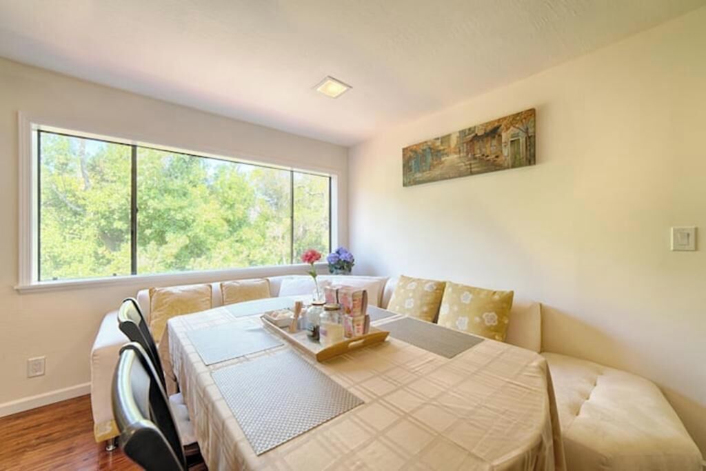 Millbrae Premium Residential Area Near San Francisco Airport Cozy Villa Millbrae City, near San Francisco Airport, has a beautiful environment, a comfortable climate and a safe and convenient life.Thoughtful amenities are prepared in the room, kitchen, laundry are free for guests, making it the best choice for tourist and business guests.· 8 mins drive to airport· 5 mins drive to Millbrae Bart Station· 5 mins drive to highways 280 and 101· 10 minutes drive to COSTCO, a large mass market opening· 20 to 30 minutes drive to downtown San Francisco, Golden Gate Bridge, Fisherman's Wharf, Stanford University, Silicon Valley· 3 minutes drive to downtown Millbrae:Sun's Market New Natural Chinese SupermarketSafeway 、Lucky 美国大型生活超市Trader Joe's 美国新鲜超市Walgreens 24小时药店、便利店Starbucks coffee 咖啡店Paris Baguette 面包店USPS, UPS Express【 Nearby shopping and food center 】· Tanforan Center 10 min drive· Serramonte Shopping Center 12分钟车程· Hillsdale Shopping Center 15分钟车程The spaceSituated in a beautiful valley and enjoying the fresh air, the room is warm and comfortable and fully equipped with amenities including a USB adapter, cell phone charging cable, sewing kit, disposable cutlery, disposable slippers and disposable cotton towels, bottled water, coffee and tasty cup noodles, children's book toys, and much more. The house can accommodate up to 18 people.Guest accessGuest room, toilet, kitchen, dining room, laundry room, terrace.Other things to noteThis villa has 3 floors. Other people live upstairs. This listing is for the 2 floors downstairs, guests need to walk down a flight of stairs to get to the guest room when they check in.