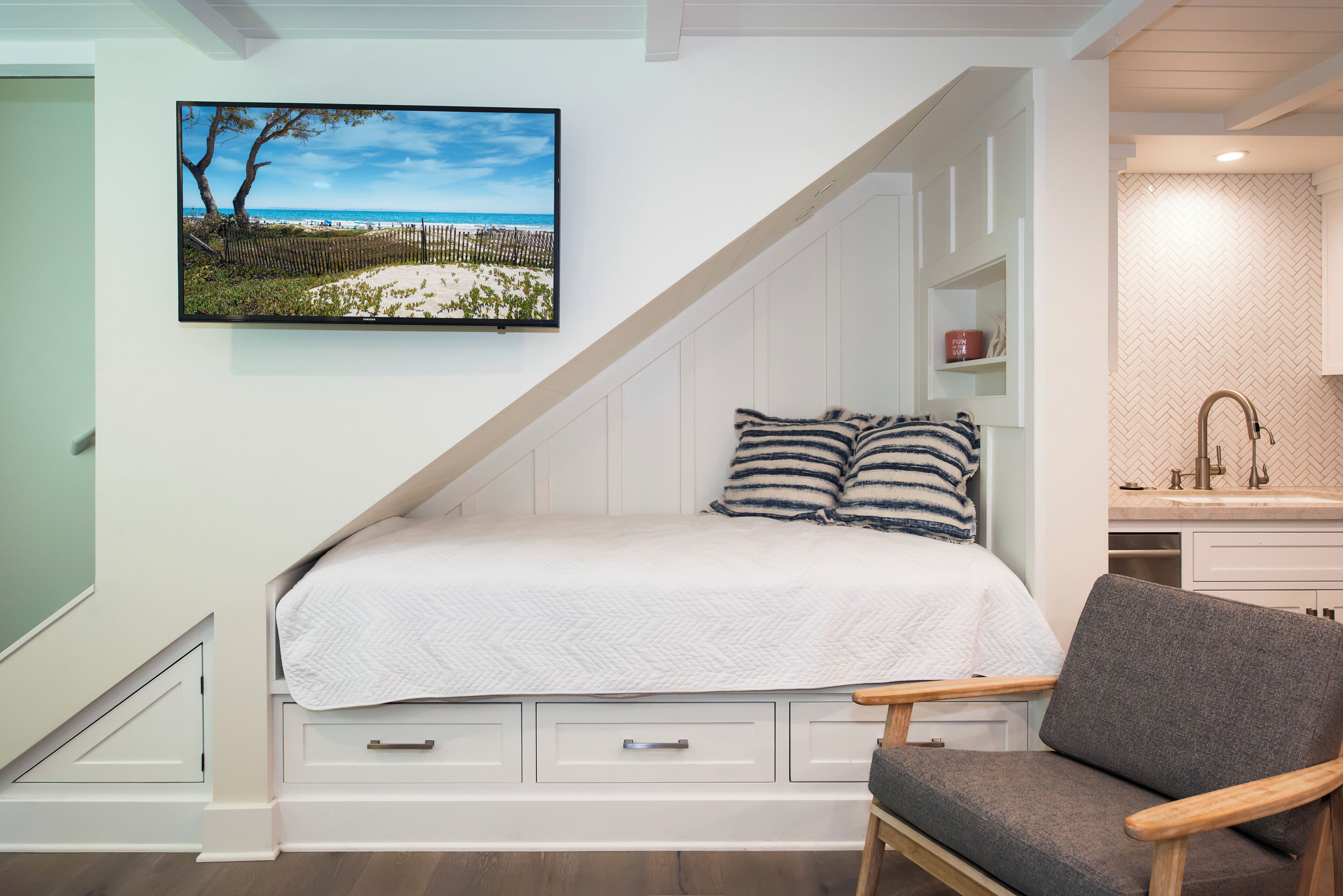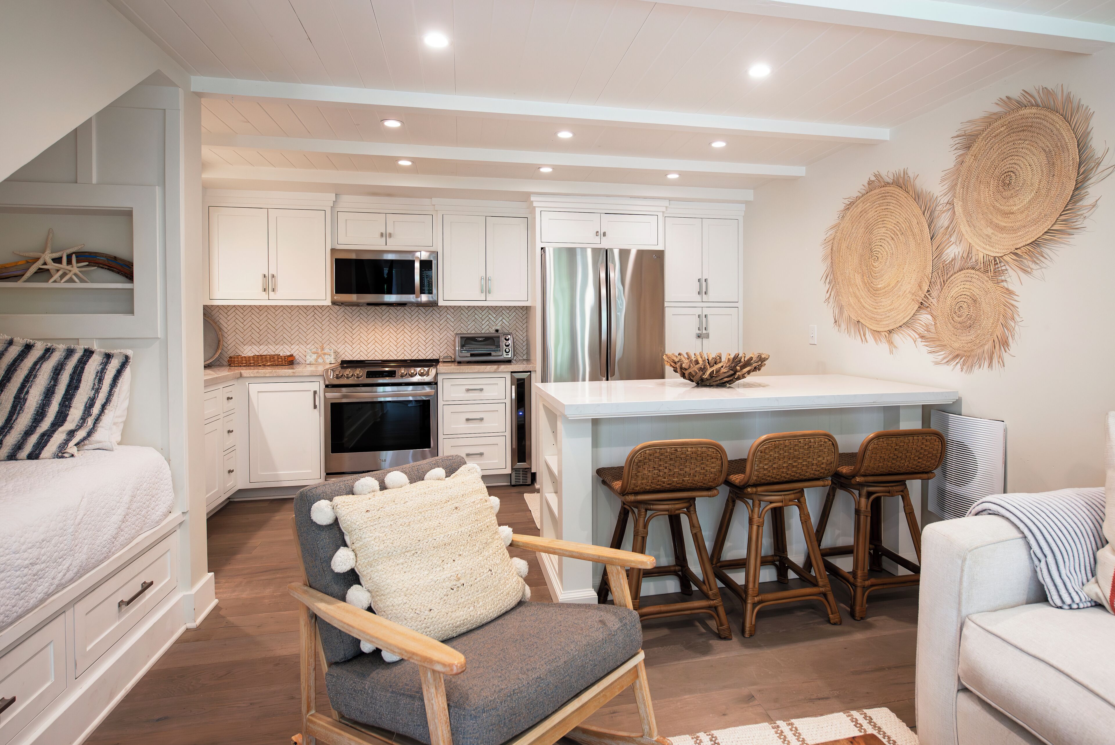 BEST LOCATION! One Block to the Beach. Walk Everywhere! Enjoy a stylish experience at this centrally-located beach bungalow. One block to the worlds safest beach and epic sunsets. Walk downtown. This one bedroom loft style condo offers all the amenities. Fully remodeled with high end finishes, wine fridge, Nespresso coffee, a rain shower, pull out queen sofa bed, cozy twin bed nook under the staircase. Perfect for kids! Fully stocked kitchen, beach chairs, boogie boards and more. We would love for you to be our guest at our sweet beach bungalow.