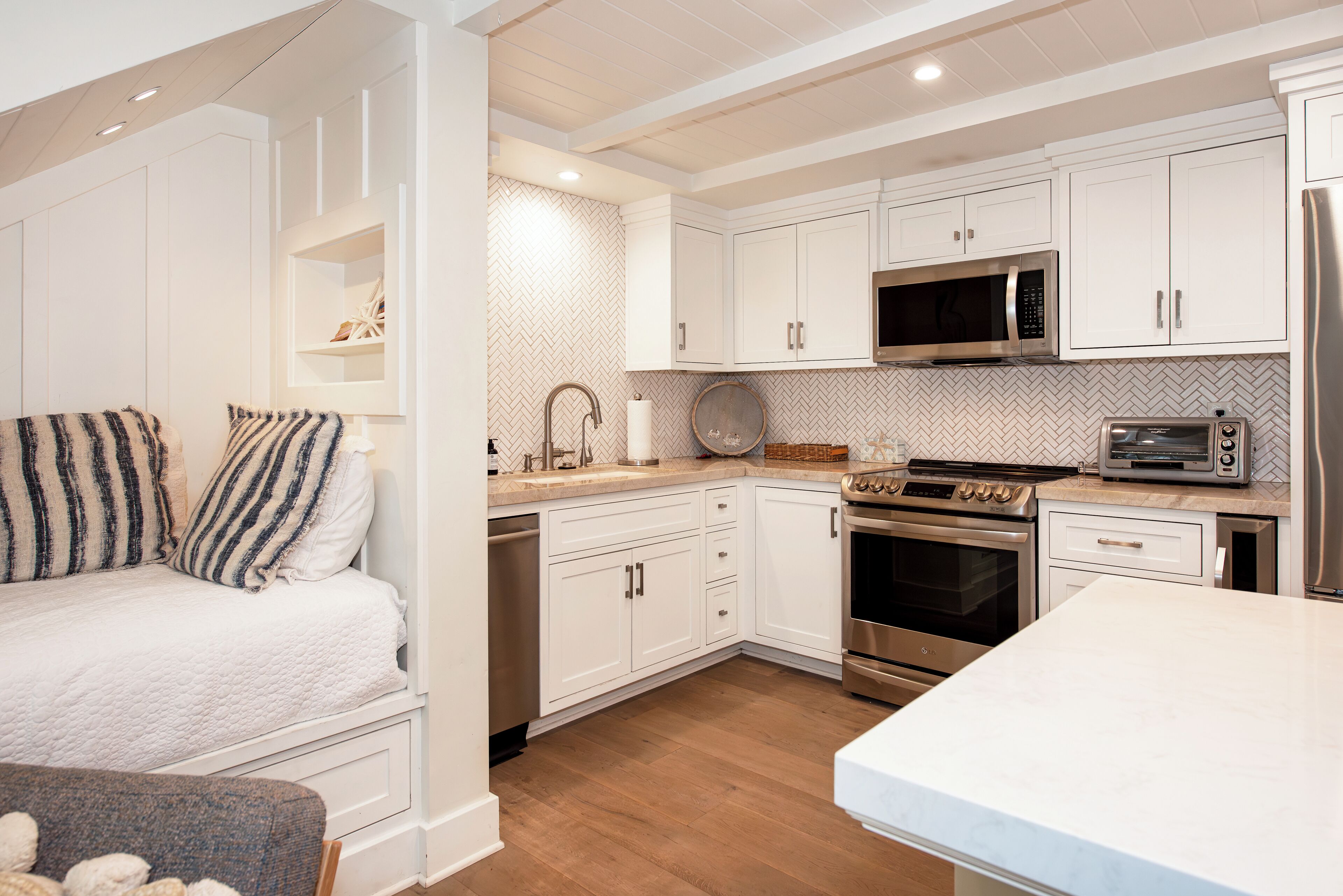 BEST LOCATION! One Block to the Beach. Walk Everywhere! Enjoy a stylish experience at this centrally-located beach bungalow. One block to the worlds safest beach and epic sunsets. Walk downtown. This one bedroom loft style condo offers all the amenities. Fully remodeled with high end finishes, wine fridge, Nespresso coffee, a rain shower, pull out queen sofa bed, cozy twin bed nook under the stair...