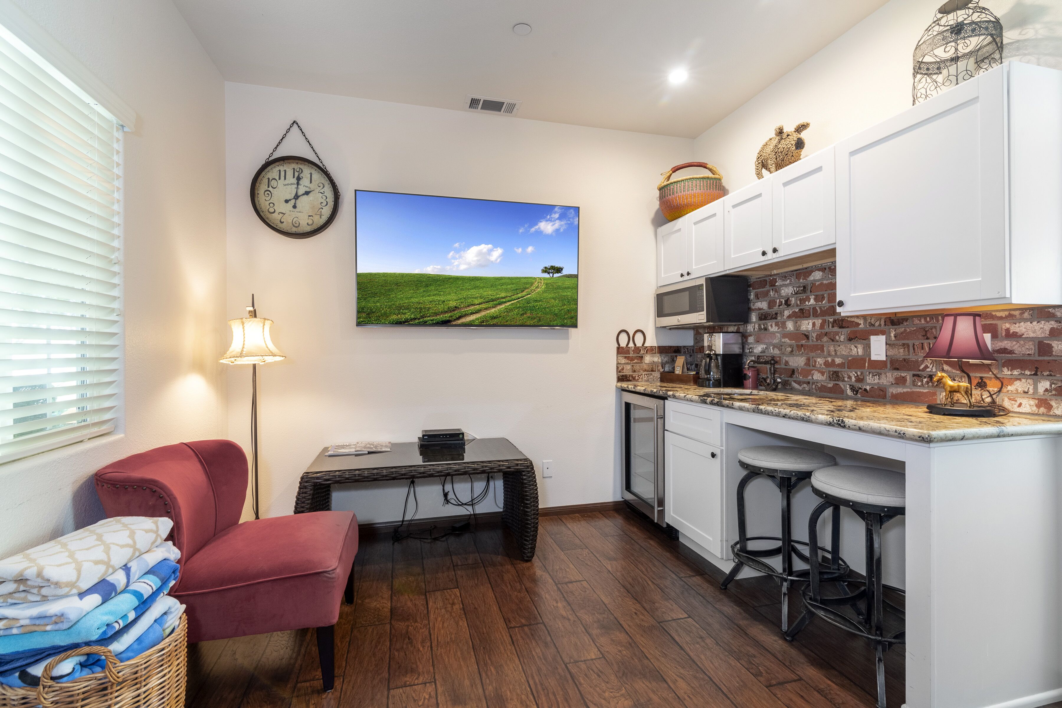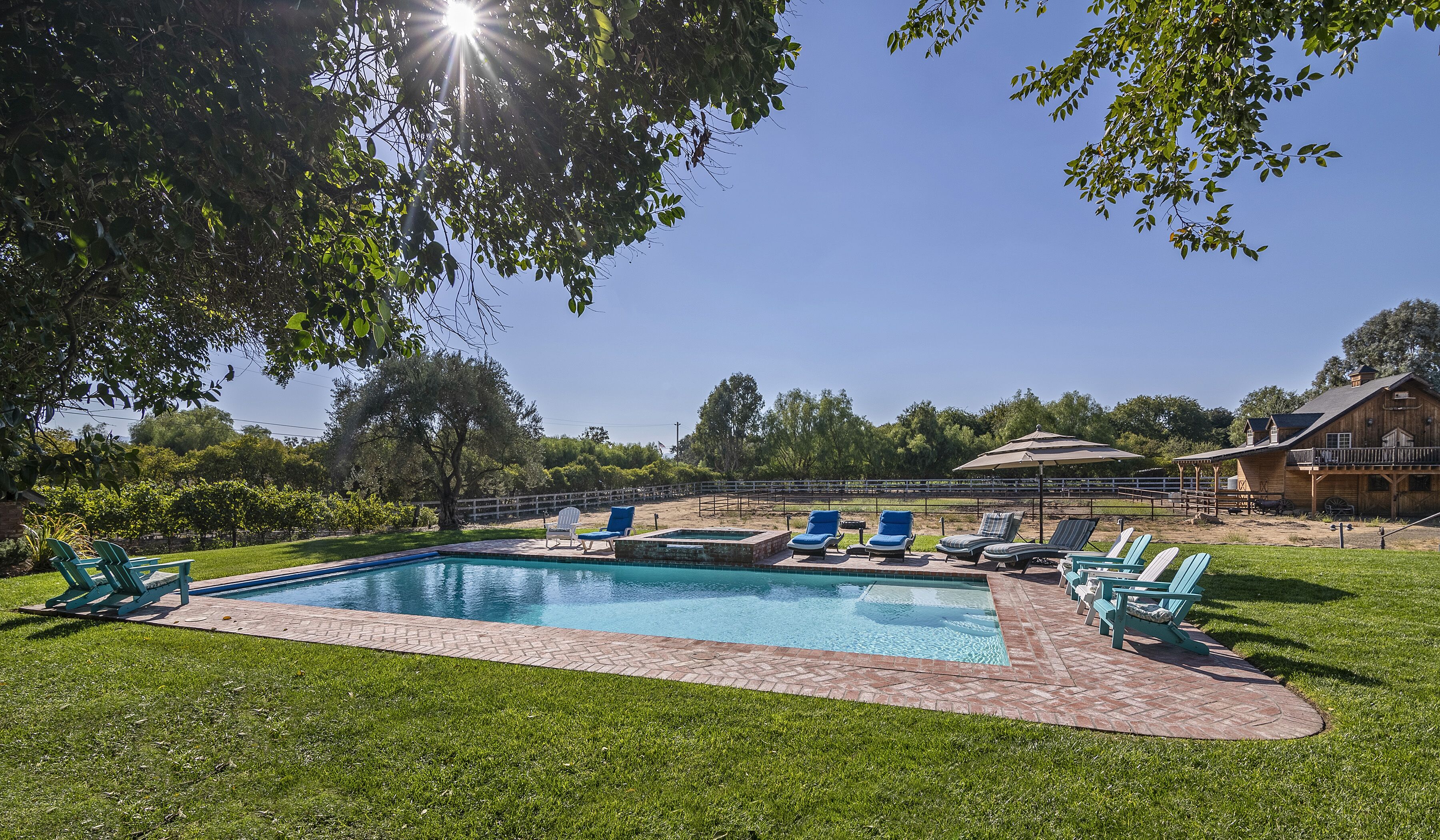 Delightful Dutch Farmhouse with Guest House A newly restored Dutch farmhouse, located on 5 gorgeous acres in Santa Ynez. You will soon see that Goodgame Ranch is a property right out of the movies! Close to town, this home features lush park-like grounds with a pool, spa, and a beautiful rustic barn and corral. This comfortably charming home is excellent for entertaining, inside and out, with unlimited attention to detail and plenty of amenities. There are three private rooms upstairs, two rooms with king beds and one room with two twin beds. The master bedroom features a flat screen television and full bath with shower and tub. Downstairs, guests can sleep on a sleeper sofa bed with full bath en suite. This is not a private room but the perfect arrangement for extra guests.***Pool is not heated, inquire with host about heating the pool******Prior to the recent Santa Barbara County ordinance restricting short term rentals (30 days or less), this home has always been rented as a 5 bedroom property, with sleeper sofa in common area, accommodating up to 12 adults. Current code only allows 6 adults ( in 3 bedrooms)—additional children are allowed, up to maximum of 10. We abide by this ordinance. Rentals of 30 days or more allow up to 10 adults. We want to accurately disclose that this home is larger than a 3 bedroom home, for those seeking 31 days or more rentals.***POOL IS NOT HEATED, INQUIRE WITH HOST ABOUT HEATING THE POOL***