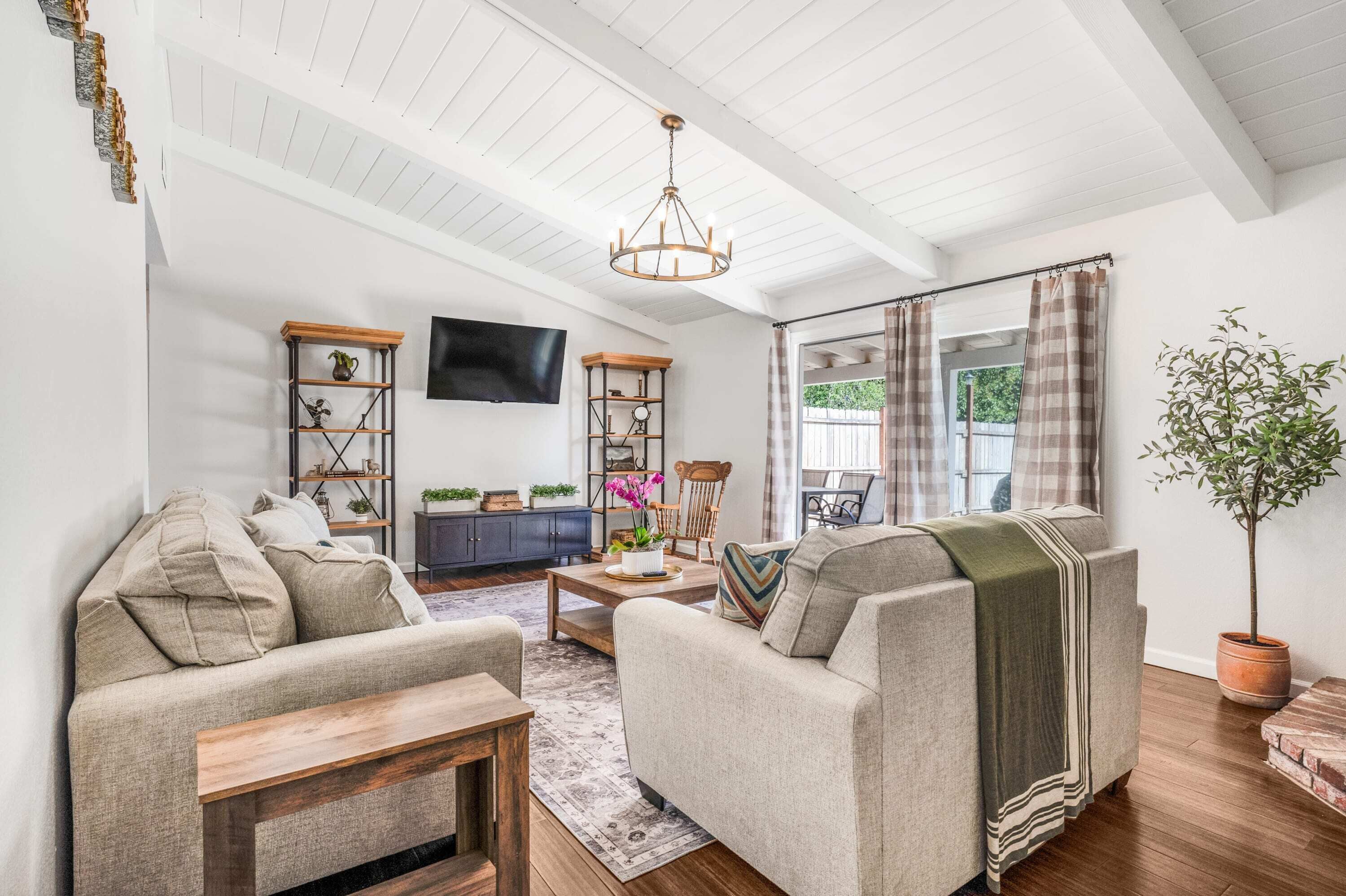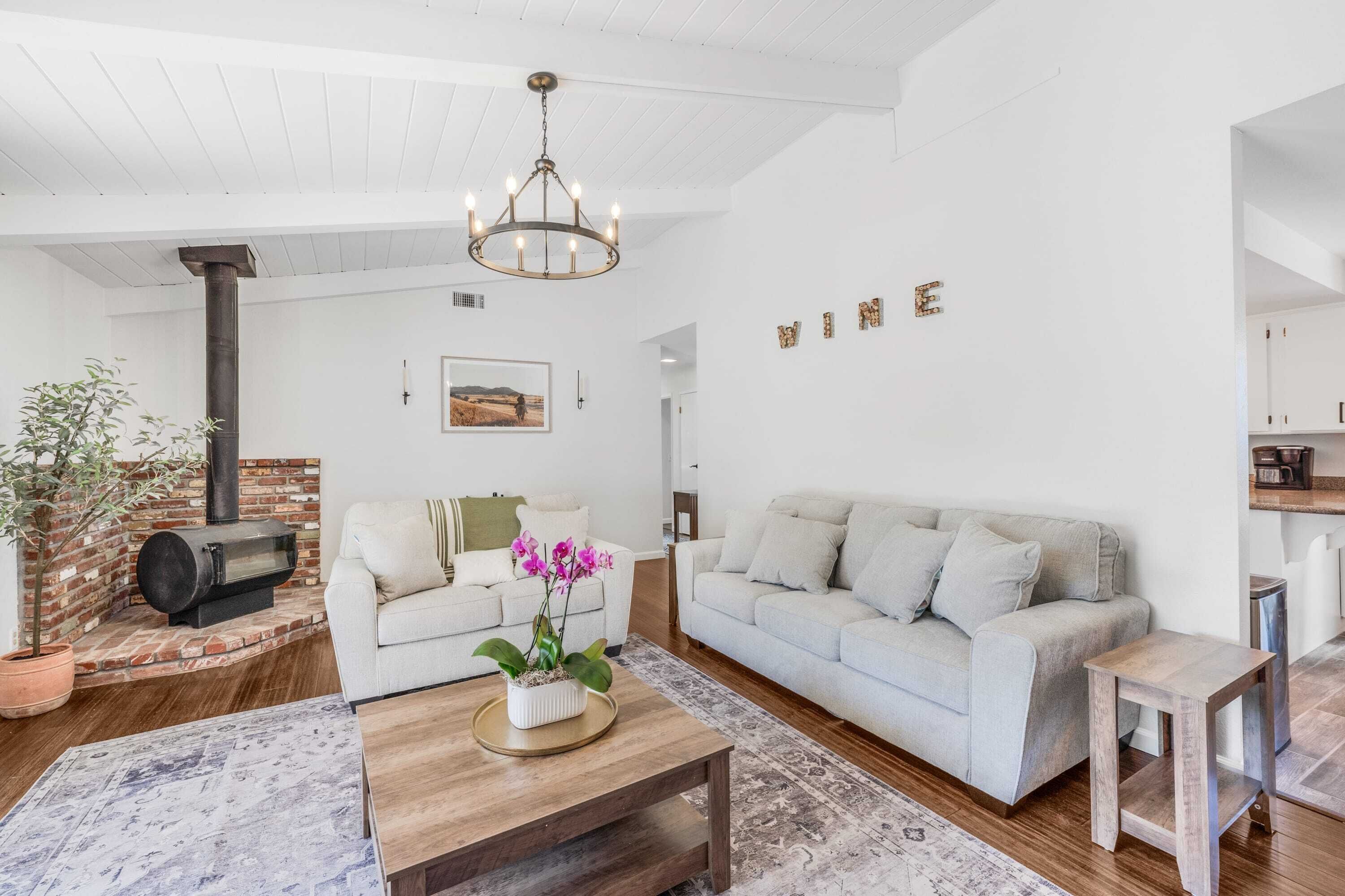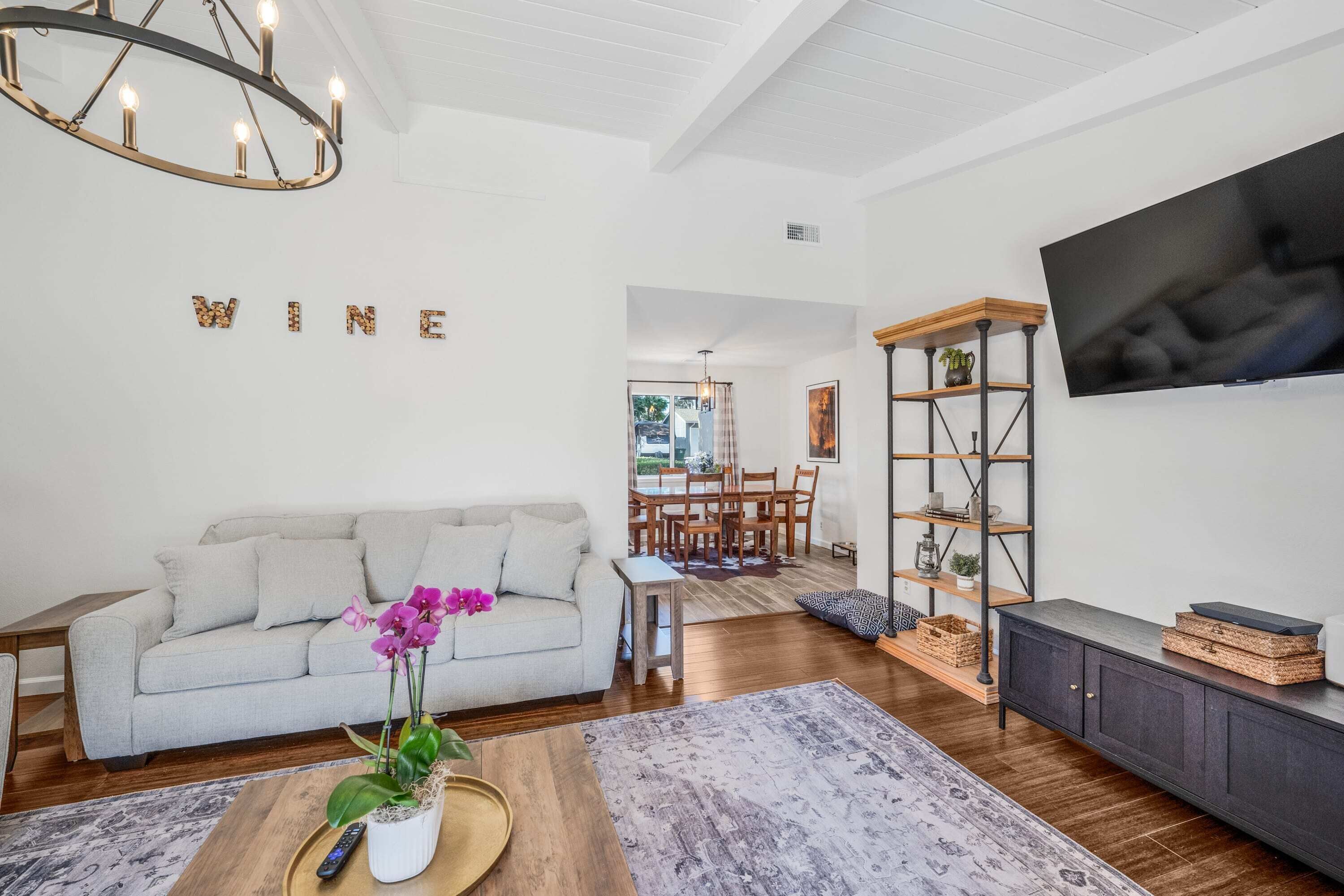 New! Modern Valley Home Walking Distance to DT Summary:Welcome to Serenity Sanctuary! Unwind in style at our newly refreshed 3-bedroom retreat. This home is just a short walk to downtown Santa Ynez & across the street from rolling fields with cattle friends to say “hi” to! This spacious home is perfect for family gatherings, wine country getaways, or friendcations. Minutes away from Chumash Casino & Santa Ynez's finest restaurants and wineries, and just a short drive to Santa Barbara, this home offers the perfect blend of relaxation and exploration.The Space:Relax, Recharge, Refill in the Heart of Wine Country!Serenity Sanctuary is a newly refreshed retreat inspired by Santa Ynez’s rich agricultural heritage. As you move through the home, you’ll find carefully curated decor inspired by the beautiful scenery and history of Santa Ynez, including some fun antique pieces. Each bedroom was designed to make you feel right at home, featuring memory foam mattresses, plenty of space to spread out and there is even a dedicated workspace if needed!Drift off to sleep in one of our 3 plush queen-sized beds, with room for 2 more guests on the comfy pull-out couch – this haven sleeps up to 8 guests! A luxurious suite offers an extra touch of comfort with a charming coffee bar. Relax and unwind in the spacious living room featuring an original wood-burning stove (non-operational), or whip up delicious meals in the fully equipped kitchen. Step outside to your own backyard oasis, complete with comfy patio furniture, a dining table for al fresco feasts, an outdoor bar for sunset cocktails, and some friendly cornhole competition! You are just minutes away from Santa Ynez hot spots and are centrally located to Chumash Casino, Santa Barbara, and other central coast gems! Book your stay today and experience California dreaming at its finest!Details:Reliable High Speed Internet (200 MBPS)Close to Downtown Santa Ynez, Chumash Casino, Wineries, & Maverick SaloonSmart TVs in primary suite and living roomFully Equipped KitchenQuiet and Safe Residential LocationFully fenced, private backyard featuring patio furniture, outdoor bar, dining table, cornhole and a propane BBQ grill.**Please note, this is a part of a multi-family unit home. There is another rental unit on the 2nd floor. There are no shared spaces between the two units.****Available to rent on a mid-term or long-term basis. Inquire for discounted rate.****This unit & the upstairs unit can be booked together, inquire with host!**Guest Access:You will have access to the entire first floor of the home, garage and the backyard to the right of the fence. The second floor of the home is a separate rental unit. There is a private side yard to the left of the home for the second rental unit.The Neighborhood:Serenity Sanctuary is located in a quiet residential neighborhood just a short walk to downtown Santa Ynez. The home is just a short drive to Chumash Casino. The home is just across the road from a large open field with cattle friends who roam freely. Santa Ynez is home to acclaimed restaurants & bars, wineries, hiking/biking trails, & beautiful scenery, making this a stunning location for your getaway.Getting Around:It is easy to get around by car. Uber & Lyft are available, but shouldn’t be counted on.Other Things to Note:**Please note, this is a part of a multi-family unit home. There is another rental unit on the 2nd floor. There are no shared spaces between the two units.****This unit & the upstairs unit can be booked together, inquire with host!**AMENITIES:We provide towels, hand soap, toilet paper, paper towels, dishwasher soap, shampoo/conditioner/body wash, coffee/tea, salt & pepper, cooking oil & trash can liners. ENTRY:There is a keypad located at the front door for a simple keyless entry. Entry code will be provided to you 72 hours before arrival. The code is changed after every guest.PARKING:There is a private driveway for up to 3 cars to park. THE DRIVE:The house is very easy to find and located off of a flat, paved road.INTERNET:The house has reliable high speed internet throughout the entire space.You can access your Hulu, Amazon Prime, Netflix, etc. accounts with the Smart TVsOUTDOOR SPACE:Outdoor bar, dining table, patio furniture, cornhole & gas BBQ available for you to enjoy!BEDROOMS:There are 3 bedrooms, each with queen beds. The living room has a queen sized pullout couch. Total accommodations can sleep 8 guests.KITCHEN:Fully equipped with a refrigerator, stove, oven, microwave, dishwasher, coffee maker, and all basic kitchen essentials: Pots/Pans/Plates/Cups/Utensils/Spices/OilSECURITY:Security cameras are located at the front of the house for your security. There are NO cameras inside the property.**Available to rent on a mid-term basis. Inquire for discounted rate.****This unit & the upstairs unit can be booked together, inquire with host!**Interaction with Guests:We want our guests to feel as comfortable as possible during their stay so please reach out if you have any questions or need anything at all. We will give you your privacy, but we are available to assist with anything you need.