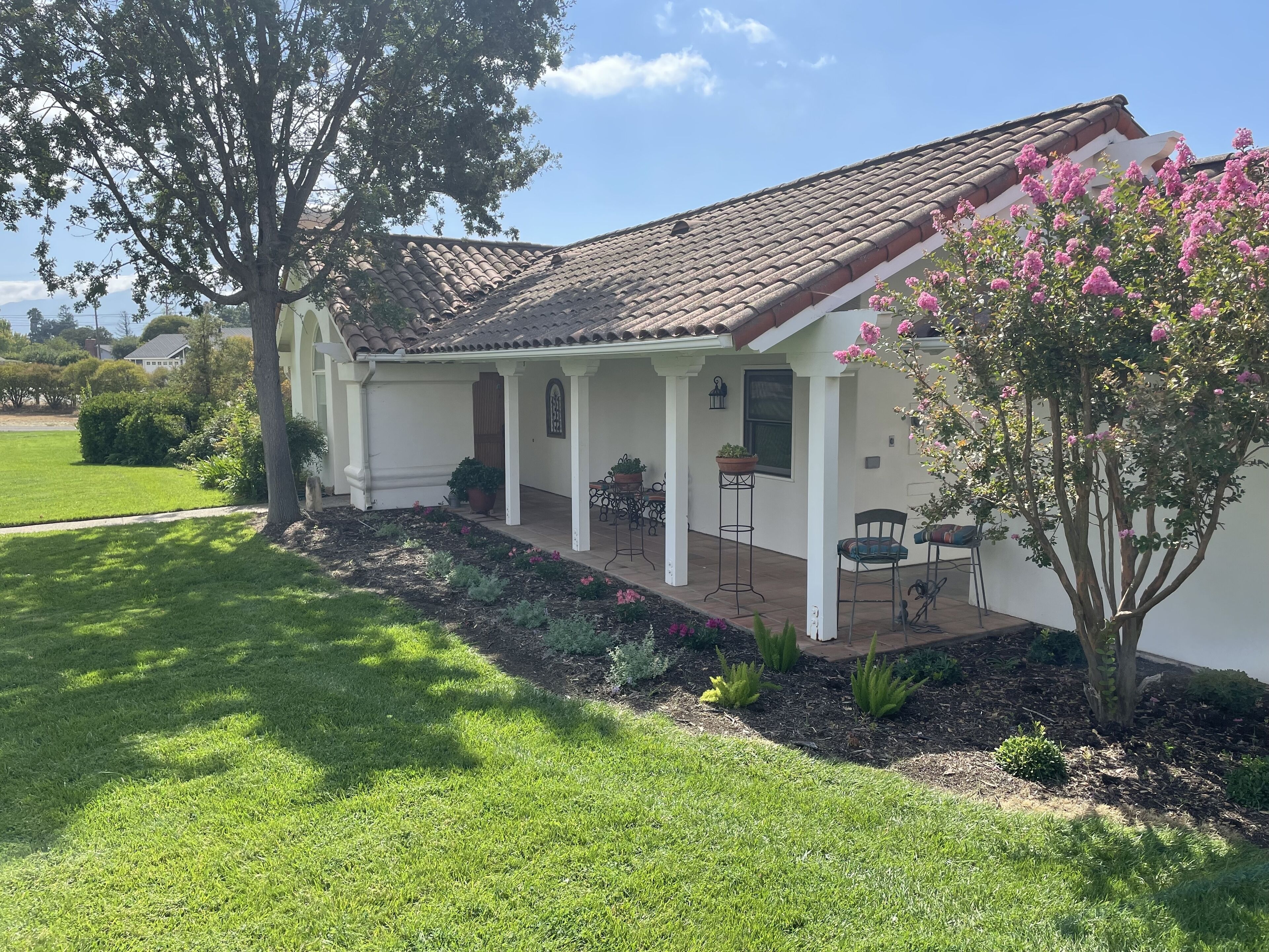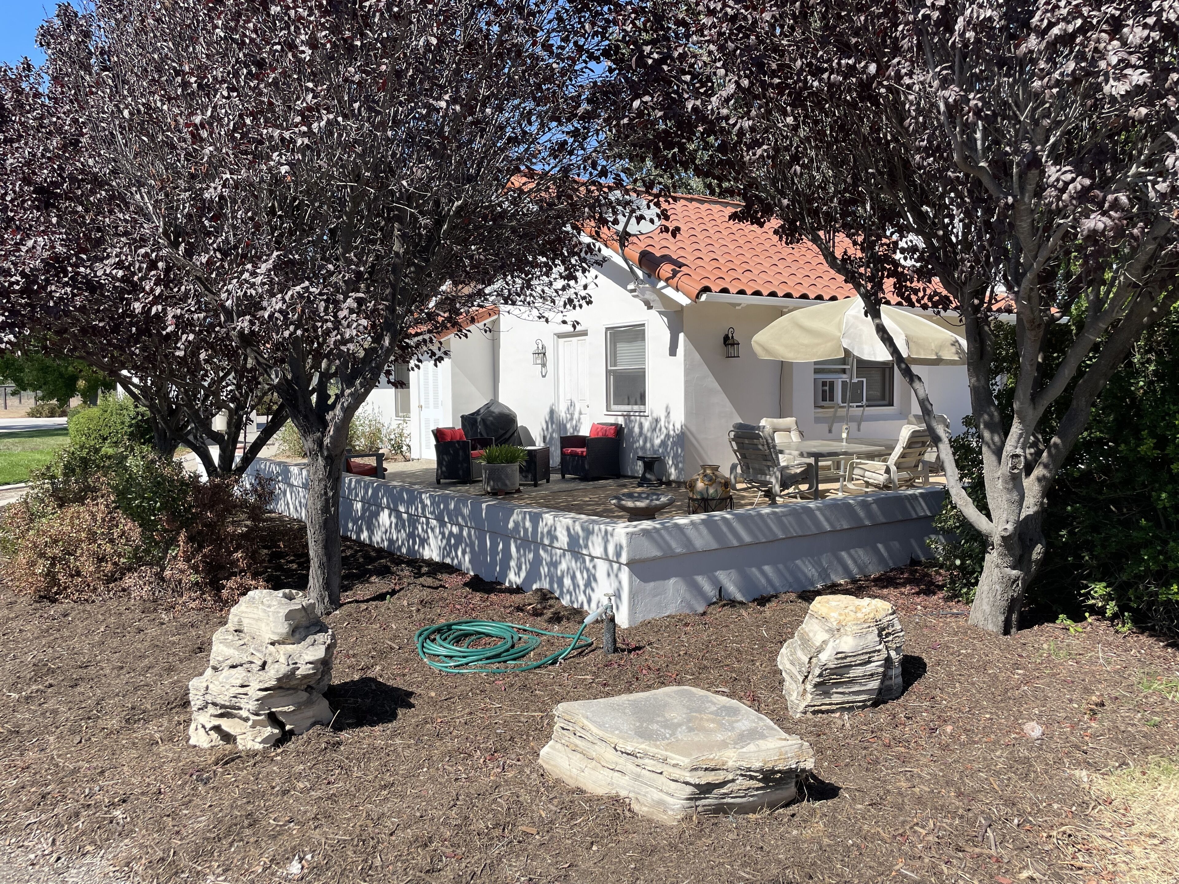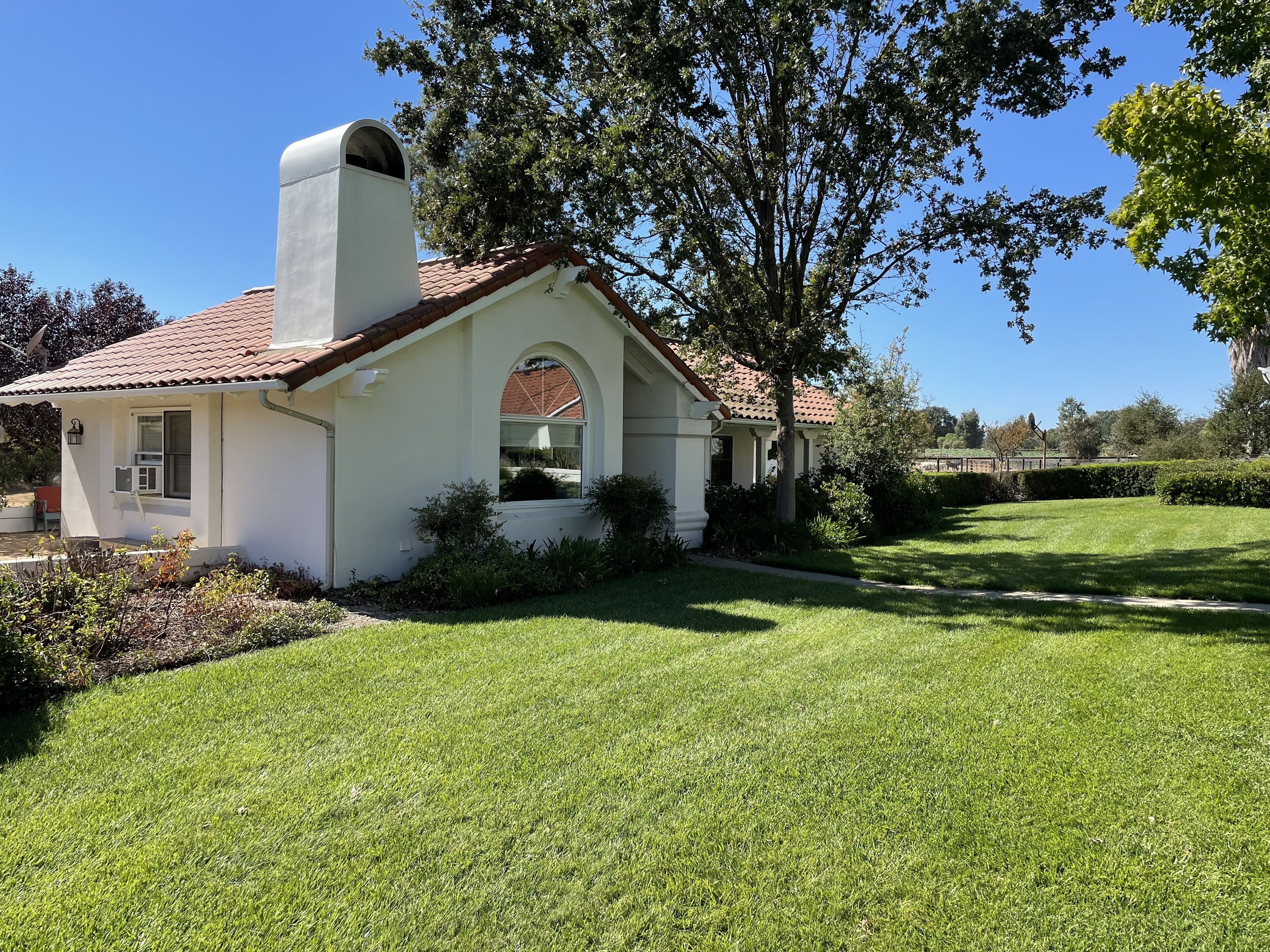 Your OWN Private Refuge ON 10 Acres IN Santa Ynez Enjoy your own private residence set on 10 acres centrally located to all of the Valley's finest restaurants, wineries and activities in this 2 bedroom 1 bath casita. Set among horse ranches with striking mountain views, we are just 1/2 mile from downtown Santa Ynez, 3 miles from Los Olivos and 5 miles from Solvang. All the comforts of home await you in this Spanish-style home complete with plaster walls, vaulted ceilings and terra cotta tile. It is completely private and separate from the main house where the owners reside with their 2 beloved dogs who are fenced in their own private yard.The great room features a large picture window affording spectacular views of the property, a large gas fireplace with hearth and numerous windows to enjoy the beautifully landscaped grounds. There is a 43" Smart TV with Netflix and Prime Video, DirecTV service and a DVD player with a wide assortment of DVD's. High speed WiFi recently added. A secretary desk is the perfect place for your computer work.The primary bedroom has a very comfortable King size bed to guarantee a wonderful night's sleep. Windows on either side of the bedroom provide views of the beautiful landscape. The second bedroom offers 2 twin beds which can be separated or combined to form one Queen size bed.A fully stocked kitchen offers everything for the most industrious cook. Grind your coffee beans and enjoy a cup of coffee on the front porch or on the back patio. Full spice rack and cooking oils make it easy to prepare dinner at home. Dining for 4 in adjacent breakfast area. A lovely patio includes a table for 4, additional seating and an outdoor grill. Your covered carport houses a sports locker of sports equipment and a basketball hoop sits across the driveway.This is the perfect getaway for families and couples. Comfortable, convenient and tranquil........all the makings for the perfect vacation stay.We are dog friendly with a 2 dog maximum for a flat fee of $30.00 paid at time of booking. Please bring your own beds/crates. NO CATSPlease note: Price quoted is for 2 people. Add $25/night for 3rd and/or 4th person.Keywords: