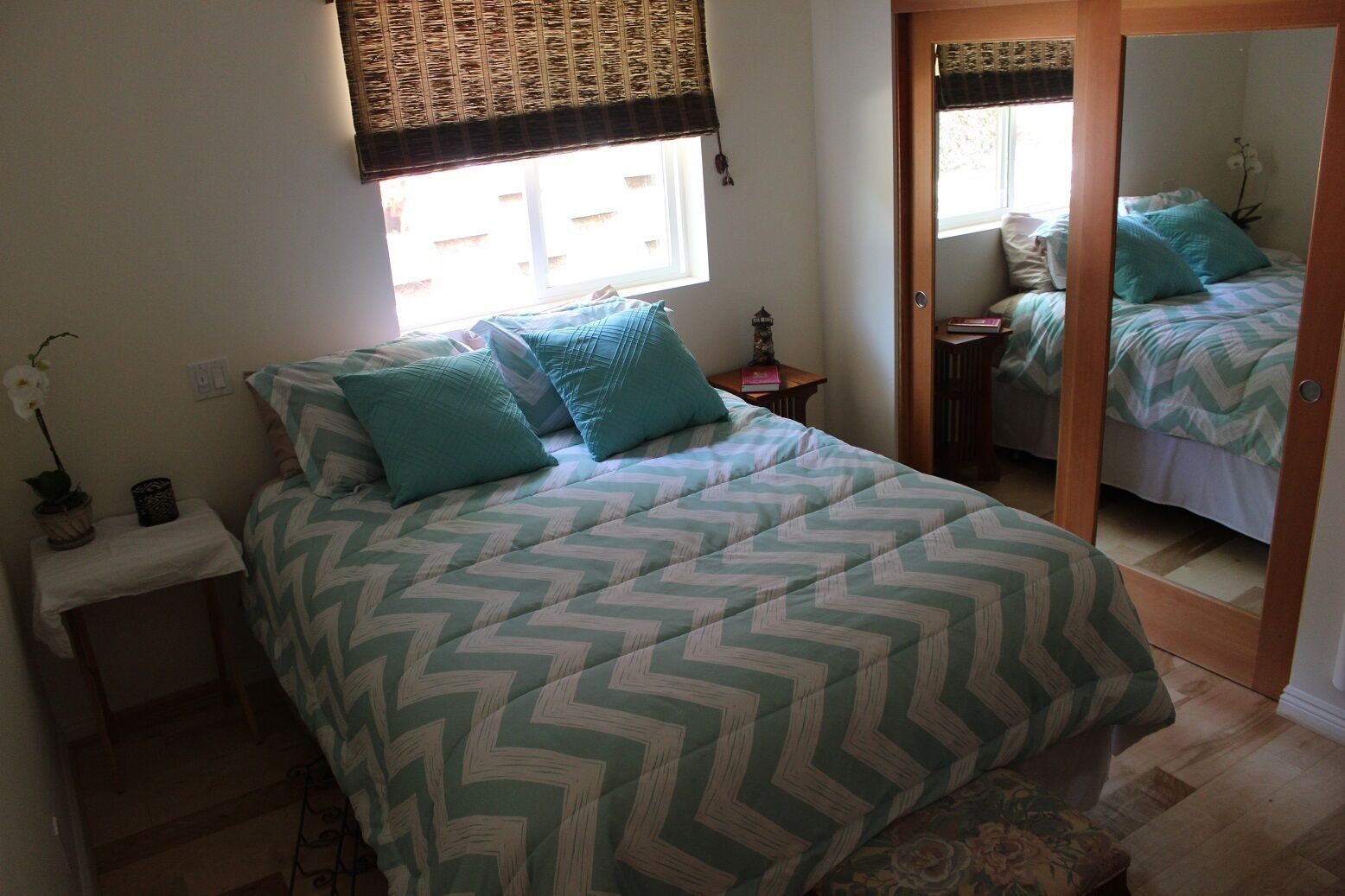 MAGICAL 5-STAR RATED OCEAN VIEW CUSTOM HOME - PLEASE READ ALL OUR GUEST REVIEWS Welcome to the Summerland Double Dolphin! This 5-Star rated 2 Bedroom/1 Bath relaxing vacation custom home is within walking distance to the beach & downtown Summerland!This perfect oasis offers many custom features including all hardwood floors, vaulted wood ceiling, extensive cabinetry, comfortable reclining sofa furniture, flat screen T.V. (including Direct TV), WiFi, fully stocked kitchen (including dishwasher), indoor & outdoor tables for dining, ceiling fans in every room, walk-in shower & a private washer and dryer. Each bedroom offers queen beds, a double door closet & plenty of space so you can really feel at home. This rare, new single family home comes with screened, double-pane windows for a majestic ocean view and possible dolphin sightings! There are multiple private outdoor seating options, private 3-burner propane grill & secure private brick stone driveway offering parking for three vehicles. Fenced in yard and very private, the driveway has a gate that you can close. This is the home you need for your vacation! It's located in a charming beach town that offers restaurants, shopping, markets, post office, gas station, convenience stores & a new full court basketball and tennis at the Summerland school during (none) school hours for your use, all within walking distance. The Summerland beach (Look Out Park) is operated by the County of Santa Barbara and is less than 1/2 mile from the Summerland Double Dolphin home. The park (Look out Park) offers a beautiful newly renovated playground, sand volleyball, ping pong tables, picnic tables, charcoal grills, Free parking and a Car Charging station. Great sunrise, sunsets, dolphins and whales at certain times of the year!The town of Summerland may be quaint but it offers something for everyone; whether you want to hike/bike the well groomed trails and back roads, surf the world famous Rincon, lay on the quiet beach, sip a glass of wine at the Summerland Winery, take the public bus to Santa Barbara or Carpinteria (world's safest beach!) or stay at home and watch the ocean - this is the place for you. We are very proud of this home and have made every effort to supply everything you will need to make your vacation UNFORGETTABLE! We are owner operated and live in a separate home on the property. If you have any special requests, please don't hesitate to call us (805-284-8866). We want your stay to be very relaxing, enjoyable & worry free. Please check out more of the accommodations that are listed in the amenities section. We are able to accept last minute reservations and we discount on all long-term rentals of 30 days or more, just contact us and we can discuss!Thank you,Debby & Rick 805-284-8866