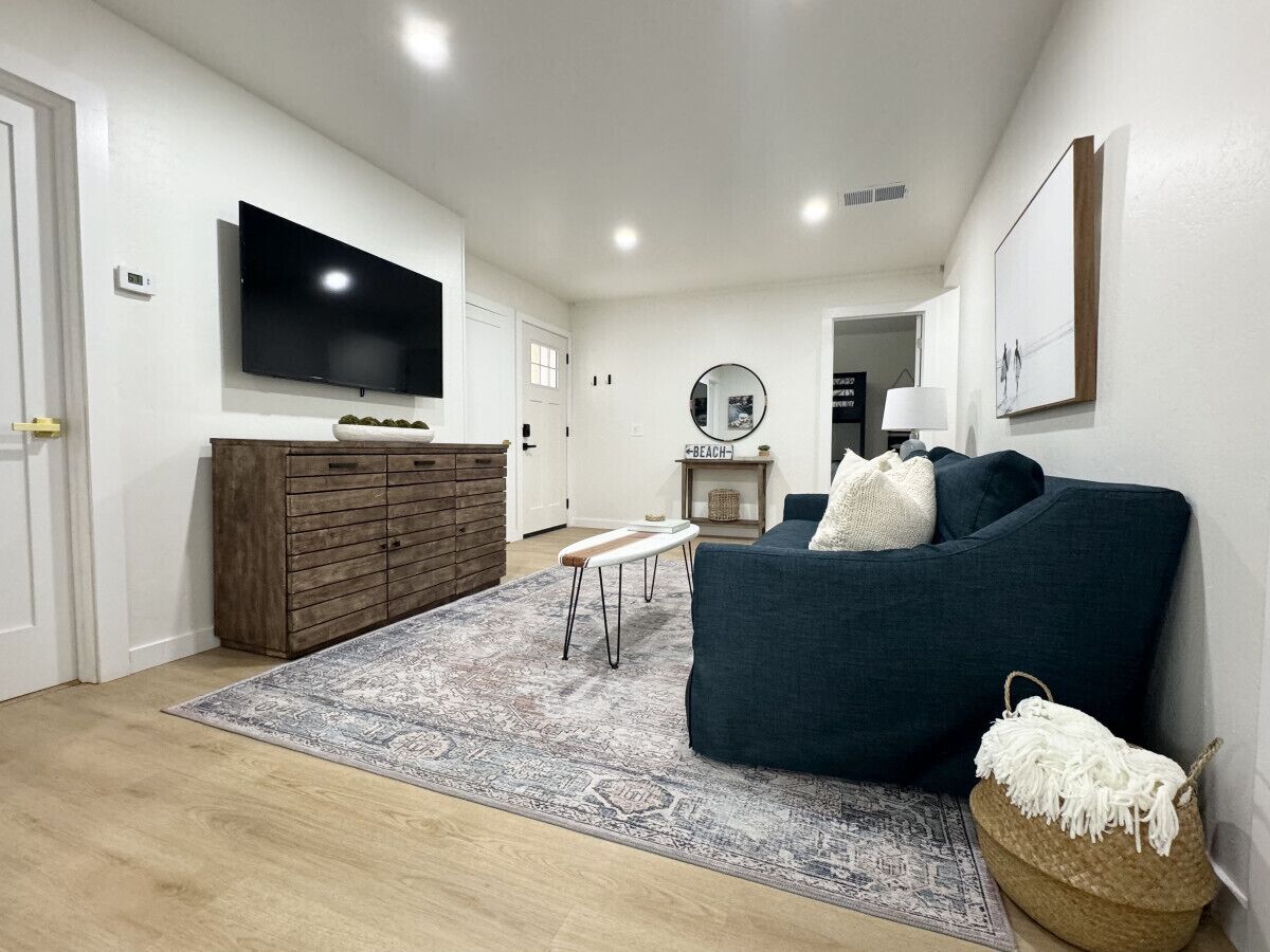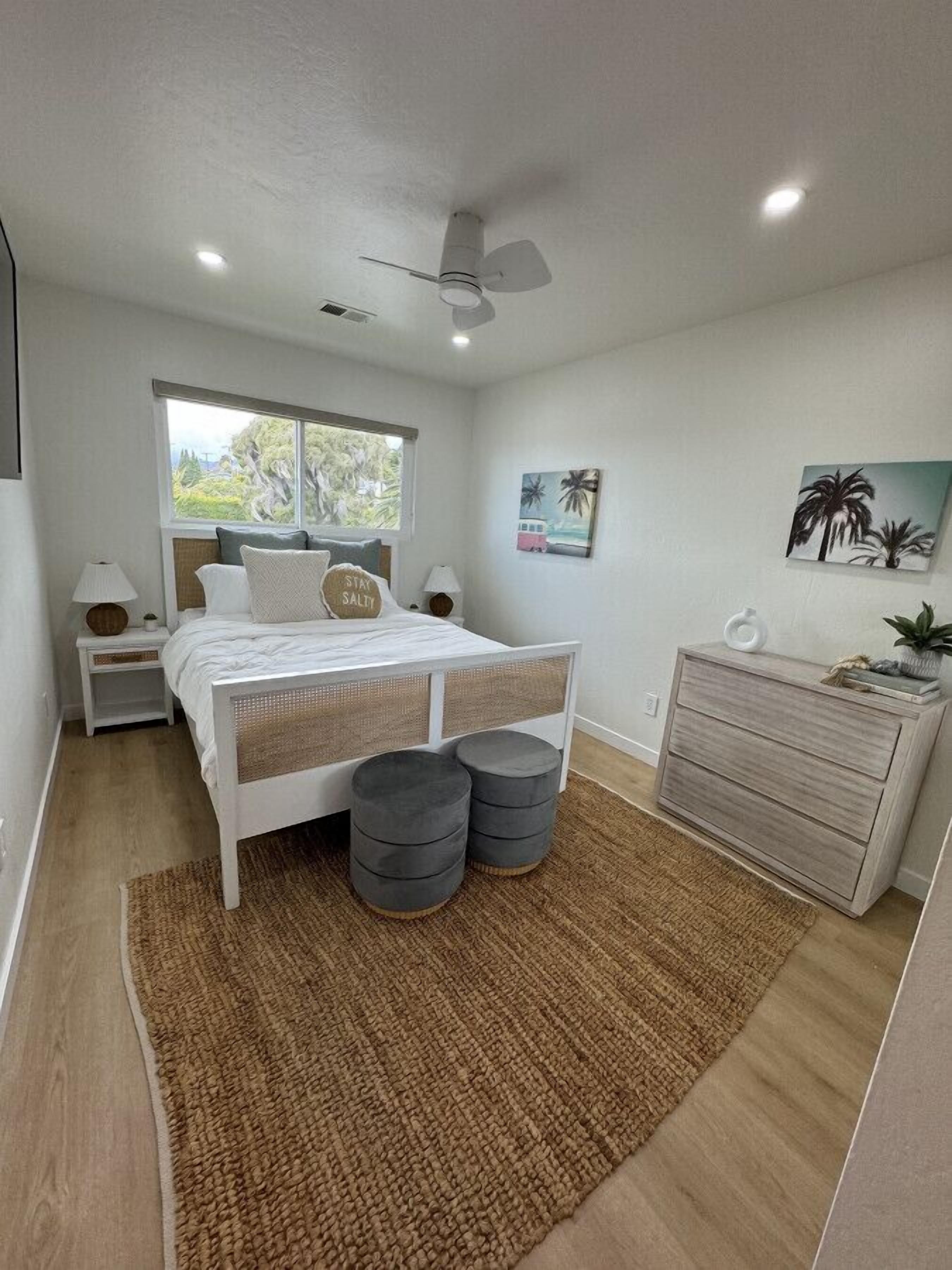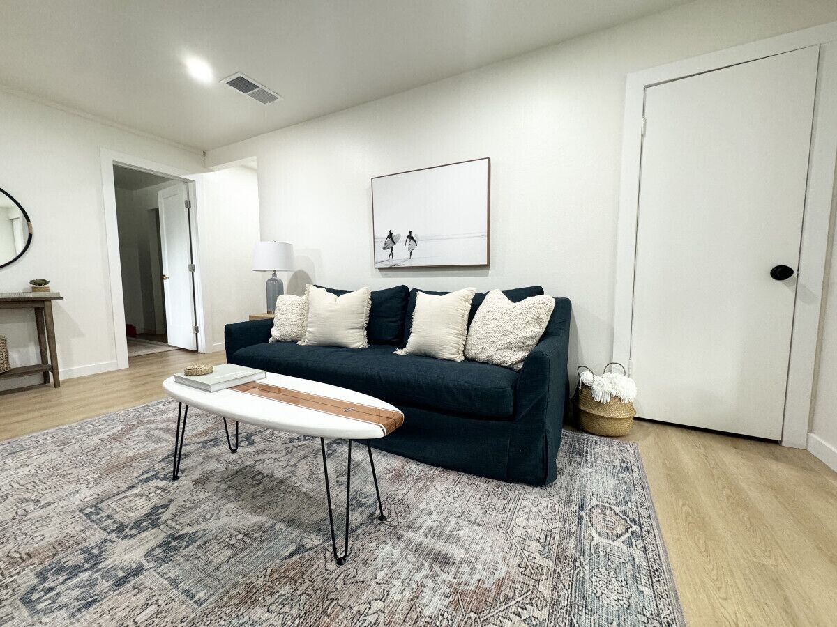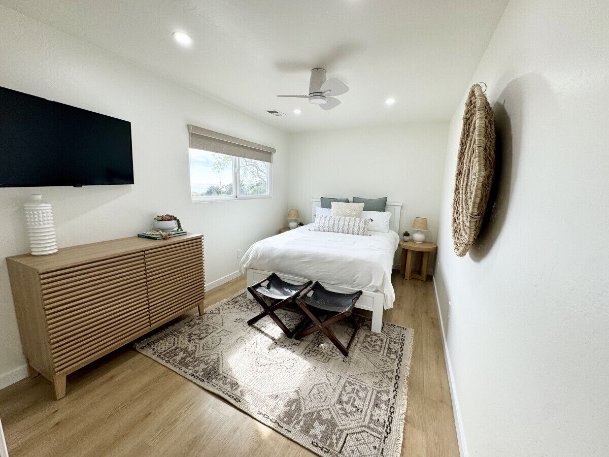 Summerland 4 bedroom This spacious 4-bedroom, 2-bathroom apartment is ideally situated on the best street Lillie Ave., and just a short stroll away from the sun-kissed sands and sparkling waters of the beach. The open-plan layout seamlessly connects the living, dining, and kitchen areas. With its prime location, spacious layout, and family-friendly amenities, this apartment offers the quintessential beachside lifestyle you've been dreaming of. Don't miss out on this incredible opportunity to call it home!Upon entering, you're greeted by a warm and inviting atmosphere, perfect for families seeking comfort and convenience. The open-plan layout seamlessly connects the living, dining, and kitchen areas, providing ample space for relaxation and entertainment. The modern kitchen is equipped with stainless steel appliances and quartz countertops. The four bedrooms offer versatility and comfort. Bedroom 1: King bed. Desk. Located upstairs Bedroom 2: Queen bed. Located upstairs Bedroom 3: Queen bed. Located upstairs Bedroom 4: Bunk bed, twin over full. Located downstairs All bedrooms upstairs have ceiling fans. All rooms are equipped with smart tv’s 2 full bathrooms. One bathroom is located downstairs with shower and the other is located upstairs with shower bathtub combo. The unit does have a washer hand dryer inside. This unit does not have air conditioning. Outside, through the sliding door, adjacent to the kitchen is a charming private petite patio with a table and chairs for 2. This is the perfect place to enjoy the ocean breeze.With the incredible location on Lillie Ave. you have the convenience of being able to walk to many amazing stores, coffee shops, restaurants and the beach. There is a community tennis court and basketball court 1 block away on Lillie Ave. Pickle ball paddles and balls are located in the unit for your use. Lookout park is located nearby. It has a playground for young children, bocce ball ping pong tables, EV charger and beach access.Please not that the unit is located on Lillie Ave. adjacent to the 101 freeway, which could have a potential for noise.Entire apartmentThrough phone email or textLillie Ave.Ample parking on Lillie Ave. you are able to walk to many stores, coffee shops and restaurantsNo AC