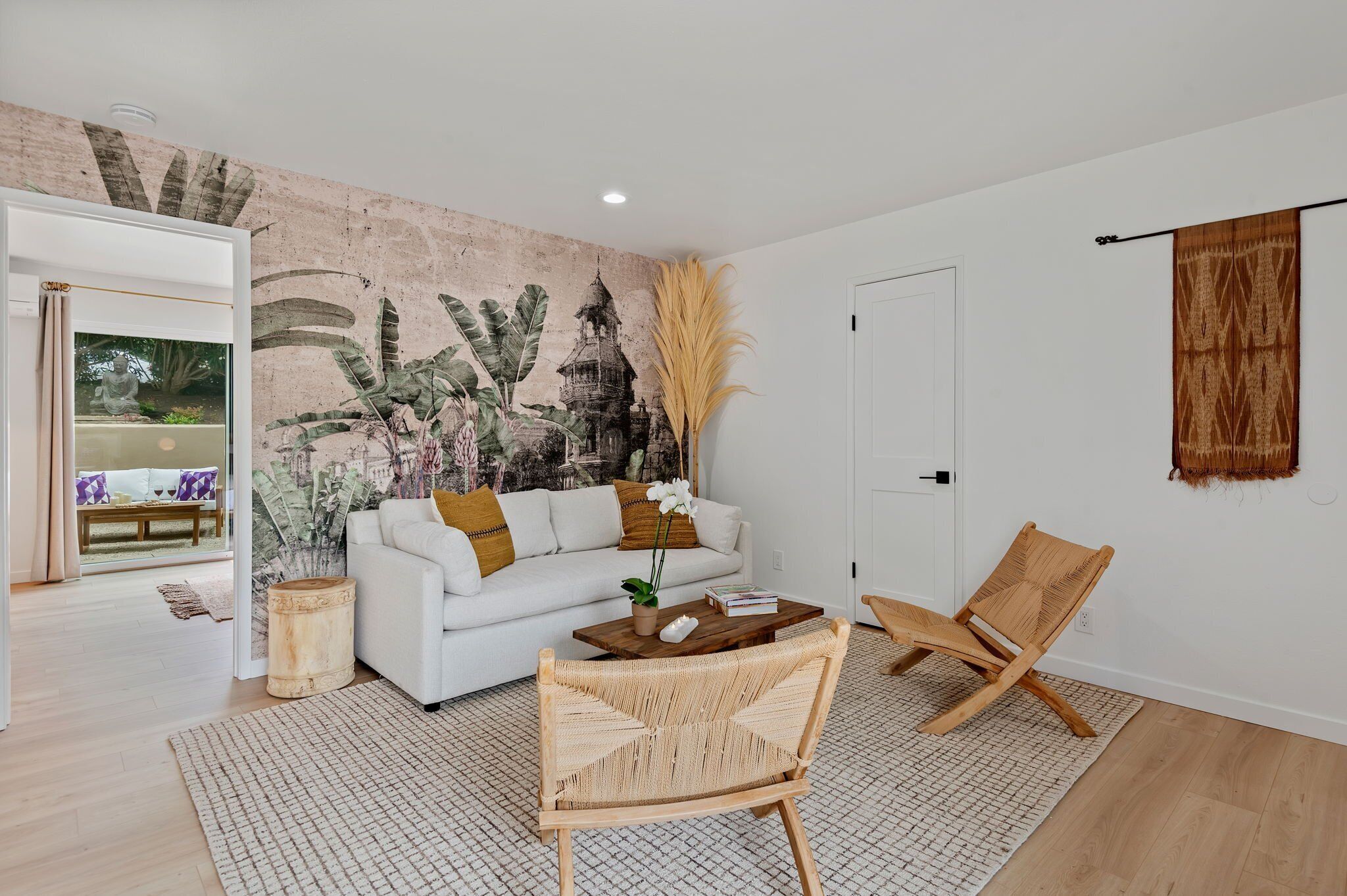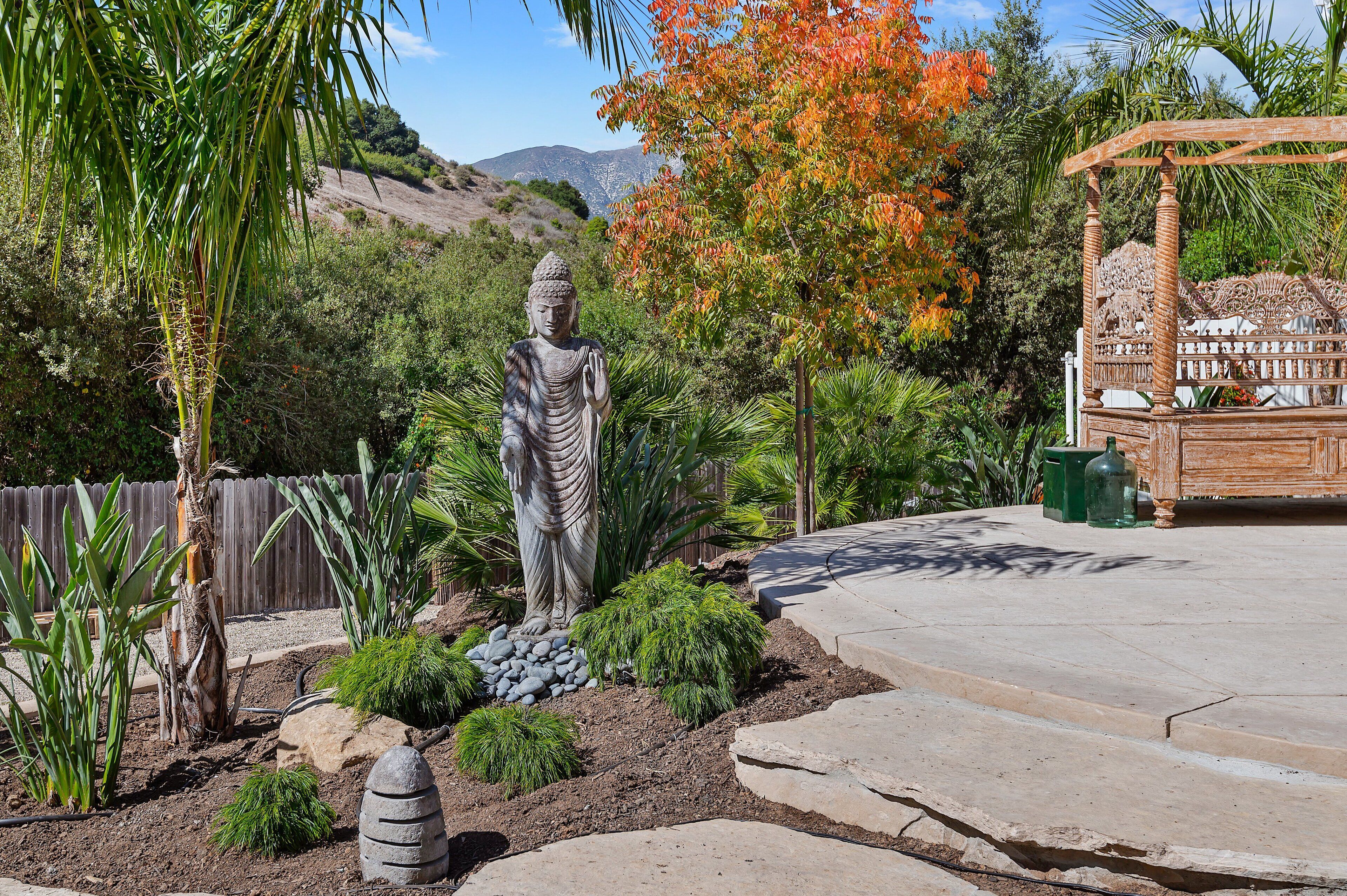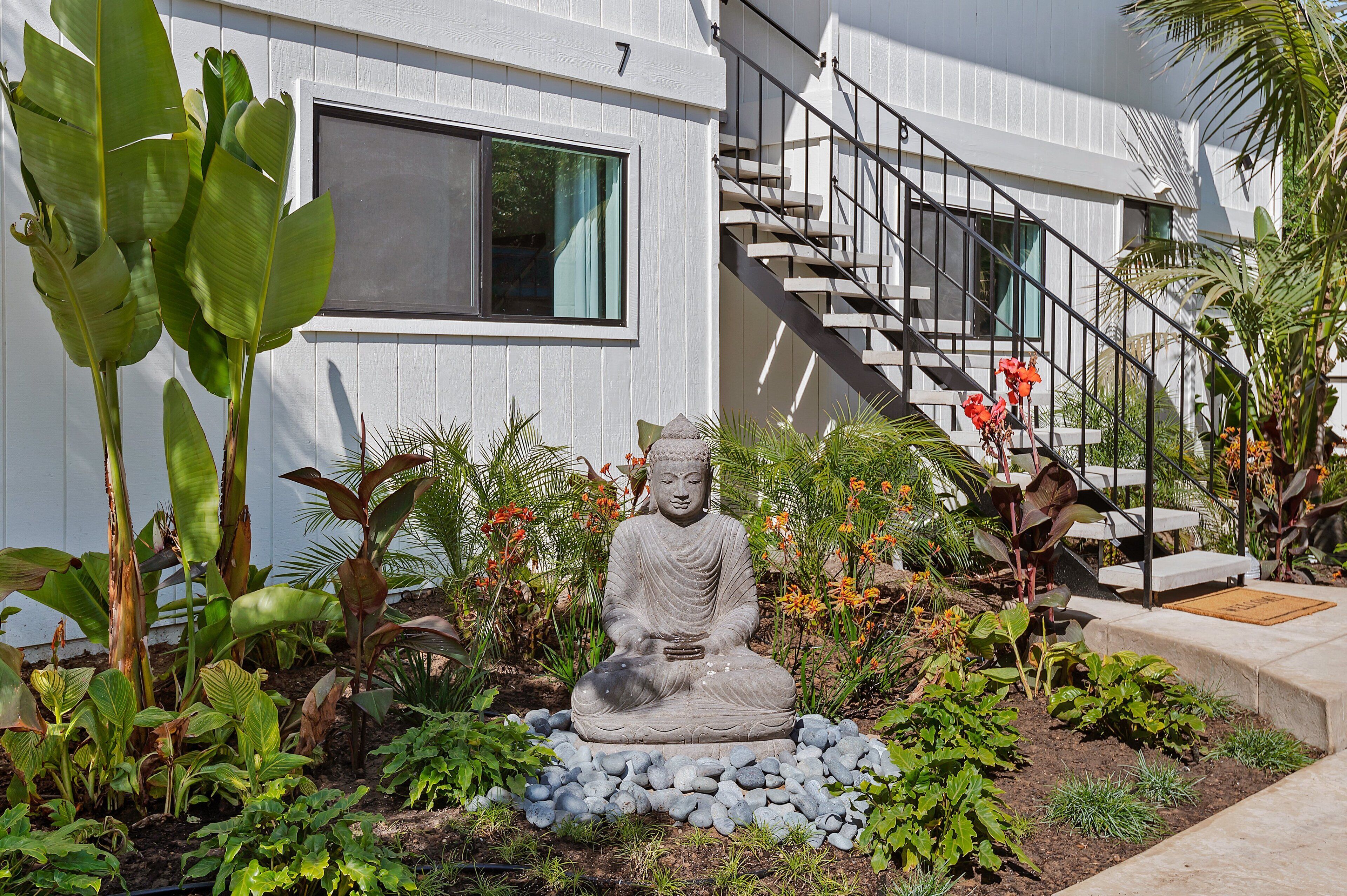 New - Tropical at The Greenwell Retreat, Tranquil Balinese Gardens, Walk to Beach! The Greenwell Retreat - Your Luxurious Summerland EscapeWelcome to The Greenwell Retreat, an exquisite vacation haven located behind the chic and vibrant heart of design-forward Lillie Avenue. This luxurious 10-residence compound in Summerland, California, offers the perfect getaway with lush gardens and captivating Balinese décor, enhanced by magnificent statues and wood carvings that create an atmosphere of tropical serenity.Location, Location, LocationThe Greenwell Retreat is ideally situated just a two-minute drive from the famous Loon Point Beach off Padaro Lane. This prime location offers easy access to everything you need for an idyllic vacation. Start your morning at the nearby celebrity-favorite Field and Fort, just a block away, where you can enjoy coffee and a light meal. The upscale enclave of Montecito, often referred to as the Hamptons of California, is only a stone's throw away, offering further opportunities for leisure and luxury.Discover " Tropical – Your Sanctuary of Relaxation" Tropical," a newly remodeled one-bedroom, one-bathroom vacation rental designed to serve as your personal oasis. This beautifully furnished unit comfortably accommodates up to four guests and perfectly blends modern luxury with a California beach-meets-Bali vibe.Interior Features:• Living Room: Step into a spacious living area featuring authentic Indonesian textiles and wood carvings set against a beige accent wall. Relax on the plush couch or two comfortable chairs while enjoying your favorite shows on the flatscreen TV. A sliding glass door leads to an oversized outdoor patio, ideal for sipping your morning coffee or unwinding after a day of exploration.• Dining and Kitchen: This open-concept space includes a modern kitchen and an elegant dining table with seating for four. The fully appointed kitchen is equipped with stainless steel appliances, marble countertops, and a Nespresso machine, making it easy to prepare delicious meals and entertain guests.• Sleeping Areas: The serene bedroom features a king-sized bed with an antique wood headboard complemented by end tables crafted by skilled artisans. Additional amenities include a flat-screen TV, air conditioning, and a spacious closet. The new ensuite bathroom is a luxurious retreat featuring a walk-in rain shower and deluxe Malin+Goetz amenities. Double doors lead directly from the bedroom to a private furnished outdoor yard with stunning views of Balinese sculptures.• Second Sleeping Area: The living room also includes a queen sleeper sofa, perfect for accommodating additional guests.Additional Amenities:• Community Washer and Dryer: Conveniently located on the property and complimentary for guests.• Parking: Enjoy the convenience of dedicated parking for one car.Explore SummerlandSummerland is a charming destination with unique opportunities to explore eclectic shops, antique stores, and wine tastings. Whether you're seeking outdoor adventures or relaxed dining at local eateries, Summerland has it all. Don't miss the rare chance to ride horseback along the sandy beaches of the Santa Barbara South Coast—an unforgettable experience.Situated between Santa Barbara, Montecito, and Carpinteria, Summerland provides easy access to a range of activities, from the vibrant Funk Zone to the Safest Beach in the World.Book your stay at " Tropical " today and immerse yourself in the tranquil luxury of The Greenwell Retreat. Your dream vacation awaits!Special Features of the Home:• Air Conditioning• Bali Style Retreat• Newly Remodeled Residence• Relaxing Patios• Community Outdoor Lounge Areas• WIFI• Flat-screen TV in the Bedroom and Living Room• Community Laundry• Assigned ParkingNearby Activities:• Summerland Beach• Loon Point Beach• Downtown Santa Barbara• Celebrity-Studded Montecito• Wine Tasting, Shops, & Restaurants• Greenwell Nature Preserve• Hiking Trails• Downtown Summerland• Ocean View Park• Horseback Rides• The San Ysidro Ranch• The Rosewood Miramar Resort• Santa Barbara Polo and Racquet Club
