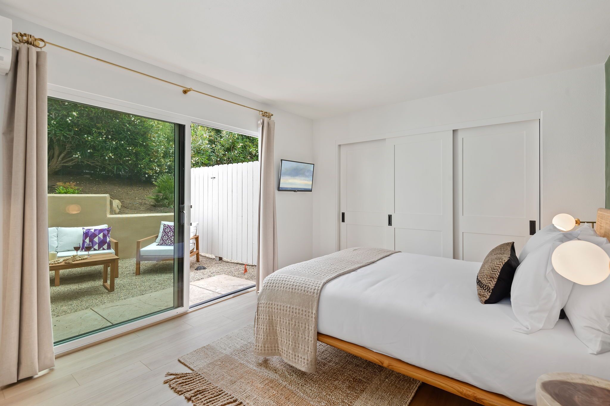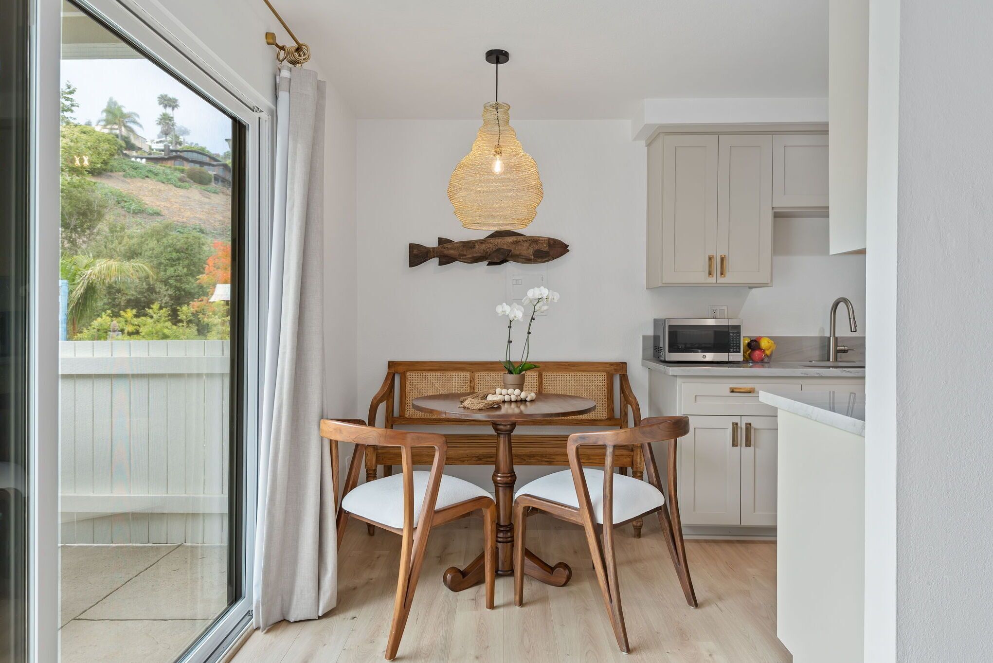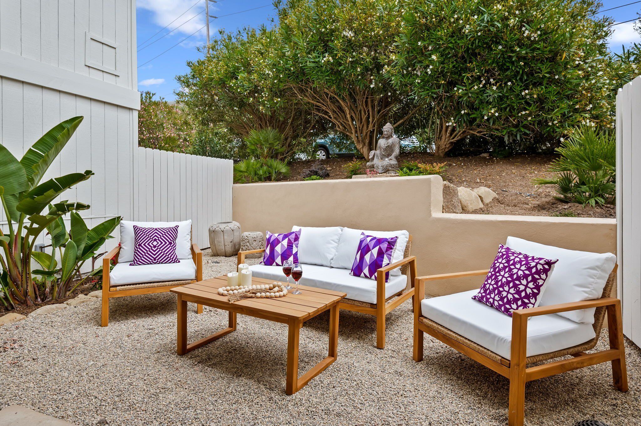 New - Tropical at The Greenwell Retreat, Tranquil Balinese Gardens, Walk to Beach! The Greenwell Retreat - Your Luxurious Summerland EscapeWelcome to The Greenwell Retreat, an exquisite vacation haven located behind the chic and vibrant heart of design-forward Lillie Avenue. This luxurious 10-residence compound in Summerland, California, offers the perfect getaway with lush gardens and captivating Balinese décor, enhanced by magnificent statues and wood carvings that create an atmosphere of tropical serenity.Location, Location, LocationThe Greenwell Retreat is ideally situated just a two-minute drive from the famous Loon Point Beach off Padaro Lane. This prime location offers easy access to everything you need for an idyllic vacation. Start your morning at the nearby celebrity-favorite Field and Fort, just a block away, where you can enjoy coffee and a light meal. The upscale enclave of Montecito, often referred to as the Hamptons of California, is only a stone's throw away, offering further opportunities for leisure and luxury.Discover " Tropical – Your Sanctuary of Relaxation" Tropical," a newly remodeled one-bedroom, one-bathroom vacation rental designed to serve as your personal oasis. This beautifully furnished unit comfortably accommodates up to four guests and perfectly blends modern luxury with a California beach-meets-Bali vibe.Interior Features:• Living Room: Step into a spacious living area featuring authentic Indonesian textiles and wood carvings set against a beige accent wall. Relax on the plush couch or two comfortable chairs while enjoying your favorite shows on the flatscreen TV. A sliding glass door leads to an oversized outdoor patio, ideal for sipping your morning coffee or unwinding after a day of exploration.• Dining and Kitchen: This open-concept space includes a modern kitchen and an elegant dining table with seating for four. The fully appointed kitchen is equipped with stainless steel appliances, marble countertops, and a Nespresso machine, making it easy to prepare delicious meals and entertain guests.• Sleeping Areas: The serene bedroom features a king-sized bed with an antique wood headboard complemented by end tables crafted by skilled artisans. Additional amenities include a flat-screen TV, air conditioning, and a spacious closet. The new ensuite bathroom is a luxurious retreat featuring a walk-in rain shower and deluxe Malin+Goetz amenities. Double doors lead directly from the bedroom to a private furnished outdoor yard with stunning views of Balinese sculptures.• Second Sleeping Area: The living room also includes a queen sleeper sofa, perfect for accommodating additional guests.Additional Amenities:• Community Washer and Dryer: Conveniently located on the property and complimentary for guests.• Parking: Enjoy the convenience of dedicated parking for one car.Explore SummerlandSummerland is a charming destination with unique opportunities to explore eclectic shops, antique stores, and wine tastings. Whether you're seeking outdoor adventures or relaxed dining at local eateries, Summerland has it all. Don't miss the rare chance to ride horseback along the sandy beaches of the Santa Barbara South Coast—an unforgettable experience.Situated between Santa Barbara, Montecito, and Carpinteria, Summerland provides easy access to a range of activities, from the vibrant Funk Zone to the Safest Beach in the World.Book your stay at " Tropical " today and immerse yourself in the tranquil luxury of The Greenwell Retreat. Your dream vacation awaits!Special Features of the Home:• Air Conditioning• Bali Style Retreat• Newly Remodeled Residence• Relaxing Patios• Community Outdoor Lounge Areas• WIFI• Flat-screen TV in the Bedroom and Living Room• Community Laundry• Assigned ParkingNearby Activities:• Summerland Beach• Loon Point Beach• Downtown Santa Barbara• Celebrity-Studded Montecito• Wine Tasting, Shops, & Restaurants• Greenwell Nature Preserve• Hiking Trails• Downtown Summerland• Ocean View Park• Horseback Rides• The San Ysidro Ranch• The Rosewood Miramar Resort• Santa Barbara Polo and Racquet Club