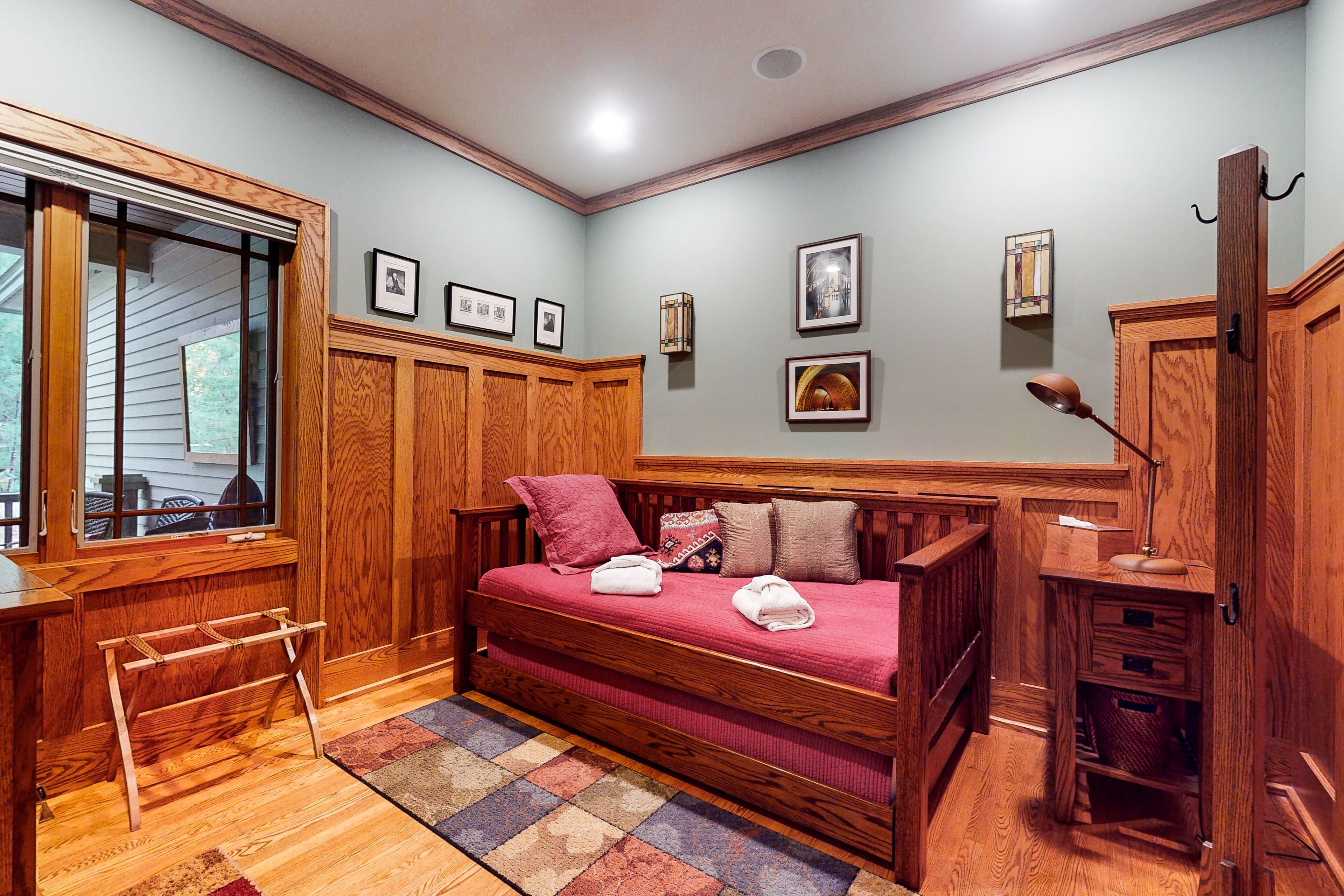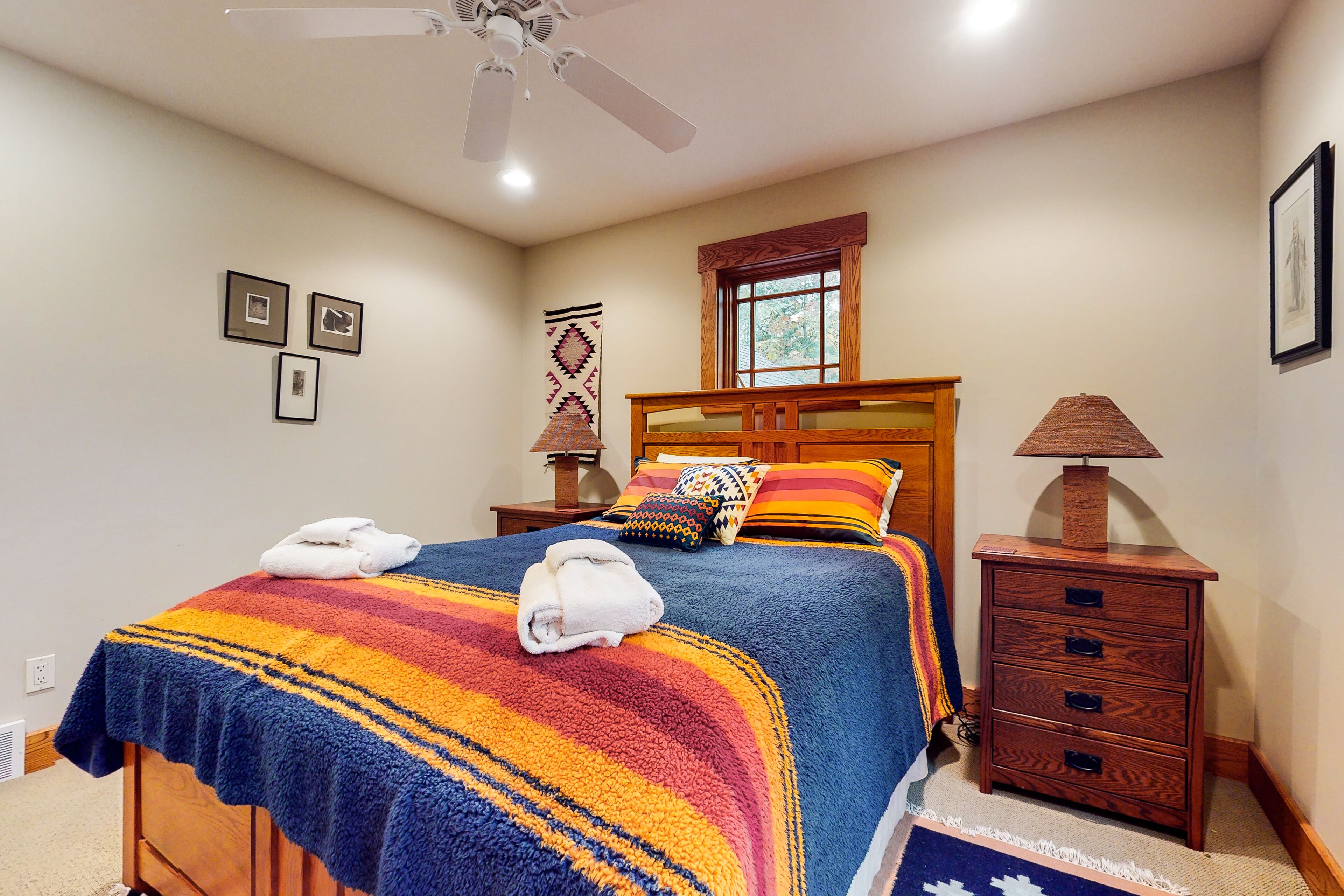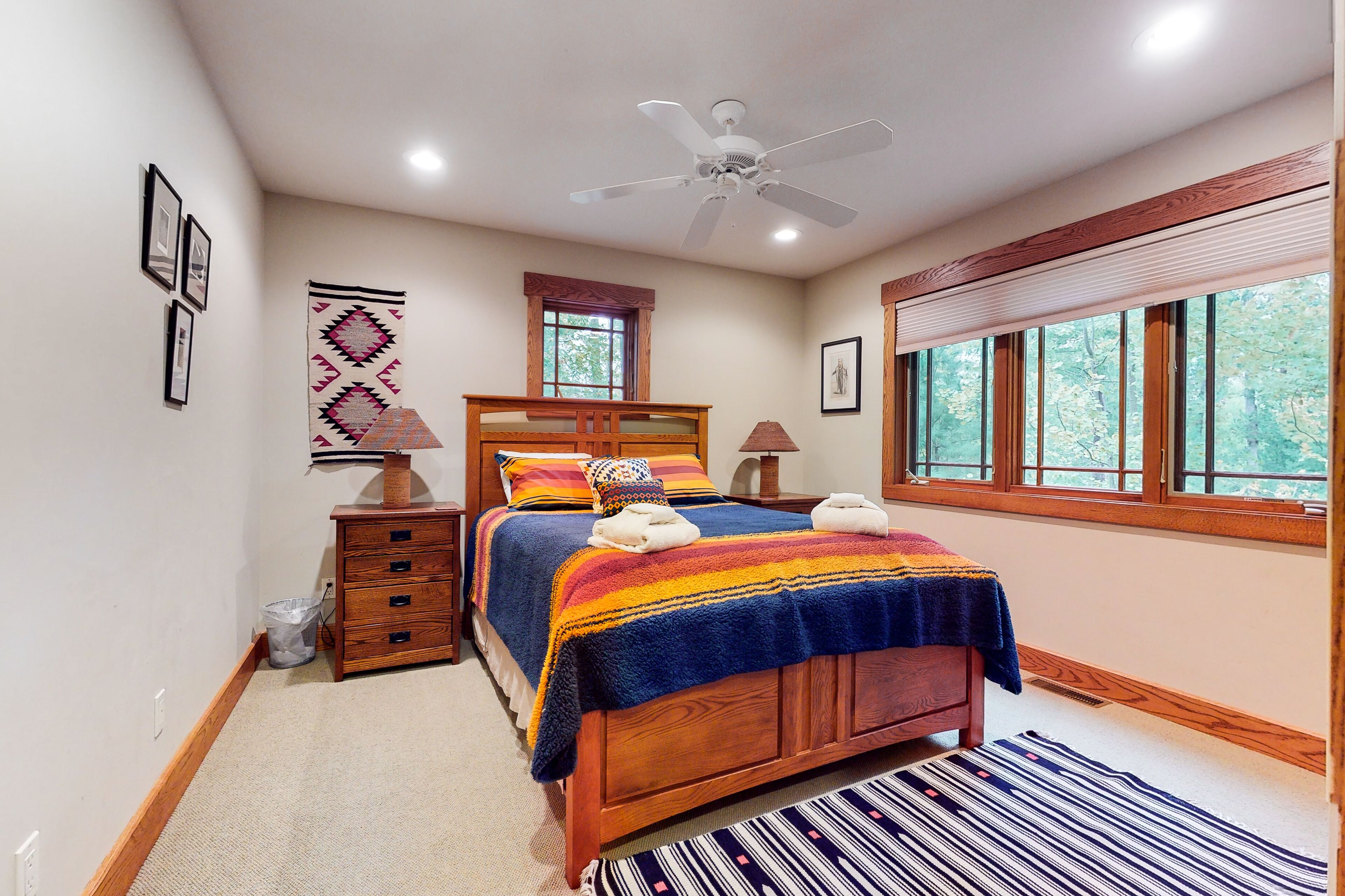Home near downtown with a fireplace, deck, grill, central AC & washer/dryer Deer Park 19 - 'Inn the Oaks'Our calendar is updated in real-time & our nightly rates are accurately displayed. Simply enter your desired dates and click 'Book Now!'Located in downtown Glen Arbor in the neighborhood of Woodstone, this four-bedroom home boasts quality furnishings, central air conditioning, and a close proximity to Lake Michigan. Surrounded by trees, this peaceful setting is just the place for a relaxing vacation. With so many leisurely spots to curl up with a good book or podcast, you’re sure to get much deserved rest. Sit on the idyllic front porch in the quiet of the morning with a warm cup of coffee and enjoy some time to yourself before the fun-filled day ramps up. In the evening, make use of the furnished deck. Grill a meal and dine alfresco together. Mere steps from the backyard is a walking trail and Frog Pond, which is great for fishing. Inside, curl up on the sofa and gather for a group movie night by the glow of the fireplace. Prepare meals in the well-appointed kitchen with stainless steel appliances, bar seating, and a dining table. THINGS TO KNOW This property is managed by Vacasa Michigan LLC.Parking notes: There is free parking available for 4 vehicles.Damage waiver: The total cost of your reservation for this Property includes a nightly damage waiver fee, plus tax if applicable (the “Damage Waiver”). (A discount may be applied for stays of 28 nights or longer, if permitted.) The Damage Waiver covers you for up to $3,000 of accidental damage to the Property or its contents (such as furniture, fixtures, and appliances) as long as you report the incident to the host prior to checking out. The Damage Waiver fee eliminates the need for a traditional security deposit.More information can be downloaded from the "Rental Agreement" on the checkout page.Due to local laws or HOA requirements, guests must be at least 25 years of age to book. Guests under 25 must be accompanied by a parent or legal guardian for the duration of the reservation.