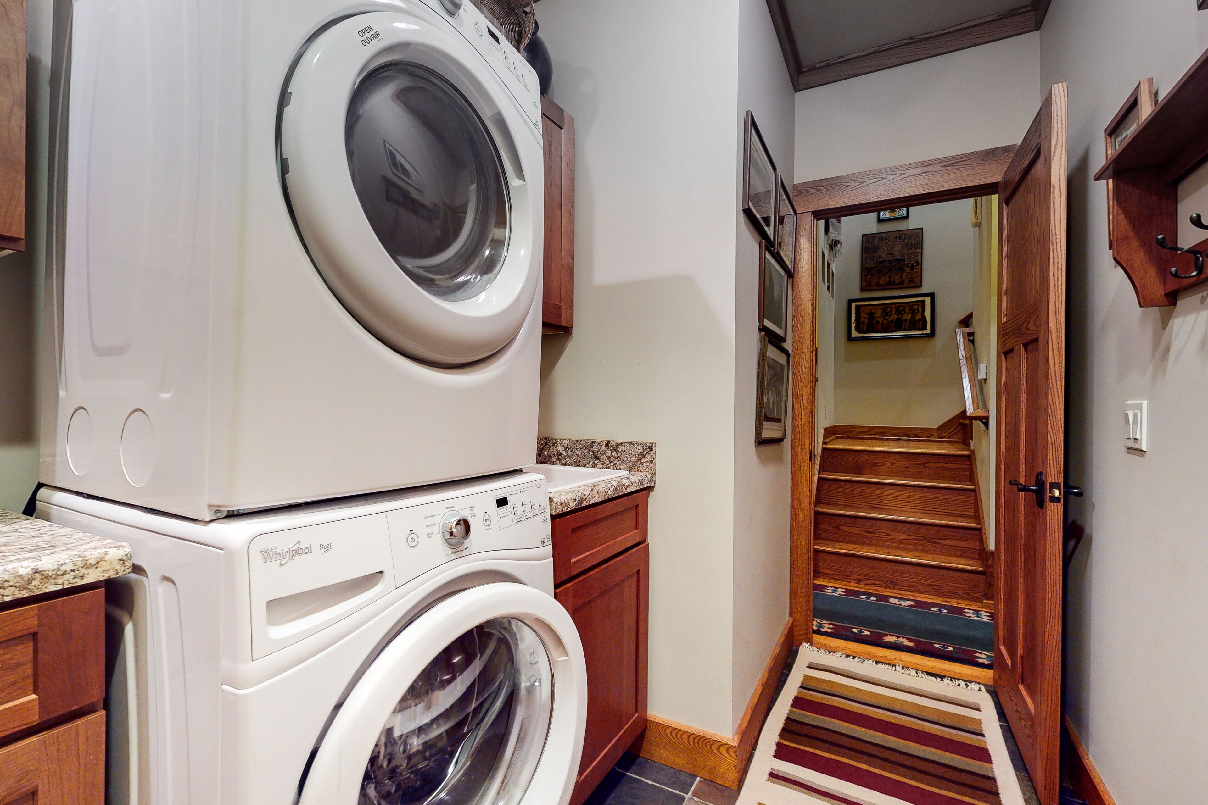 Home near downtown with a fireplace, deck, grill, central AC & washer/dryer
