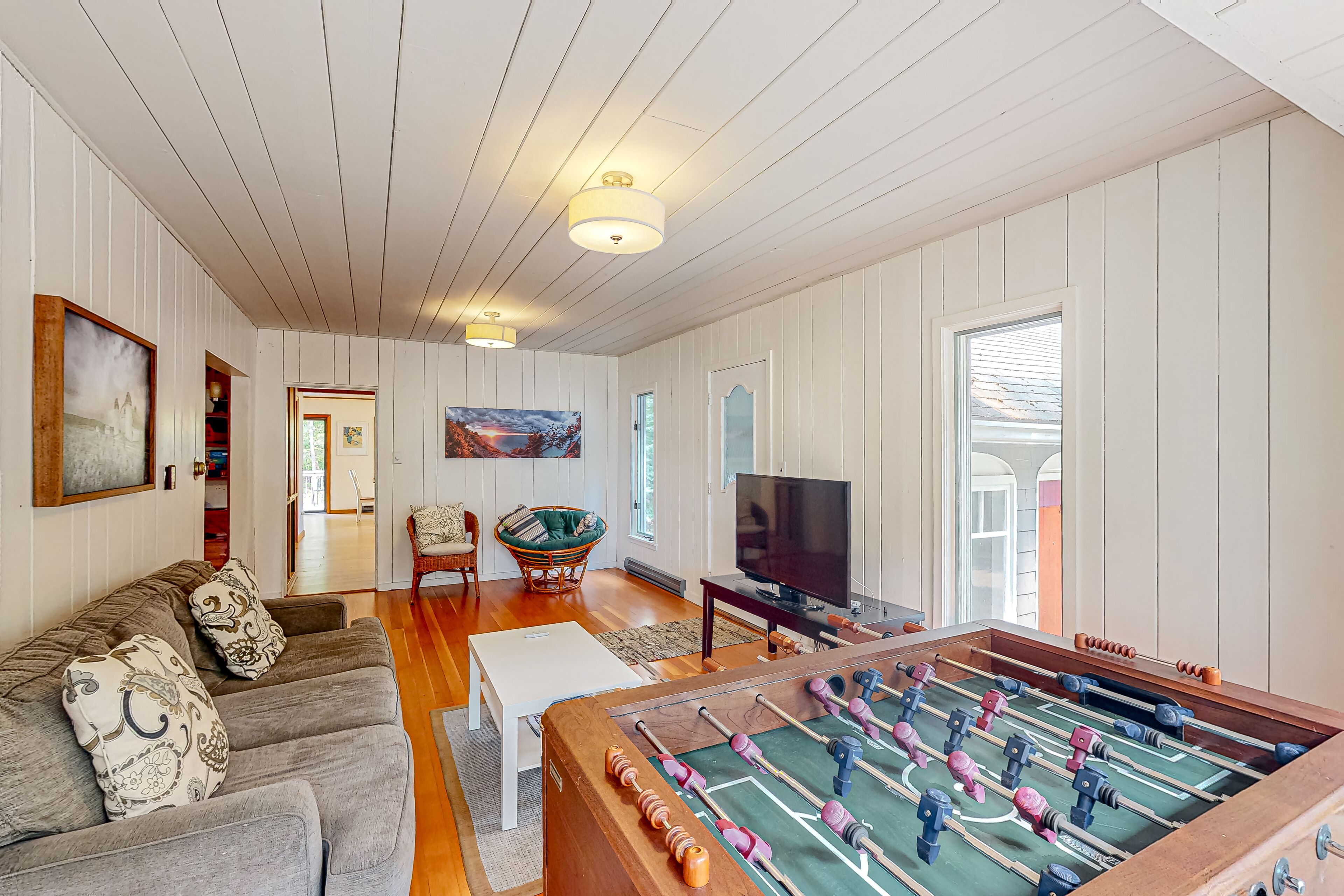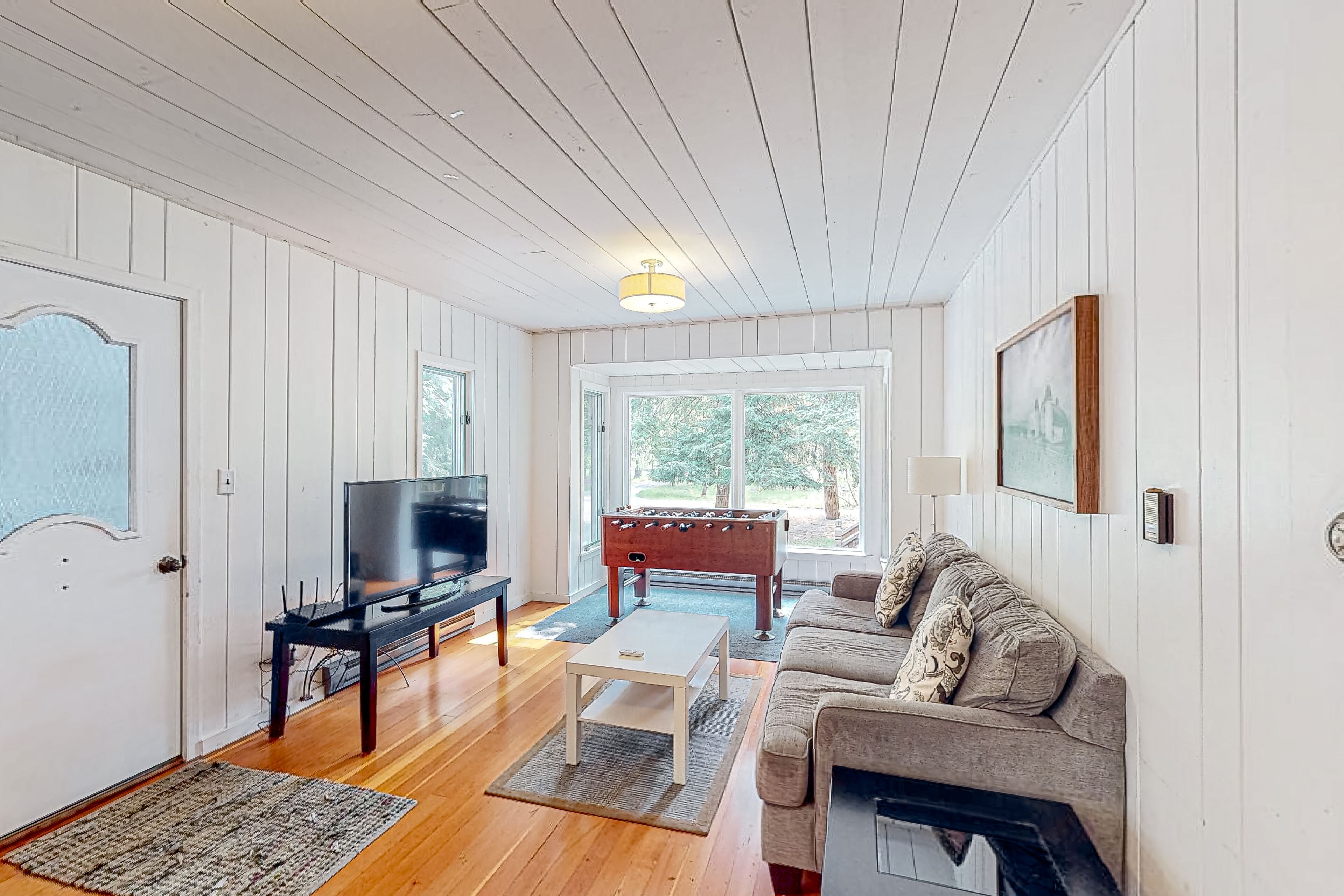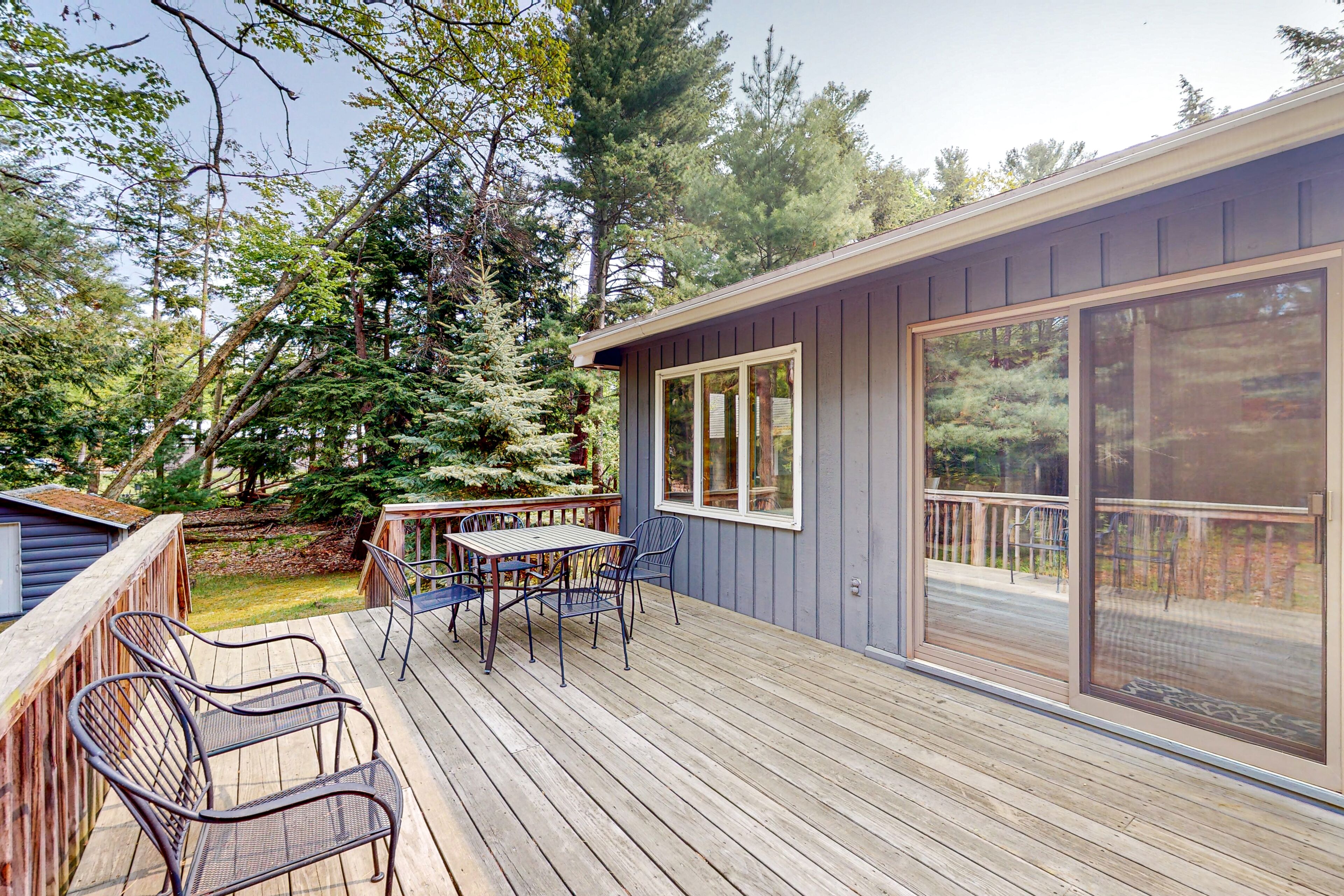 Dog-friendly downtown Glen Arbor home with deck, gas grill, and washer/dryer WanderlustOur calendar is updated in real-time & our nightly rates are accurately displayed. Simply enter your desired dates and click 'Book Now!'Located in Glen Arbor on two acres of park-like grounds, this three-bedroom retreat with high-speed WiFi will be the perfect choice for a memorable stay with your family or friends! Take advantage of this prime location within walking distance from downtown Glen Arbor and pay a visit to its charming restaurants and shops. Don't forget to visit the sparkling waters of Lake Michigan as well. This darling retreat features a large wooden deck with an outdoor dining area and a propane grill, perfect for warm-weather barbecues. Kick back and relax in the living area, furnished with a comfortable sofa, a foosball table, and a flatscreen TV with cable. The family room is off the living area and provides guests with a more private place to unwind and relax. Snuggle up in front of the fireplace and start planning your next adventures along with your loved ones! The well-appointed kitchen is complete with stainless steel appliances and every cookware you could possibly need to whip up delicious homemade meals for the group. THINGS TO KNOW This property is managed by Vacasa Michigan LLC.If you are bringing a dog on your trip, the pet fee is already included in your quote when selecting ‘Yes’ to pets. If you would like to add more dogs, please contact us. The pet fee is per stay and ranges between $150 and $200, depending on the bedroom count, and will apply for each additional dog.Parking notes: There is free parking available for 3 vehicles.Damage waiver: The total cost of your reservation for this Property includes a nightly damage waiver fee, plus tax if applicable (the “Damage Waiver”). (A discount may be applied for stays of 28 nights or longer, if permitted.) The Damage Waiver covers you for up to $3,000 of accidental damage to the Property or its contents (such as furniture, fixtures, and appliances) as long as you report the incident to the host prior to checking out. The Damage Waiver fee eliminates the need for a traditional security deposit.More information can be downloaded from the "Rental Agreement" on the checkout page.Due to local laws or HOA requirements, guests must be at least 25 years of age to book. Guests under 25 must be accompanied by a parent or legal guardian for the duration of the reservation.