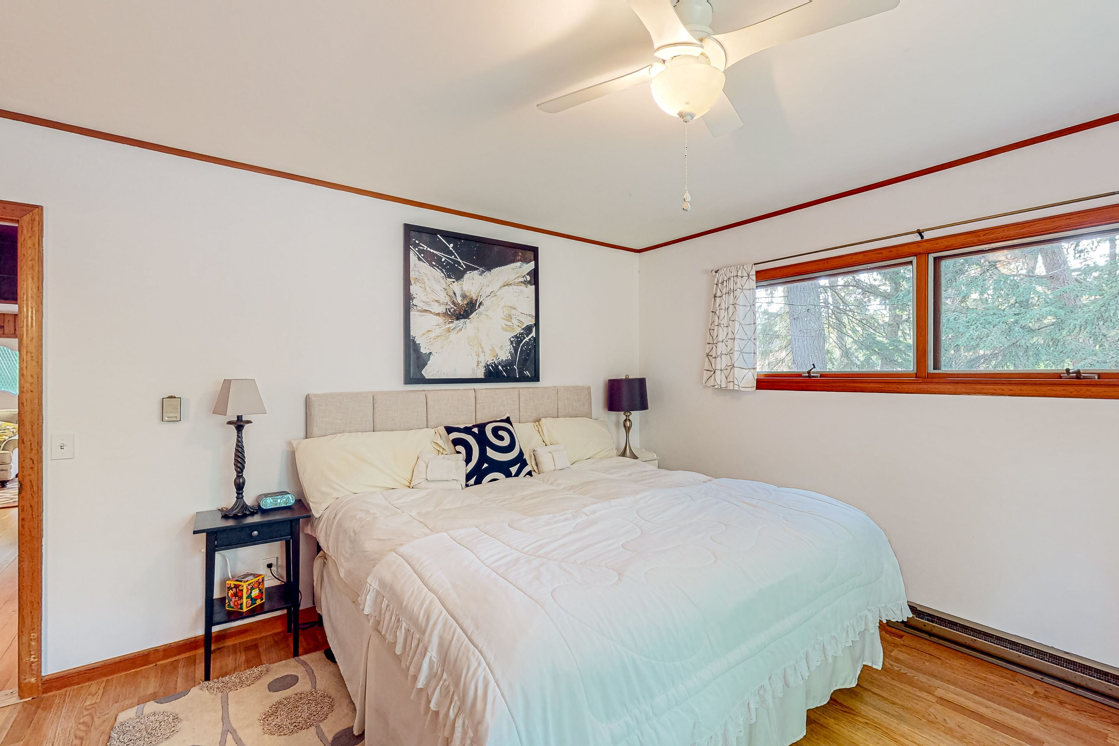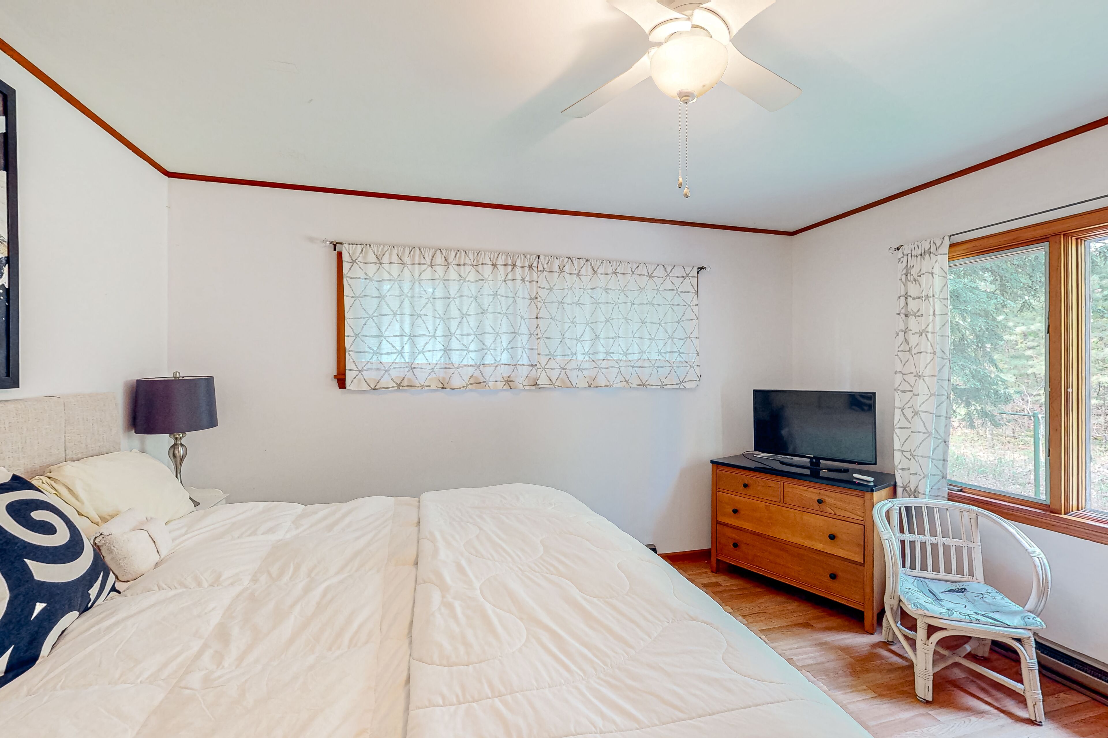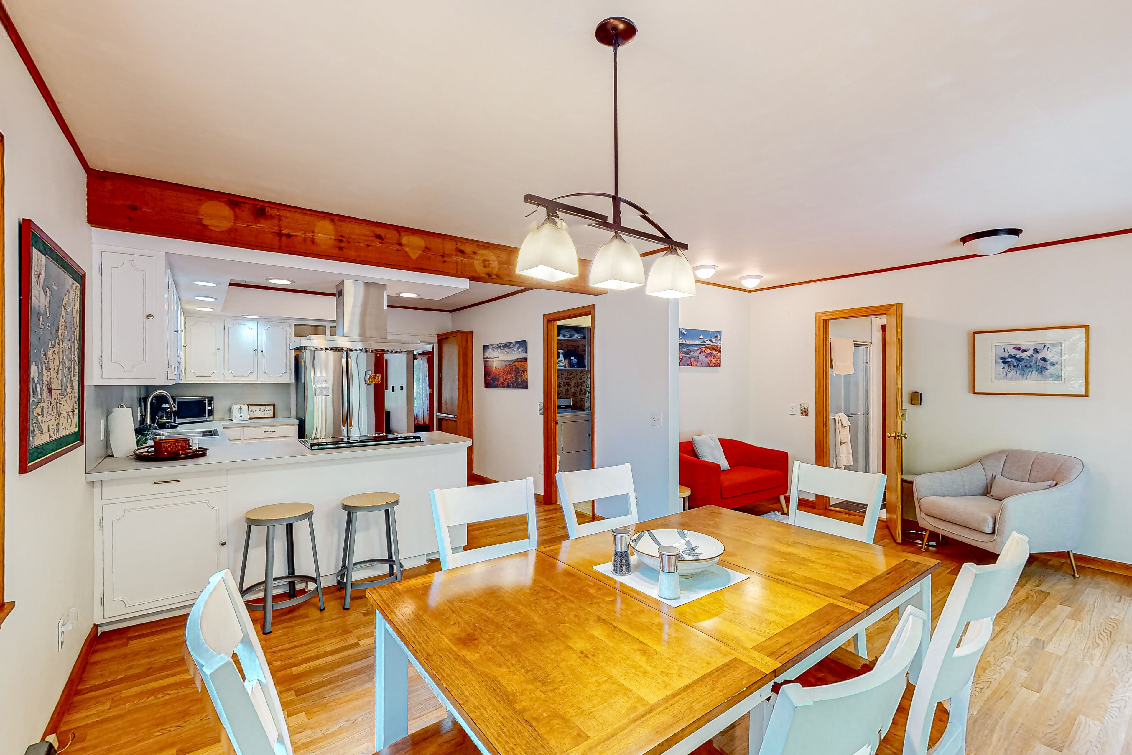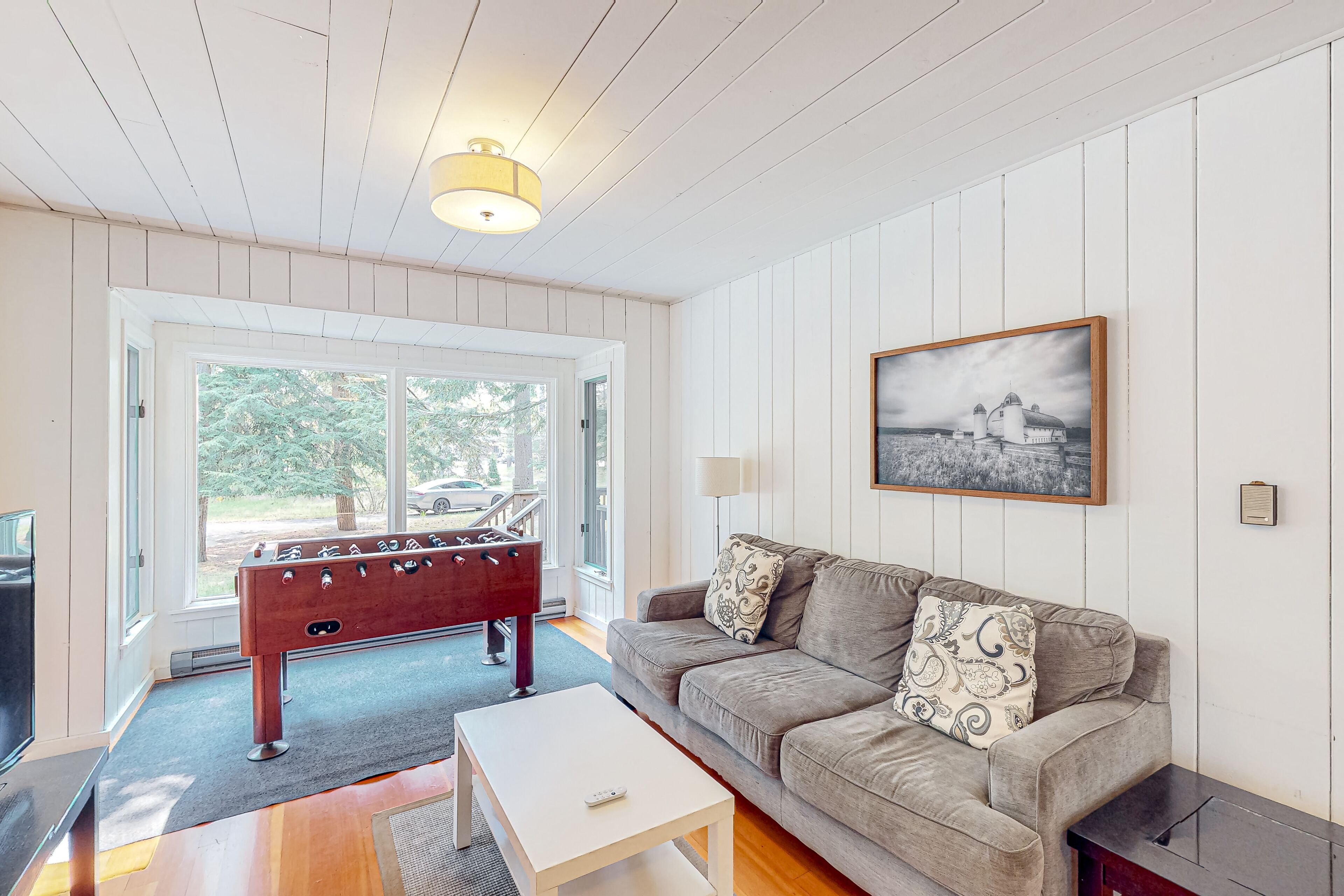 Dog-friendly downtown Glen Arbor home with deck, gas grill, and washer/dryer WanderlustOur calendar is updated in real-time & our nightly rates are accurately displayed. Simply enter your desired dates and click 'Book Now!'Located in Glen Arbor on two acres of park-like grounds, this three-bedroom retreat with high-speed WiFi will be the perfect choice for a memorable stay with your family or friends! Take advantage of this prime location within walking distance from downtown Glen Arbor and pay a visit to its charming restaurants and shops. Don't forget to visit the sparkling waters of Lake Michigan as well. This darling retreat features a large wooden deck with an outdoor dining area and a propane grill, perfect for warm-weather barbecues. Kick back and relax in the living area, furnished with a comfortable sofa, a foosball table, and a flatscreen TV with cable. The family room is off the living area and provides guests with a more private place to unwind and relax. Snuggle up in front of the fireplace and start planning your next adventures along with your loved ones! The well-appointed kitchen is complete with stainless steel appliances and every cookware you could possibly need to whip up delicious homemade meals for the group. THINGS TO KNOW This property is managed by Vacasa Michigan LLC.If you are bringing a dog on your trip, the pet fee is already included in your quote when selecting ‘Yes’ to pets. If you would like to add more dogs, please contact us. The pet fee is per stay and ranges between $150 and $200, depending on the bedroom count, and will apply for each additional dog.Parking notes: There is free parking available for 3 vehicles.Damage waiver: The total cost of your reservation for this Property includes a nightly damage waiver fee, plus tax if applicable (the “Damage Waiver”). (A discount may be applied for stays of 28 nights or longer, if permitted.) The Damage Waiver covers you for up to $3,000 of accidental damage to the Property or its contents (such as furniture, fixtures, and appliances) as long as you report the incident to the host prior to checking out. The Damage Waiver fee eliminates the need for a traditional security deposit.More information can be downloaded from the "Rental Agreement" on the checkout page.Due to local laws or HOA requirements, guests must be at least 25 years of age to book. Guests under 25 must be accompanied by a parent or legal guardian for the duration of the reservation.