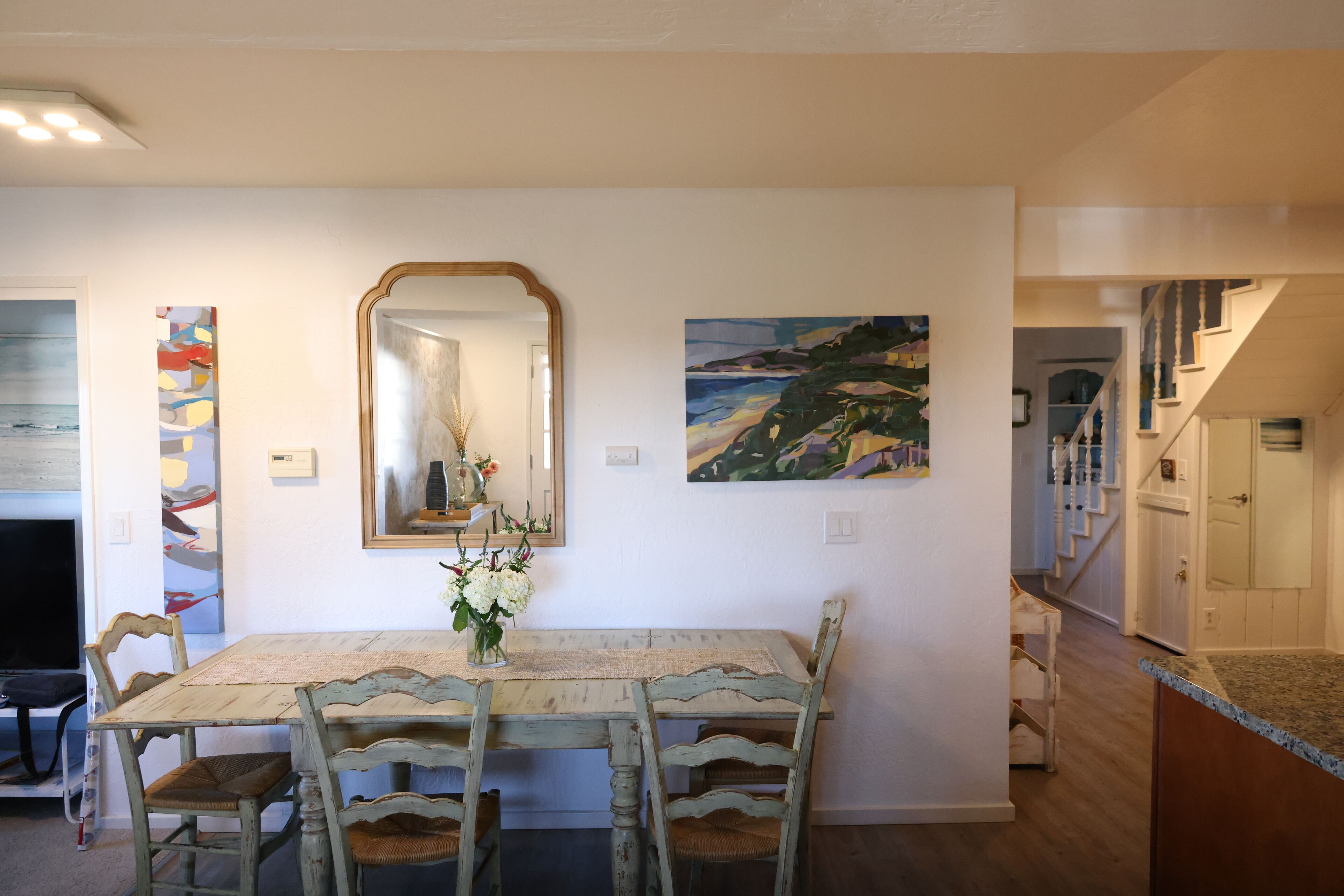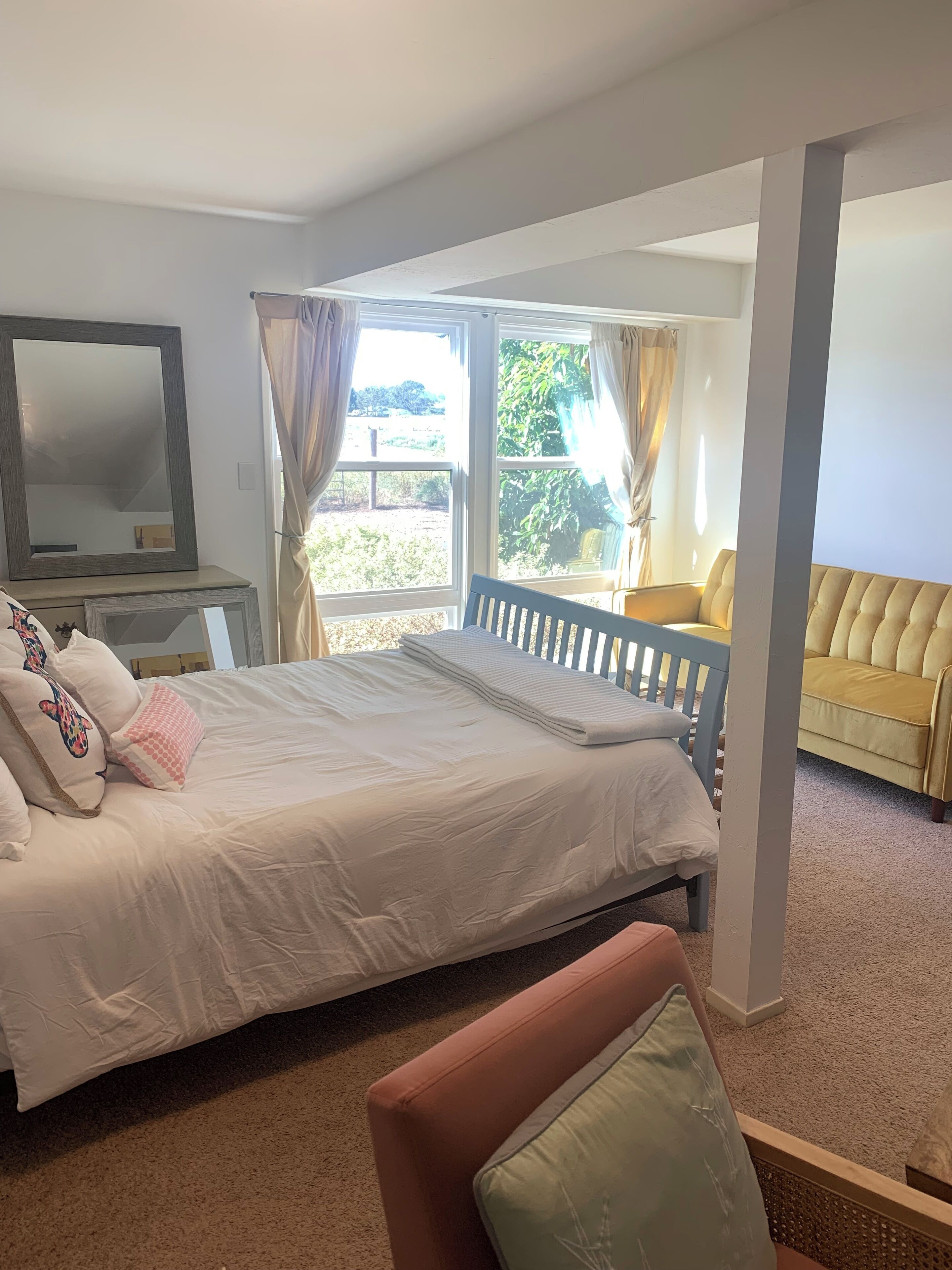 Private and peaceful 2 BDR 1 BA retreat. Walking distance to the beach. Centrally located between Santa Cruz and Monterey, this property is situated on 2 1/2 acres overlooking the pacific ocean. The unit has two bedrooms with a large split single bath. The unit is the an entire first floor of a two story home. Well suited as a central hub for visiting Santa Cruz and Monterey. It includes two private entrances and full kitchen. Partial ocean view, 15 min walk to the beach. The property includes a patio with access to beautiful gardens and a fire pit.