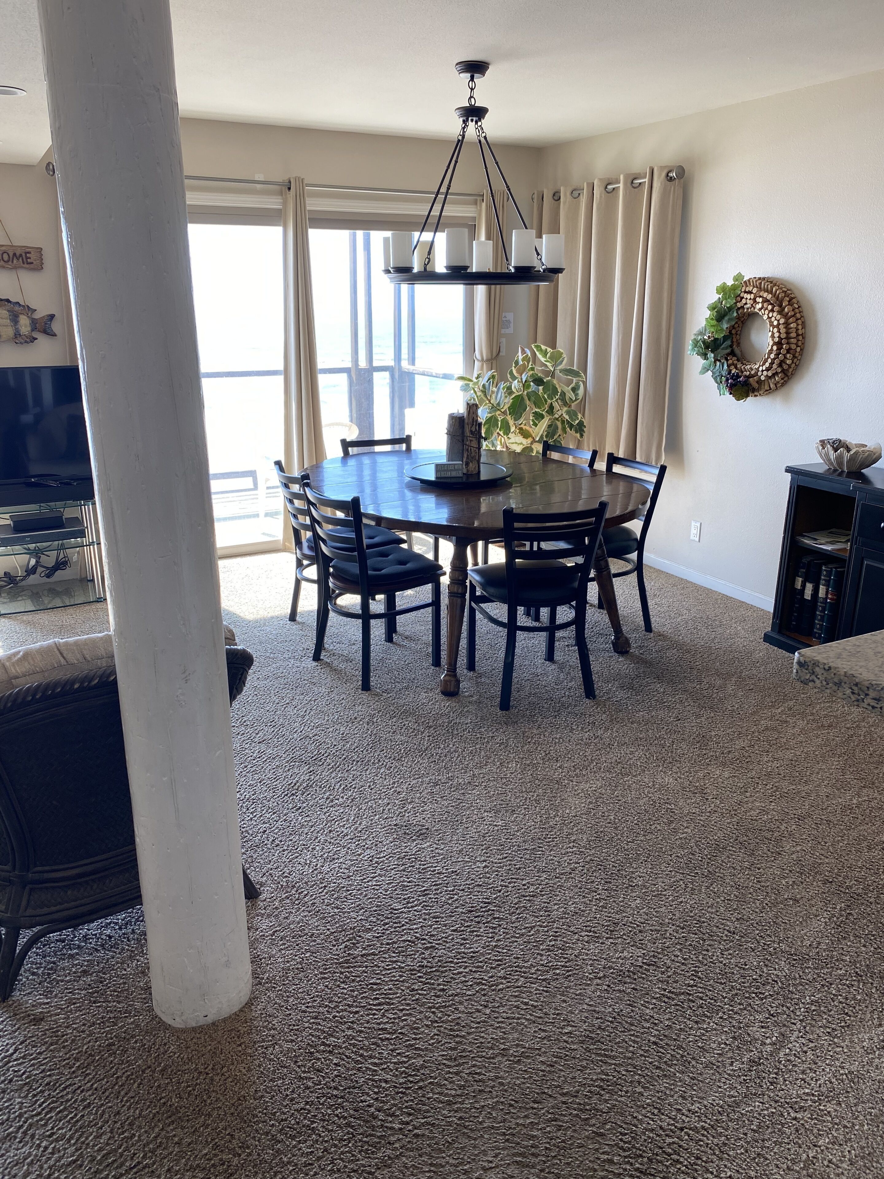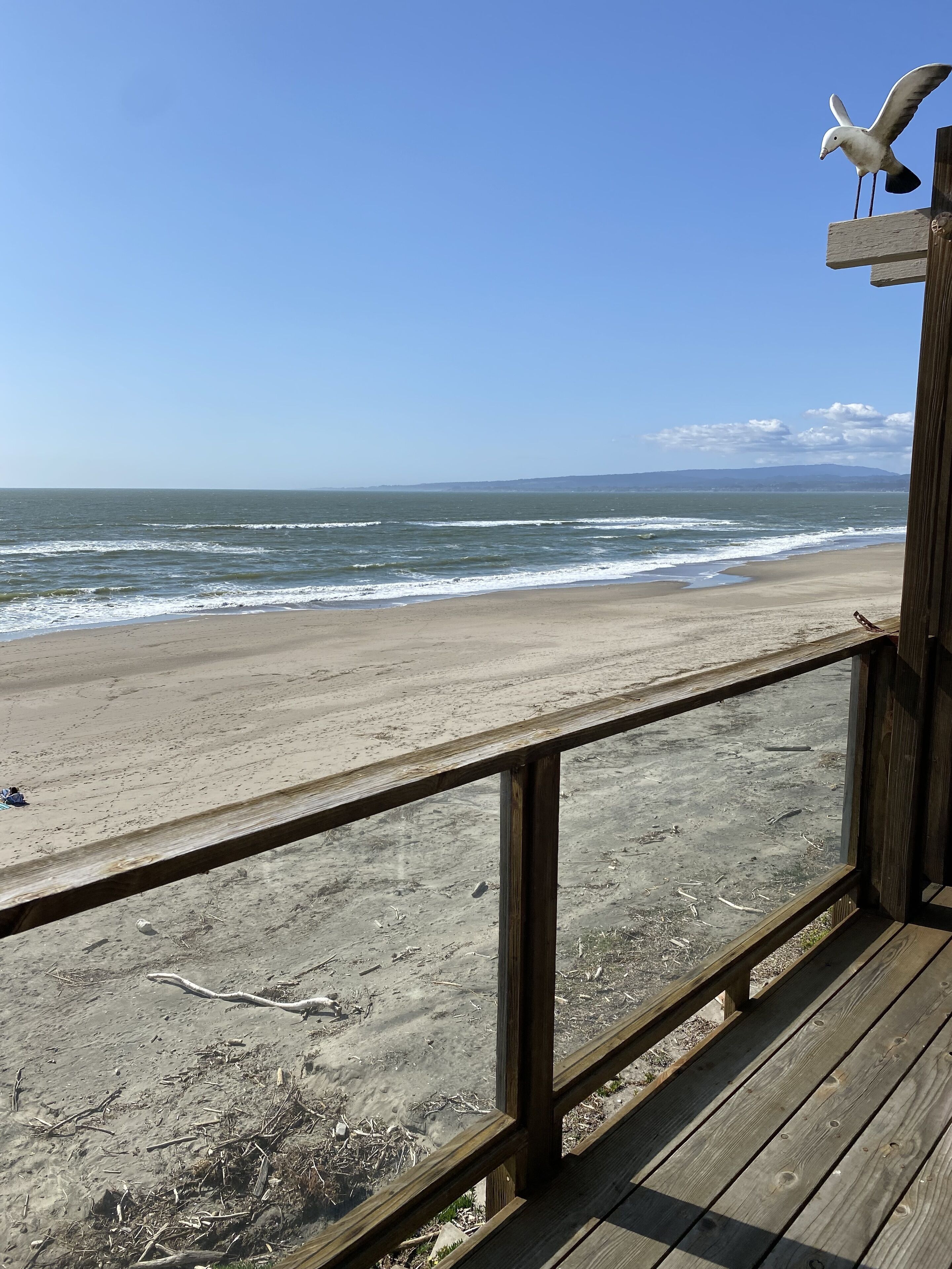 Oceanfront on the Sand - Awesome 4 Bedroom! Our 1750 sq ft tri-level beach house that was completely remodeled in 2007 is located just south of Aptos & Seascape Resort, approximately 12 miles south of Santa Cruz. It offers a panoramic oceanview with 15 miles of sandy beach. You can enjoy your coffee watching the dolphins & surfers and then watch the sunset from your deck. You have direct access to the beach and campfires are permitted until 10pm.The gourmet kitchen of granite & stainless, is well stocked with cooking utensils and staples (spices, oils, etc) anything you may have forgotten. Ample paper products (paper towels,toilet paper) are also supplied. Hair Dryers in 2 bathrooms.The beds are already made up and waiting. Please bring your own bath & beach towels as they are not provided. This is our home away from home that we invite you to share and we do take great care maintaining it and believe that you will have everything you need for a perfect stay. For our guests protection, we have installed a security camera that cover the front driveway.Keywords: