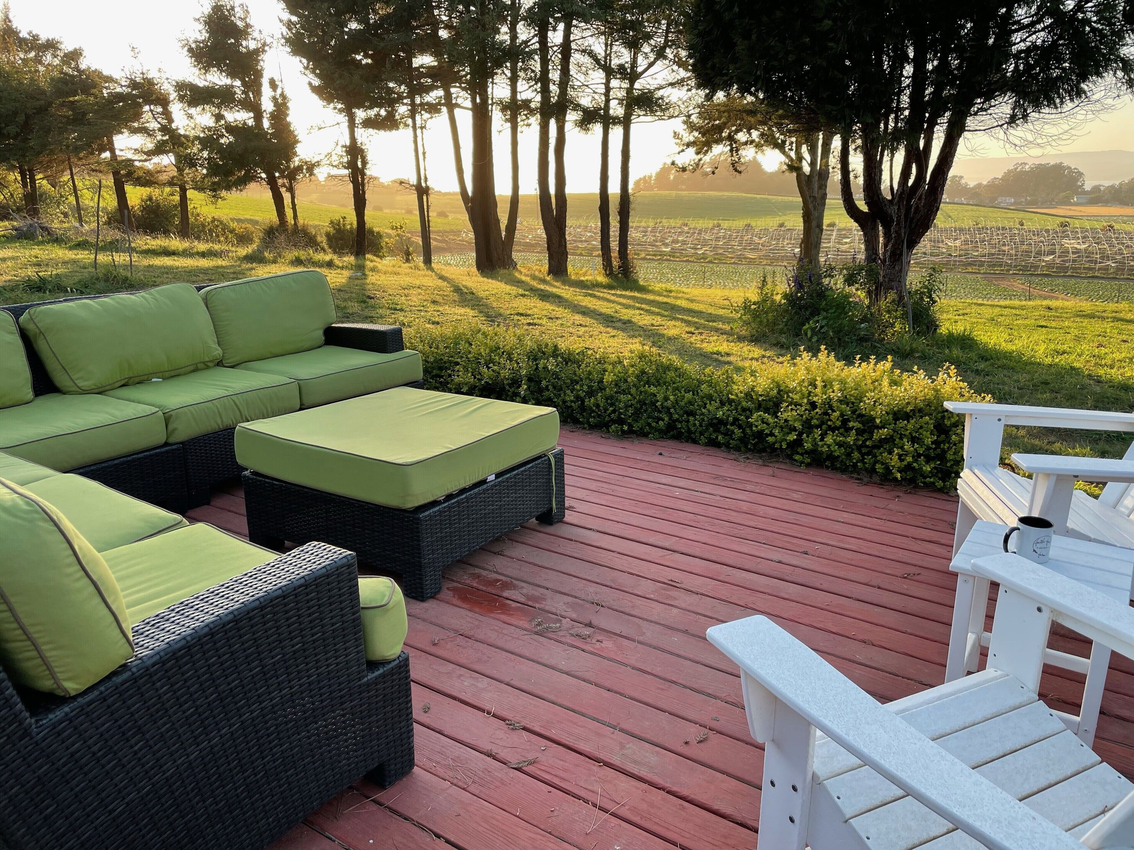9 Acre Estate by the Beach with Amazing Japanese Farm House - monthly rental One of a kind estate on 9 acres by Manresa Beach with a beautiful Japanese farm house. Be inspired by the soaring 25+ foot ceilings and views down to Monterey Bay across strawberry fields. Walk out of your bedroom in the morning to wrap around windows for panoramic views and a wrap around porch to sit in your rocking chair and drink your morning coffee. EPIC sunset views over Monterey Bay from the main living room, porch and front yard every night. Relax on the outdoor patio on the main lawn with pergola, seating for 10+, dining table and chairs and grill while enjoying the views across acres of green fields rolling down to the ocean. You're a minute from the beach and 10 minutes from great restaurants and shops in Aptos. But you'll feel a million miles away surrounded by 50+ Redwoods ringing the front yard, a giant grove of Eucalyptus trees on the hillside next to the house along with flowers and lavender everywhere. During the day watch the hawks circling in the sky above, spot the deer on the hillside or the Great Horned Owls in the Eucalyptus grove. At night listen to the sounds of the ocean roaring while you spy hundreds of stars in the night sky.