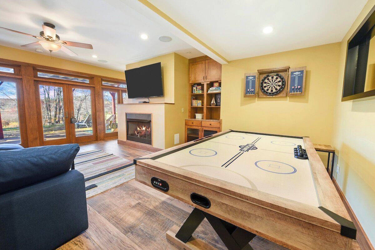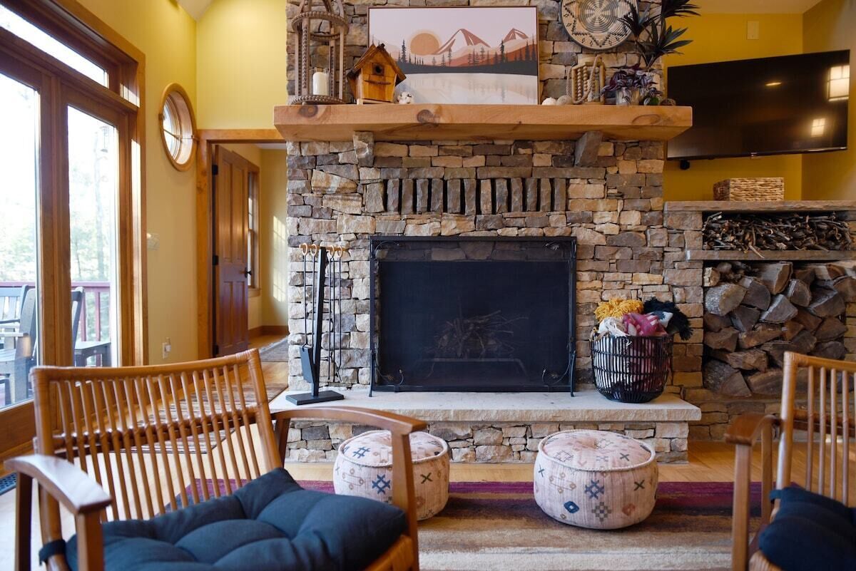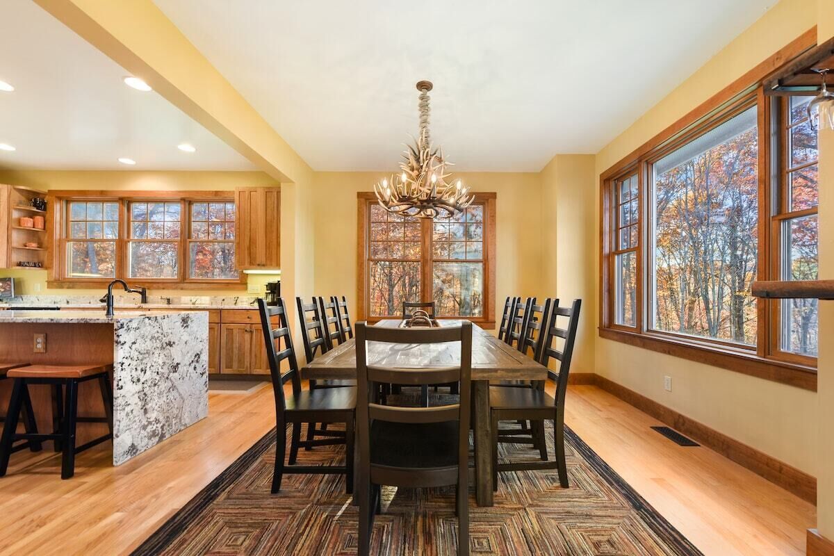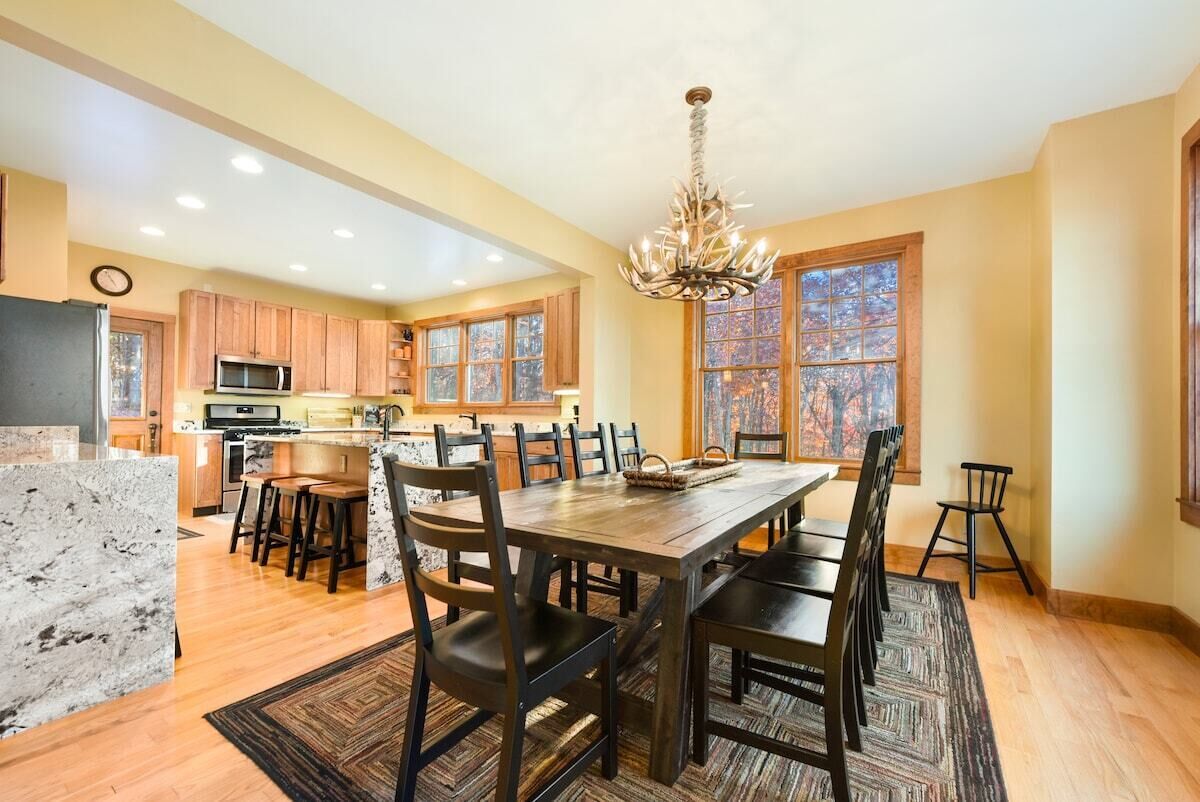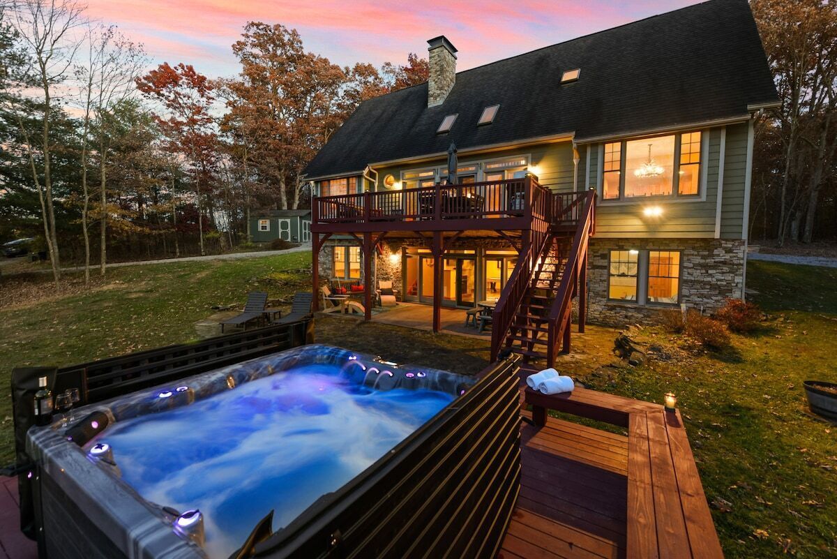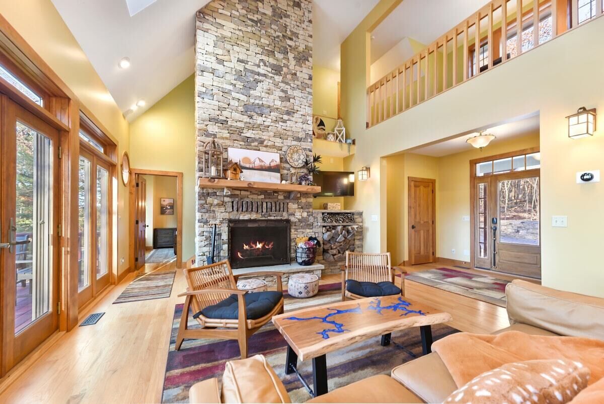 Wisp'd Away-Lakefront*DOCK*on 3+acres Summary:Be Wisp’d Away...To your own wooded, lakefront hideaway. A boat slip, sledding hill and 3.5-acres of private trails allow for true year around fun. Nestled within one of Deep Creek Lake's most tranquil coves, Wisp’d Away provides a warm atmosphere to enjoy the good things in life with good people. Whether it’s an adventurous day on the lake, reconnecting with nature or a cozy evening at the fire pit.Located 20 min from downtown Mchenry & Wisp Resort your vacation awaits.The Space:If one word were to describe Wisp'd Away it would be "Hygge".If you have ever left a gathering of friends and family and felt as if you were wrapped in a hug, that is hygge; a feeling of comfort and joy, brought about by time with close-ones in a setting of effortless, cozy luxury that brings the outdoors in. With an open floor plan and views of either the lake or serene wooded trails from every window in the house, Wisp'd Away provides for a simple, modern cabin feel. Impeccably furnished by local artisans, Wisp'd Away's high-end touches such as exotic stone kitchen counters, a brand-new, wifi-enabled, 8-person jacuzzi, 2 outdoor gas grills, 4 Roku Smart TV's, a bluetooth compatible Crosley record player, a Tesla level 2 charger and a massive stone fireplace located in the center of the house, leaves a luxurious modern-vintage feel in every space of the home. The heart of the home: eating & drinking, oh my!Inside, and on the main level, a wide open kitchen and dining area allows for seating up to 12 people, plus 1 infant highchair and 2 toddler highchairs. A large center kitchen island and bar give space for casual morning coffee and breakfast prep while a formal sit-down dinning table comfortably sits 10 for family meals. The kitchen includes everything you need to cook a full Holiday dinner or prepare for a 4th of July celebration; with 2 stone sinks and ample counter space there is more than enough room for multiple cooks in this kitchen. A full-size, walk-in pantry affords for abundant storage and under cabinet lighting serves as early morning ambiance for sunrise cups of coffee. Cuisinart pots/pans, cupcake/muffin tins, cookie sheets, pie plates, multiple casserole dishes, storage Tupperware containers along with mini-appliances such as a Keurig coffee machine, a drip coffee maker, toaster oven, rice cooker, Hot Pot pressure cooker, 2 blenders, tea kettle and an ice machine located in the freezer. Downstairs, a mini-kitchenette area located in the movie and game room, allows for guests staying on the lower level, to make a quick cup of coffee and hop back in bed, as well as, a blender bar area for evening cocktails and treats during game times. (Keurig coffee machine, mini fridge, microwave & sink)The Billiard's room includes a live edge drink rail and bar and mini fridge for late night fun without disturbing the rest of the house. Outside, 2 gas grills and multiple seating areas give you various options for gathering. The upstairs patio consists of an 8-person dinning table and outdoor living room nook, while the downstairs walkout opens up to extra large Adirondack chairs, a round picnic table, a porch swing, 2 loungers and access to the jacuzzi platform with bench seating all around. Captain, Pirate or Stow-away: work and play!For all you Captains out there, the upstairs loft area has a dedicated workspace inclusive of a 24in-HD, flatscreen monitor and a HDMI cable for laptop connection. There is 1gb internet throughout the house.Pirates, pick your playtime: on the lake, in the woods or are you an indoor stow-away?Whether you are an adrenaline junky and want to push the limits waterskiing/wakeboarding, white-water rafting and tubbing or prefer to slow down with a stand-up-paddle-board (SUP), kayak or canoe trip, Wisp'd Away's lake frontage has you covered. Meander down a short private path to an assigned boat slip and dock. SUP/canoe or kayak around Savage Cove to explore our wetland refuge and its wide variety of ducks, turtles and birds, or jump on your boat and head directly into the larger body of Deep Creek Lake for fun-filled afternoons of boating, sailing and tubing. Tie up an inflatable pad off the dock and spend a lazy afternoon relaxing in the sun. (Rental options for all water equipment referenced in the Guidebook).Are you interested in a wooded adventure? Mountain biking, hiking, snowshoeing, and forest Hide-n-Seek tournaments? Head out into our 3 .5 acres of private trails for a quick mountain bike or cross country ski warm-up-- before hitting some of DCL's larger trail system or play rounds of hide-n-seek in the woods with the little ones, build a fort, play freeze tag or climb, swing and flip with your littles on the Creative Playthings outdoor activity center. Your imagination is the only limit.Indoor Stow-aways: need to rest a sunburn? Rainy day? Some alone time? Every communal room in Wisp'd Away is arranged to foster a sense of togetherness, conversation and well-being. On the main floor, the cozy living space makes perfect use of the large glass patio doors giving way to expansive views of the lake and woods, while a grand stone fireplace brings about a sense of intimacy and warmth. Local artisan furnishings and decor provide for just the right touch of under-spoken luxury while you sit and read by a roaring fire, or enjoy a glass of wine while listening to some music. The open floor plan across the kitchen/dining and living area gifts a feeling of oneness with all the activities of the home.On the lower level, the main family room with a gas-burning fire place and radiant-heated tile flooring, hosts a 70-in Roku Smart TV and massive cloud couch for movie nights and game times. A full-size, electric air-hockey table, dart board and multiple boardgames give options for more indoor fun. A private Billiards room grants additional space for separate groups to enjoy different indoor activities- the 7-ft pool table is just the right size 