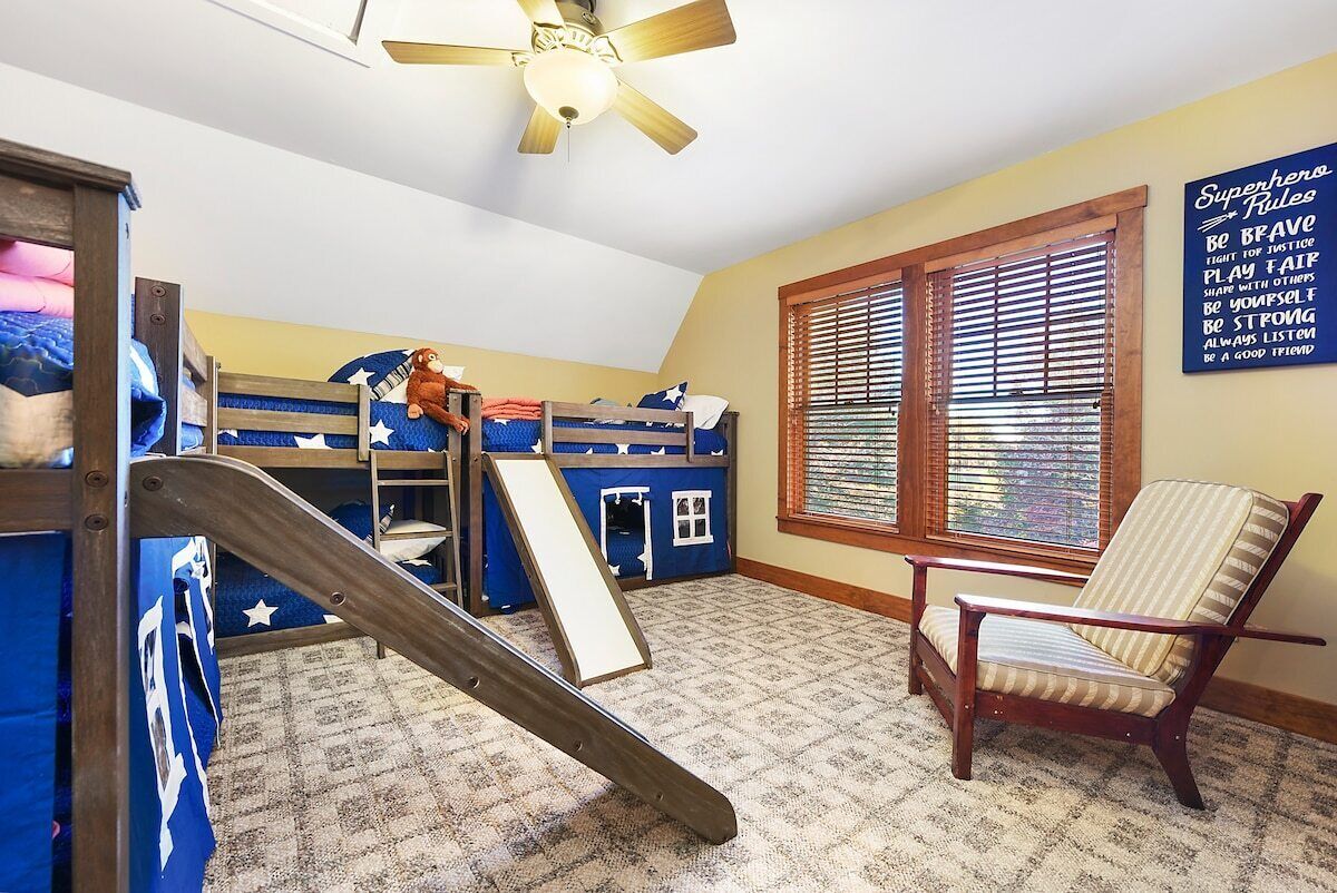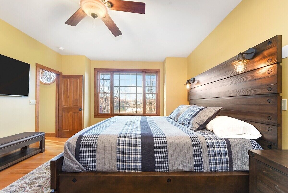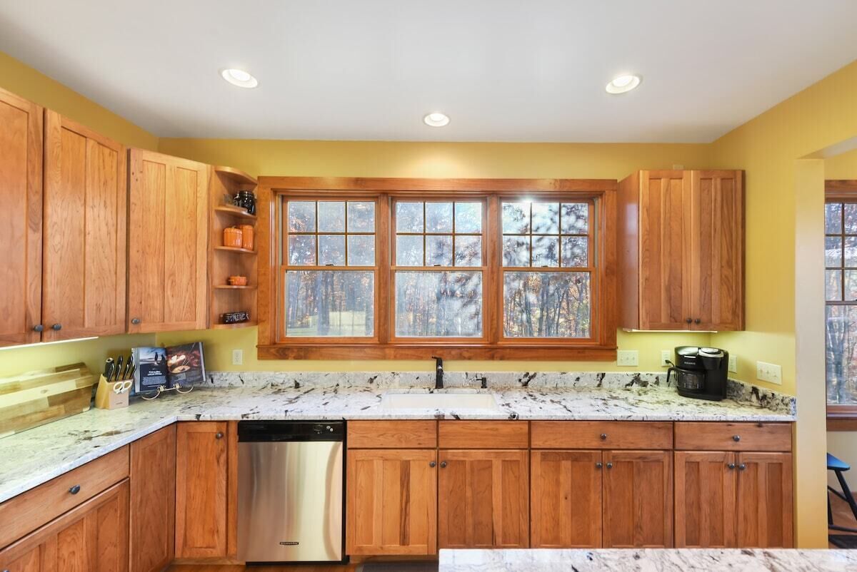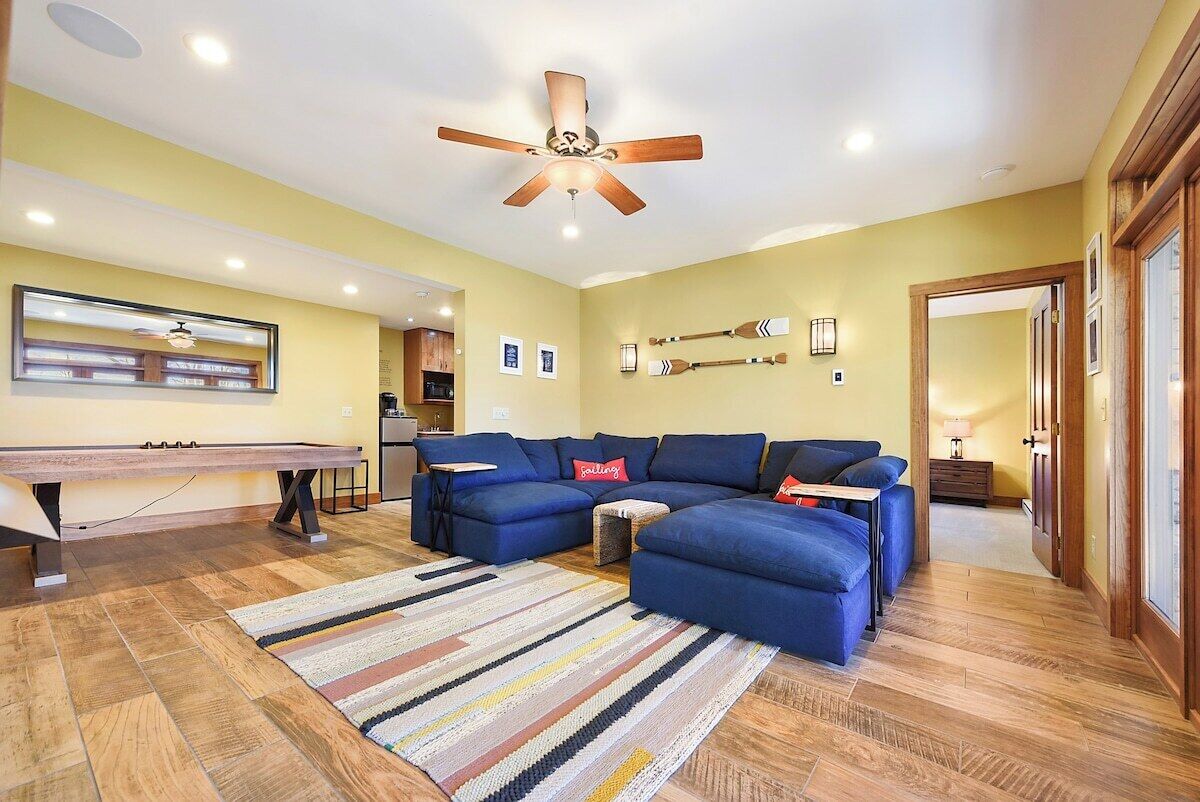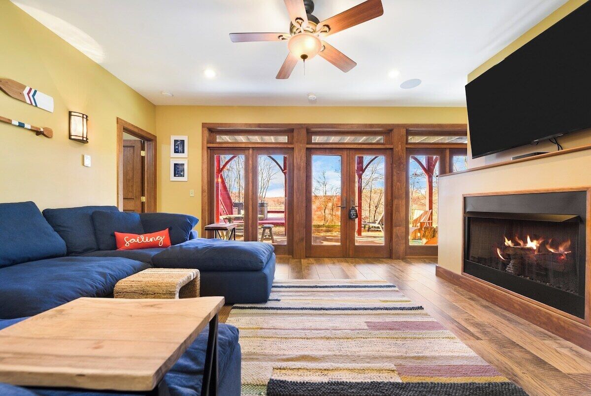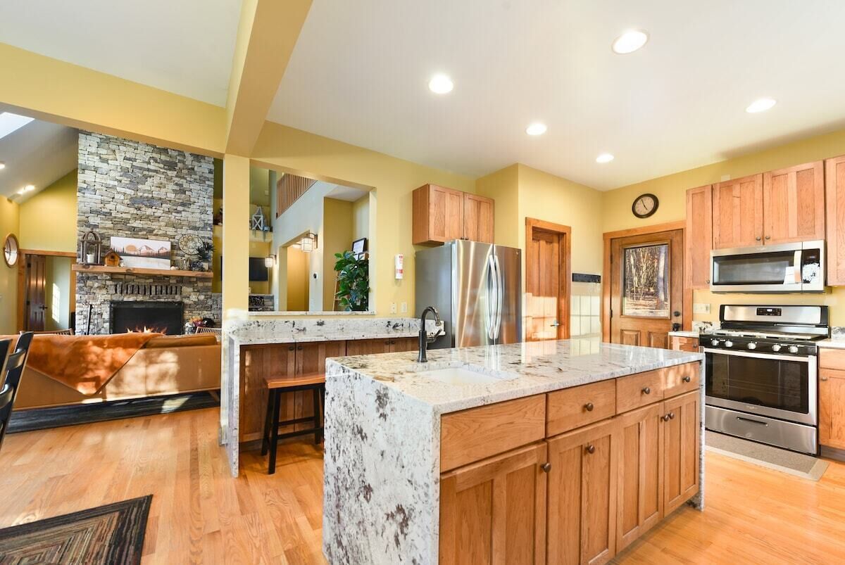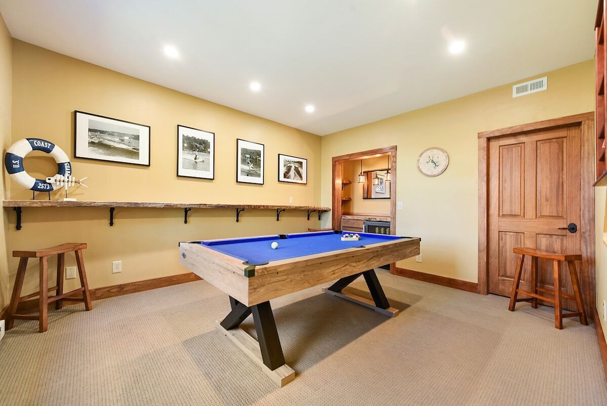 Wisp'd Away-Lakefront*DOCK*on 3+acres Summary:Be Wisp’d Away...To your own wooded, lakefront hideaway. A boat slip, sledding hill and 3.5-acres of private trails allow for true year around fun. Nestled within one of Deep Creek Lake's most tranquil coves, Wisp’d Away provides a warm atmosphere to enjoy the good things in life with good people. Whether it’s an adventurous day on the lake, reconnecting with nature or a cozy evening at the fire pit.Located 20 min from downtown Mchenry & Wisp Resort your vacation awaits.The Space:If one word were to describe Wisp'd Away it would be "Hygge".If you have ever left a gathering of friends and family and felt as if you were wrapped in a hug, that is hygge; a feeling of comfort and joy, brought about by time with close-ones in a setting of effortless, cozy luxury that brings the outdoors in. With an open floor plan and views of either the lake or serene wooded trails from every window in the house, Wisp'd Away provides for a simple, modern cabin feel. Impeccably furnished by local artisans, Wisp'd Away's high-end touches such as exotic stone kitchen counters, a brand-new, wifi-enabled, 8-person jacuzzi, 2 outdoor gas grills, 4 Roku Smart TV's, a bluetooth compatible Crosley record player, a Tesla level 2 charger and a massive stone fireplace located in the center of the house, leaves a luxurious modern-vintage feel in every space of the home. The heart of the home: eating & drinking, oh my!Inside, and on the main level, a wide open kitchen and dining area allows for seating up to 12 people, plus 1 infant highchair and 2 toddler highchairs. A large center kitchen island and bar give space for casual morning coffee and breakfast prep while a formal sit-down dinning table comfortably sits 10 for family meals. The kitchen includes everything you need to cook a full Holiday dinner or prepare for a 4th of July celebration; with 2 stone sinks and ample counter space there is more than enough room for multiple cooks in this kitchen. A full-size, walk-in pantry affords for abundant storage and under cabinet lighting serves as early morning ambiance for sunrise cups of coffee. Cuisinart pots/pans, cupcake/muffin tins, cookie sheets, pie plates, multiple casserole dishes, storage Tupperware containers along with mini-appliances such as a Keurig coffee machine, a drip coffee maker, toaster oven, rice cooker, Hot Pot pressure cooker, 2 blenders, tea kettle and an ice machine located in the freezer. Downstairs, a mini-kitchenette area located in the movie and game room, allows for guests staying on the lower level, to make a quick cup of coffee and hop back in bed, as well as, a blender bar area for evening cocktails and treats during game times. (Keurig coffee machine, mini fridge, microwave & sink)The Billiard's room includes a live edge drink rail and bar and mini fridge for late night fun without disturbing the rest of the house. Outside, 2 gas grills and multiple seating areas give you various options for gathering. The upstairs patio consists of an 8-person dinning table and outdoor living room nook, while the downstairs walkout opens up to extra large Adirondack chairs, a round picnic table, a porch swing, 2 loungers and access to the jacuzzi platform with bench seating all around. Captain, Pirate or Stow-away: work and play!For all you Captains out there, the upstairs loft area has a dedicated workspace inclusive of a 24in-HD, flatscreen monitor and a HDMI cable for laptop connection. There is 1gb internet throughout the house.Pirates, pick your playtime: on the lake, in the woods or are you an indoor stow-away?Whether you are an adrenaline junky and want to push the limits waterskiing/wakeboarding, white-water rafting and tubbing or prefer to slow down with a stand-up-paddle-board (SUP), kayak or canoe trip, Wisp'd Away's lake frontage has you covered. Meander down a short private path to an assigned boat slip and dock. SUP/canoe or kayak around Savage Cove to explore our wetland refuge and its wide variety of ducks, turtles and birds, or jump on your boat and head directly into the larger body of Deep Creek Lake for fun-filled afternoons of boating, sailing and tubing. Tie up an inflatable pad off the dock and spend a lazy afternoon relaxing in the sun. (Rental options for all water equipment referenced in the Guidebook).Are you interested in a wooded adventure? Mountain biking, hiking, snowshoeing, and forest Hide-n-Seek tournaments? Head out into our 3 .5 acres of private trails for a quick mountain bike or cross country ski warm-up-- before hitting some of DCL's larger trail system or play rounds of hide-n-seek in the woods with the little ones, build a fort, play freeze tag or climb, swing and flip with your littles on the Creative Playthings outdoor activity center. Your imagination is the only limit.Indoor Stow-aways: need to rest a sunburn? Rainy day? Some alone time? Every communal room in Wisp'd Away is arranged to foster a sense of togetherness, conversation and well-being. On the main floor, the cozy living space makes perfect use of the large glass patio doors giving way to expansive views of the lake and woods, while a grand stone fireplace brings about a sense of intimacy and warmth. Local artisan furnishings and decor provide for just the right touch of under-spoken luxury while you sit and read by a roaring fire, or enjoy a glass of wine while listening to some music. The open floor plan across the kitchen/dining and living area gifts a feeling of oneness with all the activities of the home.On the lower level, the main family room with a gas-burning fire place and radiant-heated tile flooring, hosts a 70-in Roku Smart TV and massive cloud couch for movie nights and game times. A full-size, electric air-hockey table, dart board and multiple boardgames give options for more indoor fun. A private Billiards room grants additional space for separate groups to enjoy different indoor activities- the 7-ft pool table is just the right size 