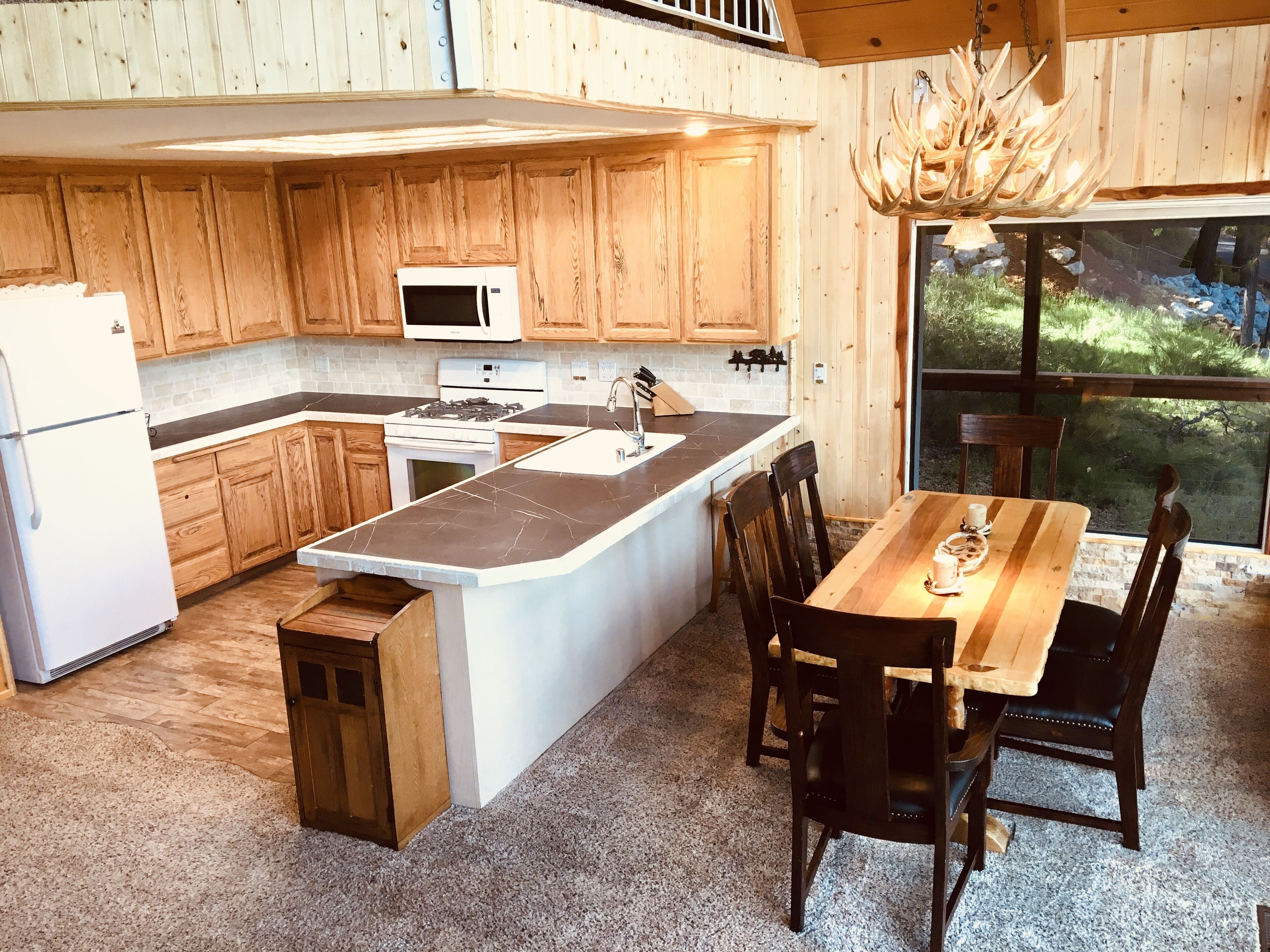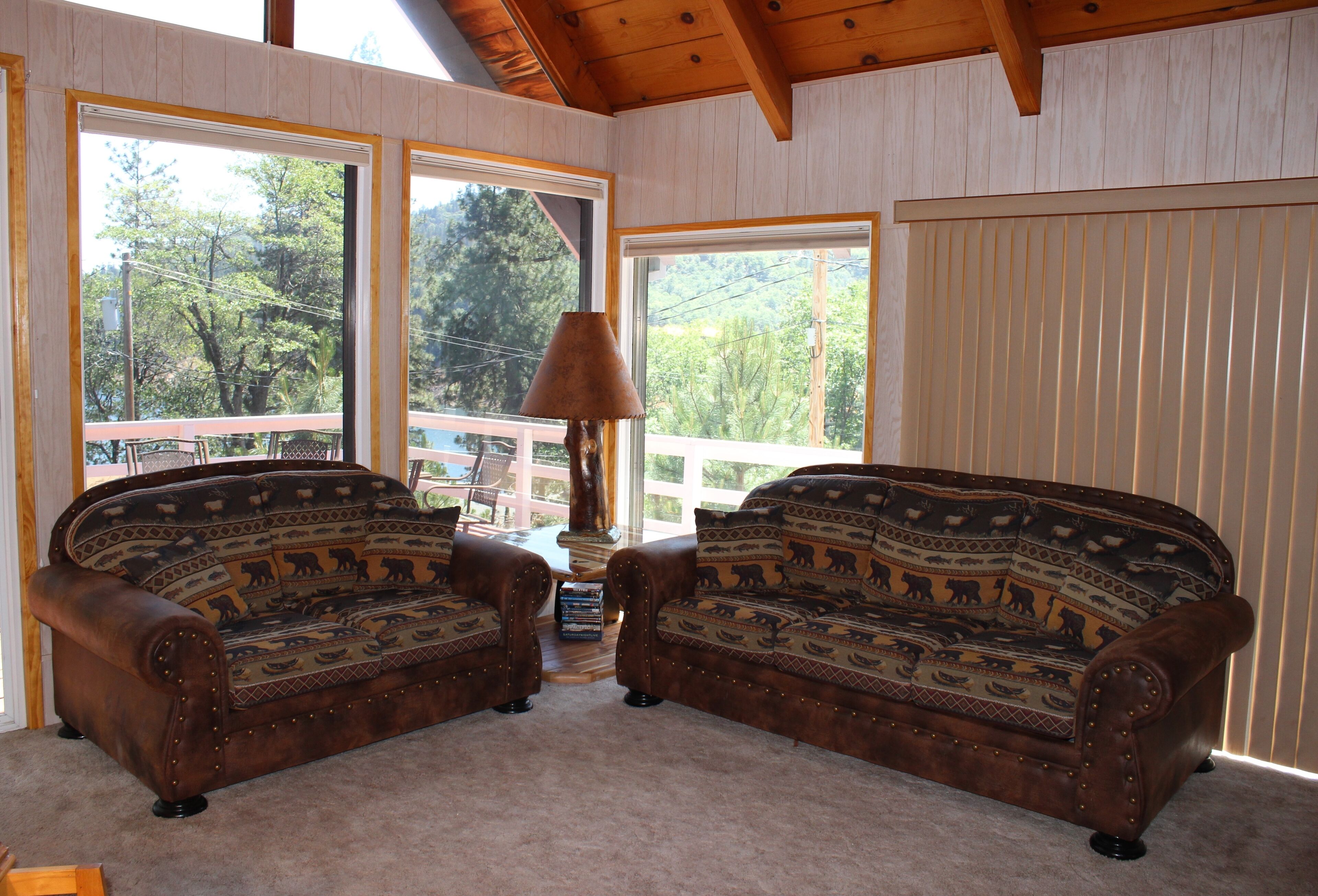Family lake house next to Sugarloaf Marina with a huge deck, views & game room Enjoy views of the lake through the trees from all over this multi level fun house. Two stories of solid windows look out on to the deck in the trees and the lake beyond the street in front of the house. Walk to the marina and hop on your boat (slips, fishing and ski boats can be rented through marina), or trailer and launch your boat and watercraft here at uncrowded and friendly Sugarloaf, Antlers or one of the other nearby launches. There's plenty of parking for your water toys at this ideally situated house. Only 7 minutes from the I-5, you'll feel a world away amongst the trees and water and wildlife. Come home to central air conditioning and heating. Shower or bathe in one of the three uniquely renovated bathrooms. Prepare your meals from our well stocked kitchen with those gathering in the adjoining living area, while looking out onto the huge deck. Perhaps you'd rather grill from this 700 square foot, lighted, wraparound deck, then sit down at one of the two full size patio tables to enjoy and relax. Dine under the shade of the big oak trees during the day or wait until it's dark and do some long awaited stargazing. There is room for everybody to get a good nights rest with sleeping for 12 that includes 2 Cal Kings, and four queens. There are 3 bedrooms, 3 full bathrooms, 2 carports and the game room. Give those that aren't ready to sit down, something to do here on their own floor entirely devoted to playing. Pool table, dart board, board games and a wall mounted flat screen for electronic gamers. A beautiful natural stone hearth hosts a "smart" big screen in the main living area. Pay Per View, movies from our broad DVD library, ROKU TV for your own subscription channels and free Netflix. Resorts, market and eating establishments only a few minutes from the house. Come stay at one of the few rental homes available this close to Lake Shasta.