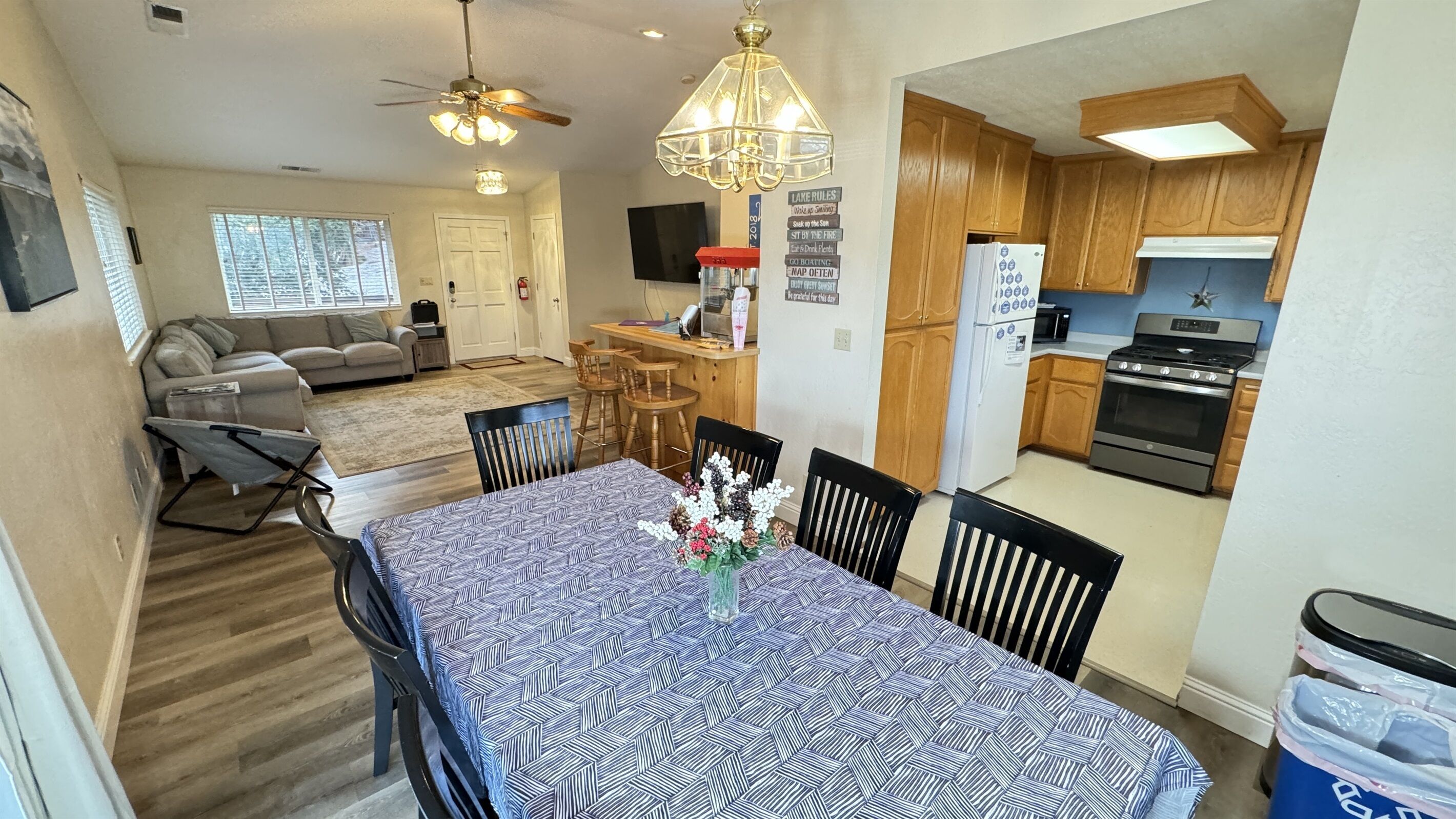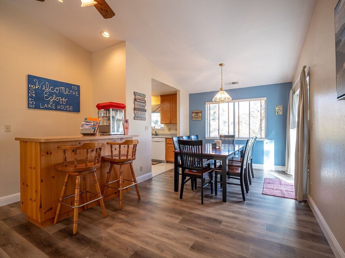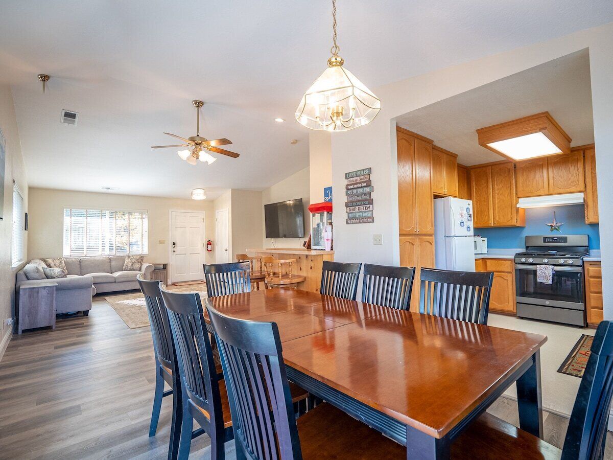 Walk to Lake/Marina, Game Rm, Hot Tub, Sleeps 10 - Shasta Lakeshore Retreat #12 Escape to Shasta Lakeshore Retreat, where cherished memories await just steps away from the shimmering waters of Shasta Lake and Sugarloaf Marina. Welcome to Retreat #12, also known as the Shasta Memory Maker.Recently updated with a fresh interior paint job and modern vinyl flooring for easy cleaning, this charming two-story, 3-bedroom, 2-bathroom retreat comfortably sleeps 10 guests and boasts a private driveway with ample boat parking.Step inside to discover a spacious game room equipped with ping pong and foosball tables, a 65" TV, and fast internet for seamless streaming. Open the sliding glass door to the large covered patio, complete with a gas fire pit and a soothing hot tub, inviting you to unwind amidst nature's embrace.The main level features a cozy living room with a 75" TV and a queen-sized sleeper sofa, while the fully-equipped kitchen beckons with its new appliances and expansive wrap-around deck, perfect for enjoying sunrise breakfasts or sunset dinners.Upstairs, two bedrooms offer serene sanctuaries, while downstairs, another bedroom and the game room provide additional sleeping arrangements and entertainment options.Outside, adventure awaits with easy access to Sugarloaf Marina and the countless recreational opportunities of Shasta Lake, from water sports to fishing and beyond. Plus, this home is just a short 5-minute walk to all but two of the other Retreats in the popular Sugarloaf area of Lakehead.And with Redding's attractions just 30 minutes away, including water parks, casinos, and outdoor adventures, there's something for everyone to enjoy.Make memories that last a lifetime at Retreat #12, your gateway to the ultimate Shasta Lake experience. Our calendar fills up fast, so don't wait to secure your spot. We've garnered over 700 FIVE STAR Reviews for our Shasta Lakeshore Retreats, making us a top choice for an unforgettable vacation. Book your stay now and let the fun begin!