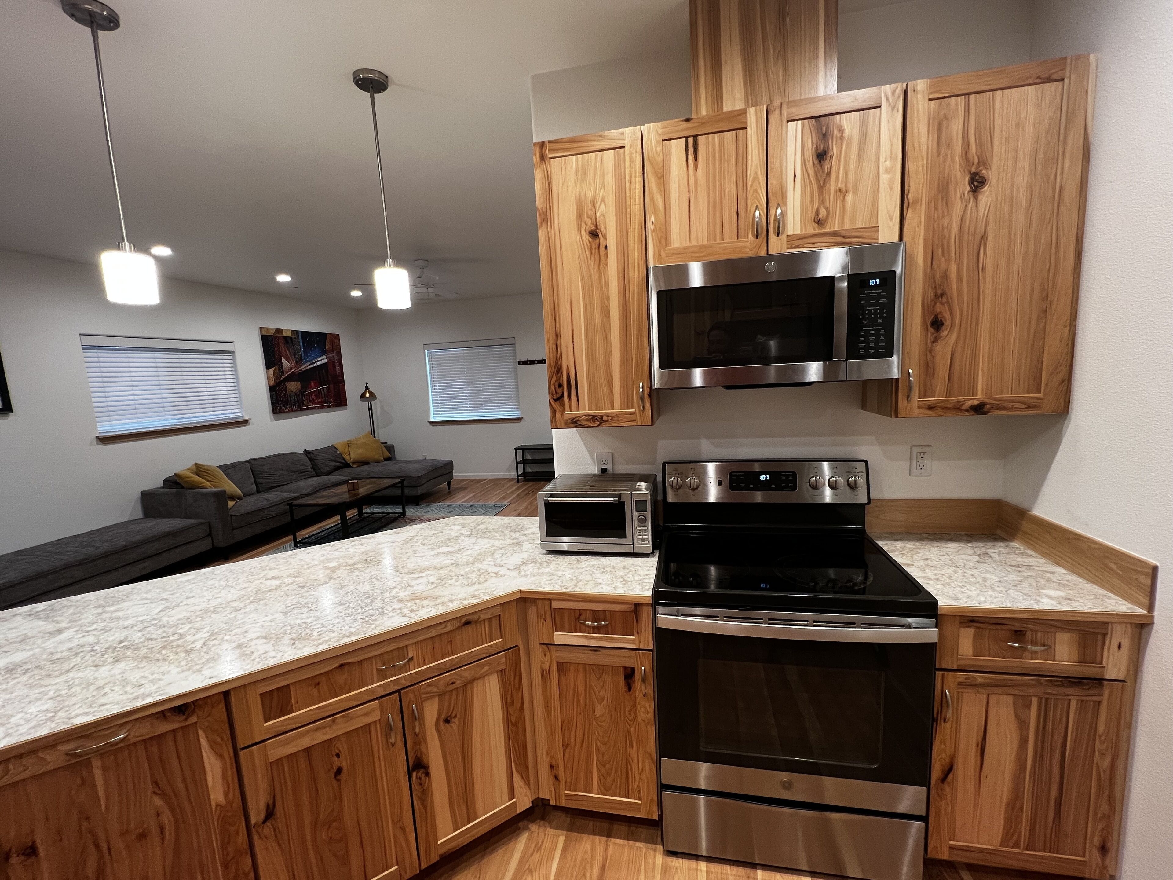 Cozy modern 3bd/2ba home centrally located in the mountains Enjoy our centrally located family-friendly house which features 3 bedrooms and 2 bathrooms. The property is less than 15 minutes away from Lake Siskiyou and the Mt. Shasta Ski Park. You can also enjoy a 5-10 minute walk to near-by coffee shops and restaurants. This home was built in 2020 and offers brand new appliances with beautiful wood floors and cabinets. It's big enough to entertain guests in our open style kitchen while still keeping a cozy atmosphere.Our home is fully furnished which features a large living room, dining room and kitchen with an open concept. We offer a master bedroom with a king bed, a room with a queen bed and our third bedroom has bunk beds which is great for kids. Our home is also located in a beautiful neighborhood as well. We will provide our direct phone numbers so we will be readily available to answer any questions to help make your stay as smooth and enjoyable as possible.