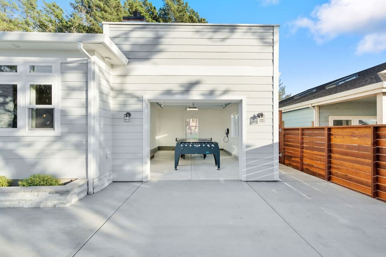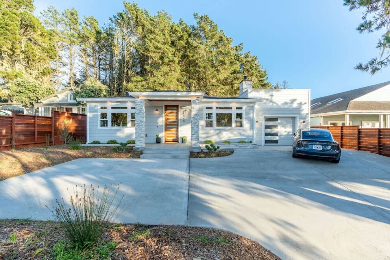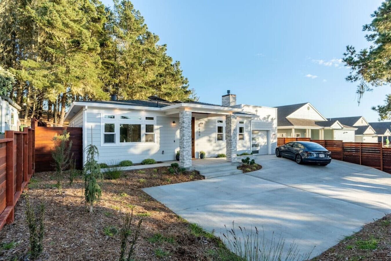Ultimate Summer Coastal Retreat: Hot Tub, Foosball, Ping Pong, BBQ Brand-new, modern & chic beach house refuge brings a California 60’s retro cool vibe to Bodega Bay, a small, picturesque seaside community. Your hosts dreamt of a home that fits naturally and sustainably into its beachy locale while bringing the California dream back! Luxurious linens, well-appointed kitchen, laundry, EV charging, heated floors (main bath), gas fireplace, roof deck, firepit, ping pong & foosball. Great location near beach, marinas, trails, horse stables, shops, and restaurants!Welcome to The California Dreamer!Experience all that Bodega Bay has to offer with this centrally located, modern beach home, walking distance to Terrapin Creek, Roadhouse Coffee, the Marinas, Spud Point, Bodega Head Trail, and a 2-min drive (or 20-min walk) to Salmon Creek Beach. Surfing, hiking, boating, fishing, birding, horseback riding, whale watching enthusiasts along with foodies (freshly caught seafood, organic produce, local wines and cheeses haven!) and remote workers will love the chill and peaceful vibe of this small seaside town.INTERIOR:- Enjoy the bright, modern open concept space professionally decorated by highly acclaimed Swedish Property Stylist, Ulrika Edin. - The spacious, cozy living room is open to the kitchen and features a dining area (round table that sits 6 comfortably also has a hidden leaf for extension), a remote-controlled gas fireplace, a smart TV, and large windows to enjoy the natural sunlight.- The kitchen is well stocked with Greenpan cookware, William Sonoma dishware and silverware, J.A. Henckels knives, and cooking utensils. It has a Ninja coffee maker, tea kettle, mini-waffle maker, toaster, Ninja blender, electric hand mixer, dishwasher, microwave, gas stove, full-size refrigerator with filtered water and ice maker, quartz counters, maple cabinets and ceramic tile finishes. We also offer salt, pepper, oil, vinegar, spices, coffee, flour and sugar.- Sleeps 6 comfortably (6 ADULTS MAX) between the 3 bedrooms including the primary with a king size bed, one guest bedroom with a queen size bed, and another guest bedroom with two twin size beds that can easily be moved to make one larger bed. May fit up to 7-8 people if some guests are small children, but only the 3 beds will be provided.- Luxurious bed and bath linens from Brooklinen and blackout curtains for your utmost comfort.- Primary bedroom features a king size bed, a huge walk-in closet, a dedicated work area and a large slider with access to the patio and backyard.- Primary bathroom features heated floors, oversized tiled shower, and double vanity.- Guest bathroom featured a shower over tub, a large single vanity, and a window.- 1,430 sq ft of livable space + finished garage set up as a game room.- Game room features ping pong and foosball tables set up in the garage.- Bluetooth speaker.- Dedicated workspace area in primary bedroom with adjustable standing desk and ample electrical outlets.- High speed internet by Comcast.- Pro thermostat, smoke and carbon dioxide alarm, fire sprinklers.- Solar panels, tankless water heater, central heat (no AC).EXTERIOR- Inviting front porch with coastal landscaping and lights.- Wide concrete driveway and front yard can accommodate up to 3 cars comfortably.- Tesla or hybrid charging station available on property.- Large concrete patio features a dining table and lounge area with no rear neighbors, and views through a small grove of coastal pines.- Bay-view roof deck with gas firepit for stargazing, relaxing or entertaining. - On a clear day, enjoy views to bay and marinas from your backyard.NEIGHBORHOOD DESCRIPTION:Home is located off scenic Highway One, across from Second Wind, a toy and candy shop, Terrapin Creek Cafe, highly acclaimed for its cuisine, and Roadhouse Coffee shop. A short drive (or walk) will take you to the marinas with more great restaurants (including Gourmet au Bay, a wine bar, Ginochio’s Kitchen and the famed Spud Point Crab Company). At the very end of the road, you will find Bodega Head wit its majestic panoramic views, trails, and beach access. Less than a minute drive in the other direction on Highway One will take you to the Bodega Bay Community Center, home to the Farmer’s Market on Sundays (from Memorial Day through October), Children’s Bell Tower and the Coastal Prairie Trail head (1.05 mile trail to Salmon Creek beach). If you continue north on Highway One, you will have many beautiful beaches to choose from including North Salmon Creek (1.8 miles), Carmet (3 miles), Schoolhouse (3.3 miles), and Portuguese (3.8 miles) to name a few of our favorites.