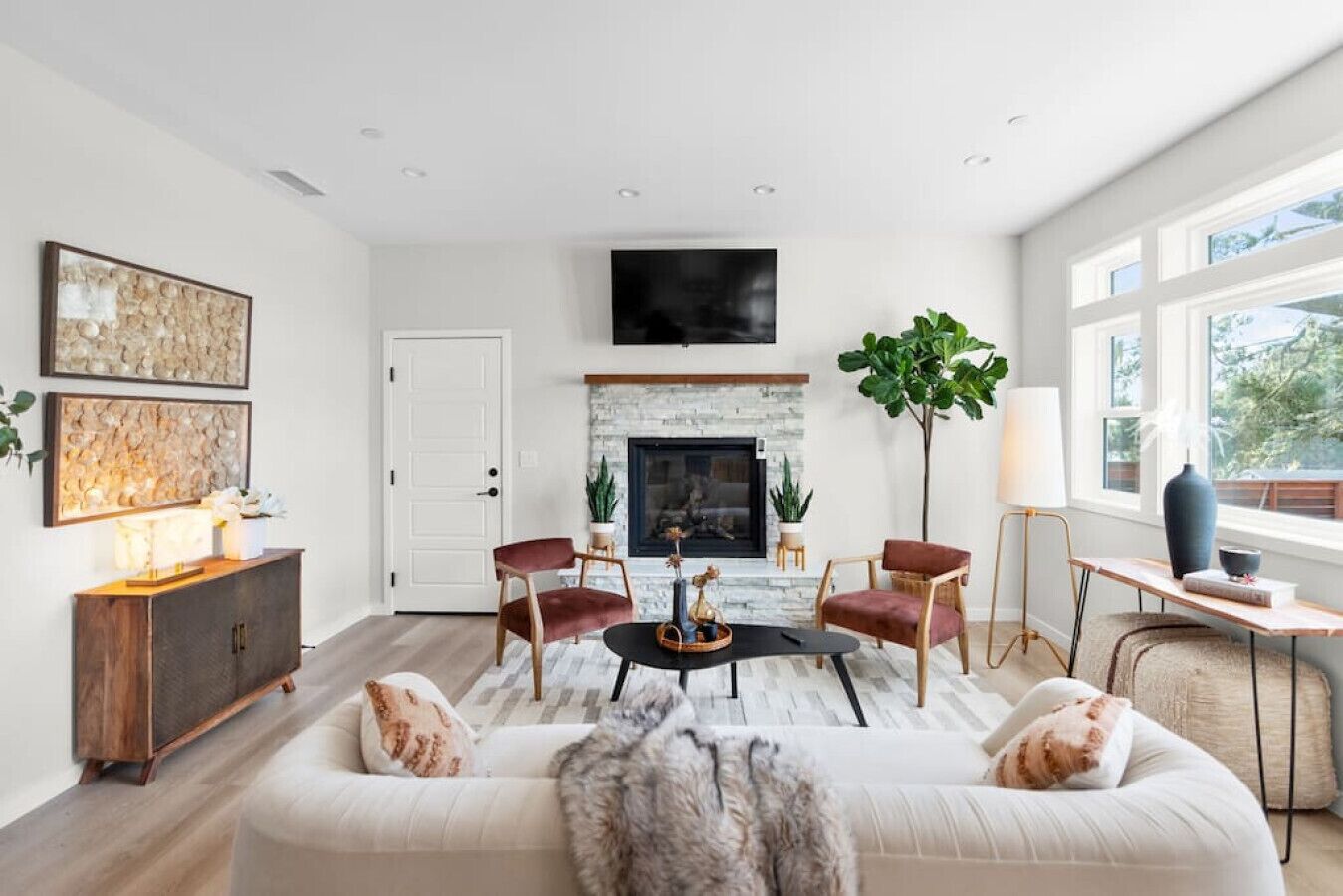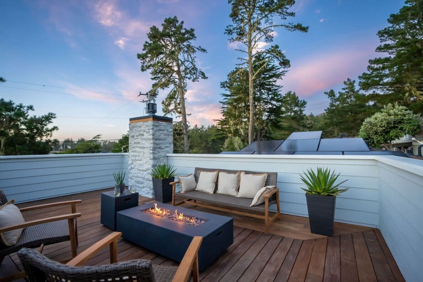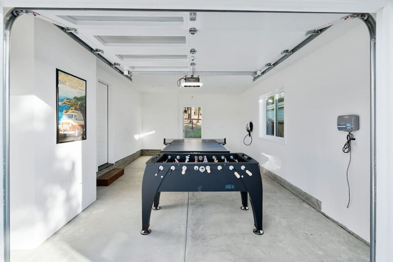 Ultimate Summer Coastal Retreat: Hot Tub, Foosball, Ping Pong, BBQ Brand-new, modern & chic beach house refuge brings a California 60’s retro cool vibe to Bodega Bay, a small, picturesque seaside community. Your hosts dreamt of a home that fits naturally and sustainably into its beachy locale while bringing the California dream back! Luxurious linens, well-appointed kitchen, laundry, EV charging, heated floors (main bath), gas fireplace, roof deck, firepit, ping pong & foosball. Great location near beach, marinas, trails, horse stables, shops, and restaurants!Welcome to The California Dreamer!Experience all that Bodega Bay has to offer with this centrally located, modern beach home, walking distance to Terrapin Creek, Roadhouse Coffee, the Marinas, Spud Point, Bodega Head Trail, and a 2-min drive (or 20-min walk) to Salmon Creek Beach. Surfing, hiking, boating, fishing, birding, horseback riding, whale watching enthusiasts along with foodies (freshly caught seafood, organic produce, local wines and cheeses haven!) and remote workers will love the chill and peaceful vibe of this small seaside town.INTERIOR:- Enjoy the bright, modern open concept space professionally decorated by highly acclaimed Swedish Property Stylist, Ulrika Edin. - The spacious, cozy living room is open to the kitchen and features a dining area (round table that sits 6 comfortably also has a hidden leaf for extension), a remote-controlled gas fireplace, a smart TV, and large windows to enjoy the natural sunlight.- The kitchen is well stocked with Greenpan cookware, William Sonoma dishware and silverware, J.A. Henckels knives, and cooking utensils. It has a Ninja coffee maker, tea kettle, mini-waffle maker, toaster, Ninja blender, electric hand mixer, dishwasher, microwave, gas stove, full-size refrigerator with filtered water and ice maker, quartz counters, maple cabinets and ceramic tile finishes. We also offer salt, pepper, oil, vinegar, spices, coffee, flour and sugar.- Sleeps 6 comfortably (6 ADULTS MAX) between the 3 bedrooms including the primary with a king size bed, one guest bedroom with a queen size bed, and another guest bedroom with two twin size beds that can easily be moved to make one larger bed. May fit up to 7-8 people if some guests are small children, but only the 3 beds will be provided.- Luxurious bed and bath linens from Brooklinen and blackout curtains for your utmost comfort.- Primary bedroom features a king size bed, a huge walk-in closet, a dedicated work area and a large slider with access to the patio and backyard.- Primary bathroom features heated floors, oversized tiled shower, and double vanity.- Guest bathroom featured a shower over tub, a large single vanity, and a window.- 1,430 sq ft of livable space + finished garage set up as a game room.- Game room features ping pong and foosball tables set up in the garage.- Bluetooth speaker.- Dedicated workspace area in primary bedroom with adjustable standing desk and ample electrical outlets.- High speed internet by Comcast.- Pro thermostat, smoke and carbon dioxide alarm, fire sprinklers.- Solar panels, tankless water heater, central heat (no AC).EXTERIOR- Inviting front porch with coastal landscaping and lights.- Wide concrete driveway and front yard can accommodate up to 3 cars comfortably.- Tesla or hybrid charging station available on property.- Large concrete patio features a dining table and lounge area with no rear neighbors, and views through a small grove of coastal pines.- Bay-view roof deck with gas firepit for stargazing, relaxing or entertaining. - On a clear day, enjoy views to bay and marinas from your backyard.NEIGHBORHOOD DESCRIPTION:Home is located off scenic Highway One, across from Second Wind, a toy and candy shop, Terrapin Creek Cafe, highly acclaimed for its cuisine, and Roadhouse Coffee shop. A short drive (or walk) will take you to the marinas with more great restaurants (including Gourmet au Bay, a wine bar, Ginochio’s Kitchen and the famed Spud Point Crab Company). At the very end of the road, you will find Bodega Head wit its majestic panoramic views, trails, and beach access. Less than a minute drive in the other direction on Highway One will take you to the Bodega Bay Community Center, home to the Farmer’s Market on Sundays (from Memorial Day through October), Children’s Bell Tower and the Coastal Prairie Trail head (1.05 mile trail to Salmon Creek beach). If you continue north on Highway One, you will have many beautiful beaches to choose from including North Salmon Creek (1.8 miles), Carmet (3 miles), Schoolhouse (3.3 miles), and Portuguese (3.8 miles) to name a few of our favorites.