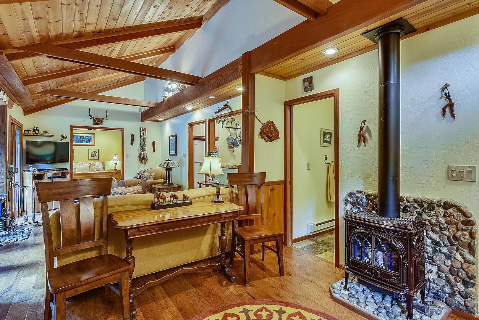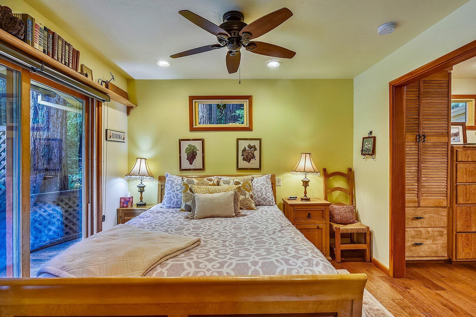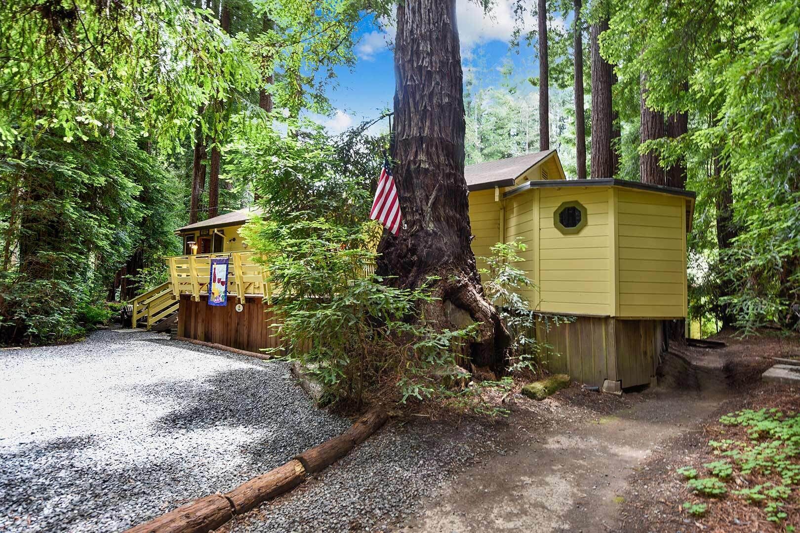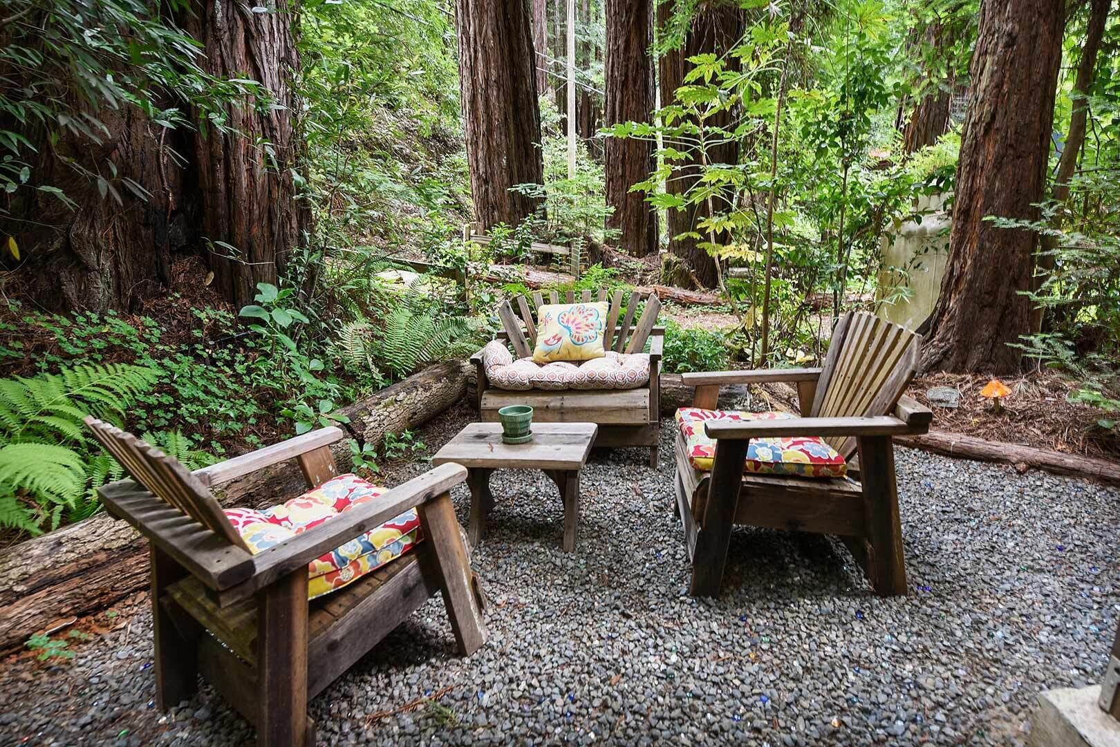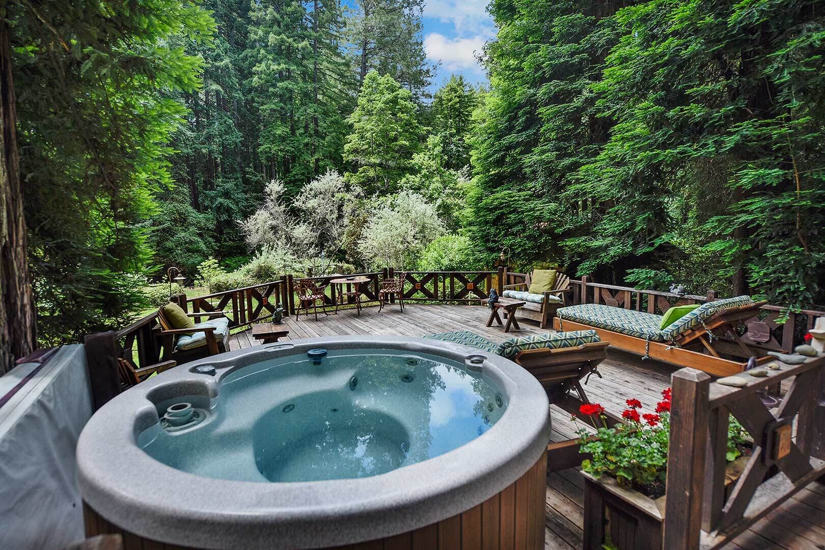 Tranquil Retreat on Austin Creek, Surrounded by Forest Views Blackberry Bliss is a tranquil, romantic and well-appointed vintage cabin oasis on the banks of beautiful Austin Creek that offers a setting of breathtaking beauty. It was built in 1954 and has been lovingly restored and updated. The house features a private creekside beach and sunny, level backyard meadow. Blackberry Bliss's 1,000 sq ft redwood deck is complete with a private outdoor hot tub, custom oversized redwood chaise lounges, dining bistro, and even more seating providing views of the creek, yard, flowers and trees, including the majestic redwoods, and is enclosed and gated for pets. At night, you'll rejoice in the privacy of magical moon and star-filled nights. The interior of the cabin is detailed with vaulted open wood beamed ceilings, French doors that seamlessly bring the outdoors in, custom finished redwood detailing and live-edge pass through bar. Blackberry Bliss is artistically furnished including an eclectic collection of both local and international art and artifacts. Blackberry Bliss is well located within minutes of Guerneville, the Sonoma Coast/beaches and other nearby historic Russian River towns, including Duncan's Mills, Jenner and Bodega Bay and offering several great restaurants, wine tasting, golf and fun shopping. Know Before You Book: Maximum Occupancy and Quiet Hours: The maximum occupancy at Blackberry Bliss is 2 people. Quiet hours are from 10:00 p.m. until 7:00 a.m. Outdoor amplified sound is prohibited at any time.Parking: There is parking for 2 cars in front of the house. RVs, trailers and campers are prohibited, per the Sonoma County Vacation Rental OrdinancePet Friendly: This home welcomes up to 2 well-mannered dogs. If you have more than 2 dogs or other types of pets, please contact us to see if exceptions can be made before reserving.Bed Sizes: Master Bedroom: Queen; "Bonus" Room: Twin DaybedHeat Source: Woodstove and Gas FireplaceStairs: There are less than 10 steps to the front door and several steps from the back deck to the lawn and backyard. The main deck has a couple steps to the hot tub area.Work from HERE: Blackberry Bliss has two workspaces - one in the living room and one just off the bedroom - plus a darling dining nook at the front of the house. Advertised Wifi Speed: Xfinity ResidentialFencing: The yard is partially fenced.Common Amenities not included: This home does not have Air Conditioning, but with the blessing of redwood trees, you most likely won't need it anyway.Proximity to wineries: There are an abundance of wineries and tasting rooms in West Sonoma County - several in downtown Guerneville and many more within a short drive. The famed vineyards of Westside Road are 16 miles from the house.Nearest River Beach: The closest public river beach is 7 miles away in Monte Rio.Nearest Ocean Beach: The closest ocean beaches re on the Sonoma Coast in Jenner - approx9 miles from the house.Sonoma County TOT Number: 1991