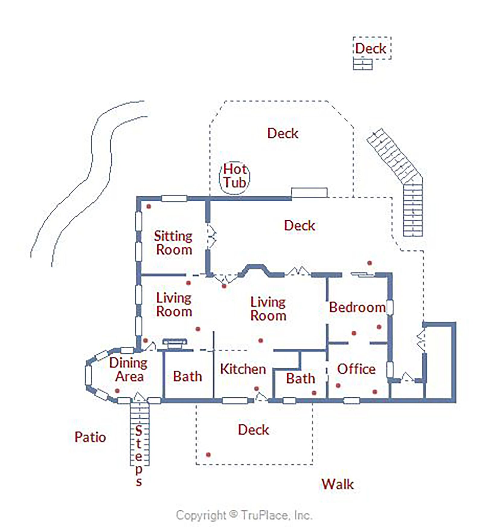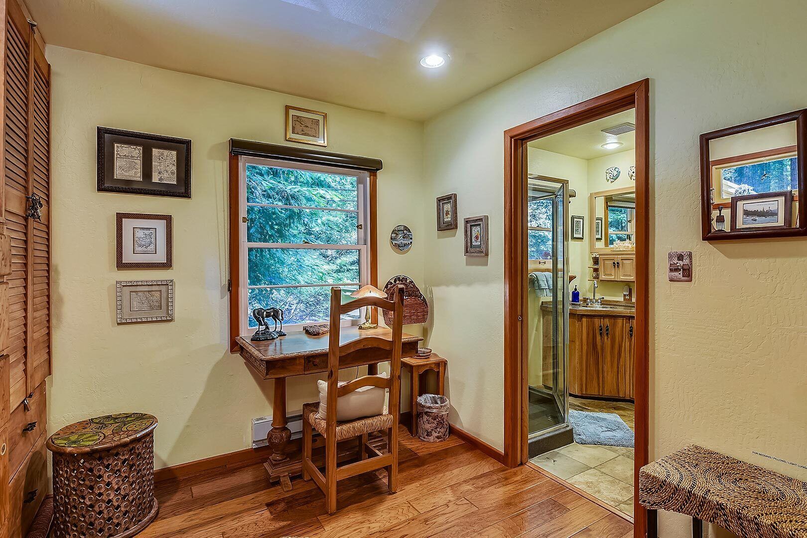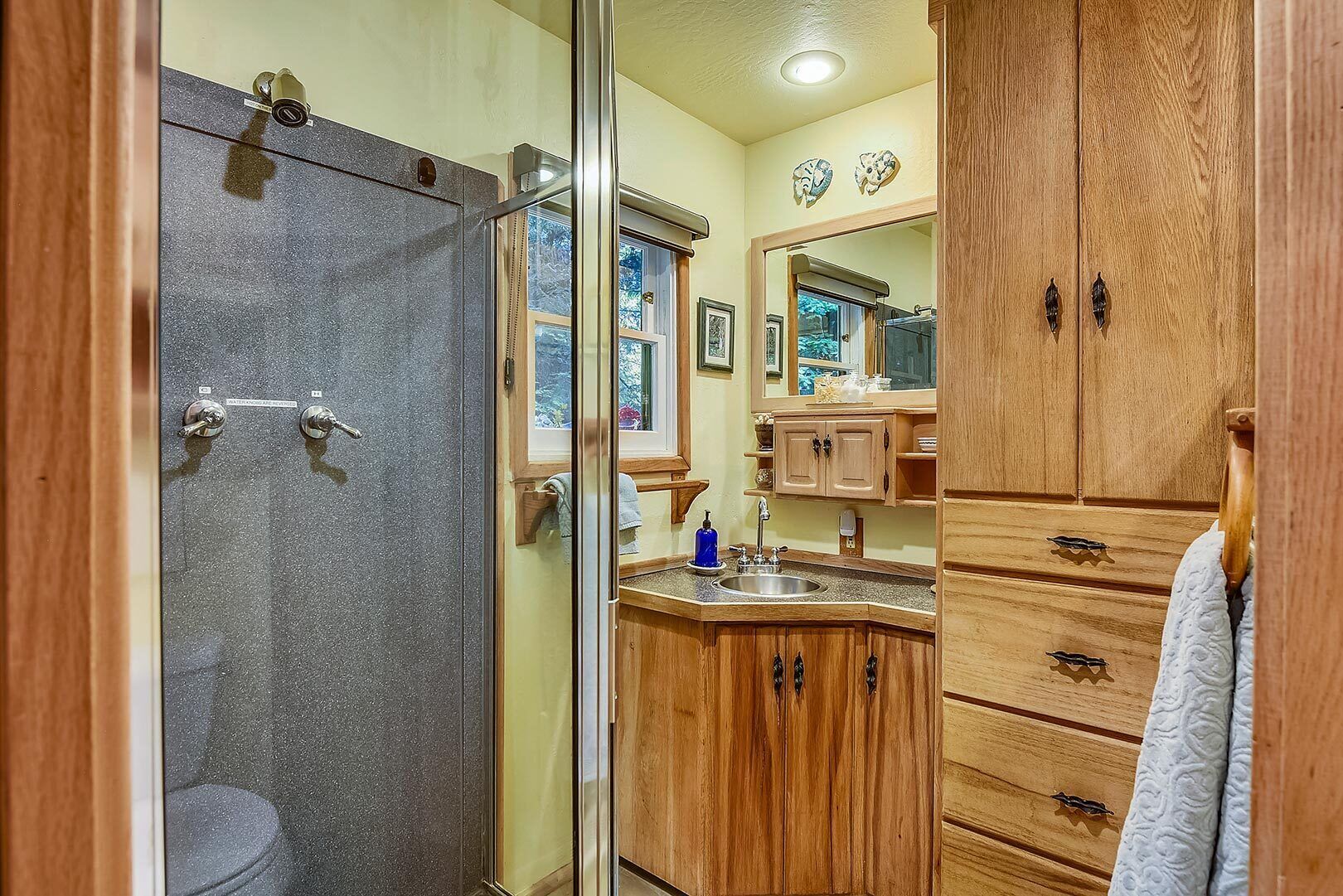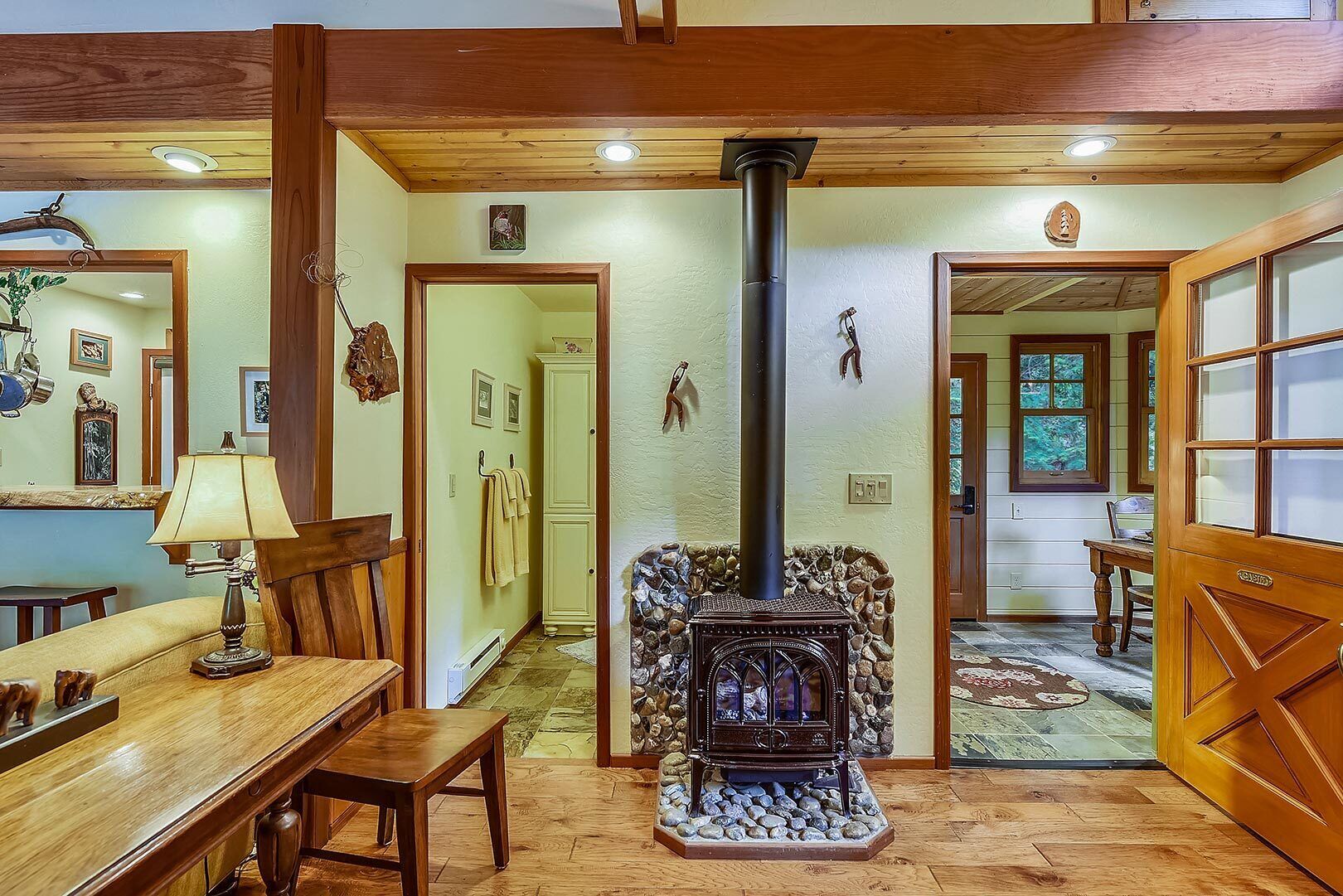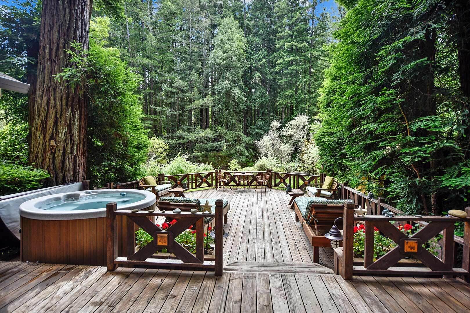 Tranquil Retreat on Austin Creek, Surrounded by Forest Views Blackberry Bliss is a tranquil, romantic and well-appointed vintage cabin oasis on the banks of beautiful Austin Creek that offers a setting of breathtaking beauty. It was built in 1954 and has been lovingly restored and updated. The house features a private creekside beach and sunny, level backyard meadow. Blackberry Bliss's 1,000 sq ft redwood deck is complete with a private outdoor hot tub, custom oversized redwood chaise lounges, dining bistro, and even more seating providing views of the creek, yard, flowers and trees, including the majestic redwoods, and is enclosed and gated for pets. At night, you'll rejoice in the privacy of magical moon and star-filled nights. The interior of the cabin is detailed with vaulted open wood beamed ceilings, French doors that seamlessly bring the outdoors in, custom finished redwood detailing and live-edge pass through bar. Blackberry Bliss is artistically furnished including an eclectic collection of both local and international art and artifacts. Blackberry Bliss is well located within minutes of Guerneville, the Sonoma Coast/beaches and other nearby historic Russian River towns, including Duncan's Mills, Jenner and Bodega Bay and offering several great restaurants, wine tasting, golf and fun shopping. Know Before You Book: Maximum Occupancy and Quiet Hours: The maximum occupancy at Blackberry Bliss is 2 people. Quiet hours are from 10:00 p.m. until 7:00 a.m. Outdoor amplified sound is prohibited at any time.Parking: There is parking for 2 cars in front of the house. RVs, trailers and campers are prohibited, per the Sonoma County Vacation Rental OrdinancePet Friendly: This home welcomes up to 2 well-mannered dogs. If you have more than 2 dogs or other types of pets, please contact us to see if exceptions can be made before reserving.Bed Sizes: Master Bedroom: Queen; "Bonus" Room: Twin DaybedHeat Source: Woodstove and Gas FireplaceStairs: There are less than 10 steps to the front door and several steps from the back deck to the lawn and backyard. The main deck has a couple steps to the hot tub area.Work from HERE: Blackberry Bliss has two workspaces - one in the living room and one just off the bedroom - plus a darling dining nook at the front of the house. Advertised Wifi Speed: Xfinity ResidentialFencing: The yard is partially fenced.Common Amenities not included: This home does not have Air Conditioning, but with the blessing of redwood trees, you most likely won't need it anyway.Proximity to wineries: There are an abundance of wineries and tasting rooms in West Sonoma County - several in downtown Guerneville and many more within a short drive. The famed vineyards of Westside Road are 16 miles from the house.Nearest River Beach: The closest public river beach is 7 miles away in Monte Rio.Nearest Ocean Beach: The closest ocean beaches re on the Sonoma Coast in Jenner - approx9 miles from the house.Sonoma County TOT Number: 1991