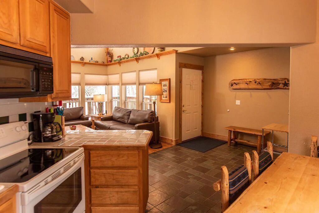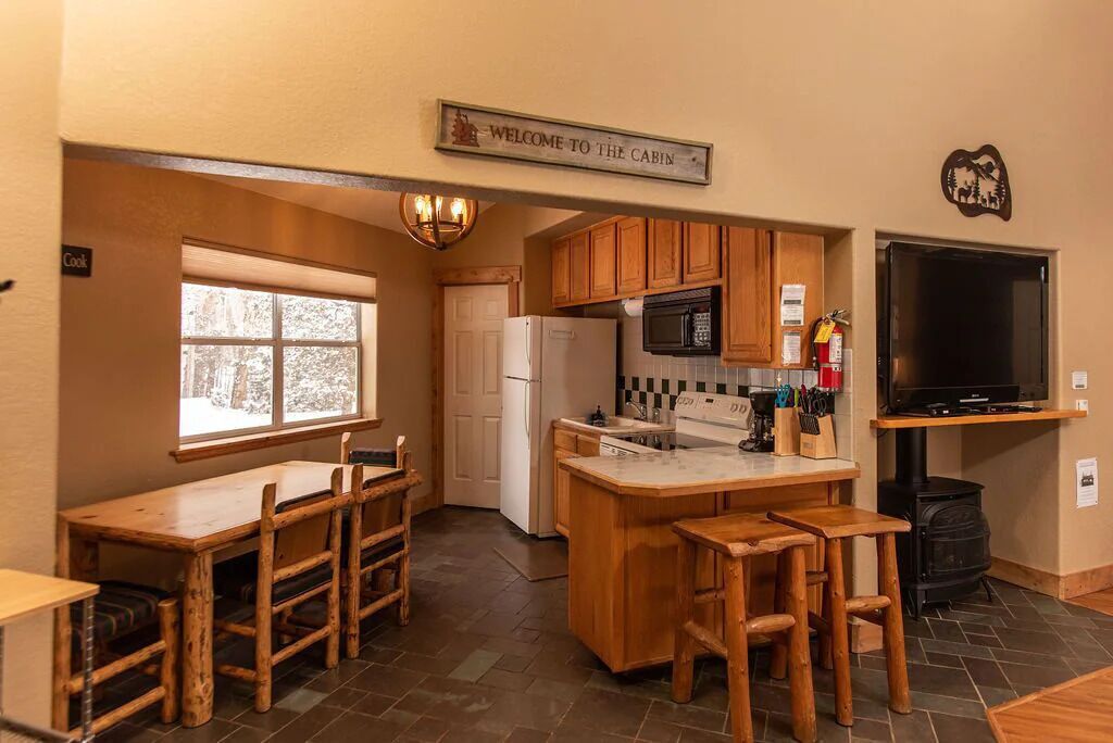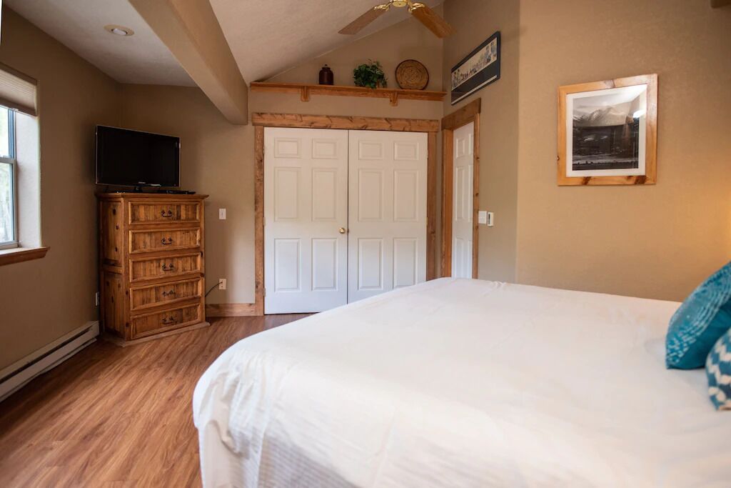 Mt. Antero Chalet at Creekside Chalets When you choose Mt. Antero Chalet for your next vacation, you’ll be able to relax to the sound of the babbling creek whether you’re on the deck, in the hot tub, or hanging out inside with the windows open. This cabin is especially sunny, which makes it feel even larger than it is. Combine that with the wonderful furnishings and decor and you’ll feel right at home as soon as you step in the front door.Mt. Antero has everything you need for a relaxing and enjoyable mountain vacation. There’s a 55-inch LED TV with a DVD player and a gas fireplace in the living room. The kitchen is fully equipped with a refrigerator, four burner stove and oven, microwave, utensils and flatware, a blender, and a toaster. There’s dining room for six people, with four at the table and two at the bar. Outside, the private deck has four patio chairs. There’s also a charcoal grill and a private picnic table. Parking is available for two cars.If you need to do a little work during your vacation or you just want to catch up with social media, we’re happy to announce the the WiFi service at the resort has recently been upgraded! Our new connection provides basic internet with limited access to stream music and movies. You’ll find all the necessary instructions inside the chalet.During the winter, the cabin is heated by electric baseboards and the gas fireplace. In the summer, you can take advantage of the evaporative air cooler unit should the cabin get too warm.Mt. Antero sleeps a total of 6 people. Sleeping accommodations are as follows:-One King Size Cool Gel Memory Foam bed in the bedroom-One Queen Size Murphy Bed in the living room-One Queen Size Cool Gel Memory Foam Sofa Sleeper in the living room.*Linens and towels are provided based on the occupancy given at the time of the reservation.Please note that Mt. Antero is PET-FRIENDLY. Pets are $30 per pet, per stay, max 2 pets. If booking travel through an affiliate website that doesn't apply our pet fees, fur baby fees will still be collected upon arrival.Chalets are thoroughly cleaned upon check out. If you are highly allergic to pet dander, please be cautious of your allergies while staying at Creekside Chalets.
