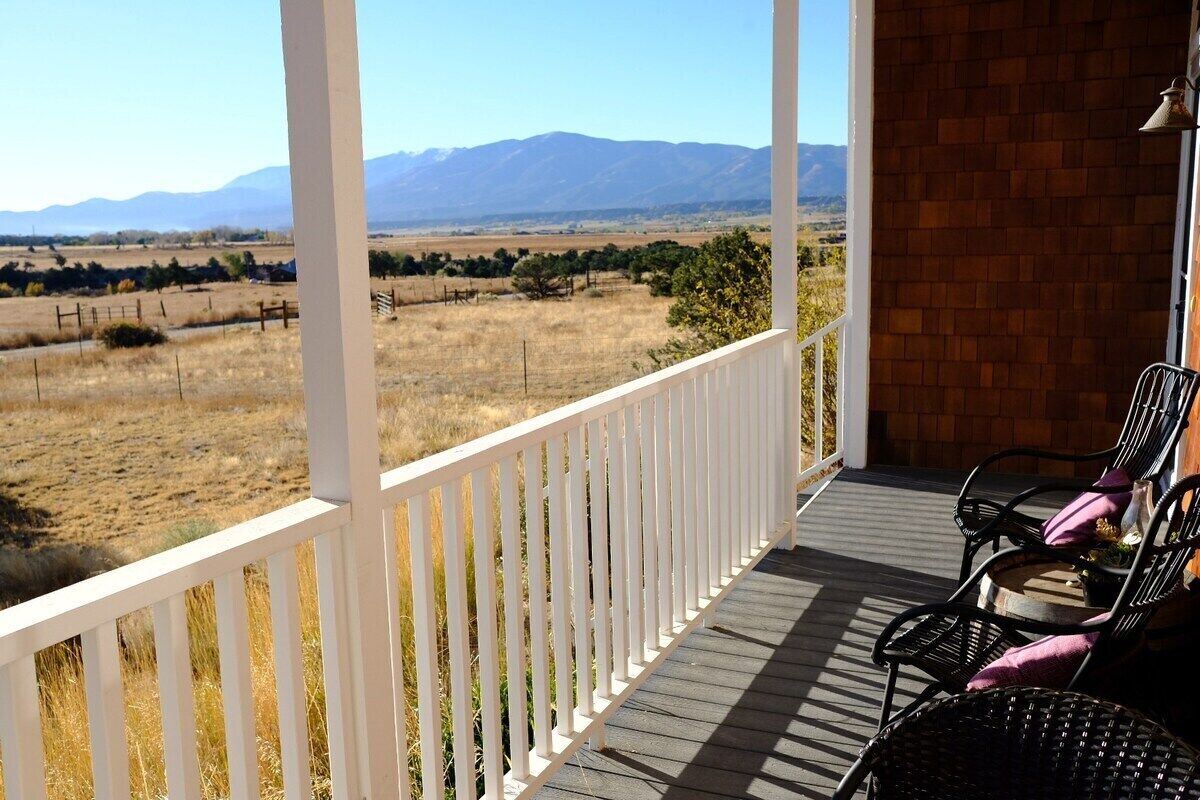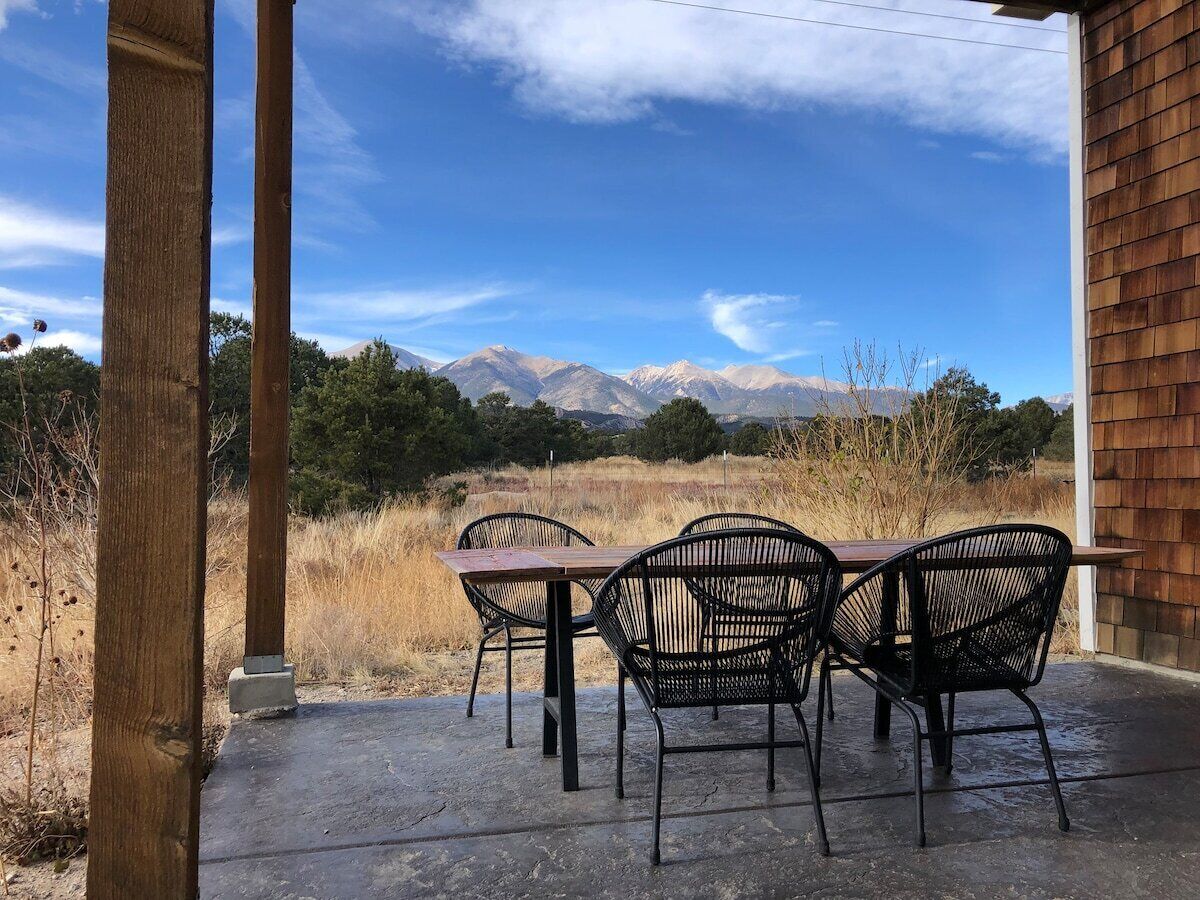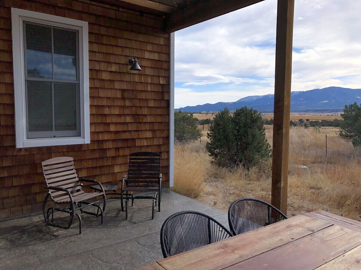 This house is a 3 bedroom(s), 2 bathrooms, located in Salida, CO. Nestled in the high desert beauty of The Arkansas River Valley and surrounded by mountain views on all sides, this spacious home is where comfort and style meet country living.The kitchen is fully equipped for gourmet cooking. Your group can spread out in the ample living and dining spaces in this open concept floor plan. Luxuriate in the library or on one of the outdoor patio spaces. There's always a sunny one and a shady one so take your pick, relax, and enjoy the views! 5 mi from SalidaThis quiet, rural setting feels isolated but is only a quick drive to all the vibrant goings-on of Salida: shops and galleries, restaurants and bars, river sports, hot springs, music festivals and a farmer's market every week throughout the summer... too much to list! Monarch Ski Area is just 20 miles away. Hiking and mountain biking trails can be found amply in every direction from the house, and we'll have info on those trails in our guestbook for you, along with info about lots of other things to do in the area. The entire house is yours throughout your stay! The "lawn" is a natural desert landscape, so it complements the views perfectly but isn't intended for walking barefoot on. The garage will be locked off, as it contains the owners' stored items, but you'll find ample parking in front of the home.
