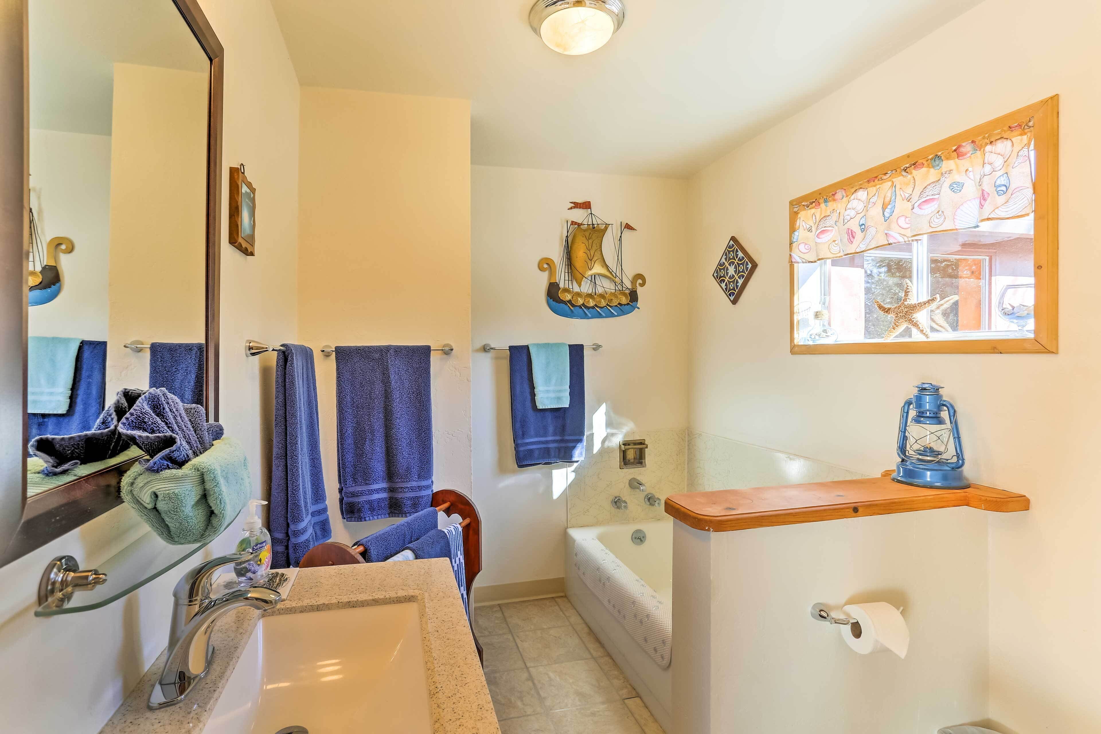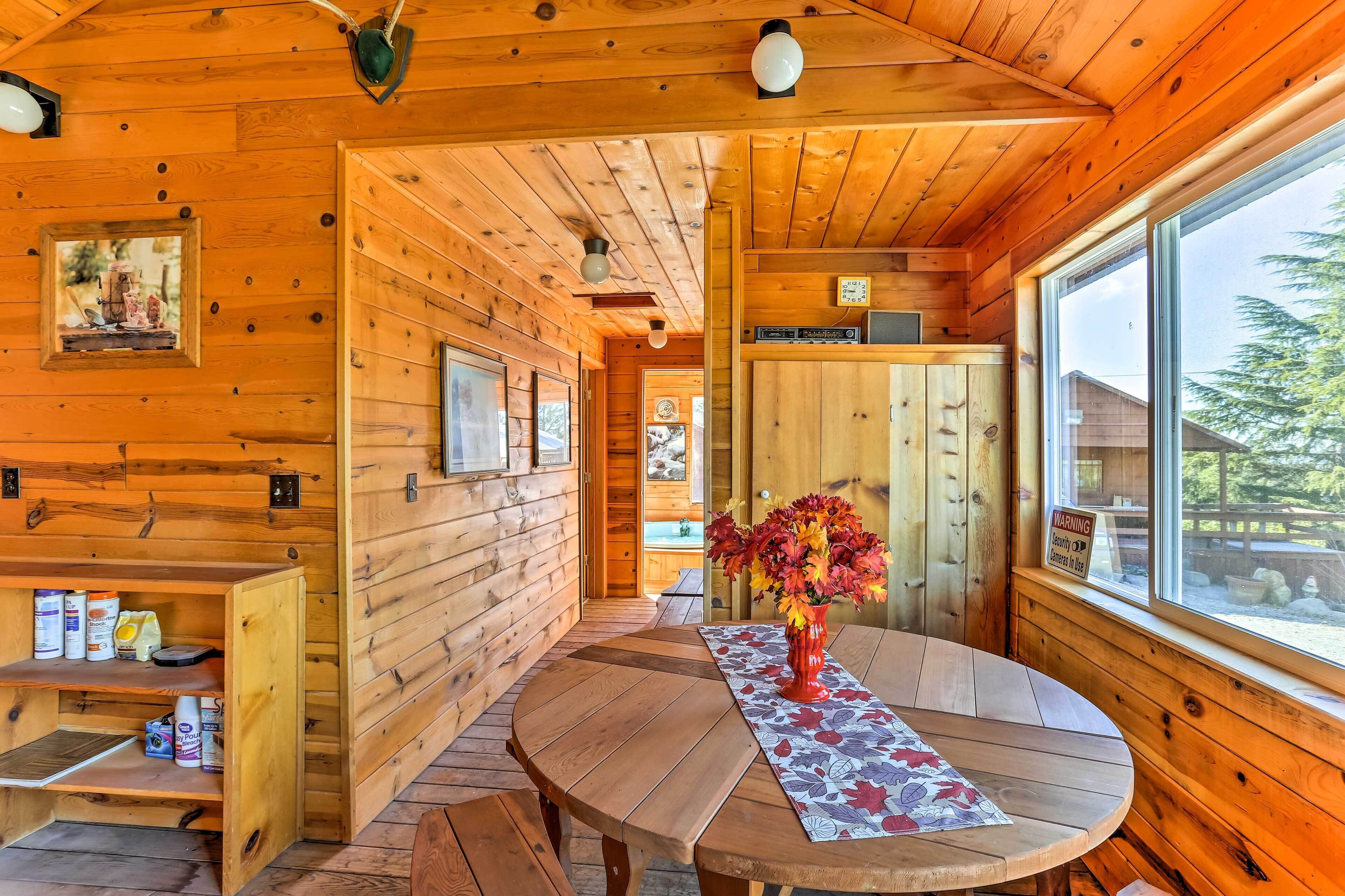 Paynes Creek Home w/ Hot Tub and Views! Come experience one of the nation's best-kept secrets at Lassen National Park during your stay at this handcrafted 4-bedroom, 2.5-bath vacation rental in California. Nestled on nearly 200 acres of forest land with ponds, creeks, and trails, this mountain lodge features a hot tub, sauna, pizza oven, and pool table! With fishing, hiking, horseback riding, cros...