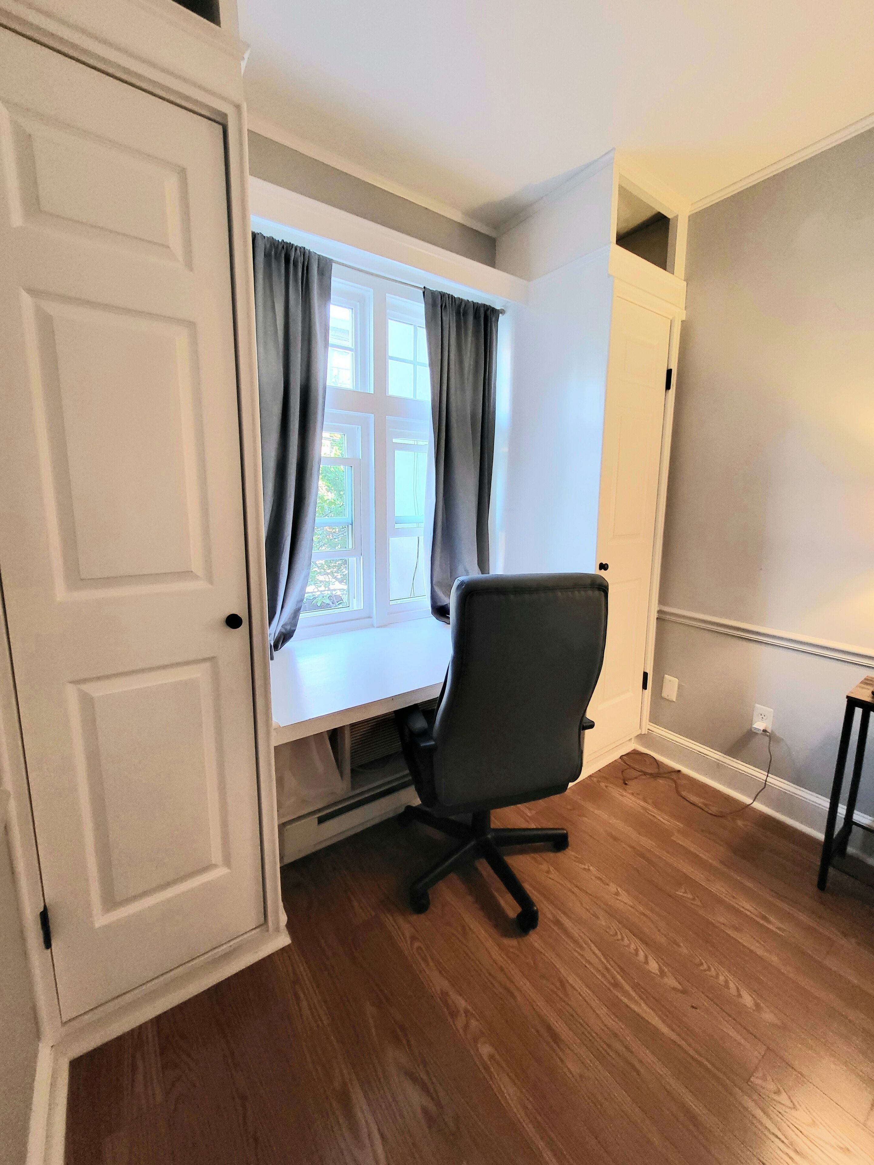 Hoboken Brownstone Condo-1st Fl, 2 Bedrms w/Private Backyard Close to NYC trains Beautifully furnished 2 bedroom condo with King and Queen Beds. Soaring 14' ceilings, hardwood floors and private outdoor space with just a short walk to Path station connecting NYC and light rail. Relax on our comfy couch w/ 65" smart TV or work at our dedicated workspace with high speed internet. Fully equiped kitchen with microwave, gorgous marble countertops or BBQ on outside grill.