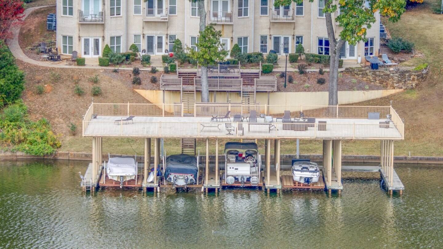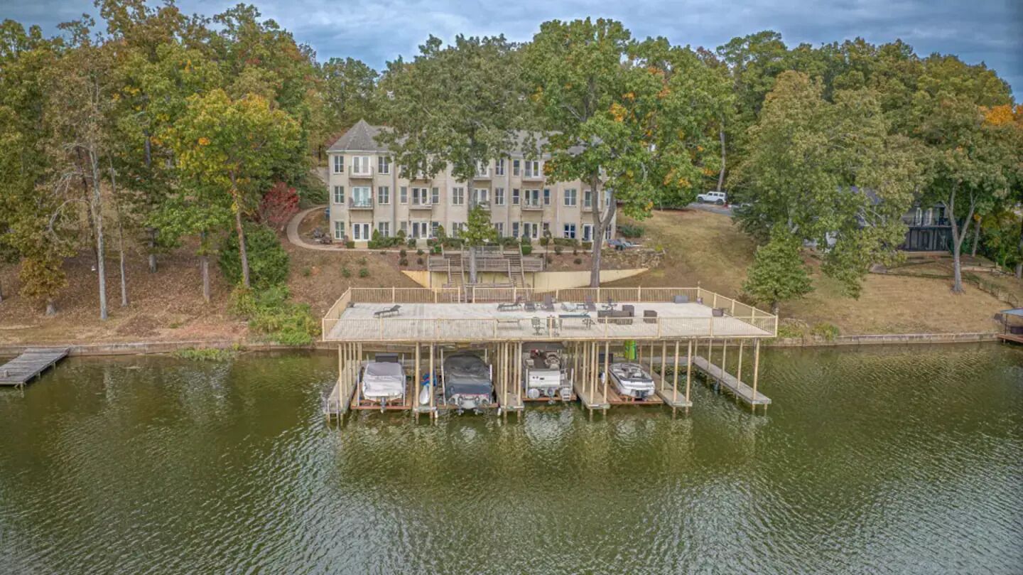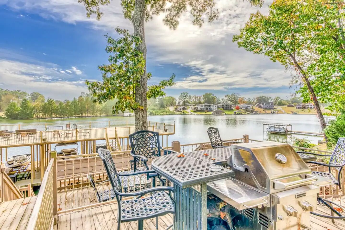 Three Level Waterfront Condo with Boat Slip near RTJ Golf Course. Two Kings. This picturesque retreat offers the epitome of cool waterfront living, combining urban appeal and natural beauty in perfect harmony. Located near Wilson Lake, this exceptional home boasts breathtaking views and a lifestyle that's second to none. Enjoy a wide variety of activities including paddleboarding, fishing, or just relaxing on the deck. Less than 10 minutes from Robert Trent Jones Golf Course, this multi-level condo is the perfect place for your next family vacation or weekend retreatThe spaceThe interior of this home is an oasis of comfort and style. 3 bedrooms, 2.5 bathrooms, and an open-concept design make this the perfect family retreat. The primary bedroom (king) is located on the second level of the condo, with two additional bedrooms (king and full) on the third level along with a shared bathroom. The kitchen and a half-bath along with a living space are located on the first floor.Other things to noteTwo Paddleboards are provided (stored under the patio) and guests are welcome to enjoy them.There is also a boat slip with no lift, in addition to a boat house that is shared with 4 other units.There is no garbage disposal in the kitchen sink. Please put all food waste, grease, etc. in the garbage can.Filtered water is available from the Brita filter attached to the kitchen sink.All TVs are smart TVs.All garbage should be placed in one of the outdoor trash cans at entrance to the property (at the top of the hill). Please pack your bags light! Cleaners do not haul off guest's garbage.There are three outdoor cameras. One at garage, entry door and off balcony facing lake .