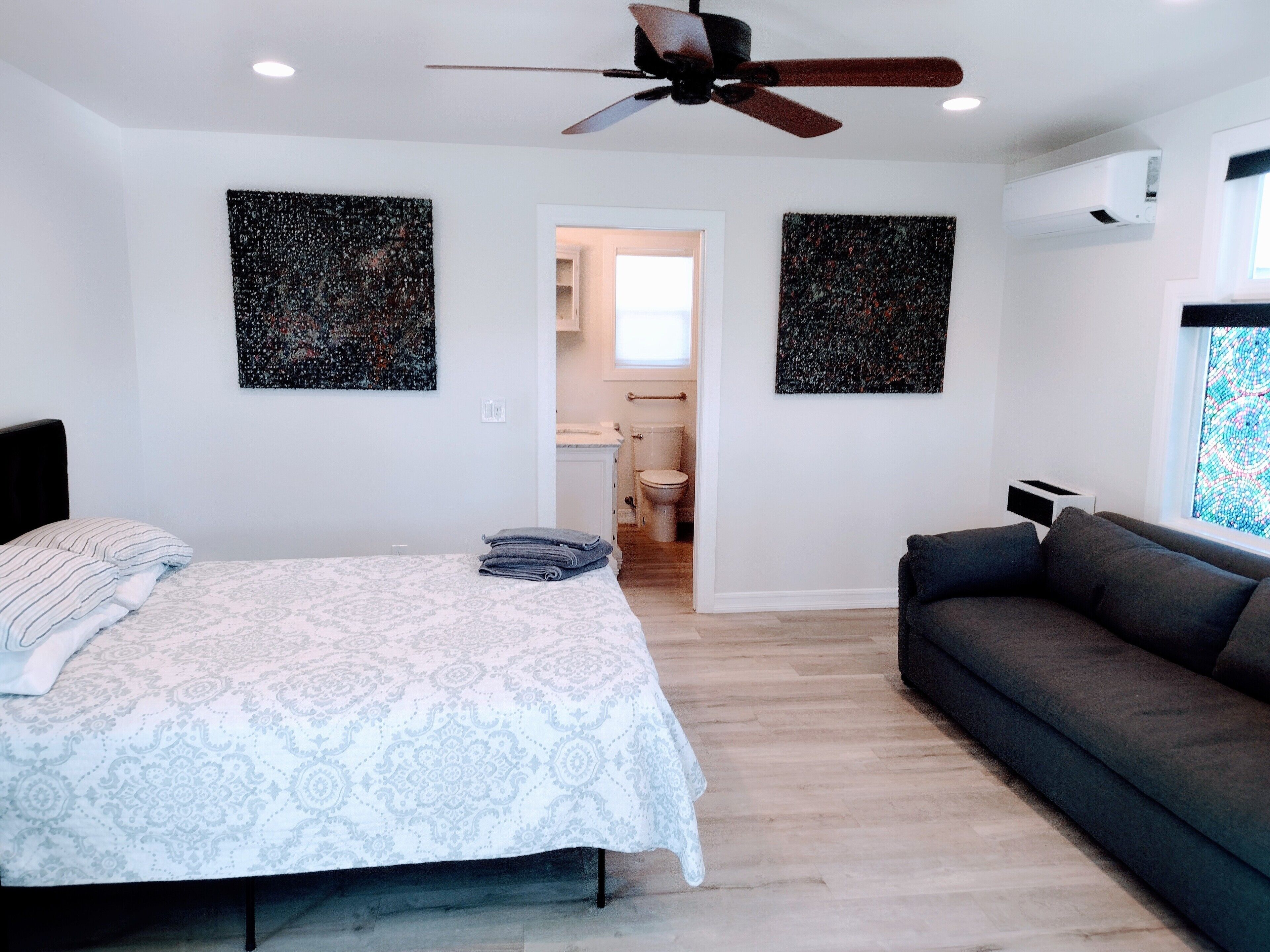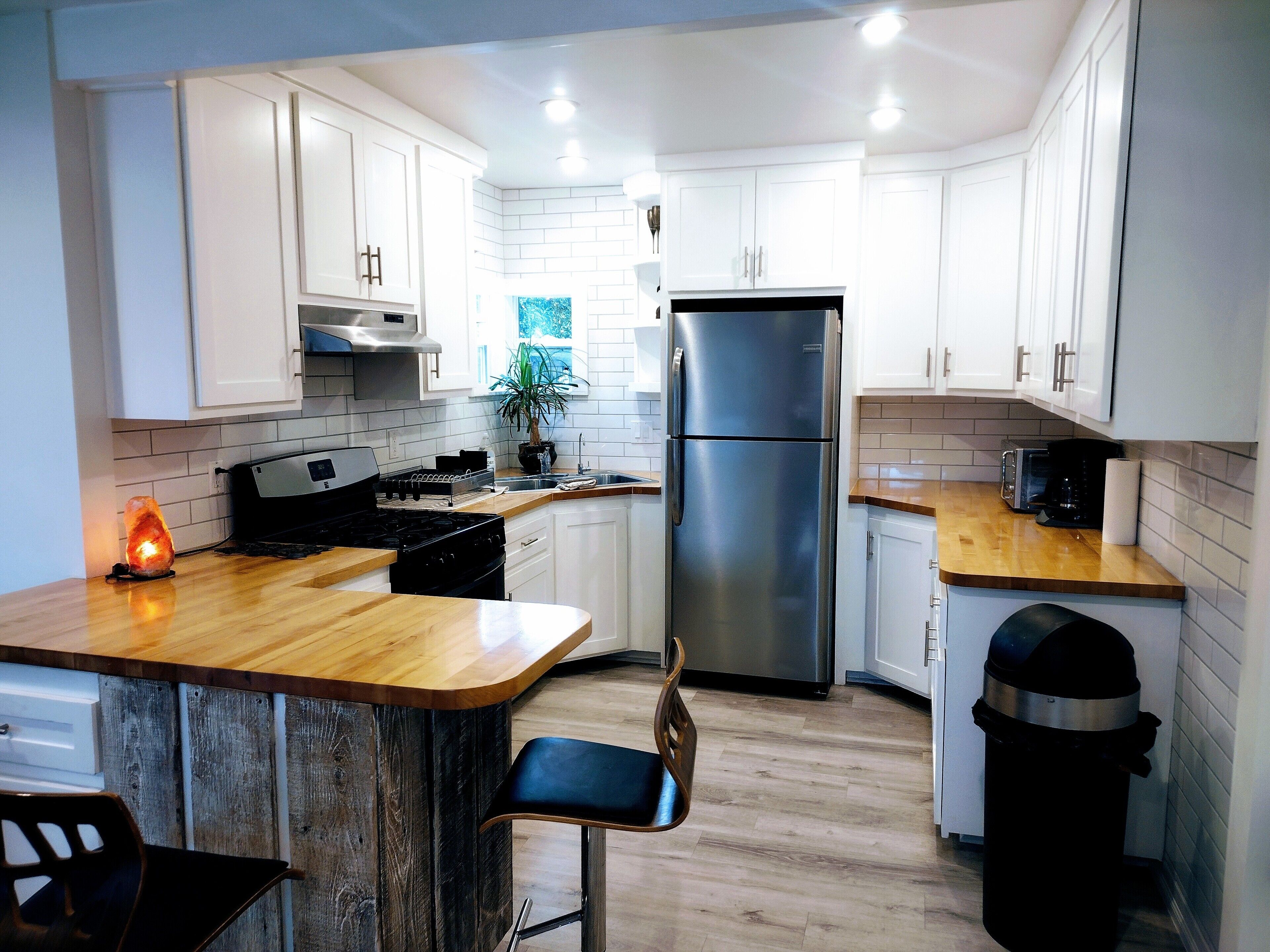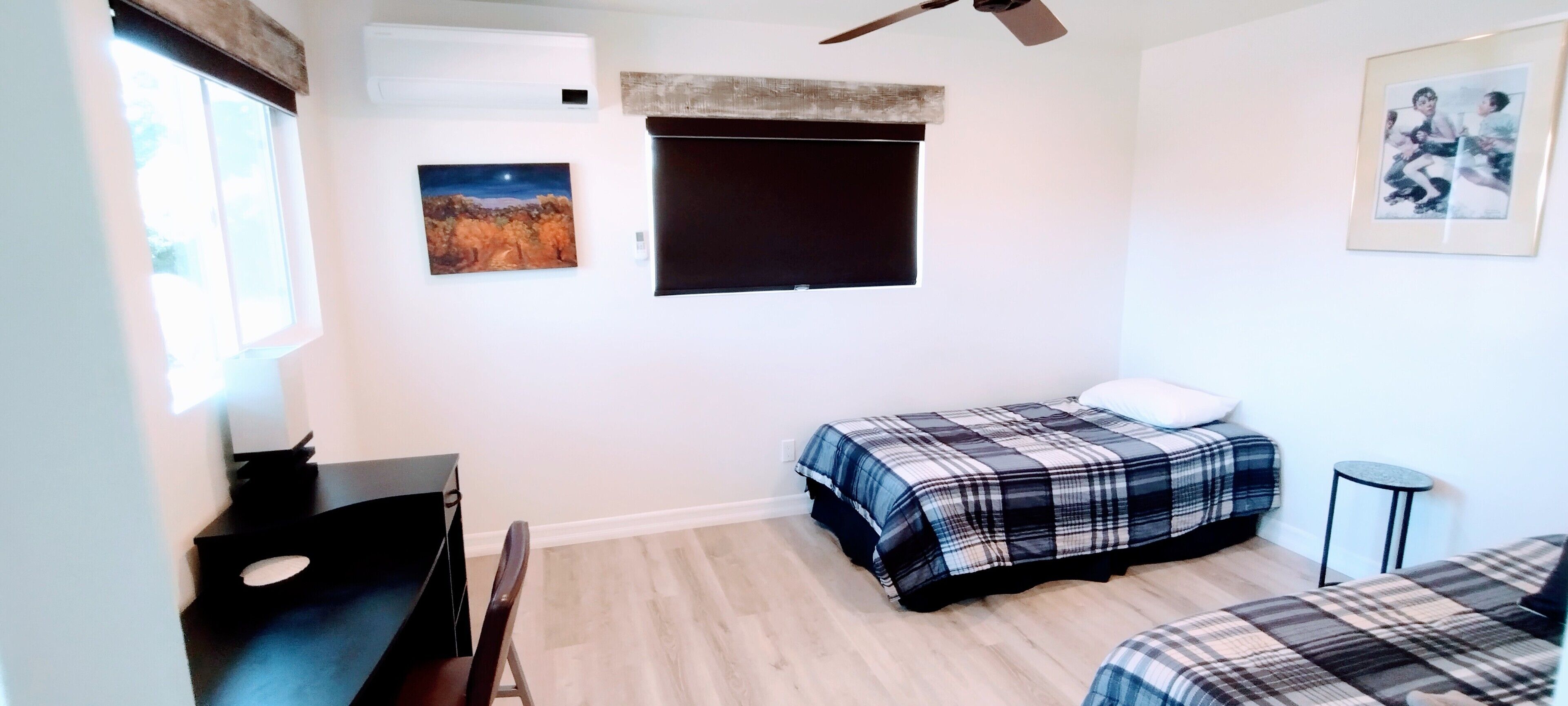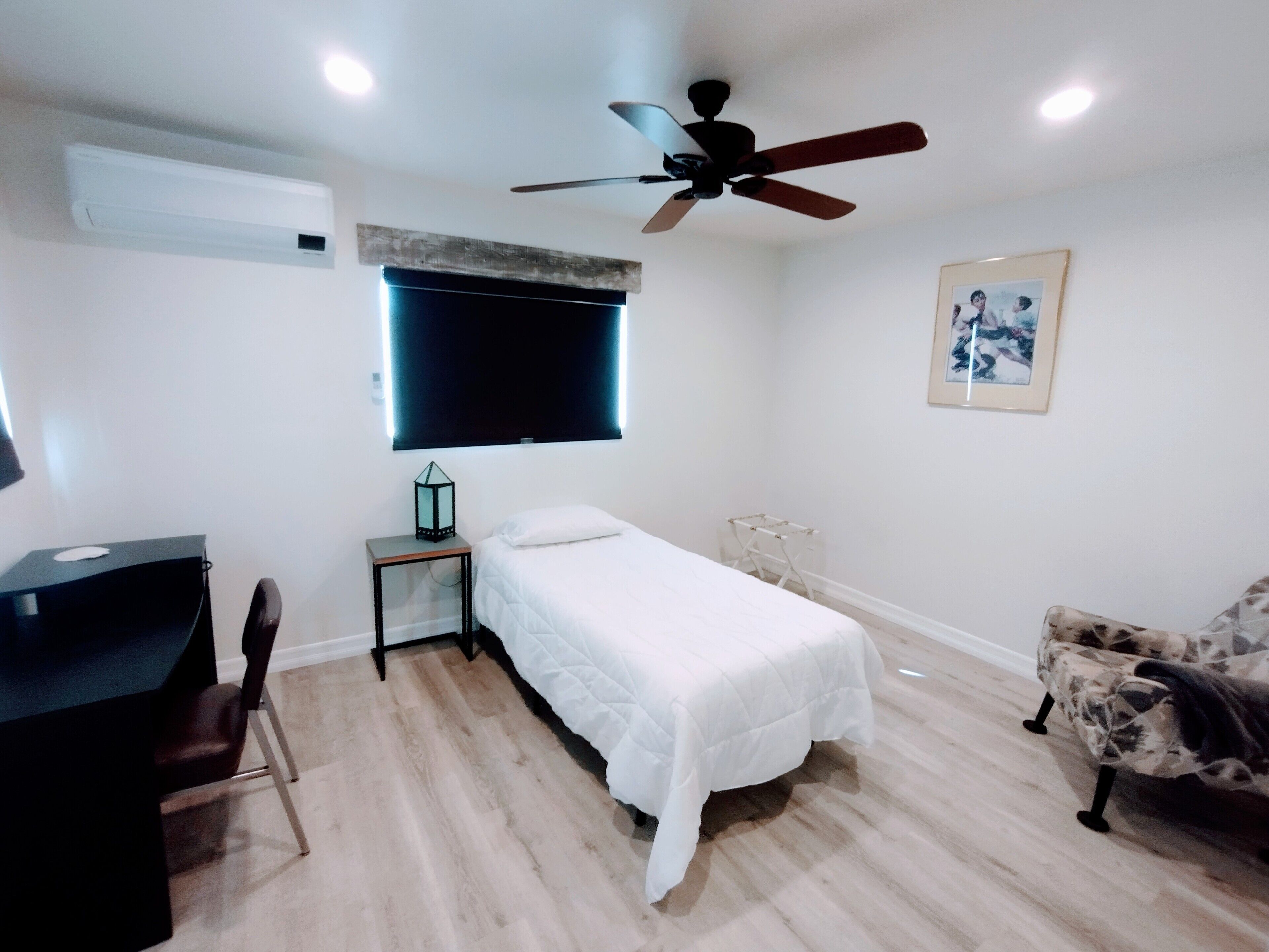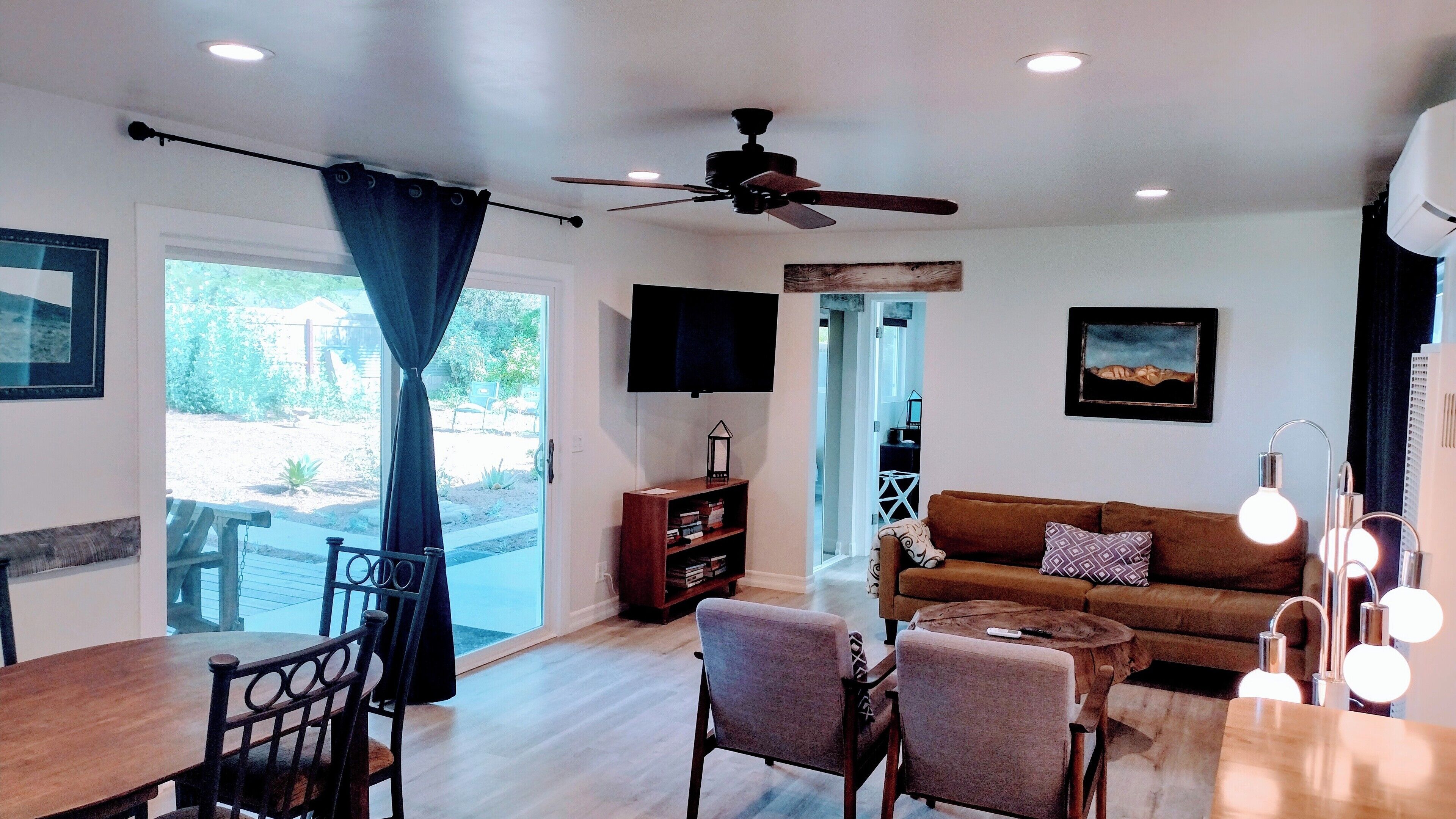 Casa Calma Modern Ojai Home Gated Best Location and Views Furnished or unfurnished. Just imagine relaxing here between the mountains and the seas perched near to the trees on a large private country Ojai property. Casa Calma boasts extreme privacy compound Oasis w 6ft fencing, hedges and trees, Topa Topa views w an indoor-outdoor vibe and an open floor plan perfect for entertaining Infants, Kids, and Seniors. Newly staged throughout and super clean. Fully fenced property pet friendly w solar, fruit trees, pine grove, home office, laundry machines, Bbq, 2 terraces, and 2 private patios, fenced park like yard, beaches nearby, and close hiking at the Ventura river preserve. Gorgeous new hard surfaces throughout the entire house stays cool and clean. A very special open floor plan w lots of windows and sliders and patios to bring nature into the house and creates a fun environment for any occasion. Come enjoy this Eco friendly solar electric house w style, organic gardens, orchard and drought tolerant botanical experience. If you want hip clean modern digs in Ojai, look no further. I recently updated all of the furnishings. Board games and kitchen w oils, condiments, dishes, pots and pans, and coffee maker etc. Plenty of giant spruce trees nice and shady. The lot is sunny with mountain views and also has shade from the trees w a cool breeze comes up from the ocean. You and your friends or family will have a blast here. Rooms have blackout window treatments allowing for maximum sleeping comfort. Lots of vintage touches throughout the property. All rooms have their own mini split AC and heating so each guest can adjust to their comfort. Master has a queen and big couch and ensuite custom bath w soaking tub for 2. 2nd bedroom has 2 single beds or a queen bed and bathroom and desk for home office. There is a couch in the living room. Please respect the property so it is nice for future guests. Great picnic tables and custom made patio furniture. Terraces and patios circle the house with vintage and new furnishings 50 inch Samsung Smart TV, and 42 inch w Google Chromecast to connect Netflix etc. I can set up bike rentals, massage therapists, yoga therapists, and or private chef. Trolly pics up on the corner ever 45 minutes. Great for wine tasting or choosing not to drive after drinking. Just hop on the trolley and it will bring you home. Let me know if you need any recommendations for restaurants etc. If you like midcentury modern homes then you will love this well appointed furnished designer home. Close to Ventura, Montecito, and Santa Barbara.