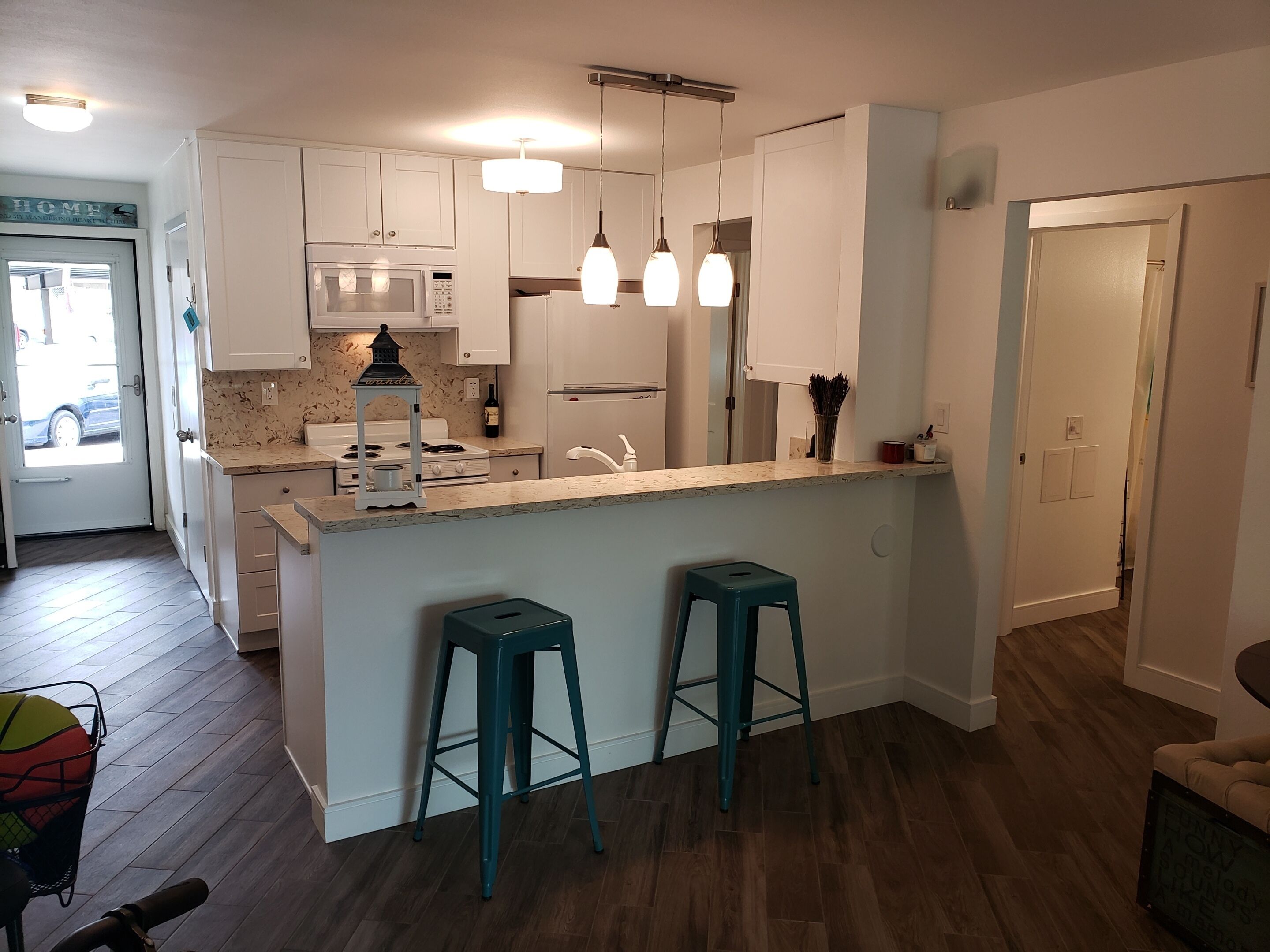 Peaceful, beautifully remodeled three bedroom beach condo This beautifully remodeled Surfside I beach condo with a view of the Port Hueneme pier is right across the street from the beach. Port Hueneme, situated between Malibu and Ventura, is one of the last Southern California locations where you can enjoy an uncrowded summer day at the beach. It is convenient to the Navy Base Ventura County, the Point Mugu Naval Air Station, and California State University, Channel Islands.The beach is quiet and family-friendly with beach volley balls and picnic areas as well as nearby bike and Surrey rentals. The pier is a popular fishing spot and the surfing is world class. Port Hueneme provides easy access to Santa Barbara, Ventura, Malibu, Santa Monica, Hollywood and the rest of the Los Angeles metro area.Newly renovated, beautifully decorated and fully furnished, this three bedroom, one bath condo comfortably sleeps 6. It is conveniently located only 100 yards from the lovely white sandy beach. Located on the ground floor, enjoy peek-a-boo views of the pier from the nicely furnished deck. In addition to being fully equipped with all cooking and eating utensils, the condo also has chairs, towels, sand toys and boogie boards. The condo complex has 2 outdoor pools, spas and clubhouse. There are numerous local activities to enjoy in the area. Enjoy a fresh seafood dinner at the Seafood Restaurant at the pier, visit the weekly Farmer's Market, bike or walk the nature trails, enjoy a lighthouse tour. Go whale watching or boating out of the harbor. Take a Channel Islands boat trip to explore the adjacent islands up close and personal. Camarillo Outlets are minutes away, as is downtown Ventura, with it's abundant shopping, marina, boat rentals, restaurants, and night life. Visit the Carnegie Museum in downtown Oxnard, or the nearby Maritime Museum. Port Hueneme Naval base is 1/2 mile away. You can see the Navy ships coming into port. Local festival and concerts are abundant, including the Ventura County Fair and our own Port Hueneme Beach Fest! Enjoy the virtual tour using the link below:https://kuula.co/share/7b5cC?fs=1&vr=1&sd=1&initload=0&thumbs=1&chromeless=1&logo=0