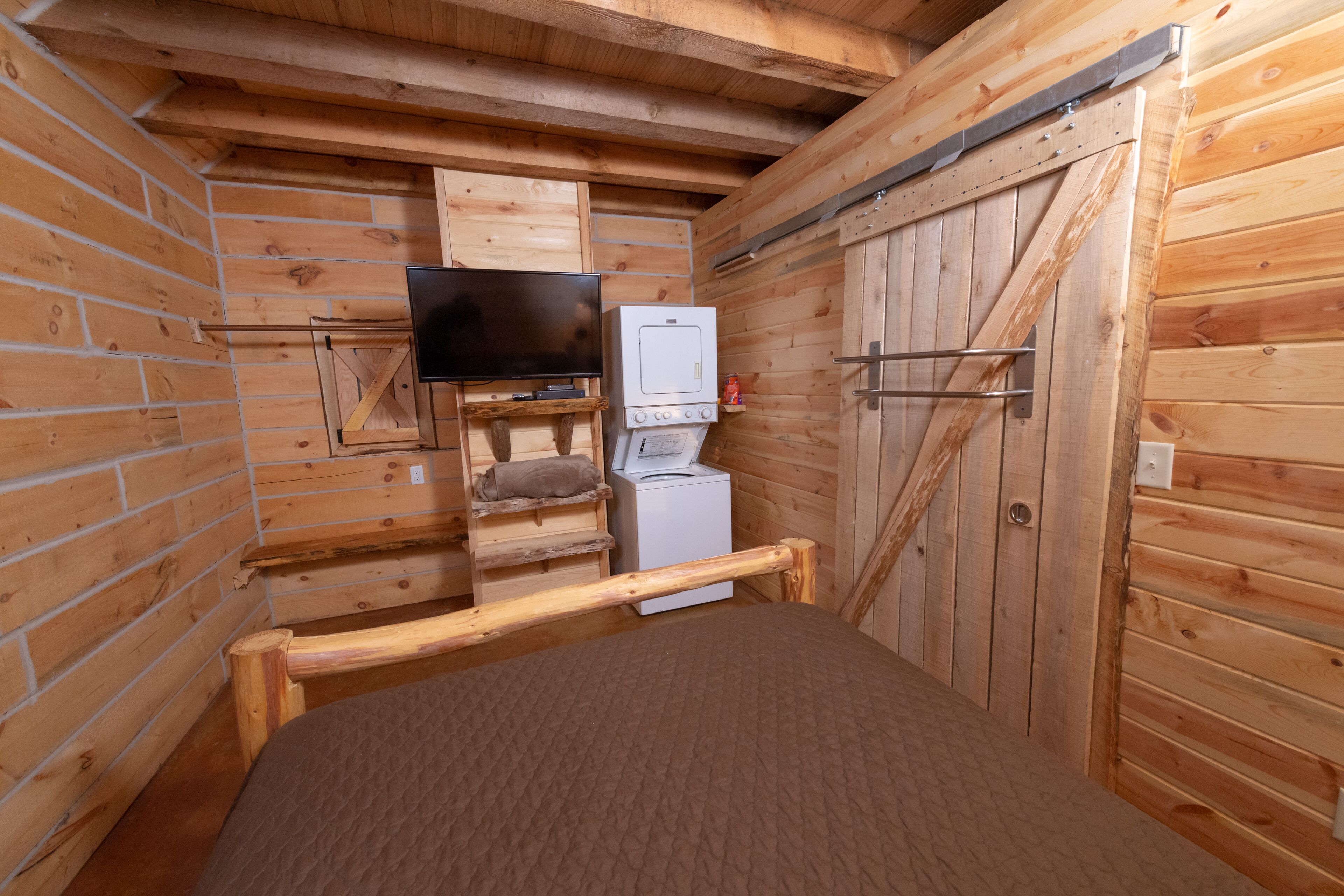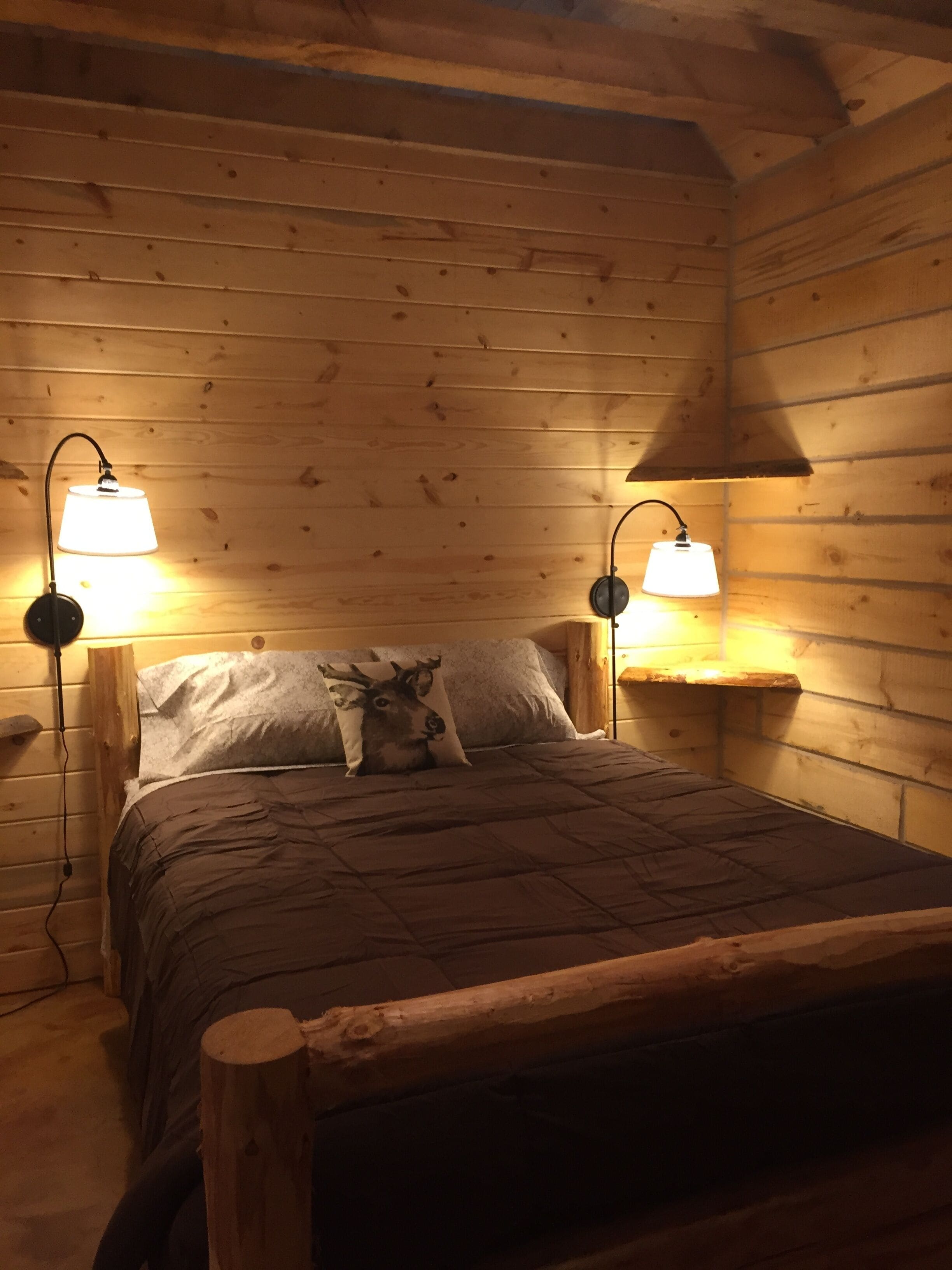 Bonnie's Private City Cabin-Madison's Only Log Cabin Rental We have the most unique lodging opportunity in Madison! Our City Cabin was built by Amish craftsmen to have the charm and warmth of north woods, yet have all the modern comforts. Fully accessible (customized for Grandma!), full kitchen with all the appliances, dishes and utensils needed,, great room with 40 in TV, 1 bedroom with 40 inTV,...