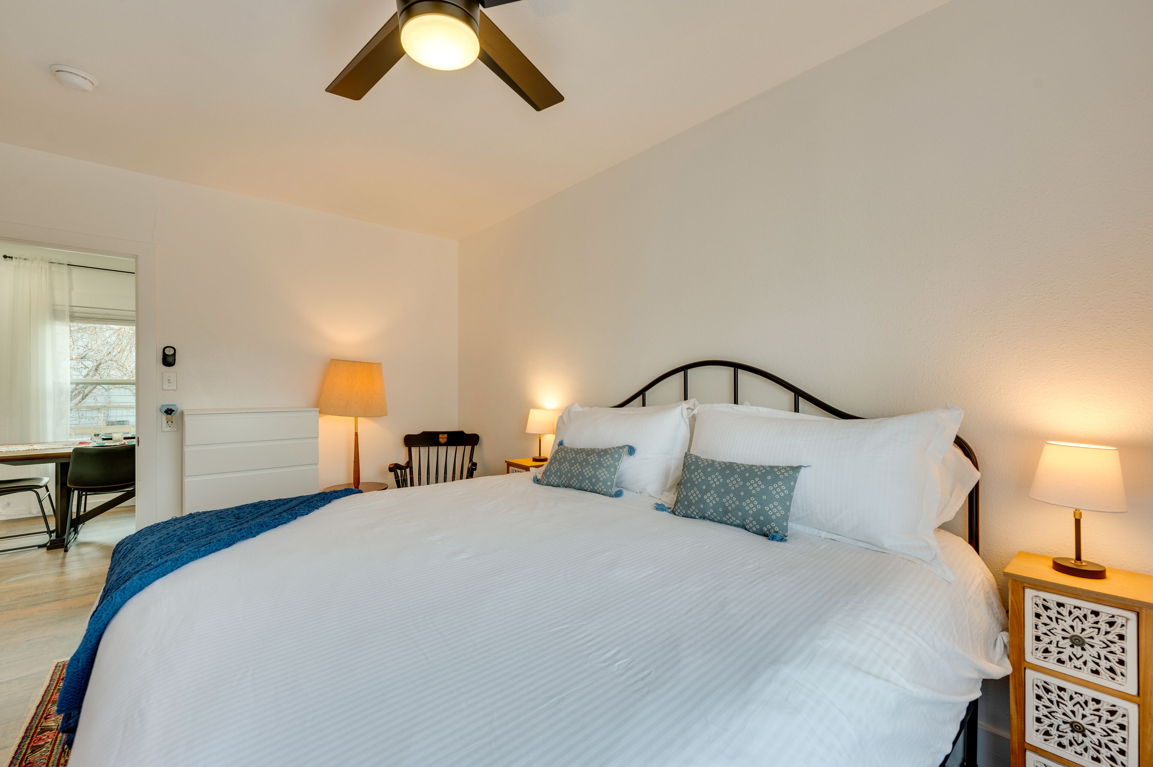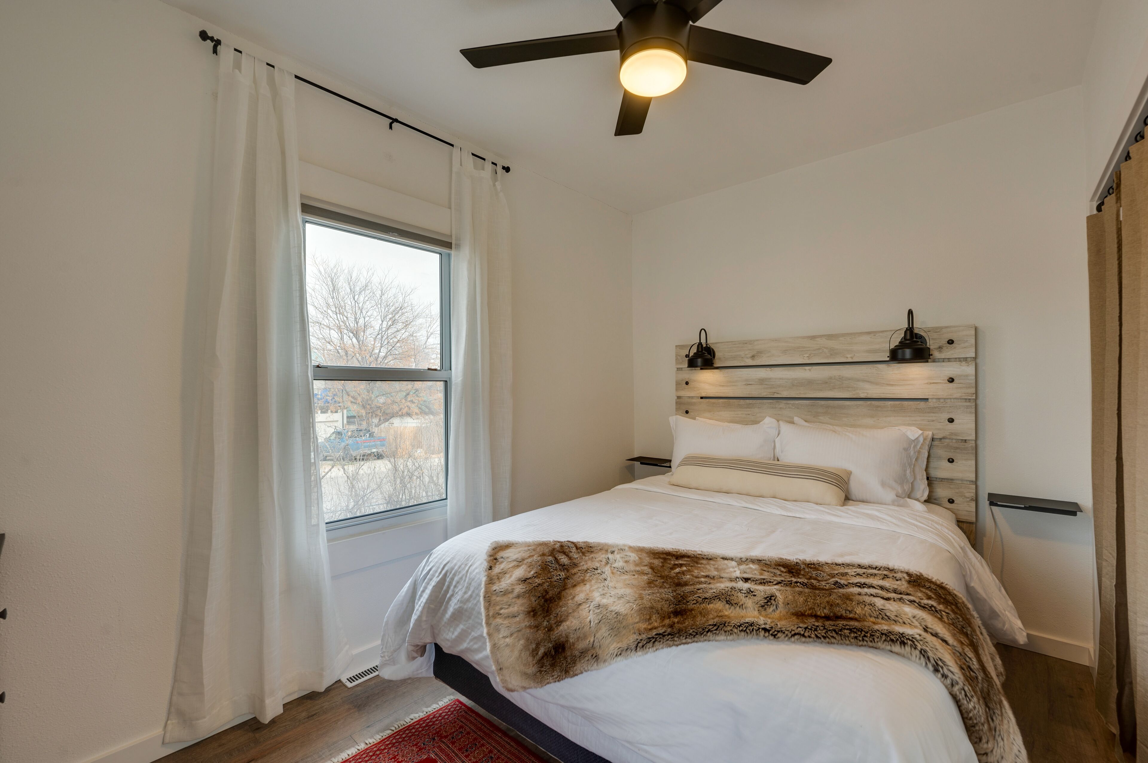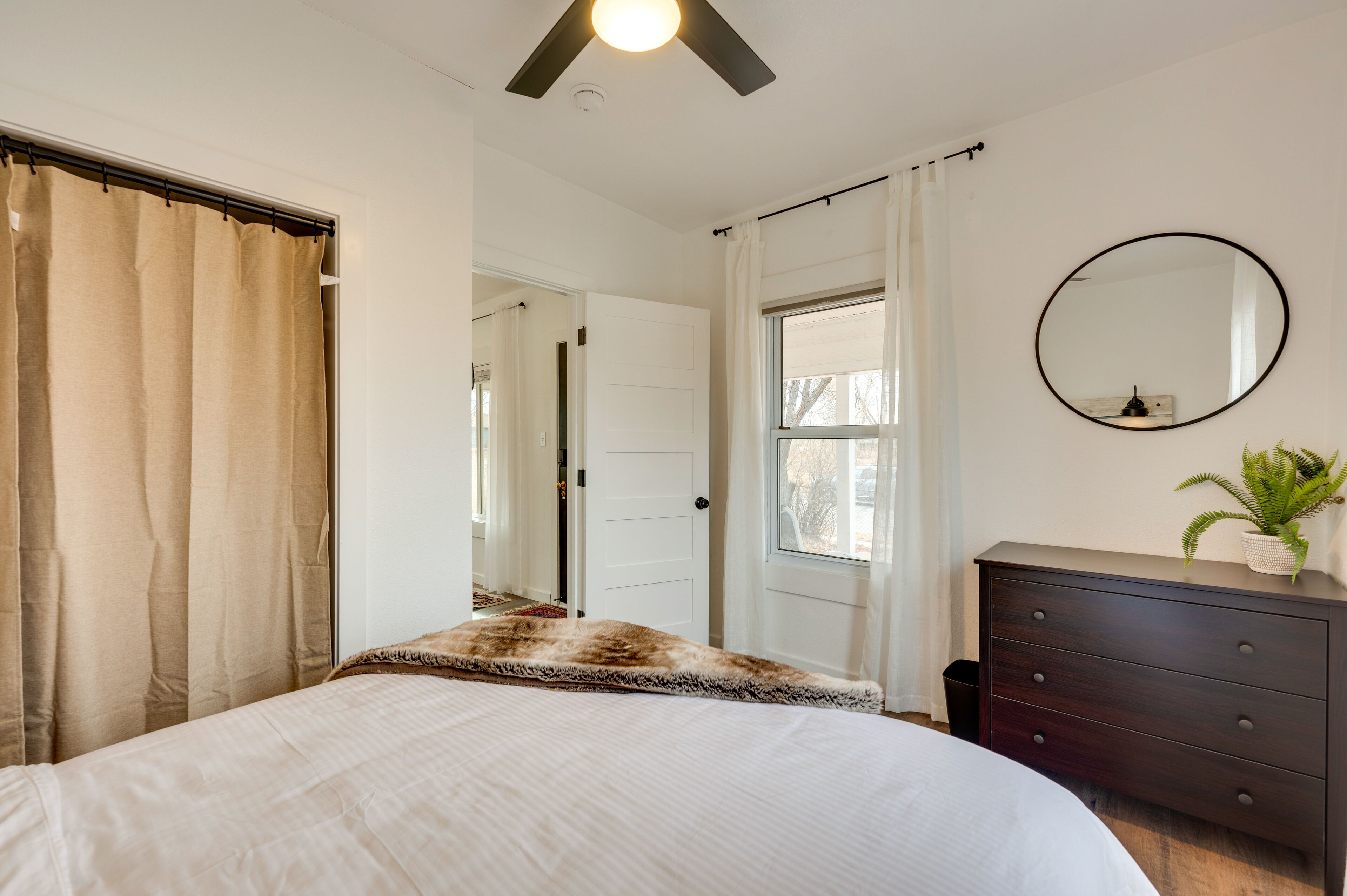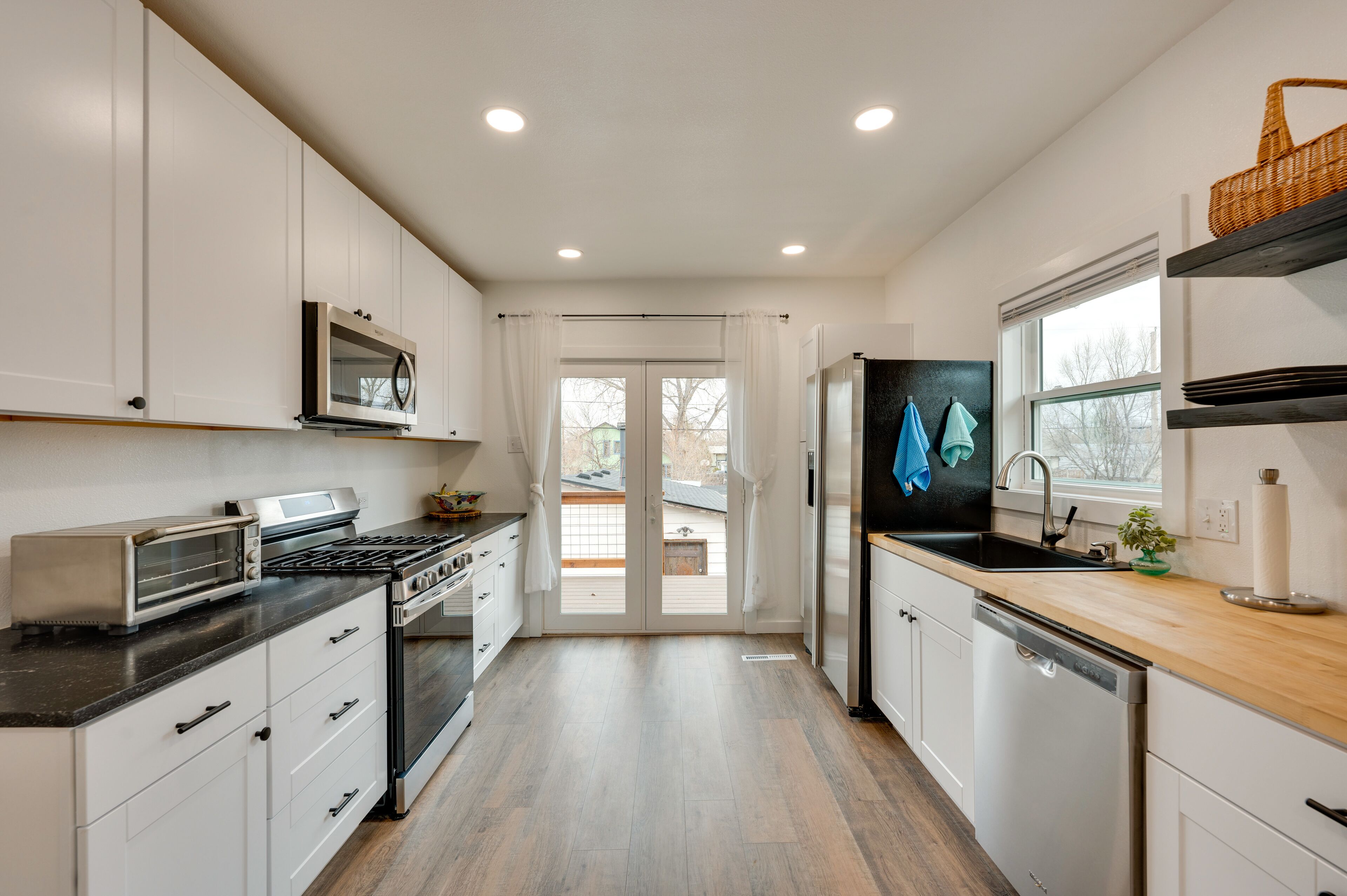 Chic Erie Vacation Rental ~ 14 Mi to Boulder! Retreat to the charming town of Erie with your family or friends and book this 2-bedroom, 1-bath vacation rental! This newly remodeled home features a cozy living area with a flat-screen TV, a fully stocked kitchen, and access to the area’s top attractions. Get outside and enjoy a morning stroll through Waneka Lake Park, then head into town for quaint shopping, brewery hopping, or a bite to eat! For the college parents, visit with loved ones at the University of Colorado Boulder. It’s up to you!-- THE PROPERTY --Central Location | Keyless Entry | Electric Fireplace | Furnished Porch w/ Mountain ViewsBedroom 1: King Bed | Bedroom 2: Queen BedMAIN FEATURES: Flat-screen TV, dining table, deckKITCHEN: Refrigerator, stove/oven, dishwasher, dishware/flatware, cooking basics, Keurig coffee maker, microwave, toaster ovenGENERAL: Free WiFi, central A/C and heat, linens/towels, iron/board, trash bags, paper towels, hair dryer, complimentary toiletriesACCESSIBILITY: Single-story home, 6 steps to enterPARKING: Driveway (2 vehicles), RV/trailer parking on-site, free street parking (first-come, first-served)-- THE LOCATION --DOWNTOWN BOULDER (~14 miles): University of Colorado Boulder, Pearl Street Mall, Boulder Theater, Folsom FieldDENVER DESTINATIONS: Coors Field (24 miles), 16th Street Mall (25 miles), Elitch Gardens (25 miles), Larimer Square (26 miles), Denver Zoo (28 miles)OUTDOOR RECREATION: Waneka Lake Park (8 miles), Chautauqua Park (16 miles), Eldorado Canyon State Park (19 miles)FAMILY-FRIENDLY FUN: WOW! Children’s Museum (6 miles), E.B. Rains Jr. Memorial Park (14 miles), Butterfly Pavilion (15 miles), Adventure Golf & Raceway (15 miles)AIRPORT: Denver International Airport (32 miles)-- REST EASY WITH US --Evolve makes it easy to find and book properties you’ll never want to leave. You can relax knowing that our properties will always be ready for you and that we’ll answer the phone 24/7. Even better, if anything is off about your stay, we’ll make it right. You can count on our homes and our people to make you feel welcome--because we know what vacation means to you.-- POLICIES --- No smoking- No pets allowed- No events, parties, or large gatherings- Must be at least 25 years old to book- Additional fees and taxes may apply- Photo ID may be required upon check-in- NOTE: This single-story home requires 6 exterior steps to enter via the front door; additional exterior steps are also required to access the home via the back door