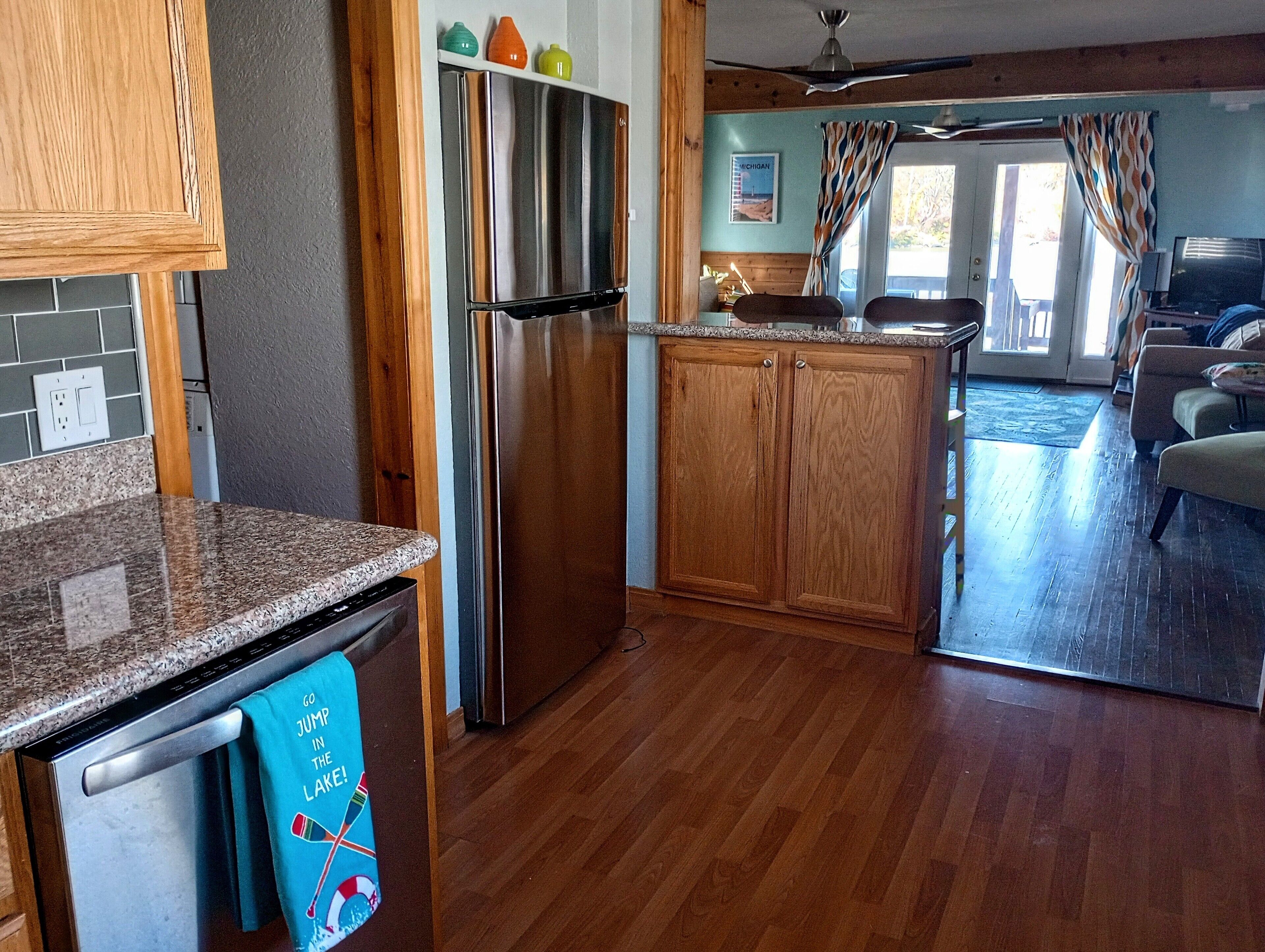 Waterfront home sleeps 5, deck, hot tub, kayaks, dock, grill, firepit, wifi, a/c Enjoy the shore, with nearby state parks in Ohio & Michigan with beautiful beaches. Relax in a cozy, newly renovated house with vaulted ceilings in the bedroom & bath, and all the modern conveniences, 10 minutes from downtown Toledo nightlife, concerts, Mudhens Baseball, Walleye Hockey, ice-skating in winter, rollerblade in summer at Glass City Metropark, world famous Toledo Zoo, or Toledo Museum of Art, symphony, restaurants and shopping, yet nestled on a small peninsula away from the hustle & bustle. Bring your boat and use the boat launch a quarter mile away. Enjoy our spacious deck with a 2 person hot tub, or roast marshmallows at the fire pit after a day of boating, fishing or even snowmobiles in winter, or play board games and connect your smart phone to the stereo system, or watch you favorite prime smart tv movies. Sterling State Park in Monroe, MI is 17 miles away and has a beautiful beach and hiking, birding, nature trails. Enjoy a family vacation or a fun weekend getaway with the best Toledo & Southern Michigan has to offer! The newly renovated dock has a kayak launch & ladder for easy access. The water is deep enough for a pontoon, deck boat or mid sized speedboat (See neighboring boats for reference.) There is a public park and basketball court just a few houses down. There are 2 kayaks available for use. Enjoy the wading herons, waterfowl, and eagles. Don't miss this peaceful retreat. Kitchen has a Keurig coffee & tea bar, gas stove, oven, microwave, pots, pans, backing sheet, large crab pot, and everything you need for cooking, or use the gas outdoor grill for homemade barbecue. Front loading washer and dryer on the premises, with detergent and dryer sheets.There are stairs at all entrances, not handicap accessible. Note that the kayaks, grill and dock are not available from October to May. This is a non smoking, non vaping property. Please, no incense or candles. Thank you.
