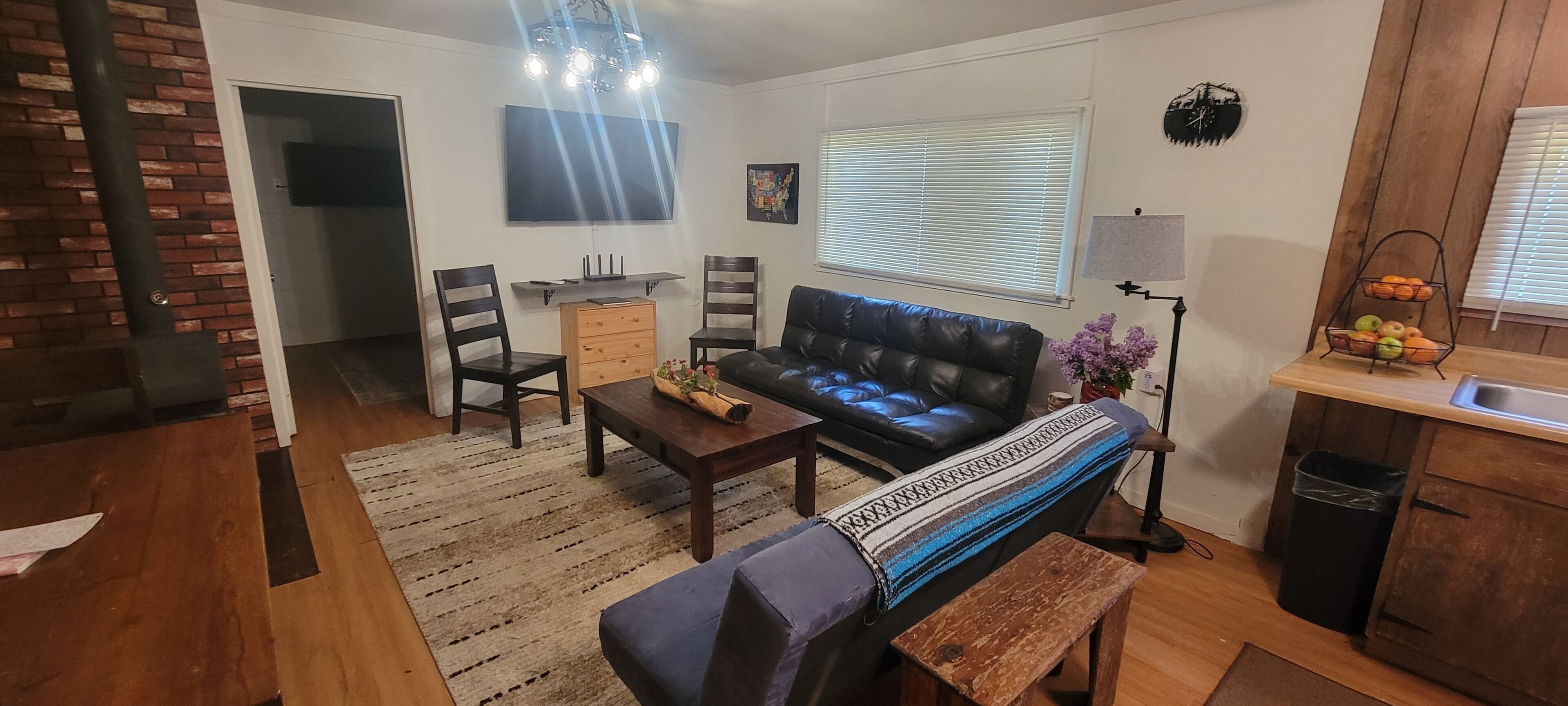 Kings Canyon Rustic Cabin Welcome to Kings Canyon Rustic cabin. Located just 7 miles from Kings Canyon National Patk Entrance.Nestled in the beautiful Sequoia Natuonal Forest. There is so much natural beauty to experience in Kings Canyon and Sequoia. The cabin is located on 3 acres, surrounded by natural scenery. While you’re here visiting you can enjoy world famous hikes, rivers, and all the beaty that is Sequoia and Kings Canyon. We hope that your visit is not only for you to experience Kings Canyon and Sequoia national park, but to have a relaxing vacation at the cabin. Walking your furr babies on 3 acres, admiring the stars at night, or simply coming home from a great day of adventures, relaxing and having a glass of wine or a beer and grilling your favorite food.In the evening you can settle in and stream your favorite shows on our 2 flat screen TVs. Our cabin offers high speed internet 200Mbps(Stralink Satelite) with two flat screen TVS, both including Netflix, HBO Max, and YouTube TV, and many more streaming services. . There are also board games(monopoly, jenga, Uno, cards for you and your family or friends to enjoy.There is also a fooseball table, cornhole set.For the sports fan in the family, YouTube TV is available for any sporting events and live TV.During fall you can come back to the cabin from a day of adventures, relax, grill some food, enjoy watching your favorite team with NFL SUNDAY TICKET 🏈 provided to you at no extra charge.Please remember to bring all your groceries as there are no grocery stores nearby. We have a fully functional kitchen, and a Weber grill for anything you may want to cook. Pinehurst lodge is a Bar & Grill located just five minutes from the cabin. The menu and hours of operation is provided for you at the cabin. (seasonal hours)During your stay keep an eye out for deer on the property with your morning coffee, as they like to roam the properry frequently. You will see our neighbors roosters running around on the property, and they will be your alarm clock. In the evening Relax with a glass of wine on the patio and listen to the crickets and frogs, and watch the stars.There is a No Trespassing sign at the entrance of the property. You can remove it from the left side and leave it off to the side during your stay.There is a lock box which holds the key to the front door to the cabin. Please also take note: Although our bathroom is a decent size, our shower is 30 inches by 30 inches and if you are over 6’2 you may find it a bit small. The wall unit AC unit in the living room also has heating for the living room and kitchen. When using the HEATER after it is turned off it will CONTINUE TO RUN to cool down the coils. There are 2 space heaters for each bedroom, and a fan in the living room. There is one outdoor camera located at the east end of the property facing the entrance for your safety. We hope to see you soon!If you have any questions or concerns please text Eddie at (818)-447-6912 or email at [email protected] will be your host, you may also contact her with any questions or concerns.Sandie [email protected] you and we hope to see you soon.Cheers!
